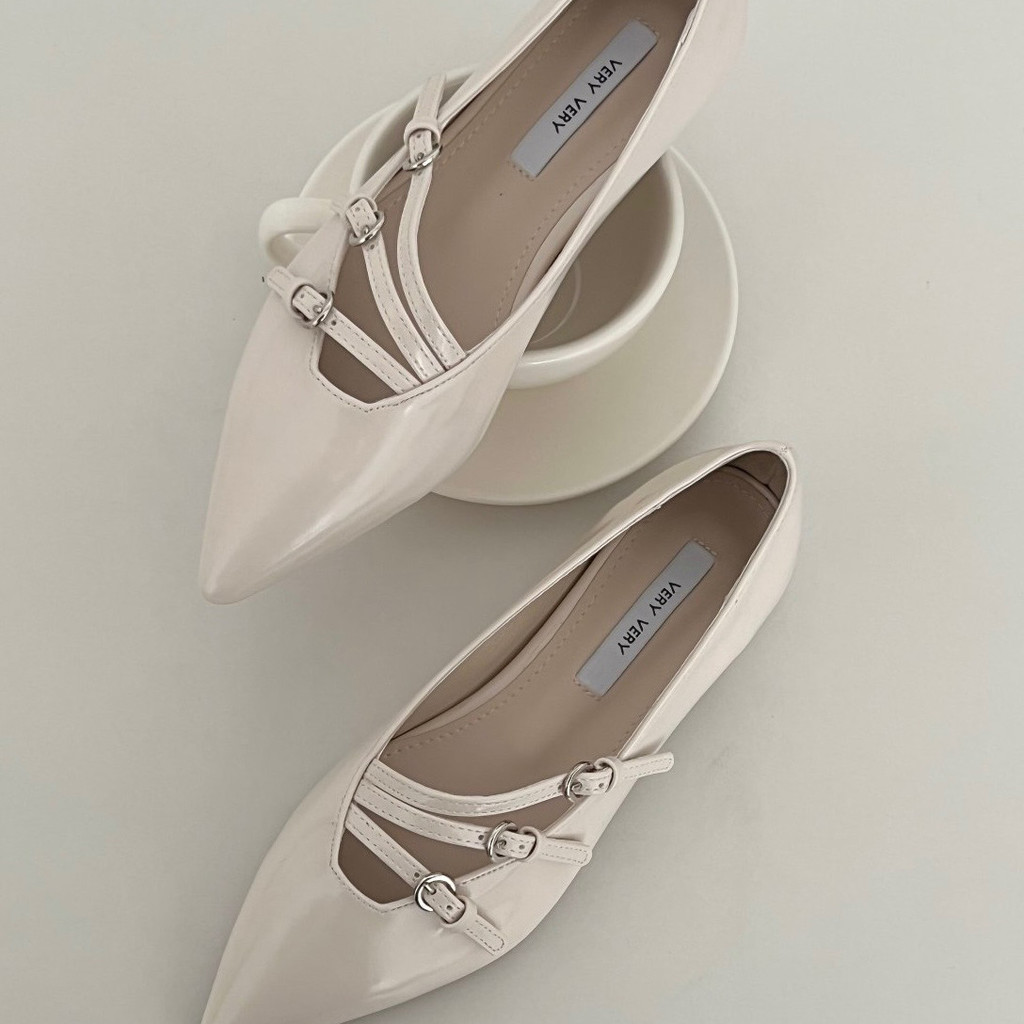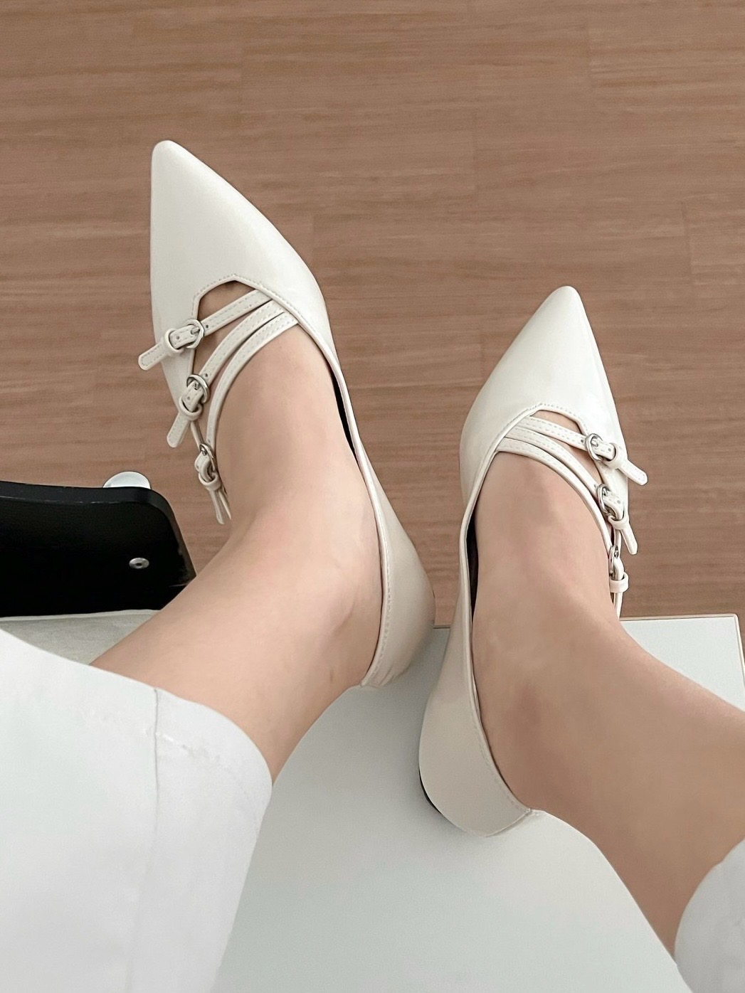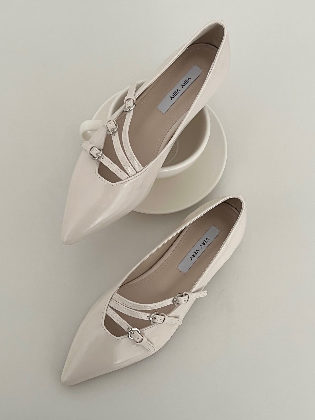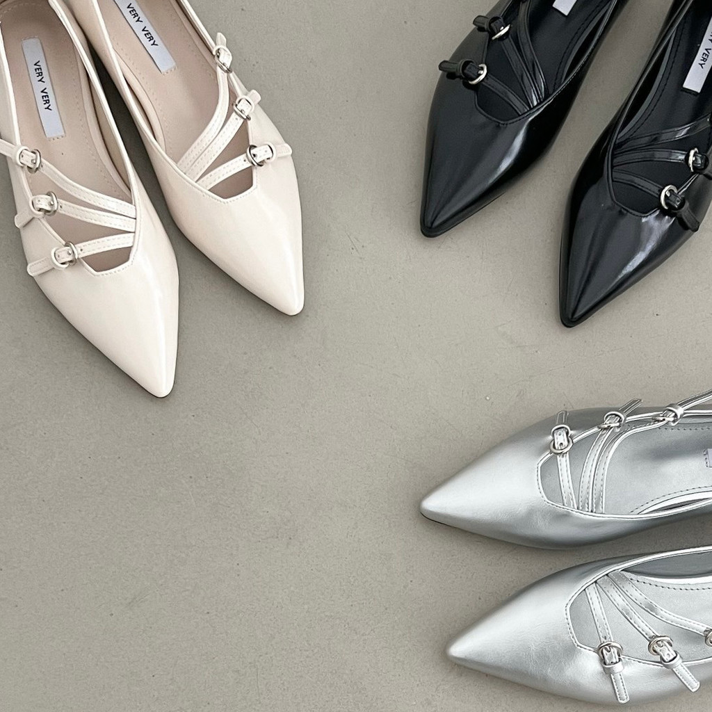 발등의 벨트 디자인이 포인트도 되어주면서 발등을 안정적으로 잡아줍니다. 샤프하게 떨어지는 포인트 토가 다리를 더 길어 보이게 해요.