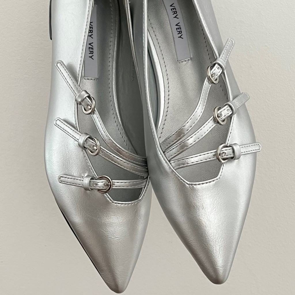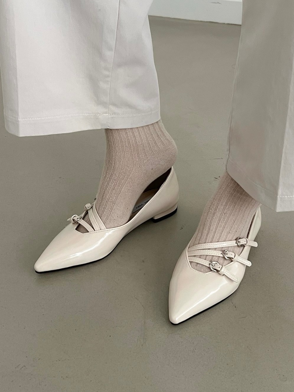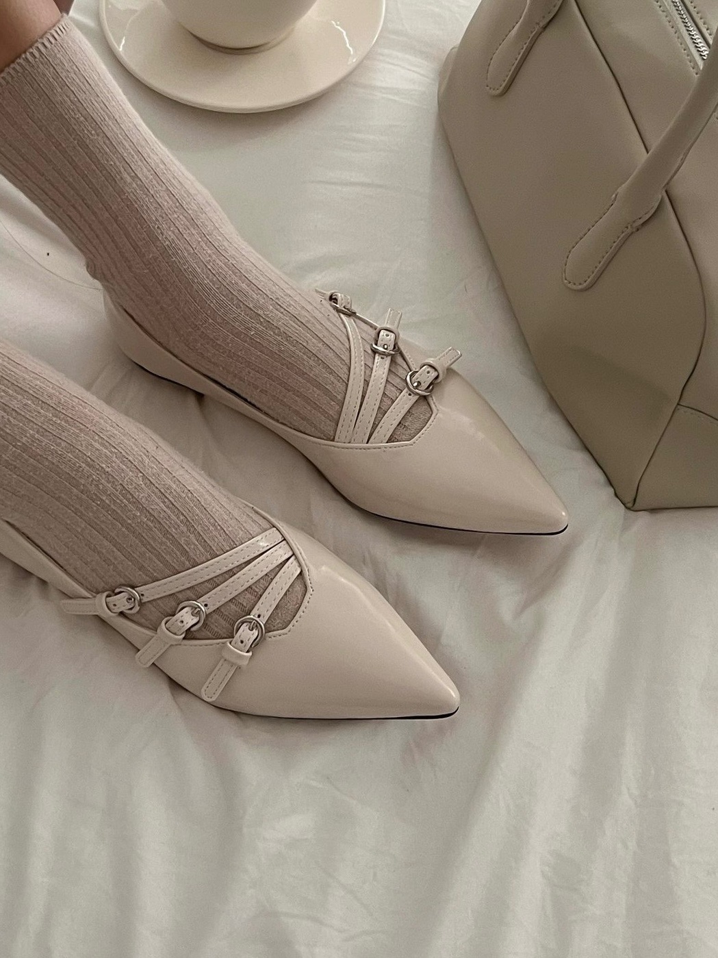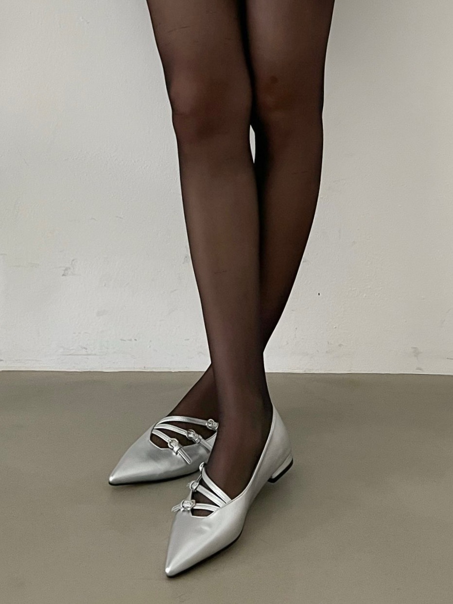 발등의 벨트 디자인이 포인트도 되어주면서 발등을 안정적으로 잡아줍니다. 샤프하게 떨어지는 포인트 토가 다리를 더 길어 보이게 해요.