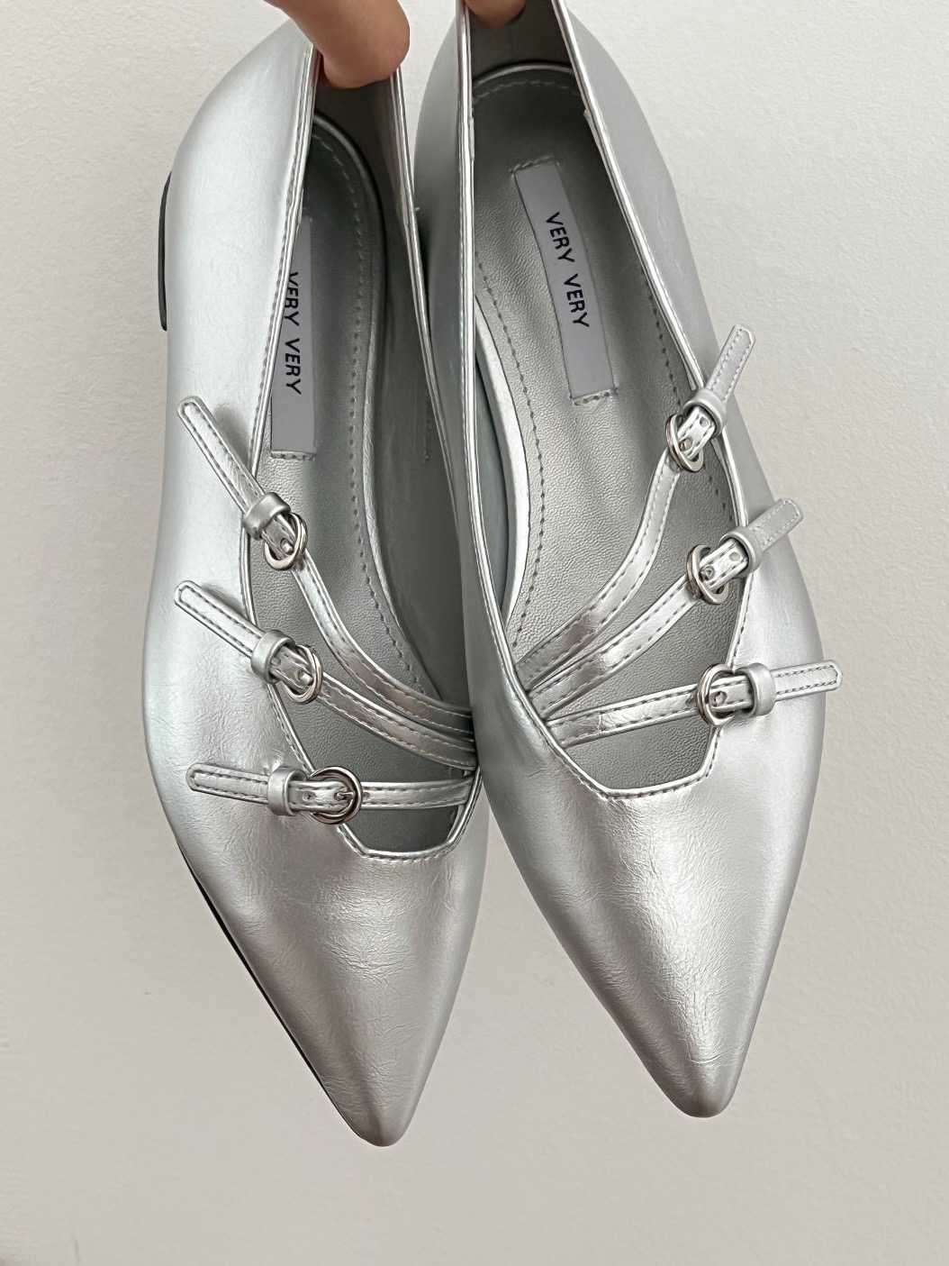 유니크하고 세련된 디자인의 스틸레토 플랫슈즈입니다.
