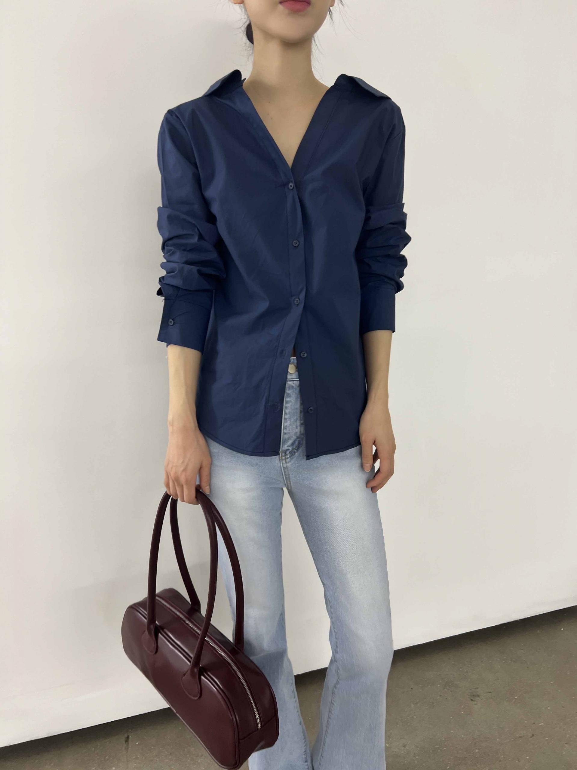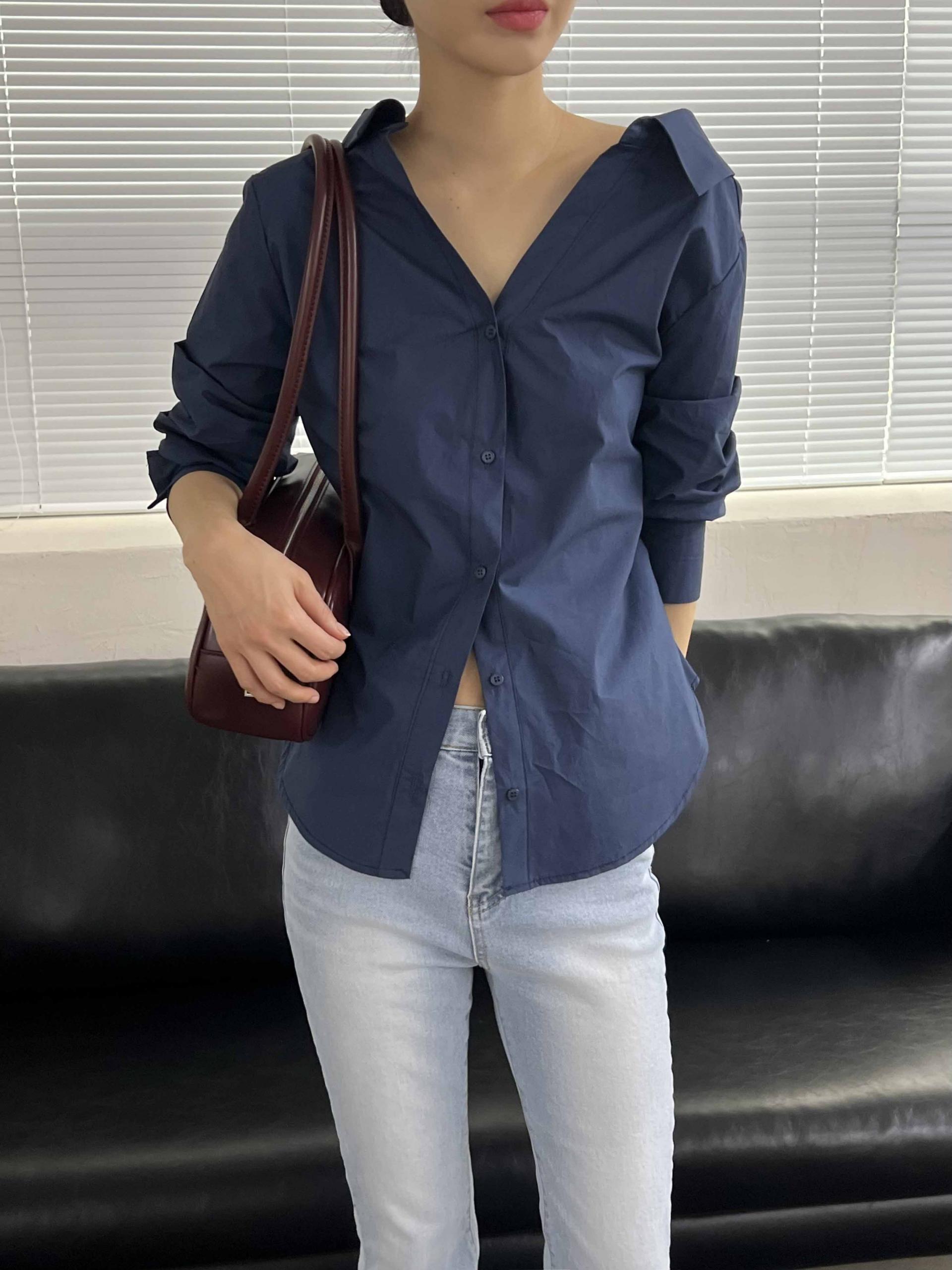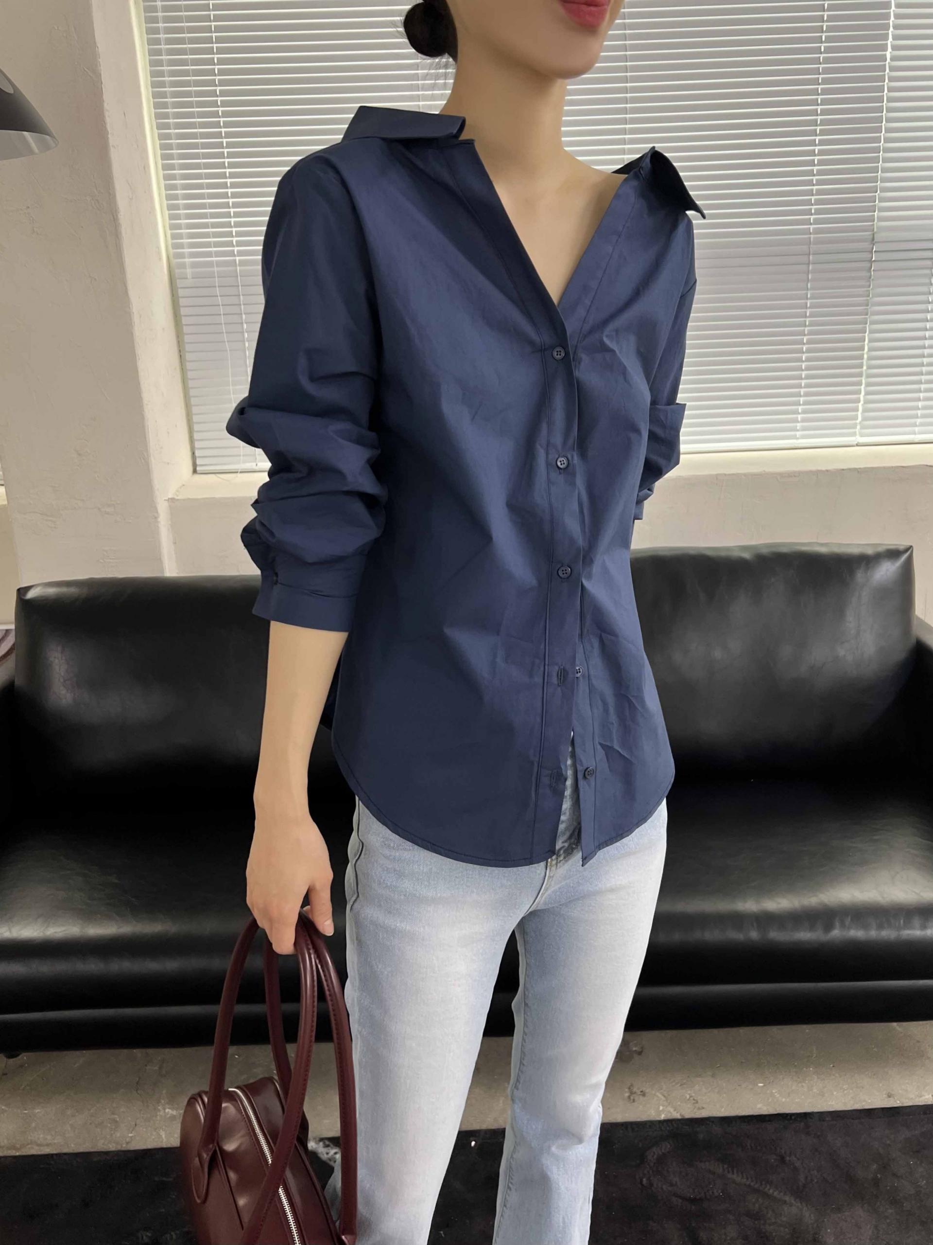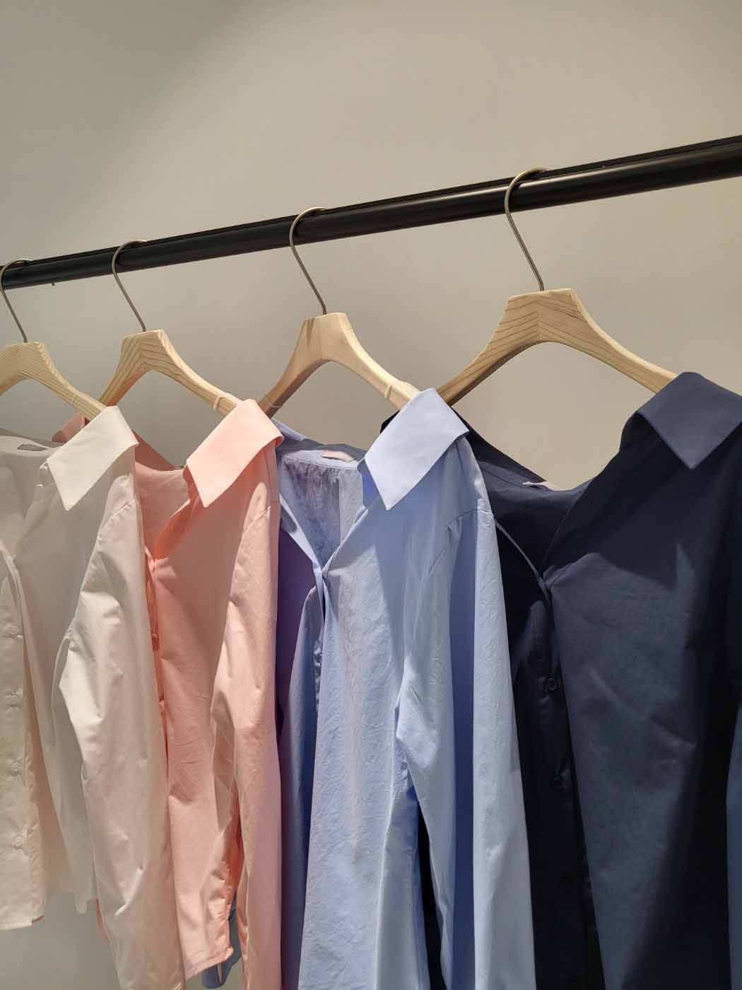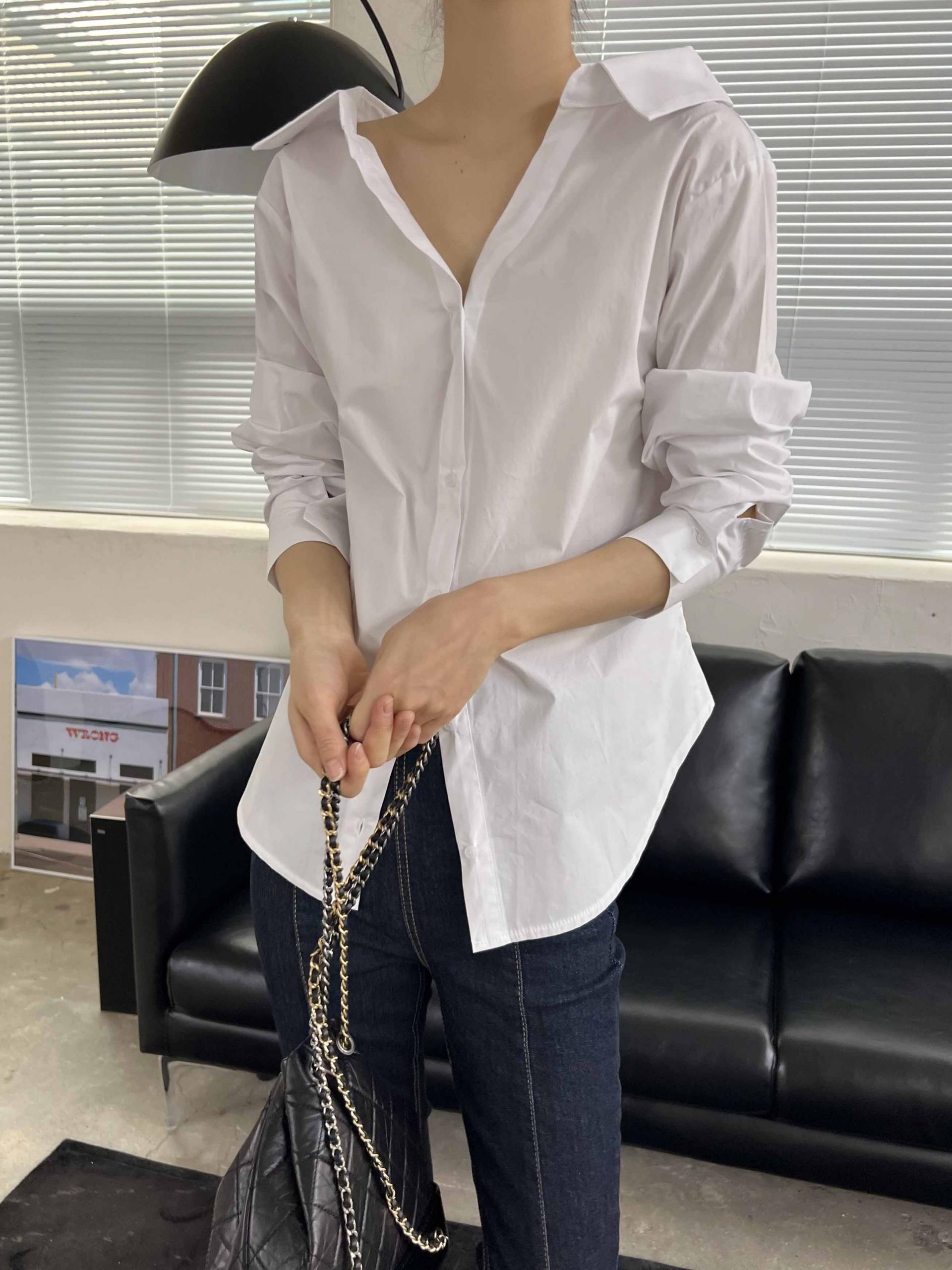 사진만 봐도 느껴지는 아주 빳빳한 코튼 소재로 단독으로만 착용하셔도 굉장히 세련된 느낌이고, 완성도 높은 코디를 하실 수 있을 거예요.