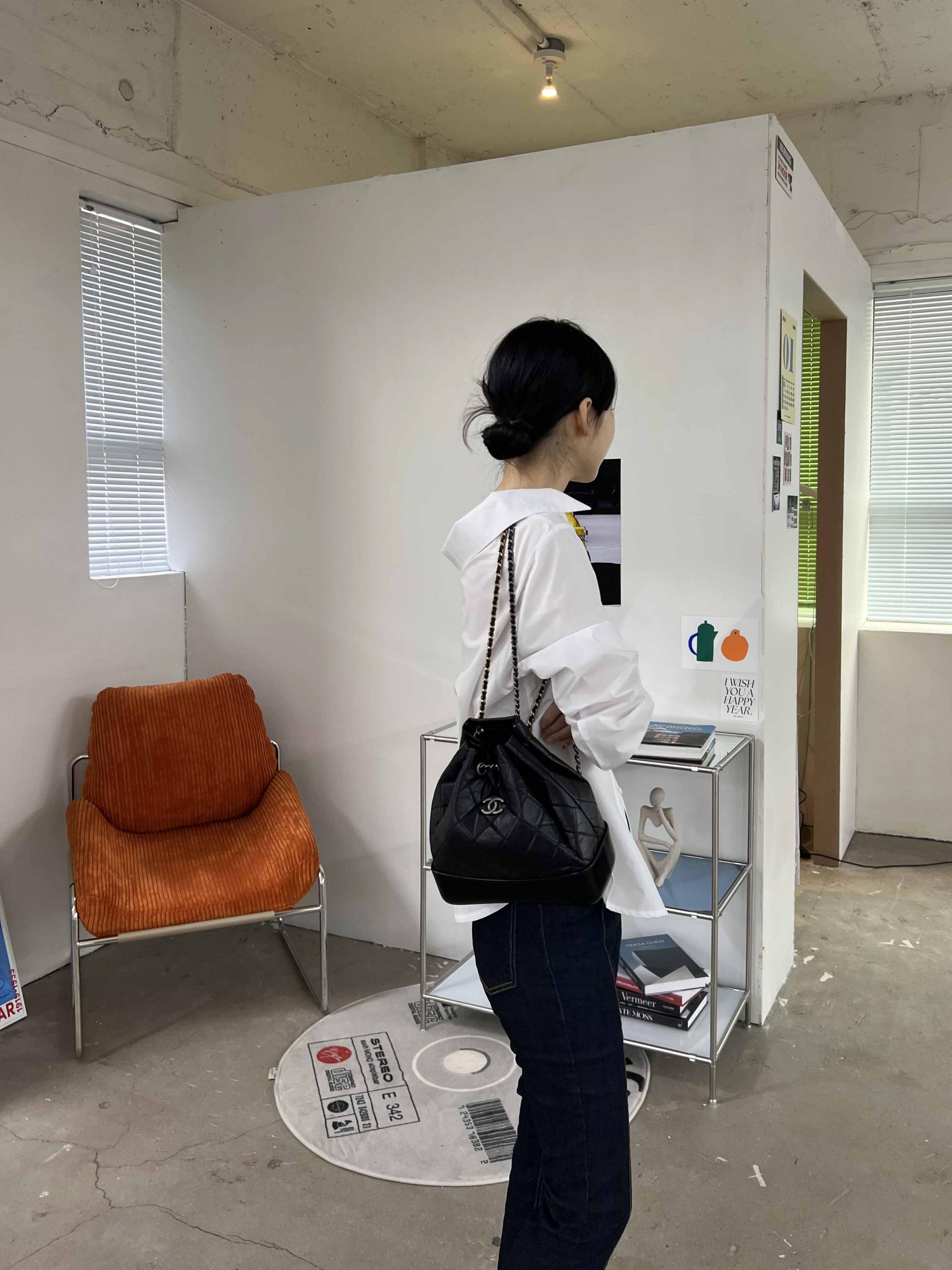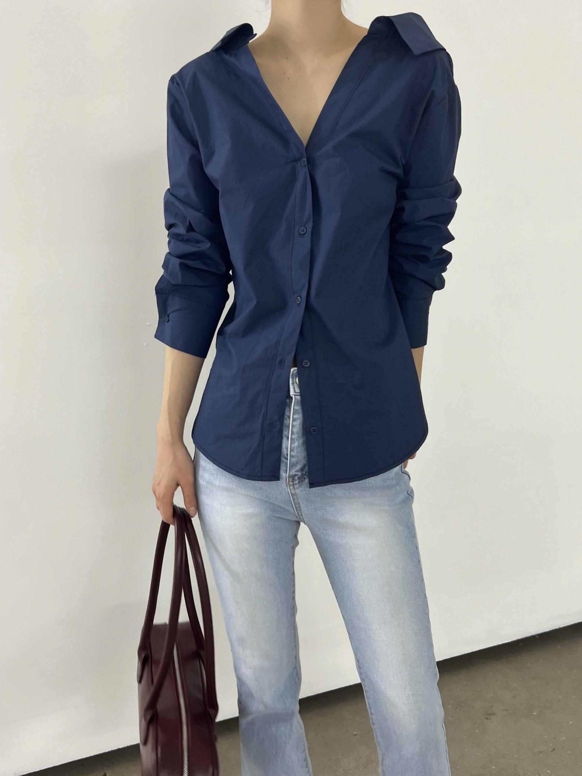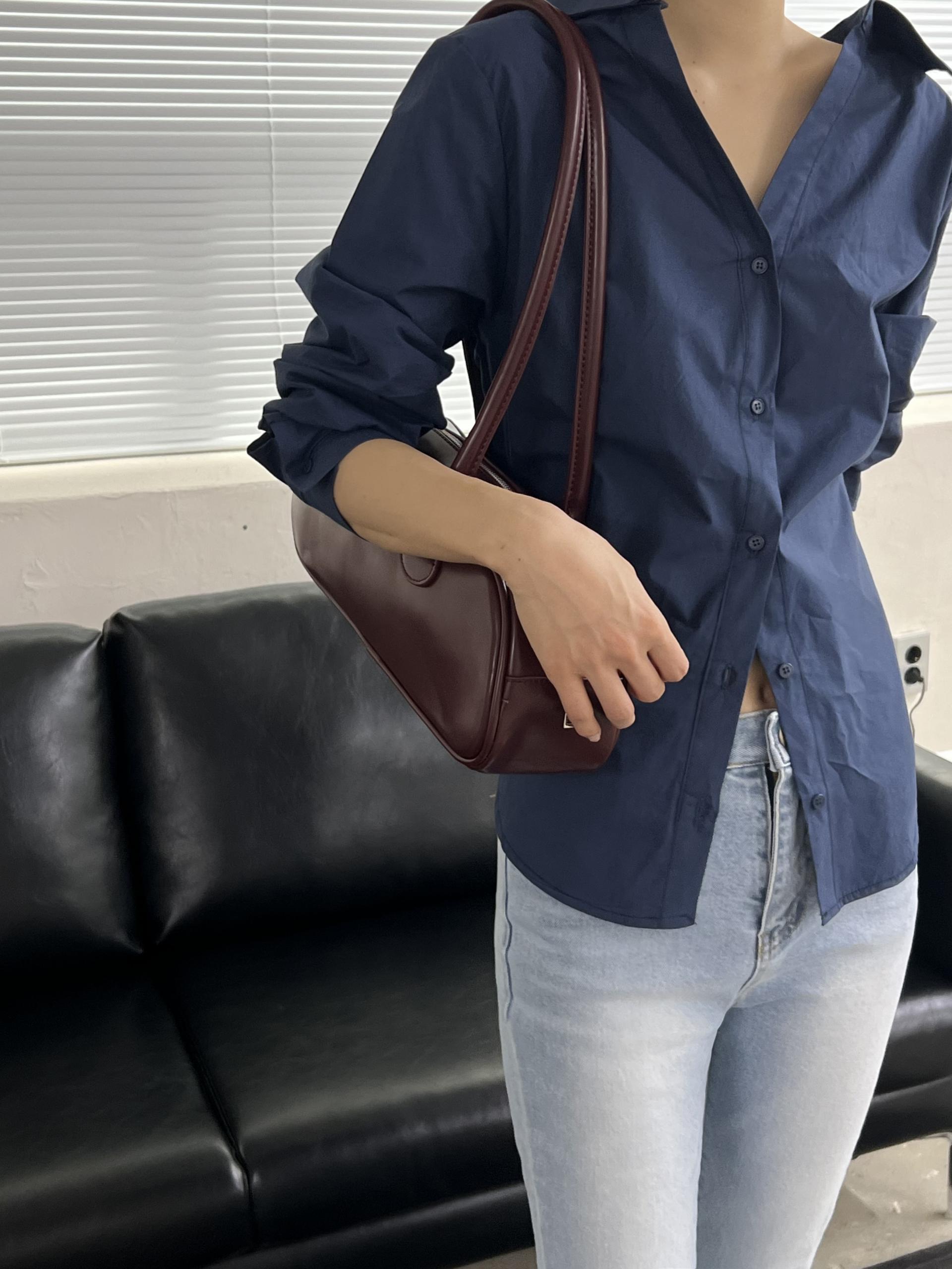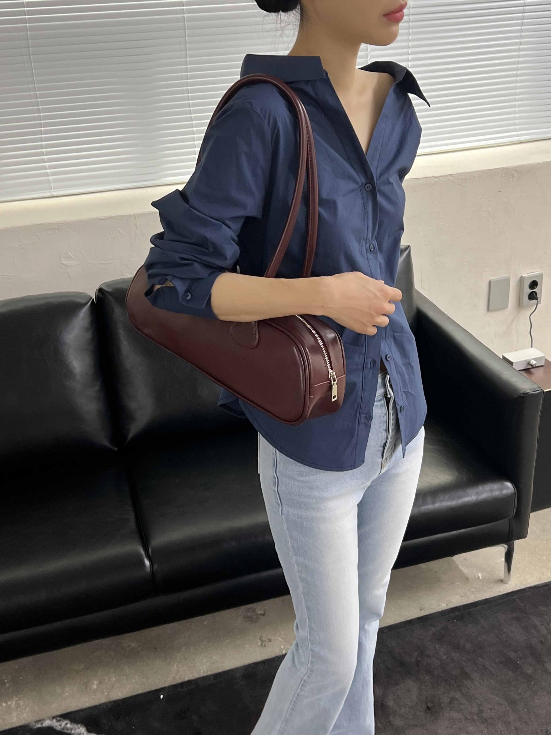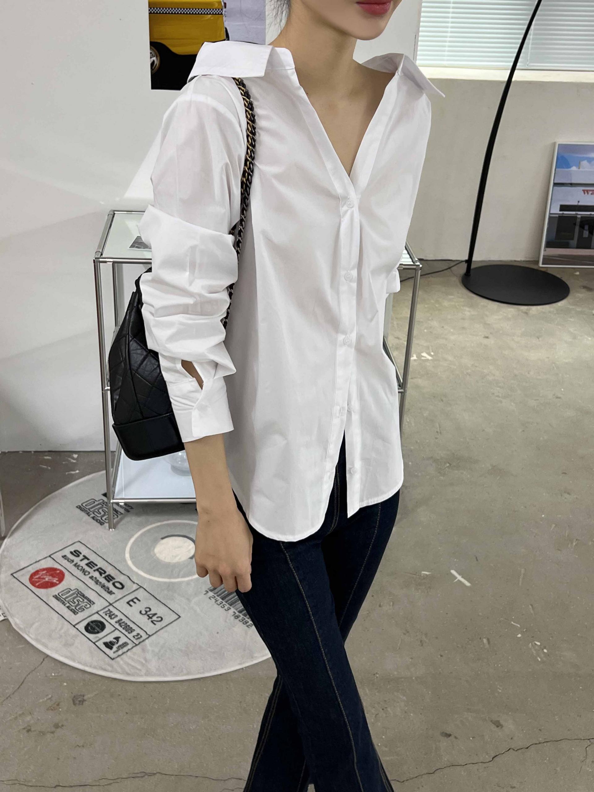 사진만 봐도 느껴지는 아주 빳빳한 코튼 소재로 단독으로만 착용하셔도 굉장히 세련된 느낌이고, 완성도 높은 코디를 하실 수 있을 거예요.