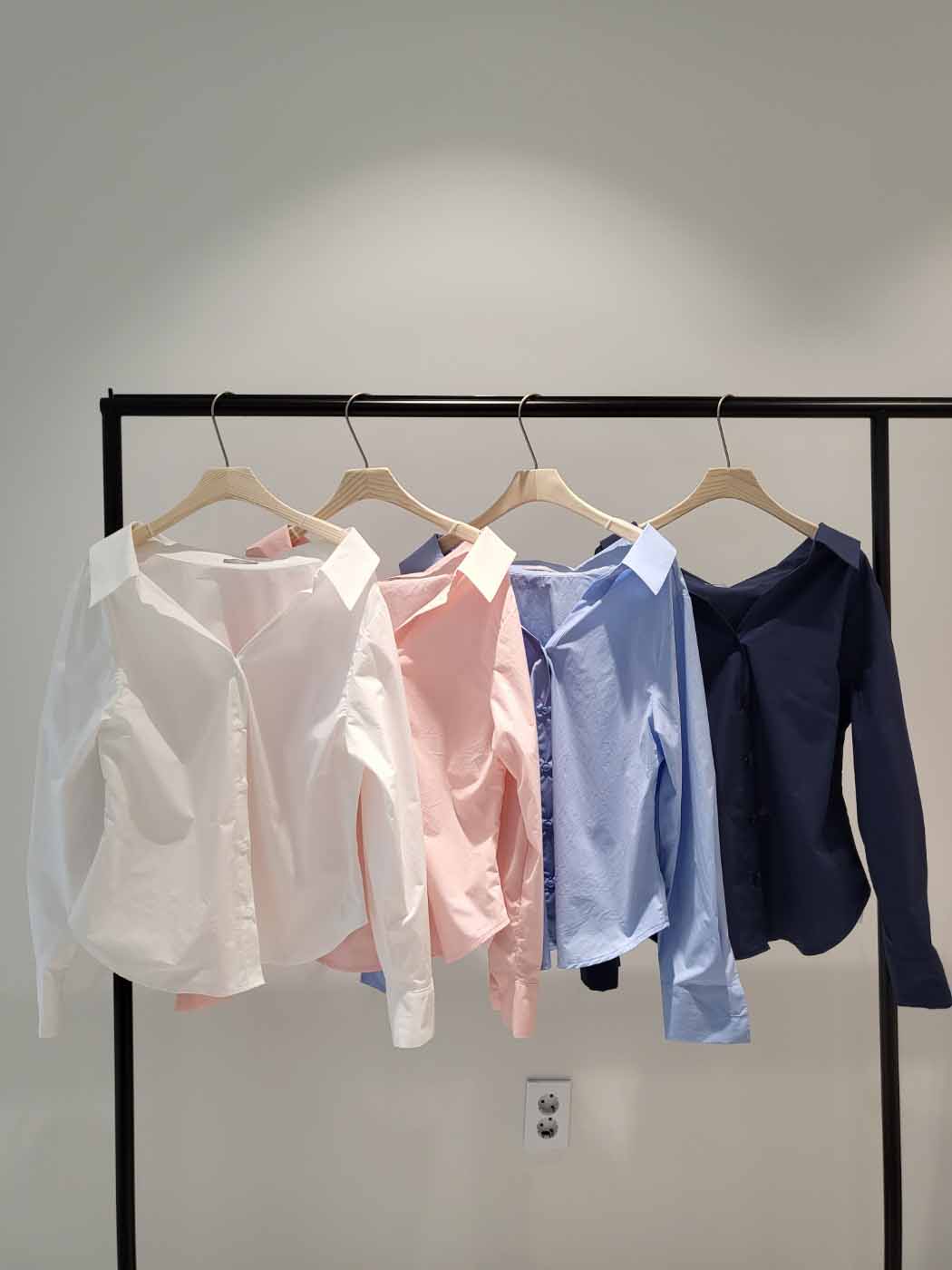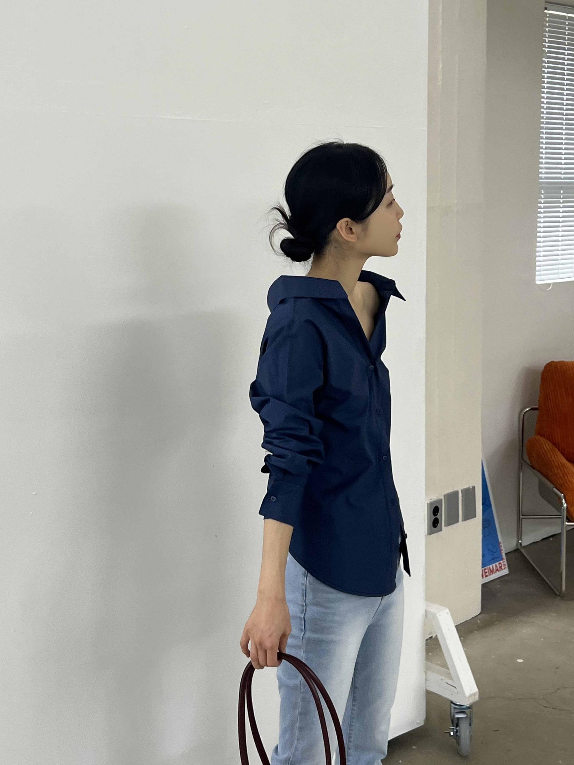 쇄골 선이 살짝 드러나는 페미닌한 무드의 카라 셔츠 블라우스 소개 드려요.