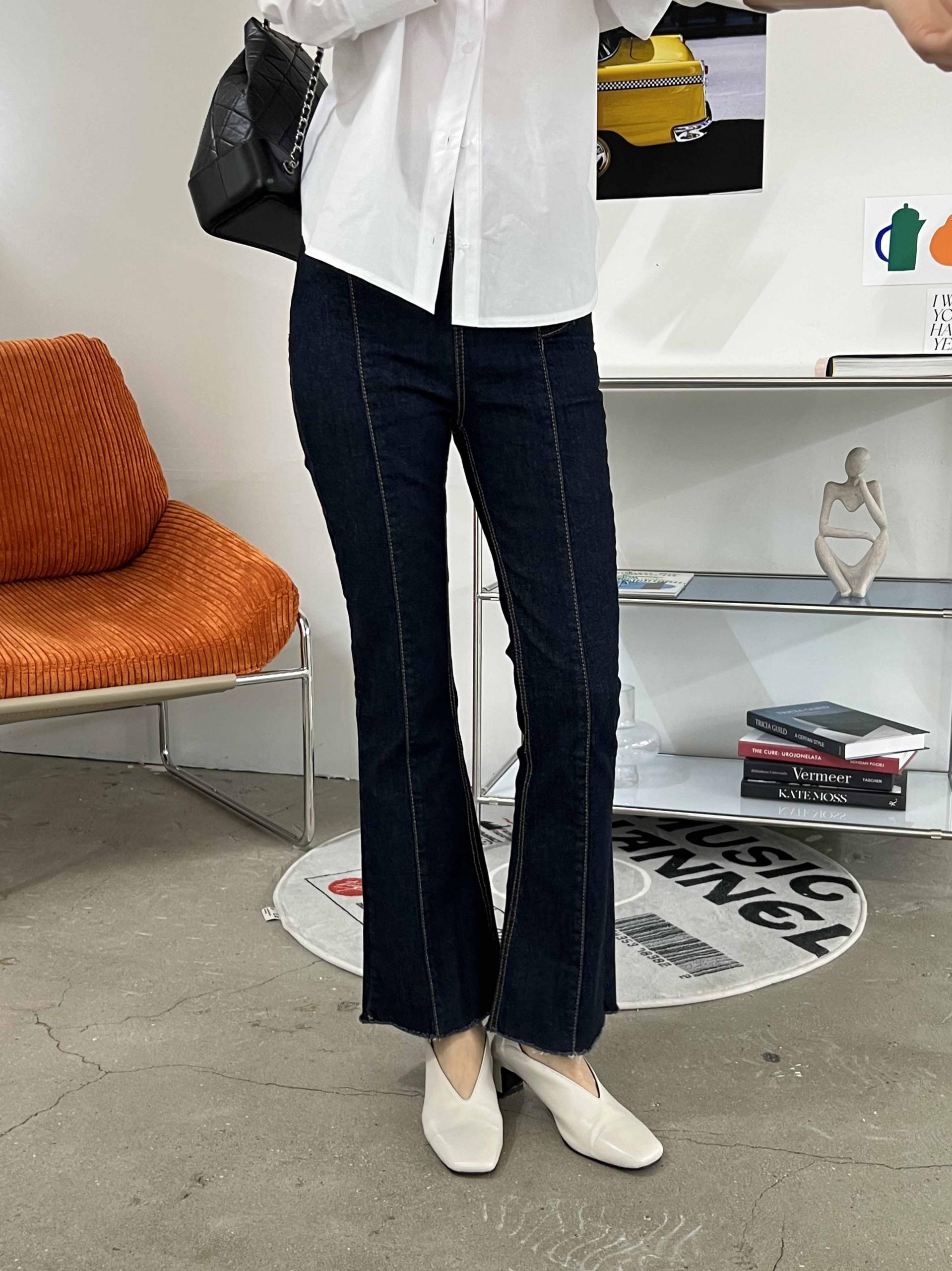허리선에는 약간의 라인이 잡혀 있으면서 하프 기장이라 아래쪽 단추를 2개 정도 연 상태에서 셔츠를 빼서 입으셔도 좋고, 아예 팬츠 안에 넣어 입으셔도 예뻐요.