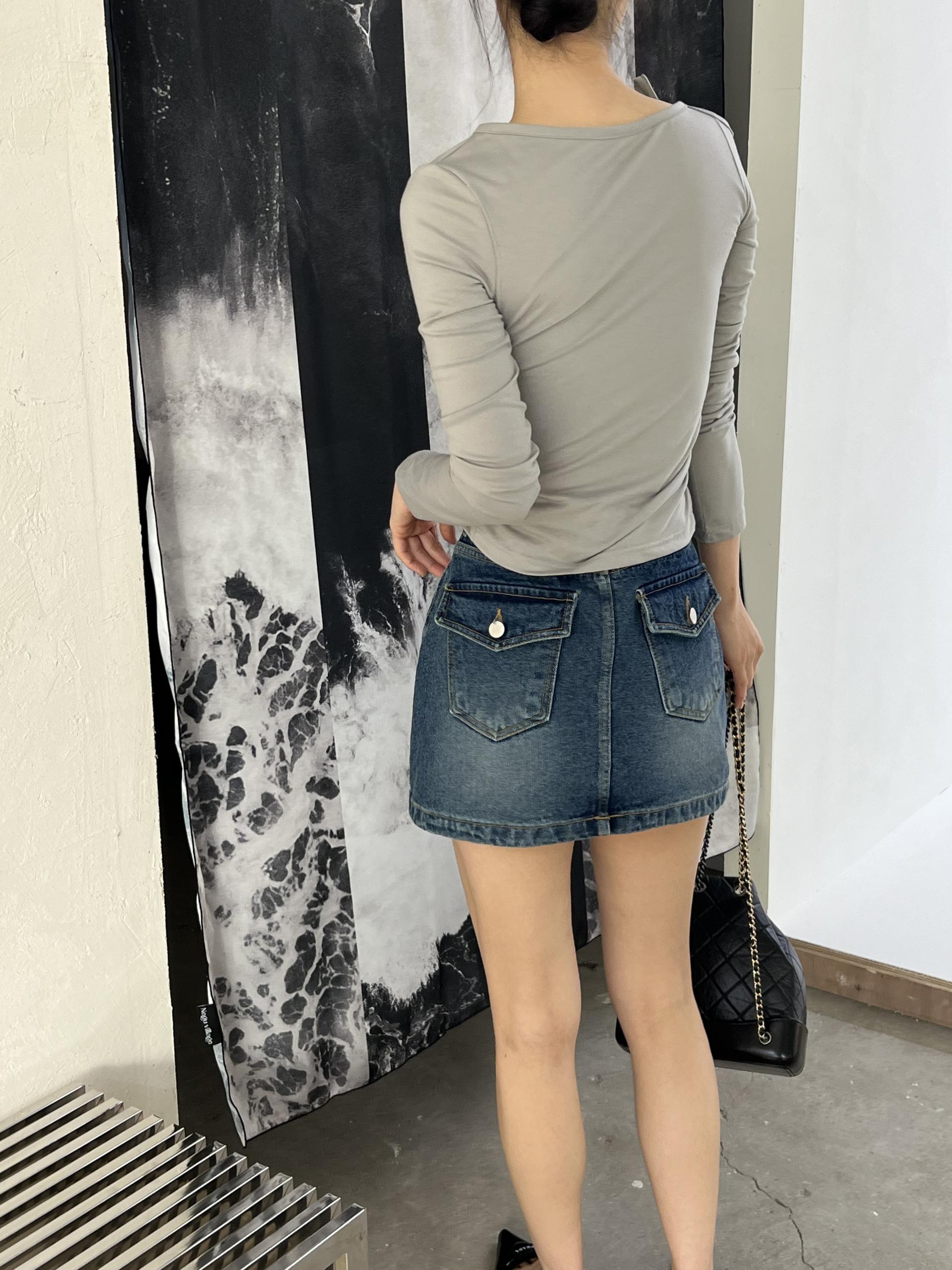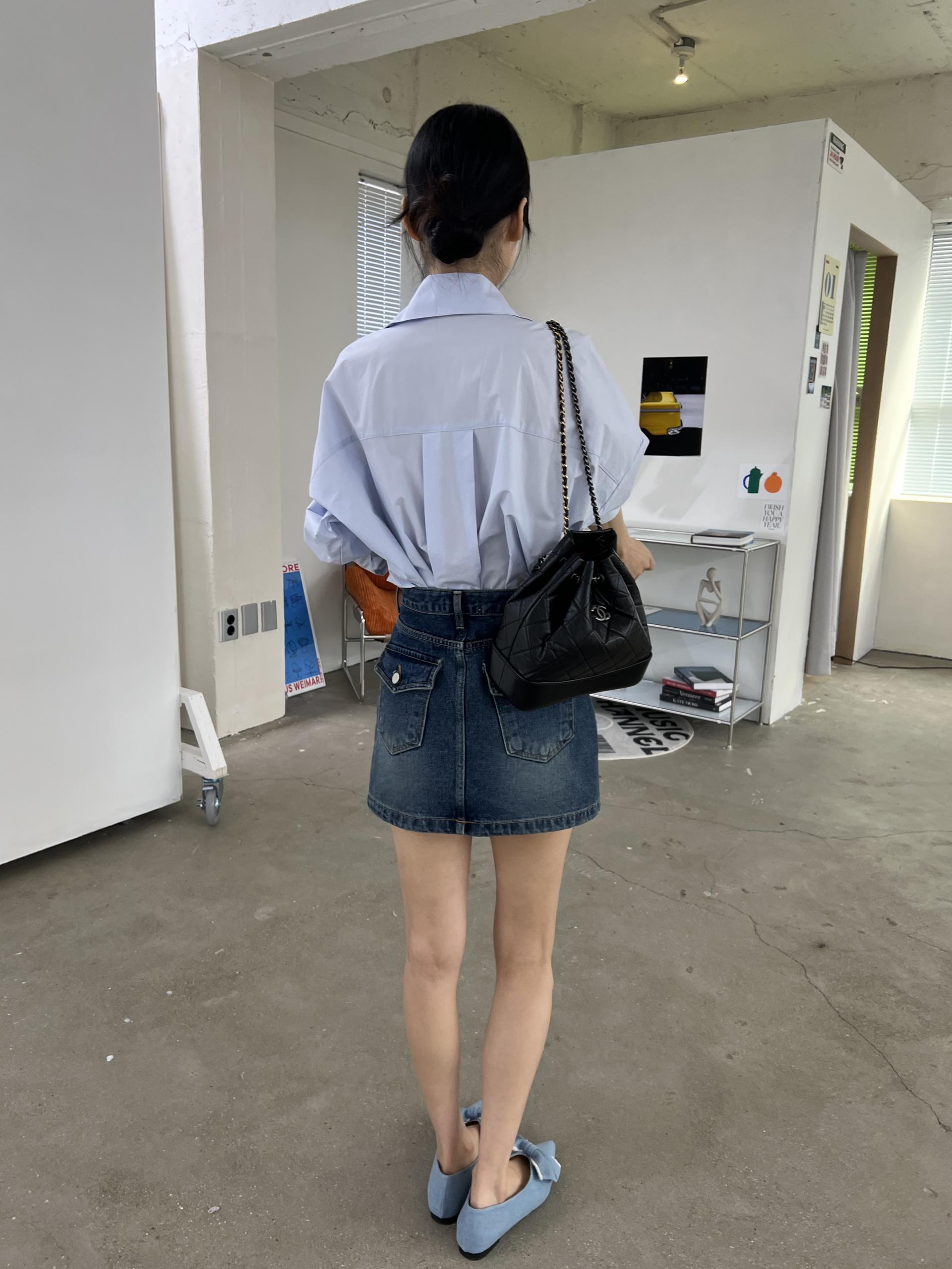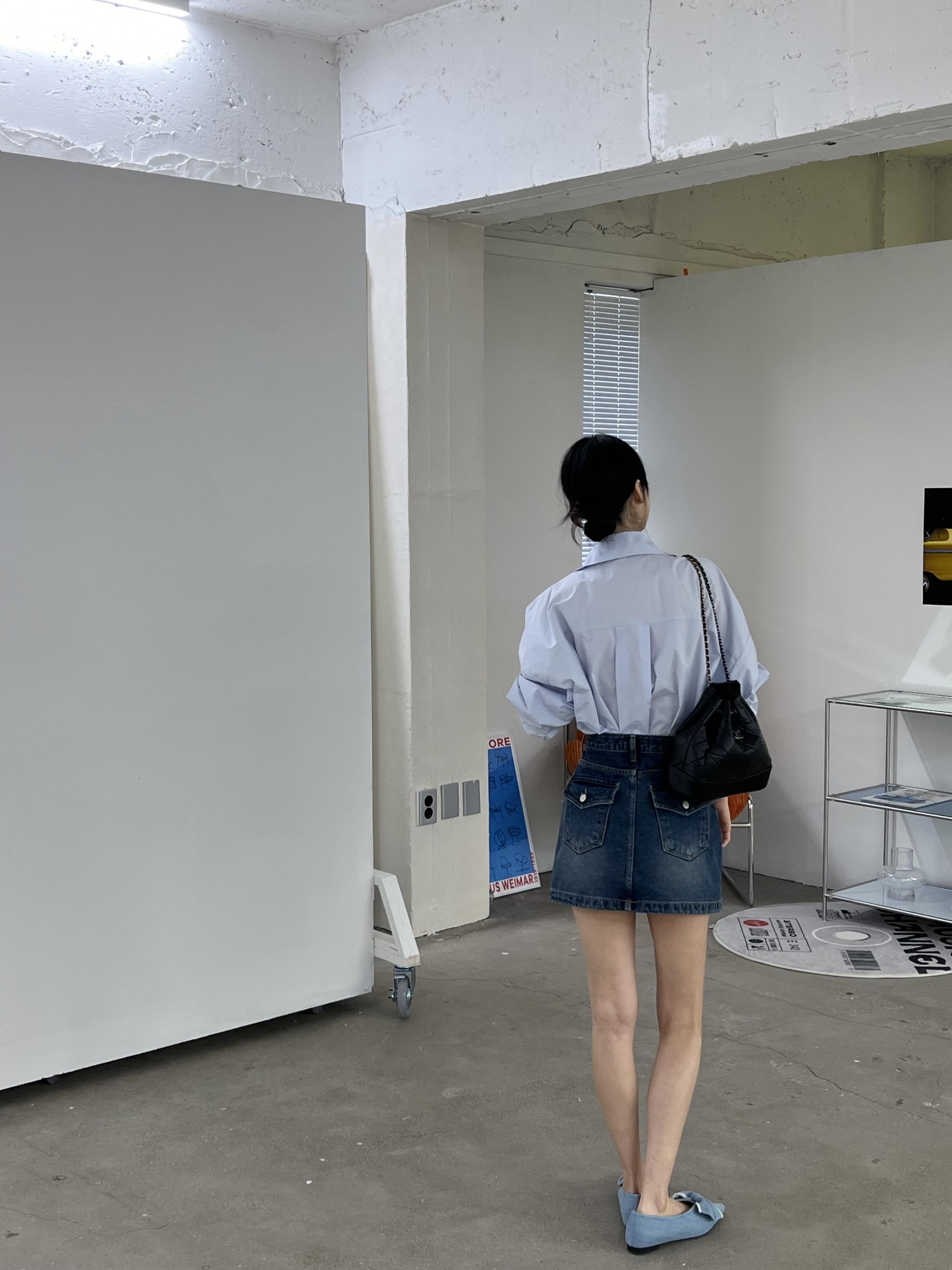유행 타지 않는 깔끔한 디자인으로 사계절 내내 입을 수 있어 활용도가 너무 좋습니다. 또, 일반 청치마와 달랐던 점은 백 포켓 디자인으로 힙이 밋밋해 보이지도 않고 뒷모습이 유독 예뻐 보인다는 점이었어요.