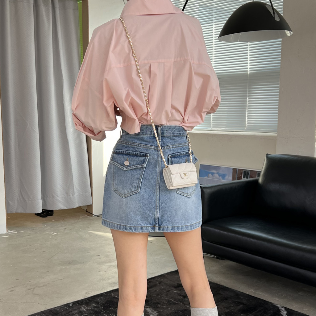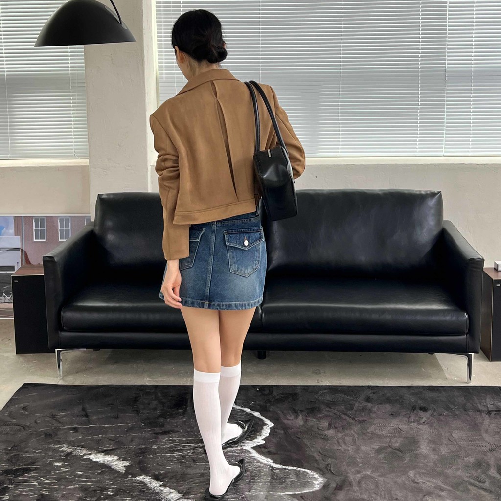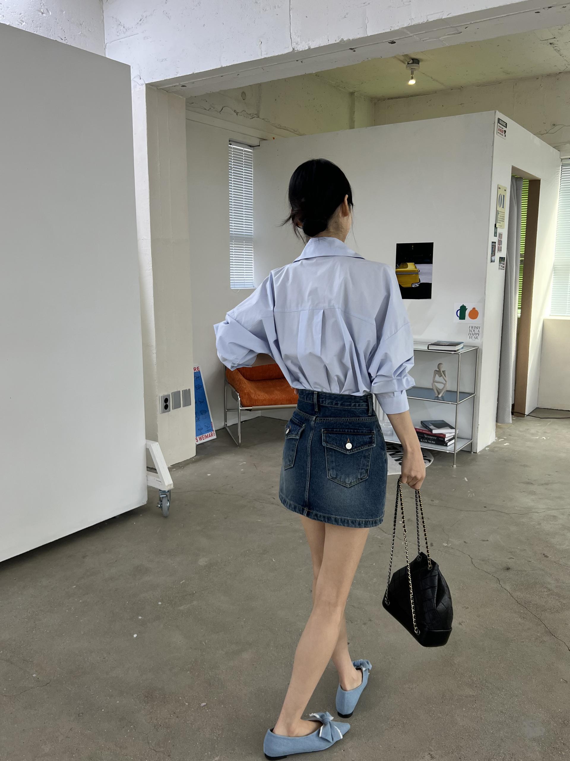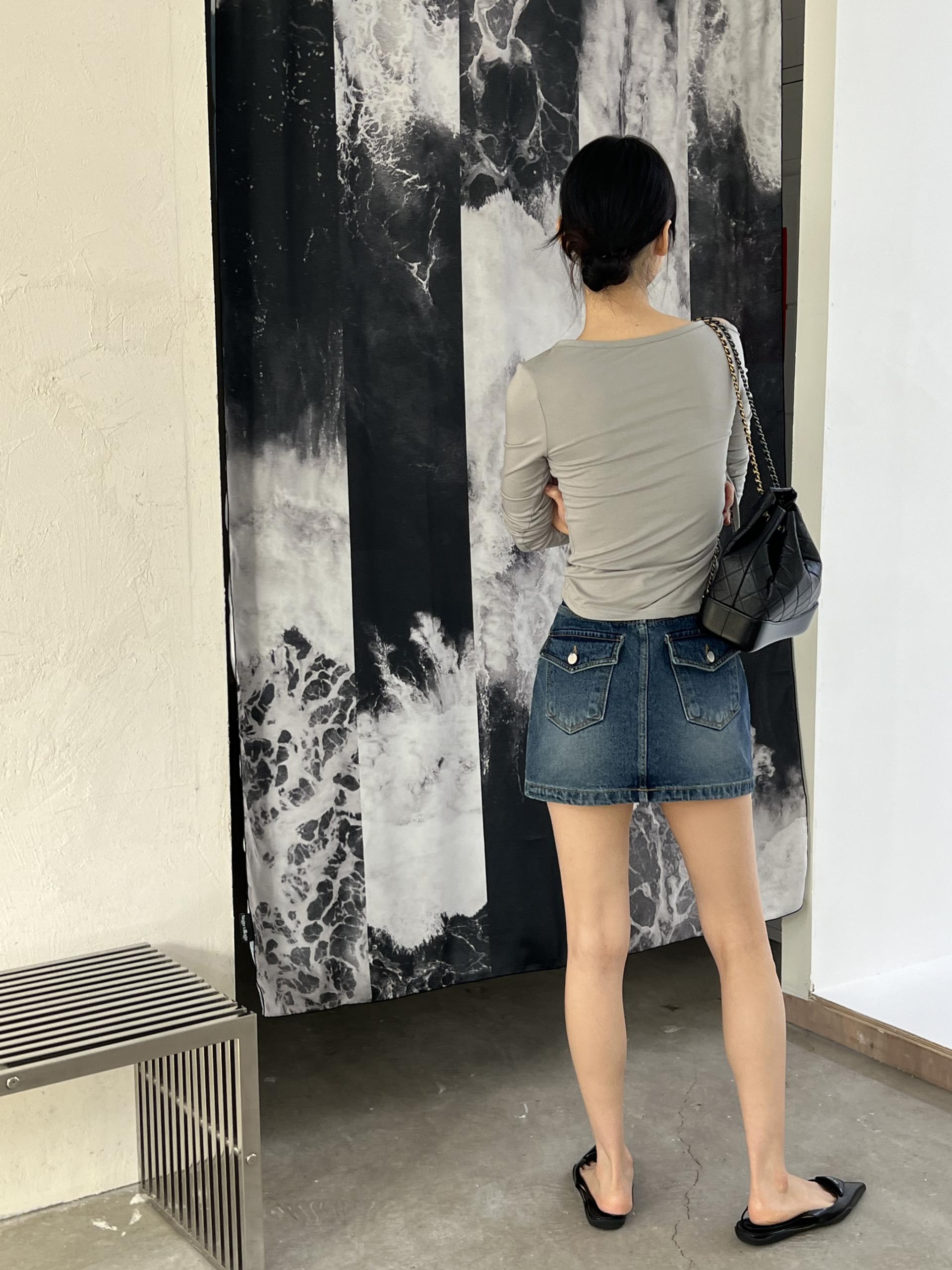 유행 타지 않는 깔끔한 디자인으로 사계절 내내 입을 수 있어 활용도가 너무 좋습니다. 또, 일반 청치마와 달랐던 점은 백 포켓 디자인으로 힙이 밋밋해 보이지도 않고 뒷모습이 유독 예뻐 보인다는 점이었어요.