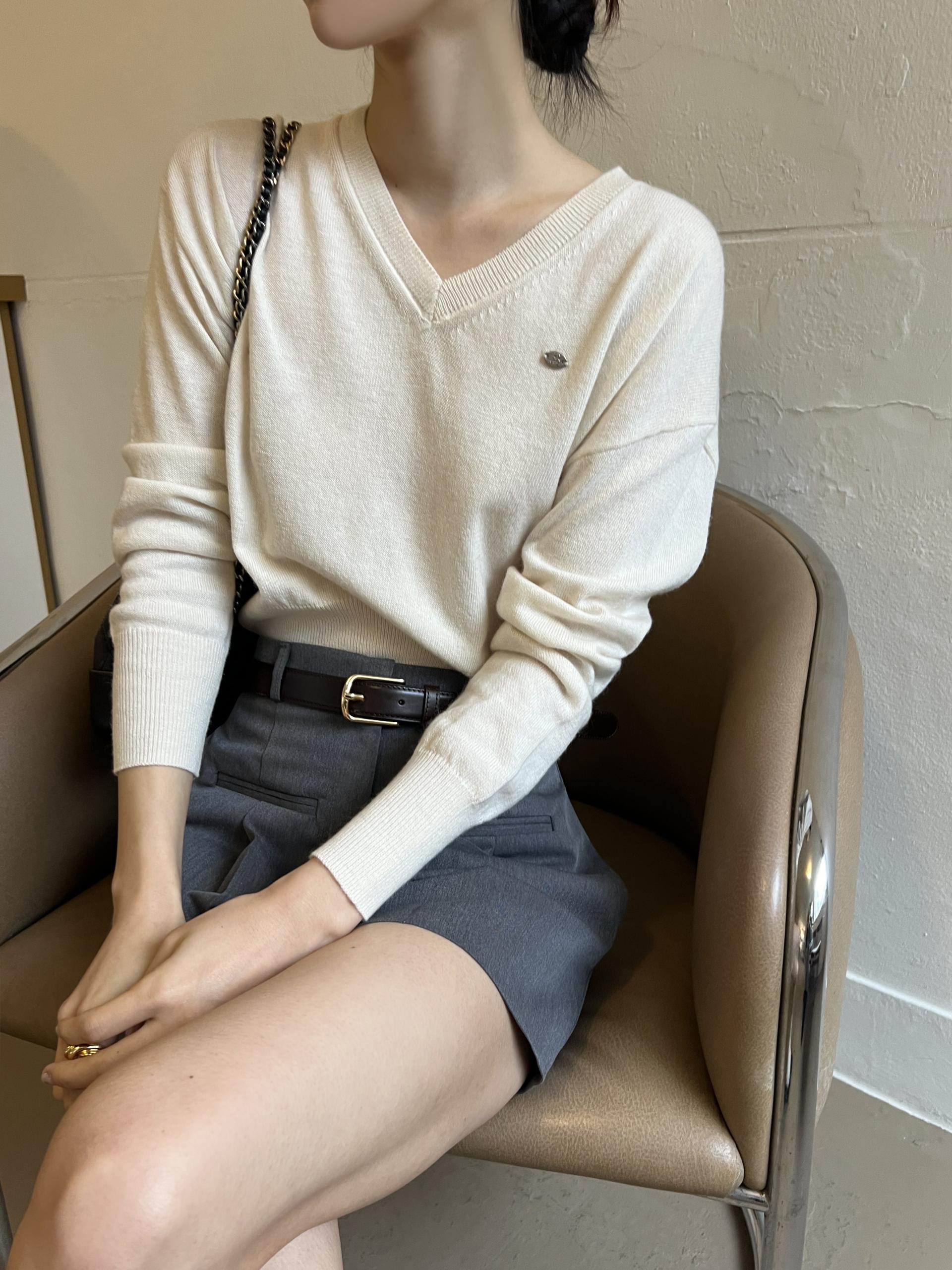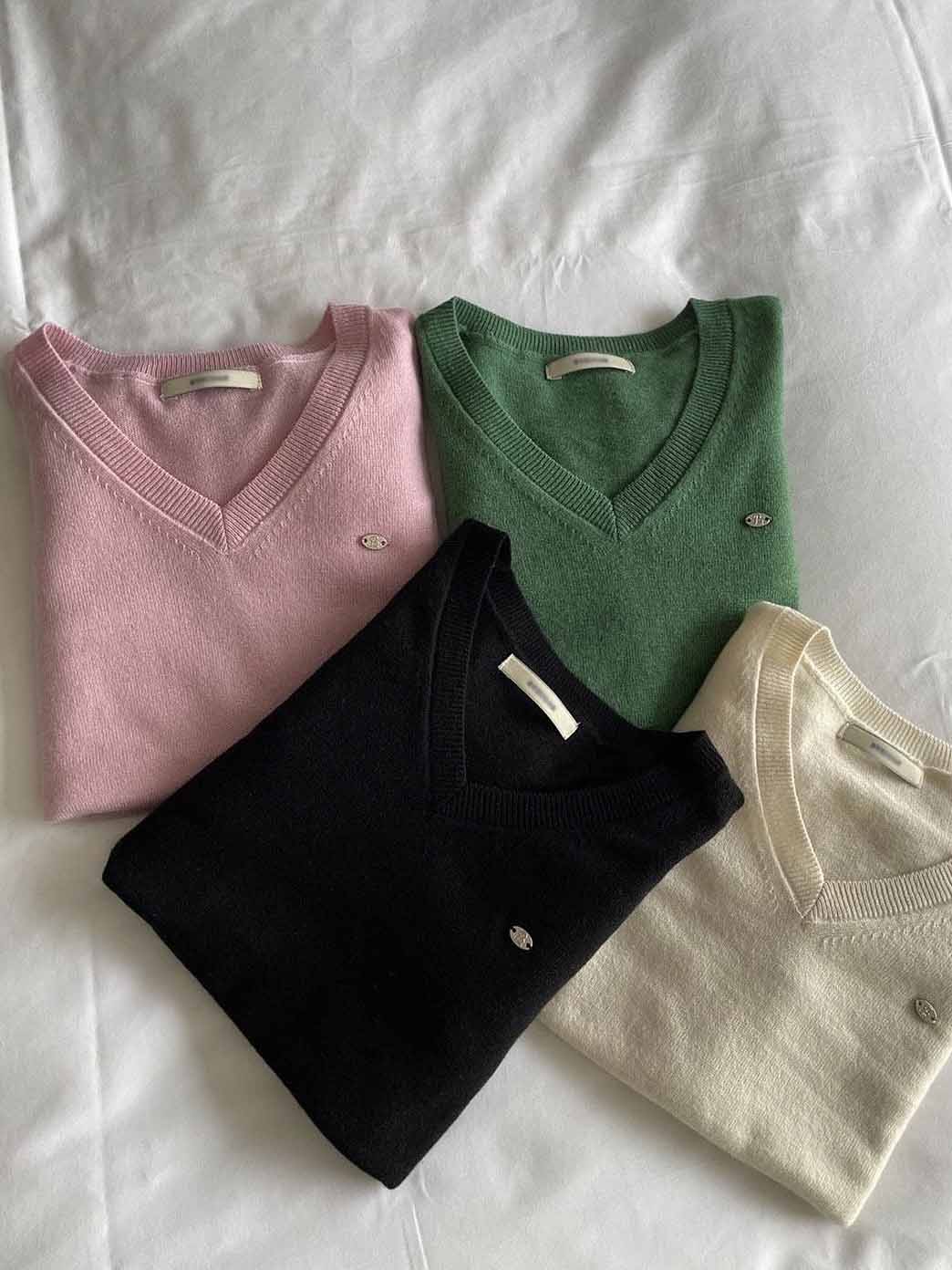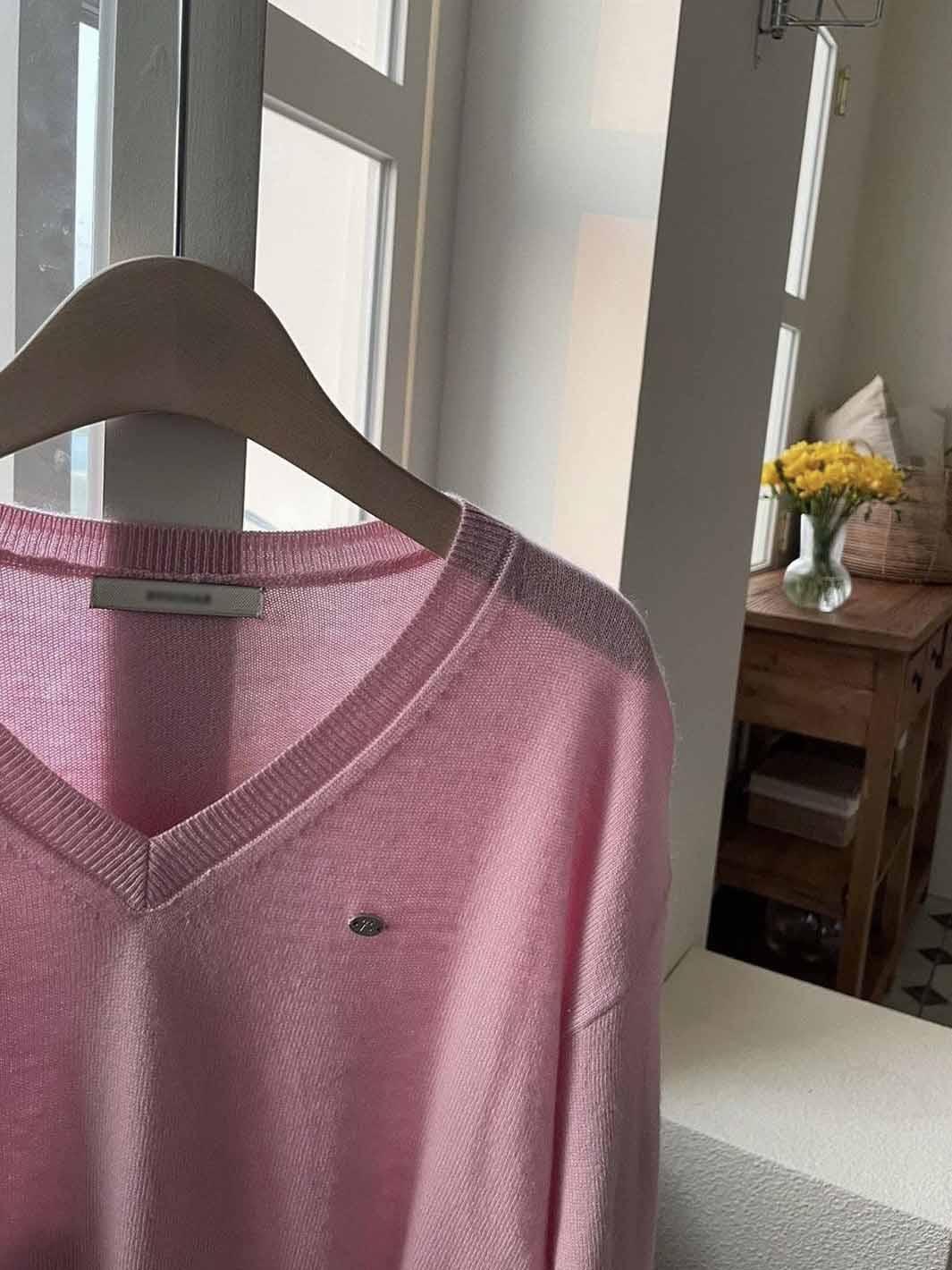 여리여리하고 부드러운 터치감의 브이넥 봄 니트입니다.
