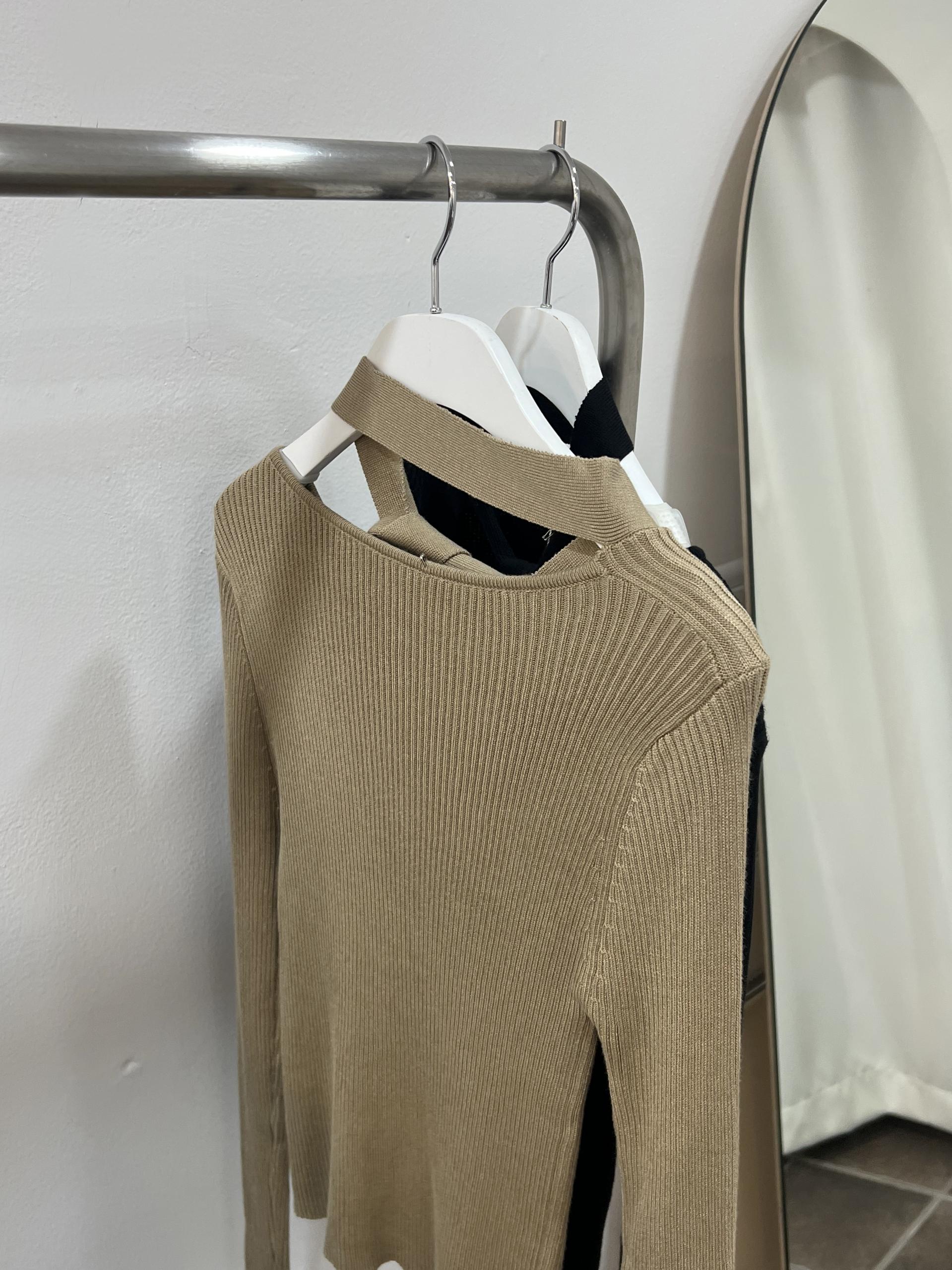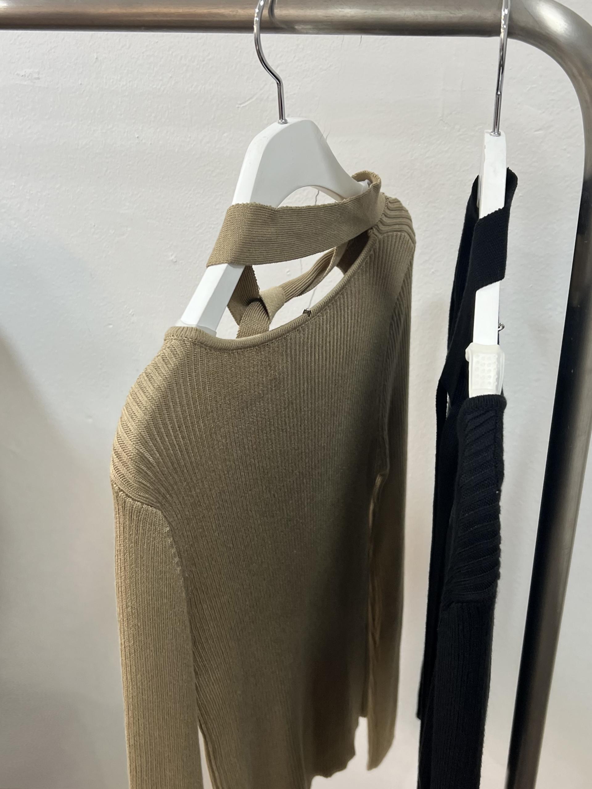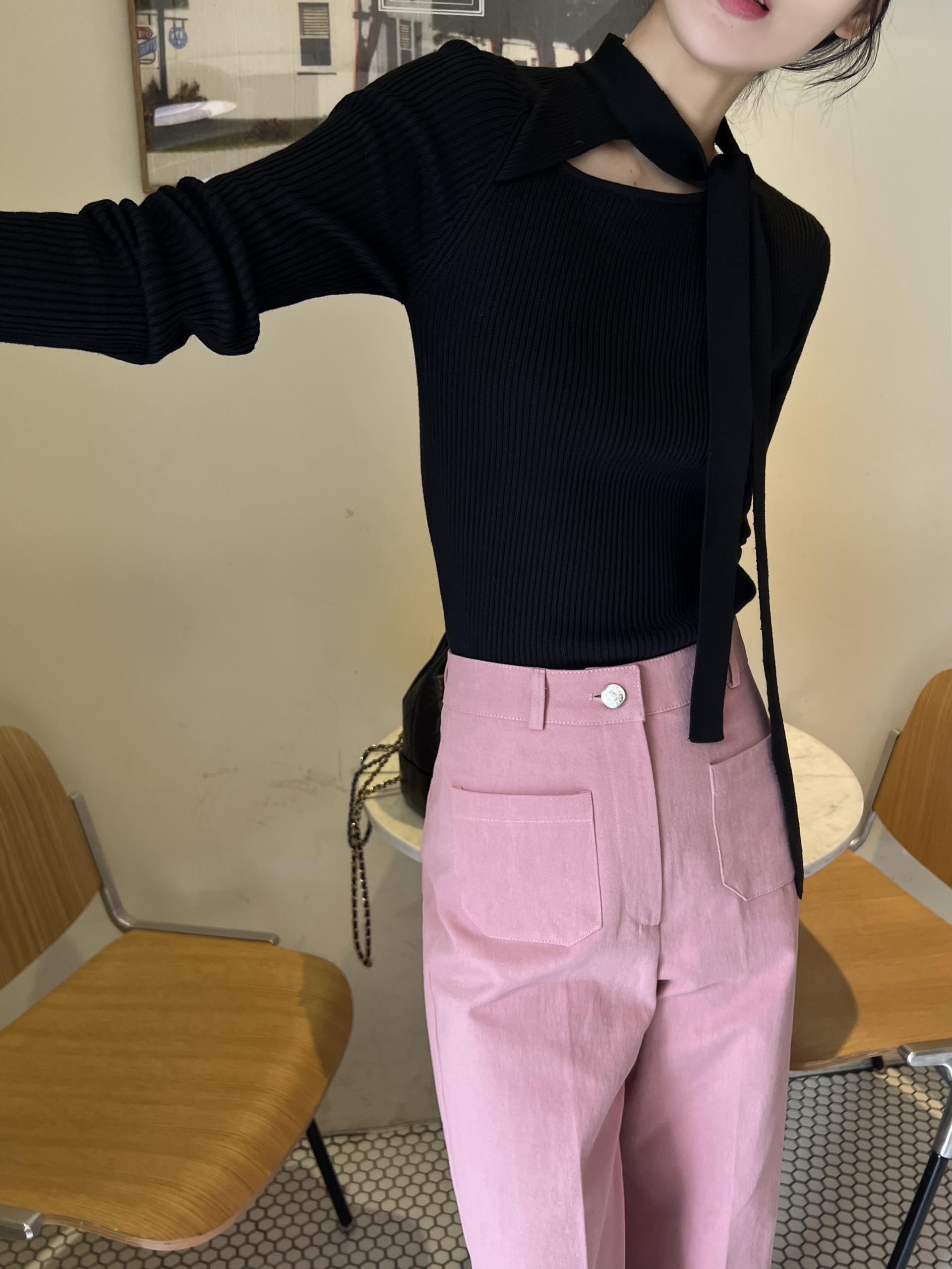 높은 텐션감으로 쫀쫀하고 슬림하게 피팅되는 타이 골지 니트입니다.