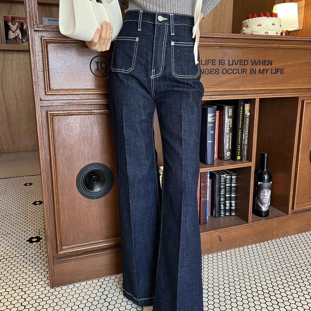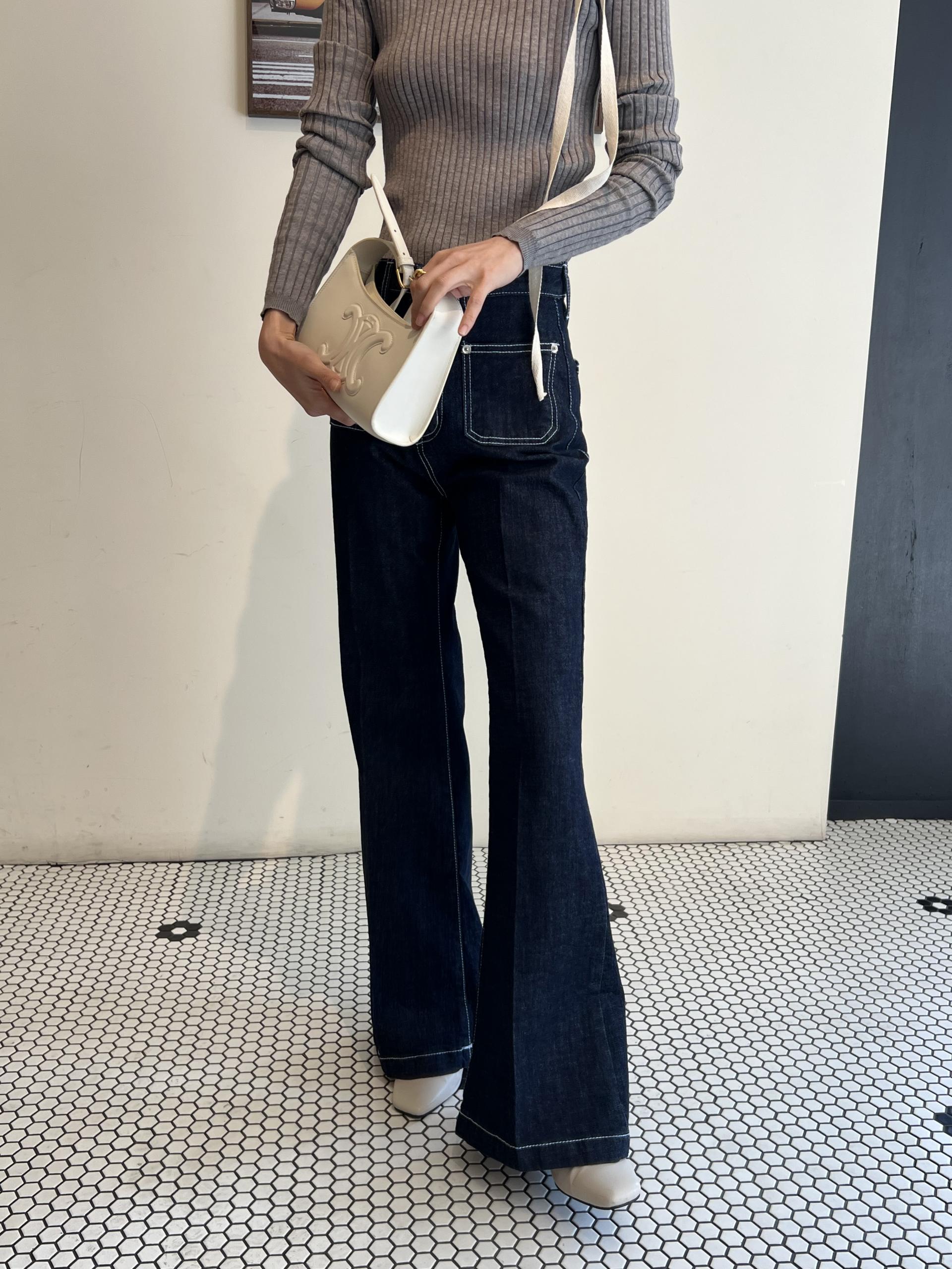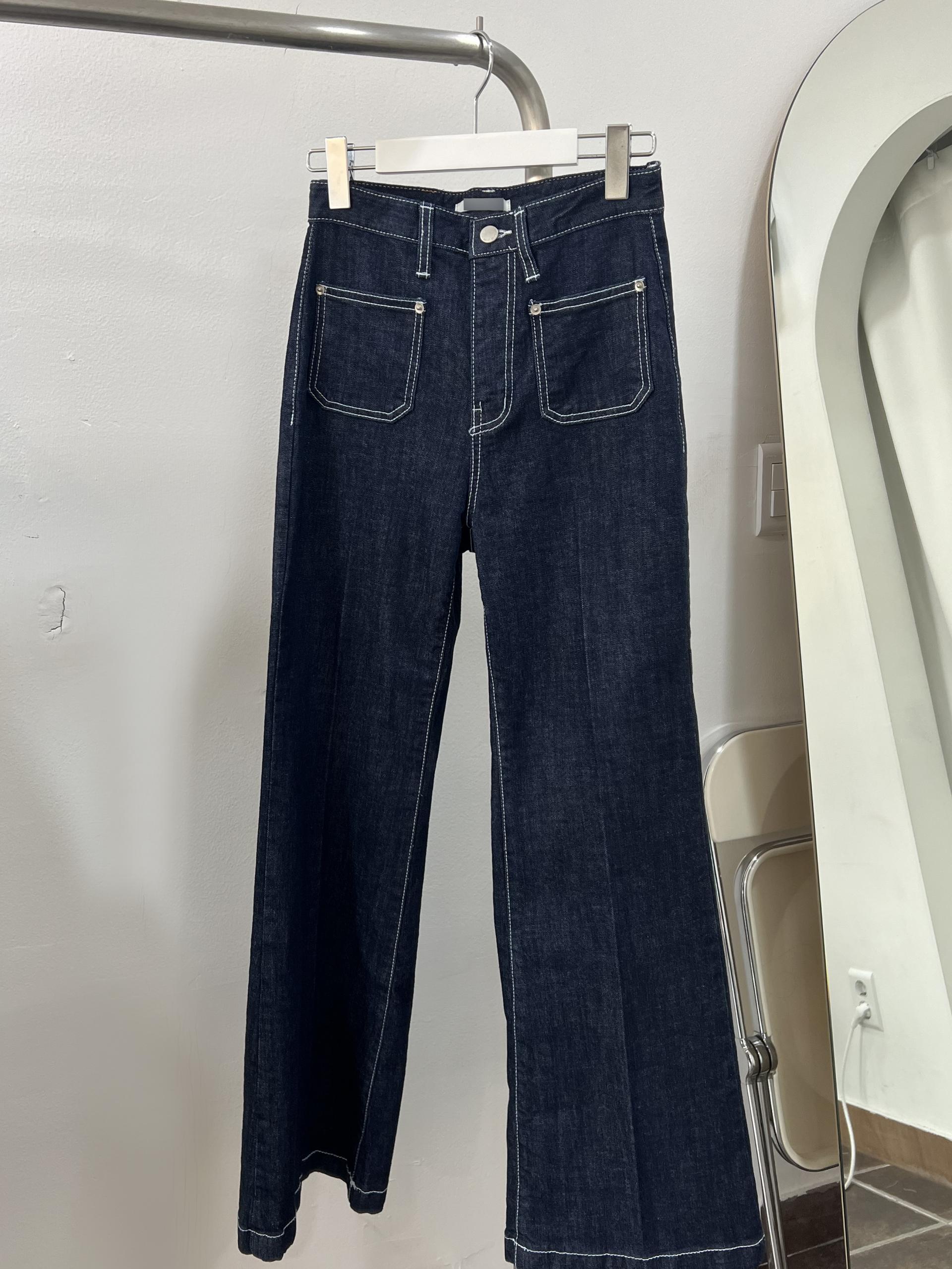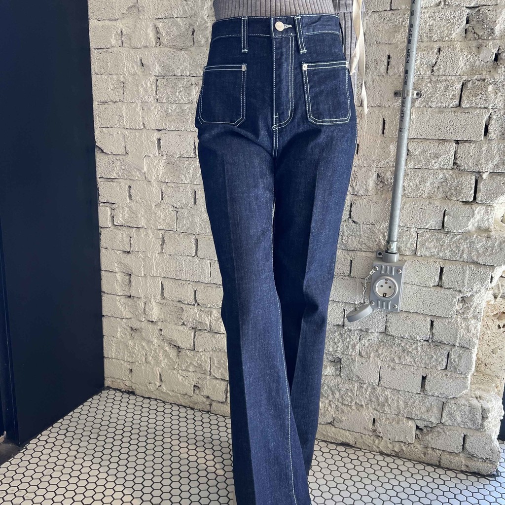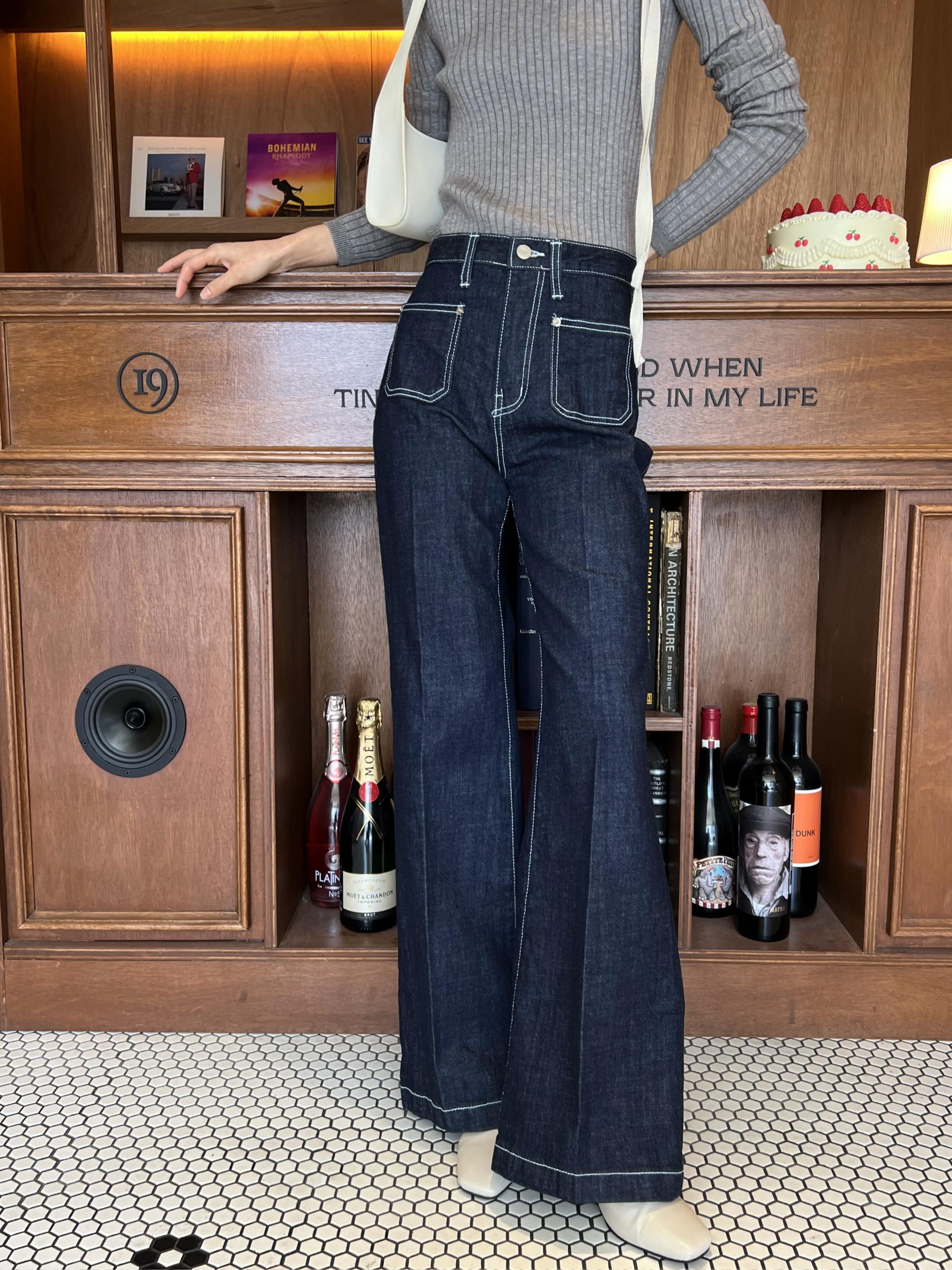 부츠컷 핏과 와이드 핏이 적절히 섞인, 완벽한 핏의 생지 데님 팬츠입니다.
