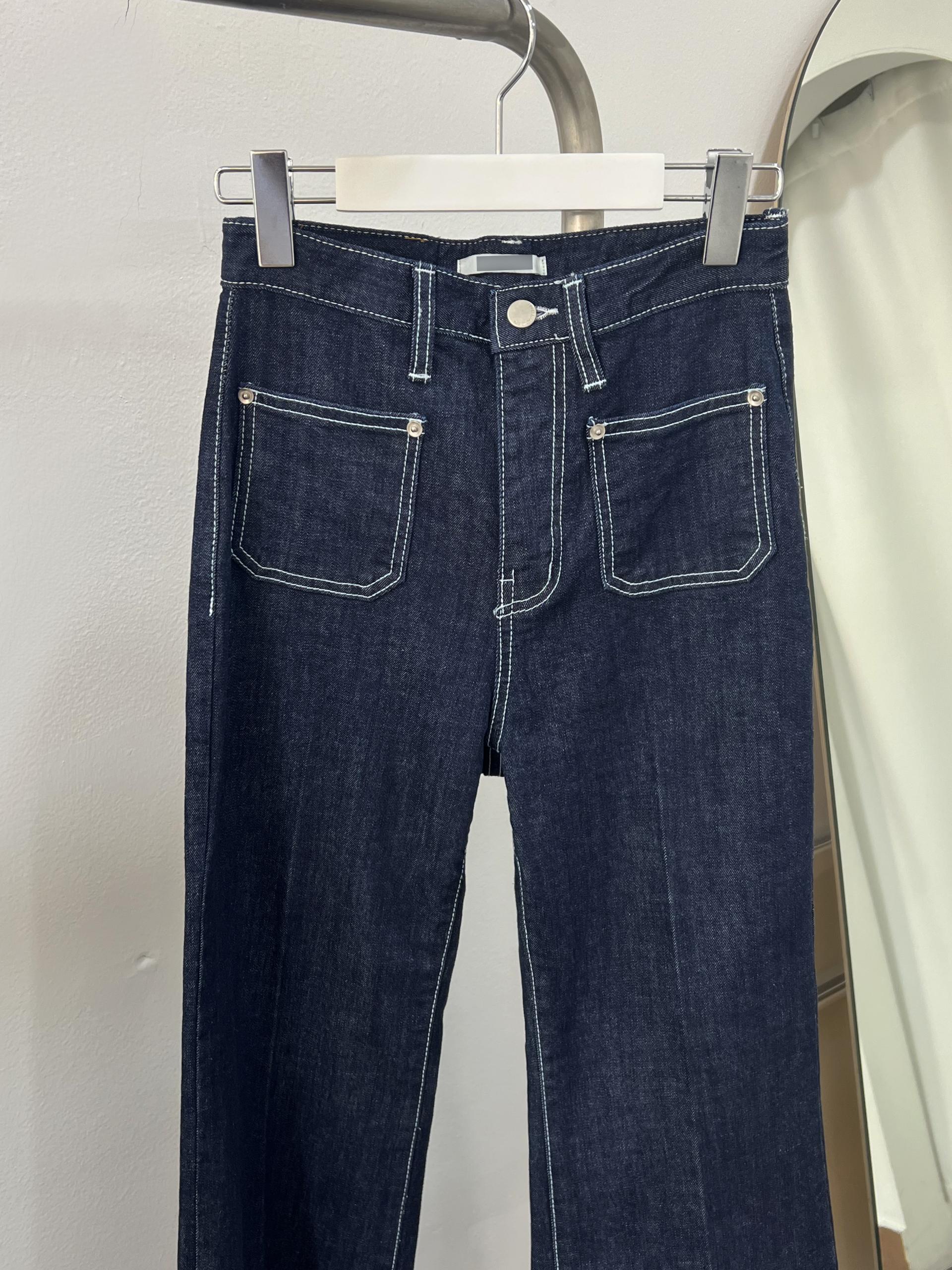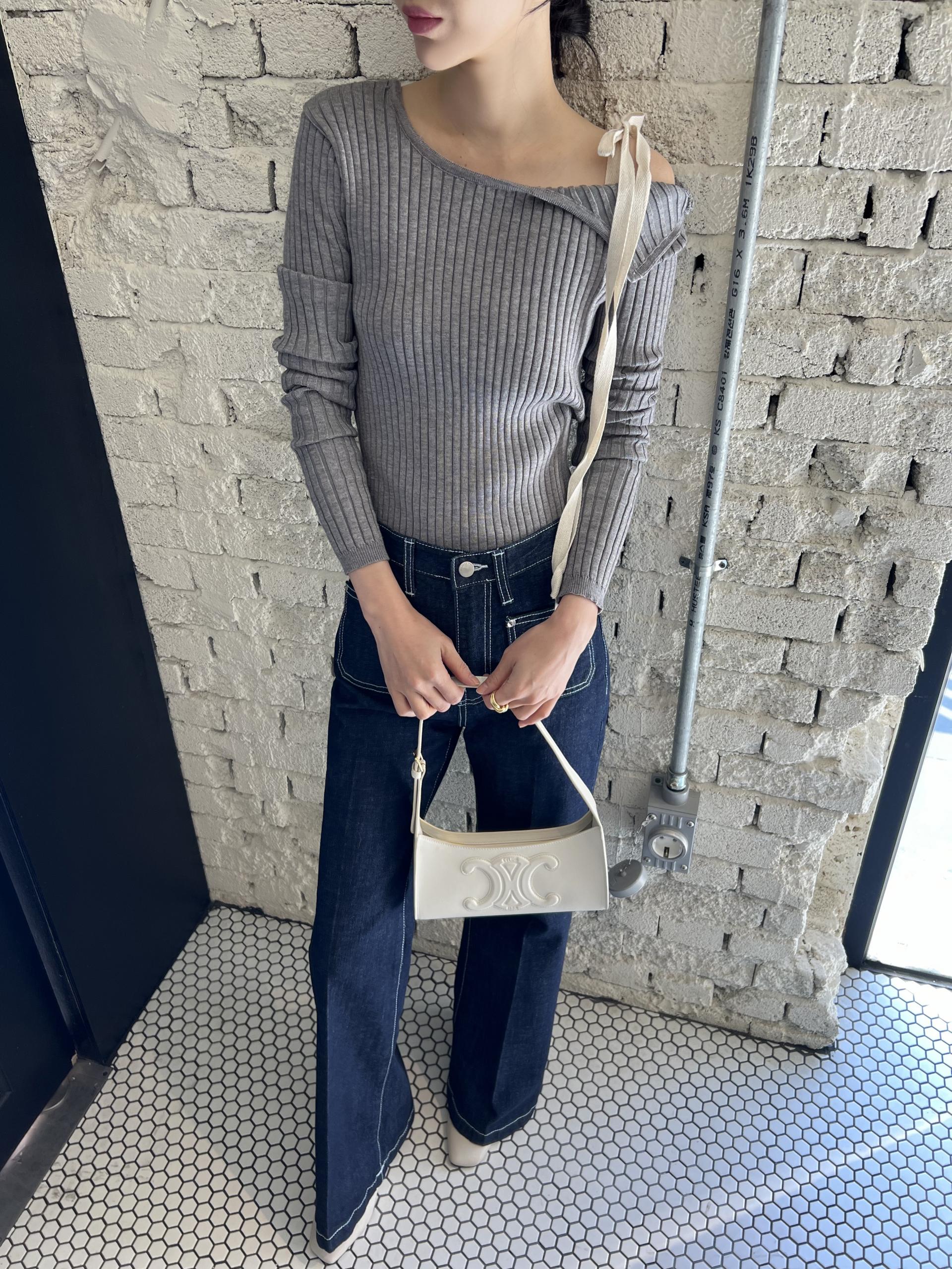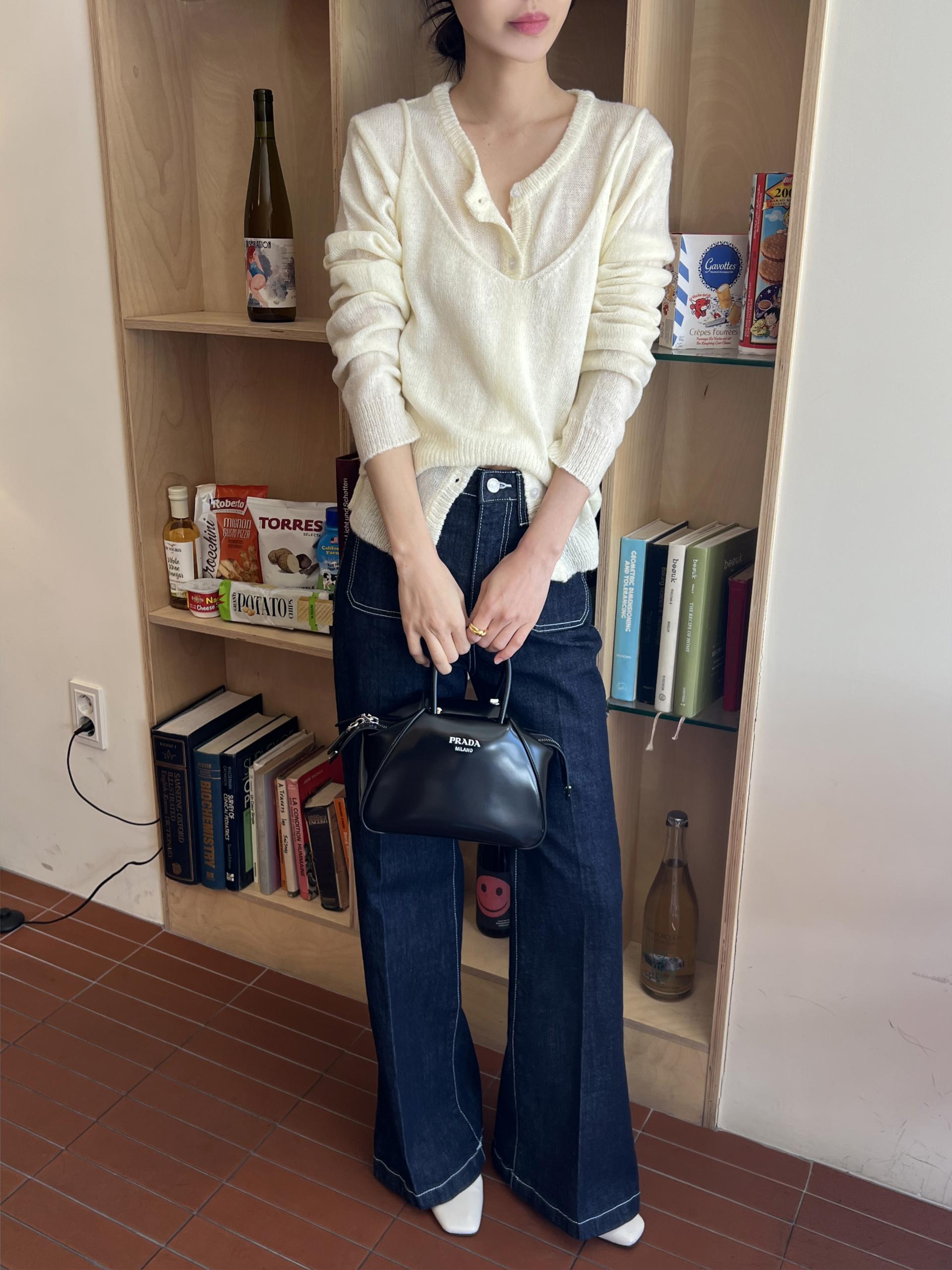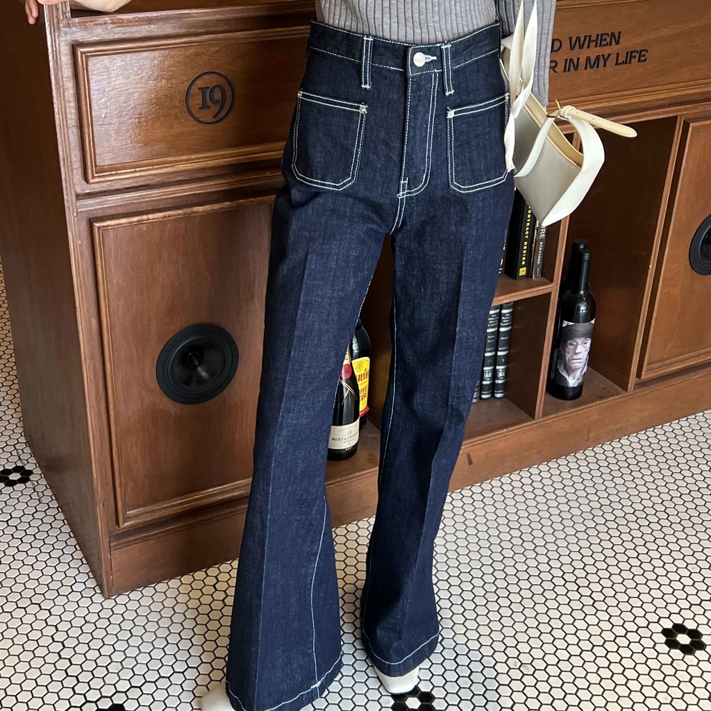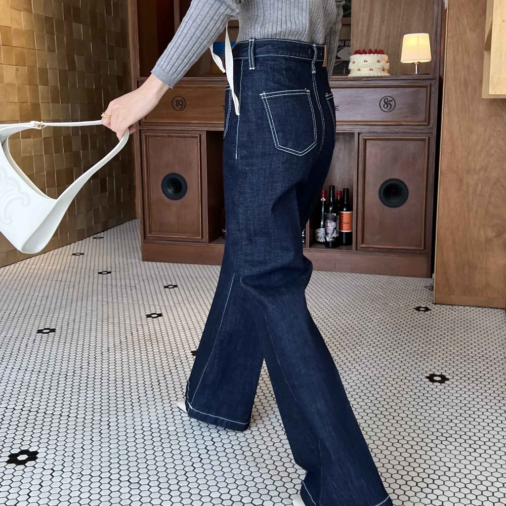 부츠컷 핏과 와이드 핏이 적절히 섞인, 완벽한 핏의 생지 데님 팬츠입니다.