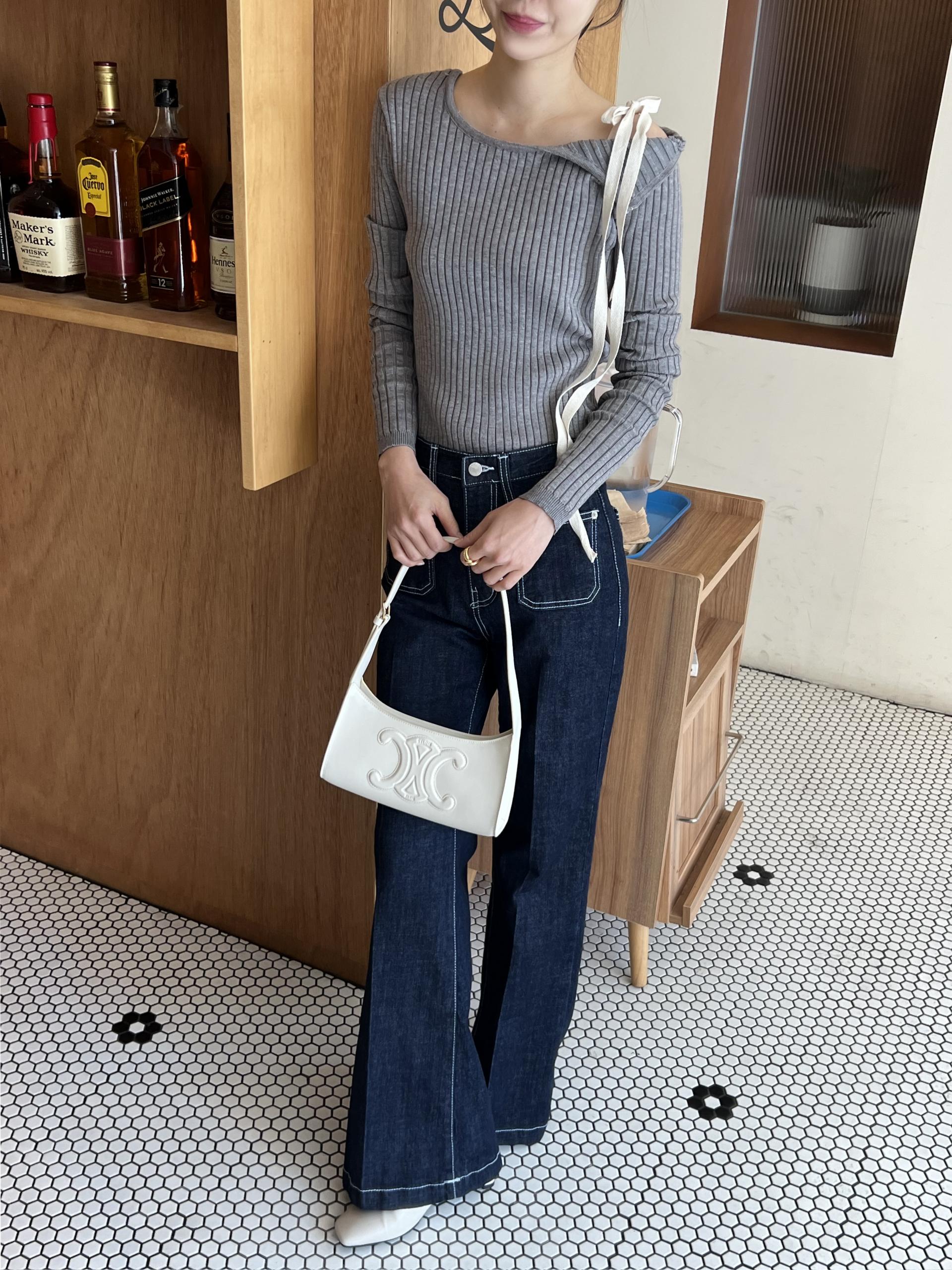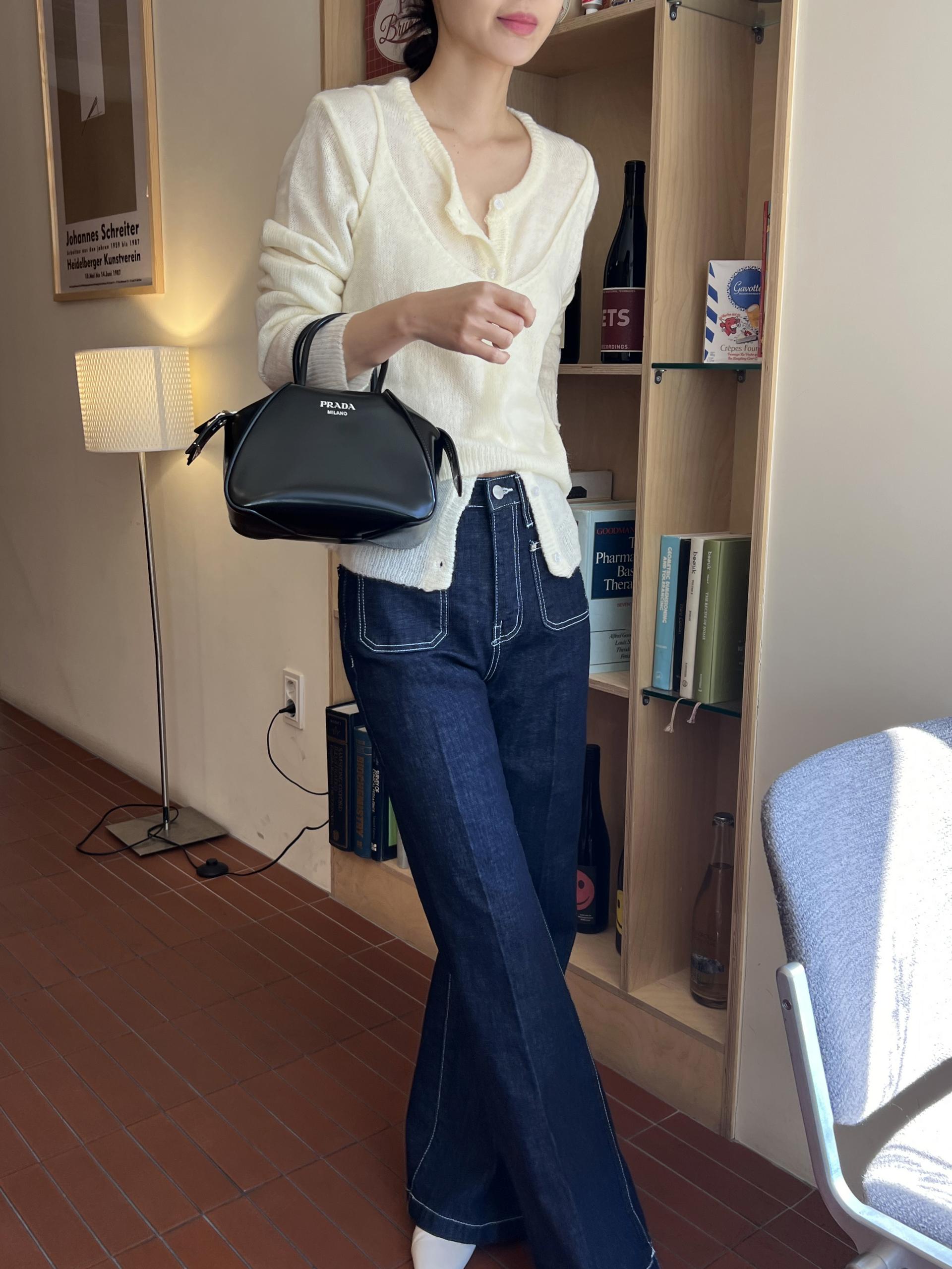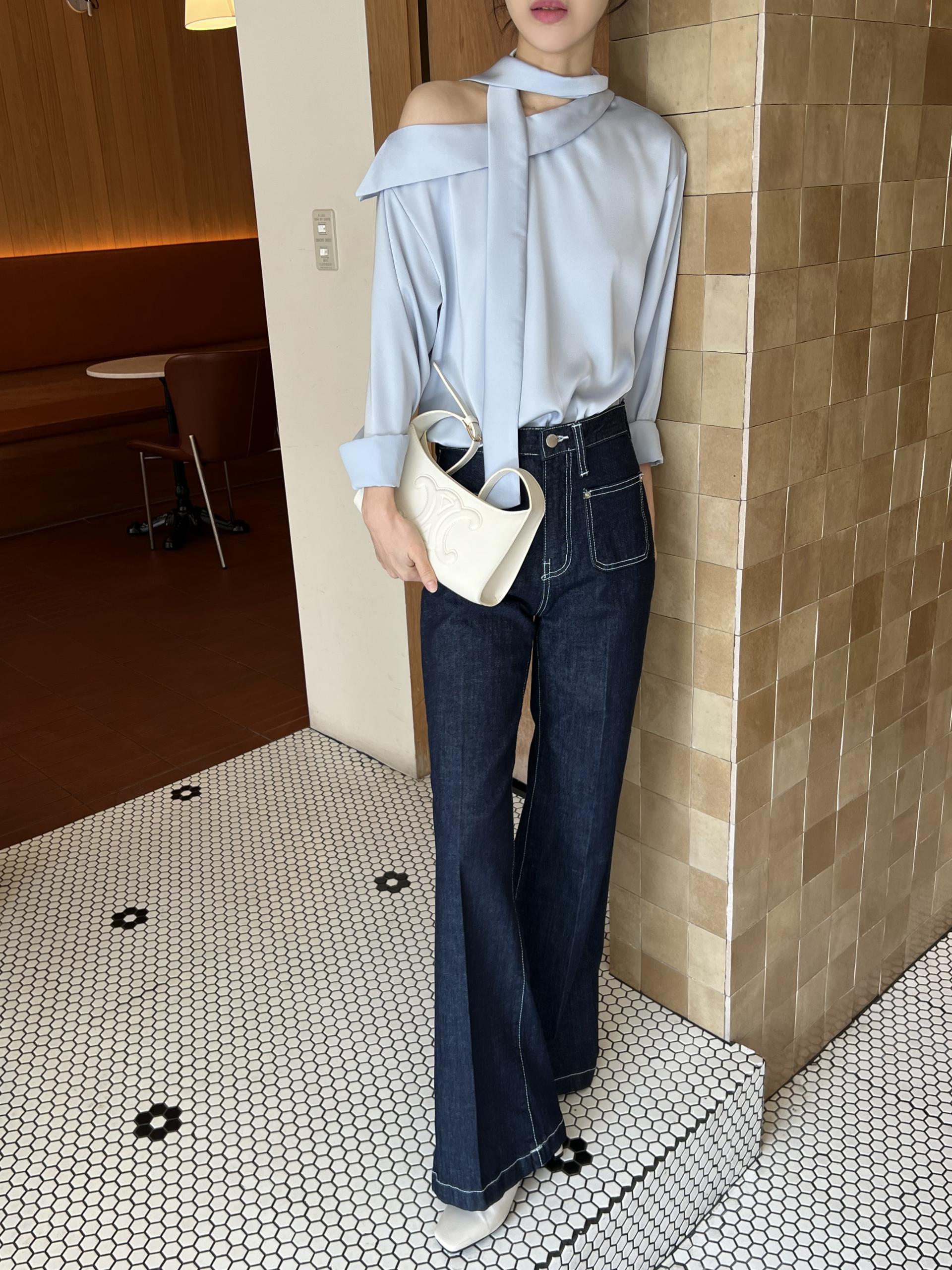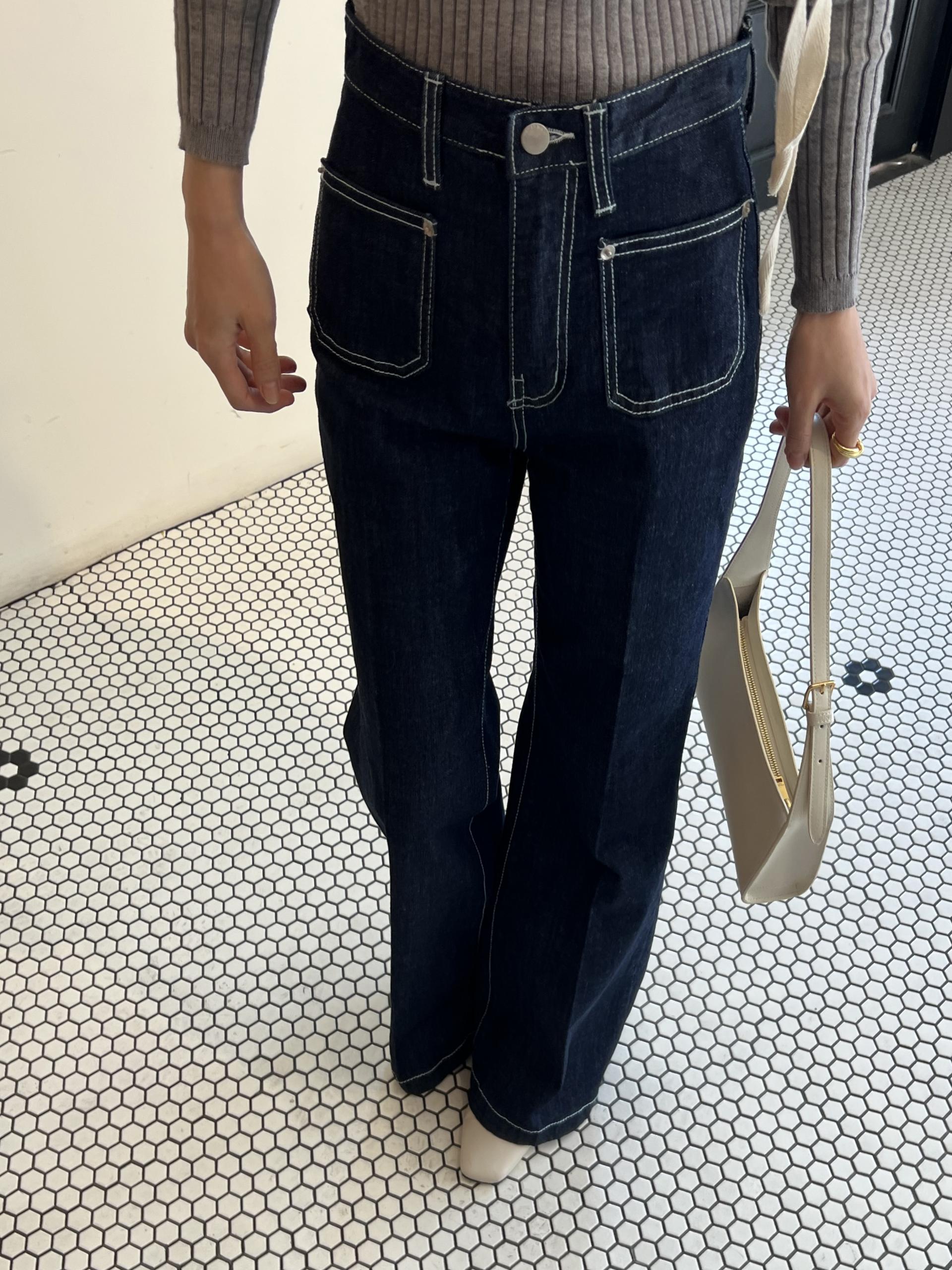 밑위가 긴 정석의 하이웨스트에 롱 기장으로 다리가 굉장히 길어 보였고, 타이트한 부츠컷도 통이 큰 와이드도 아닌 중간 정도의 핏이라 날씬해 보이면서도 편하고, 데일리하게 입을 수 있어 좋았어요.