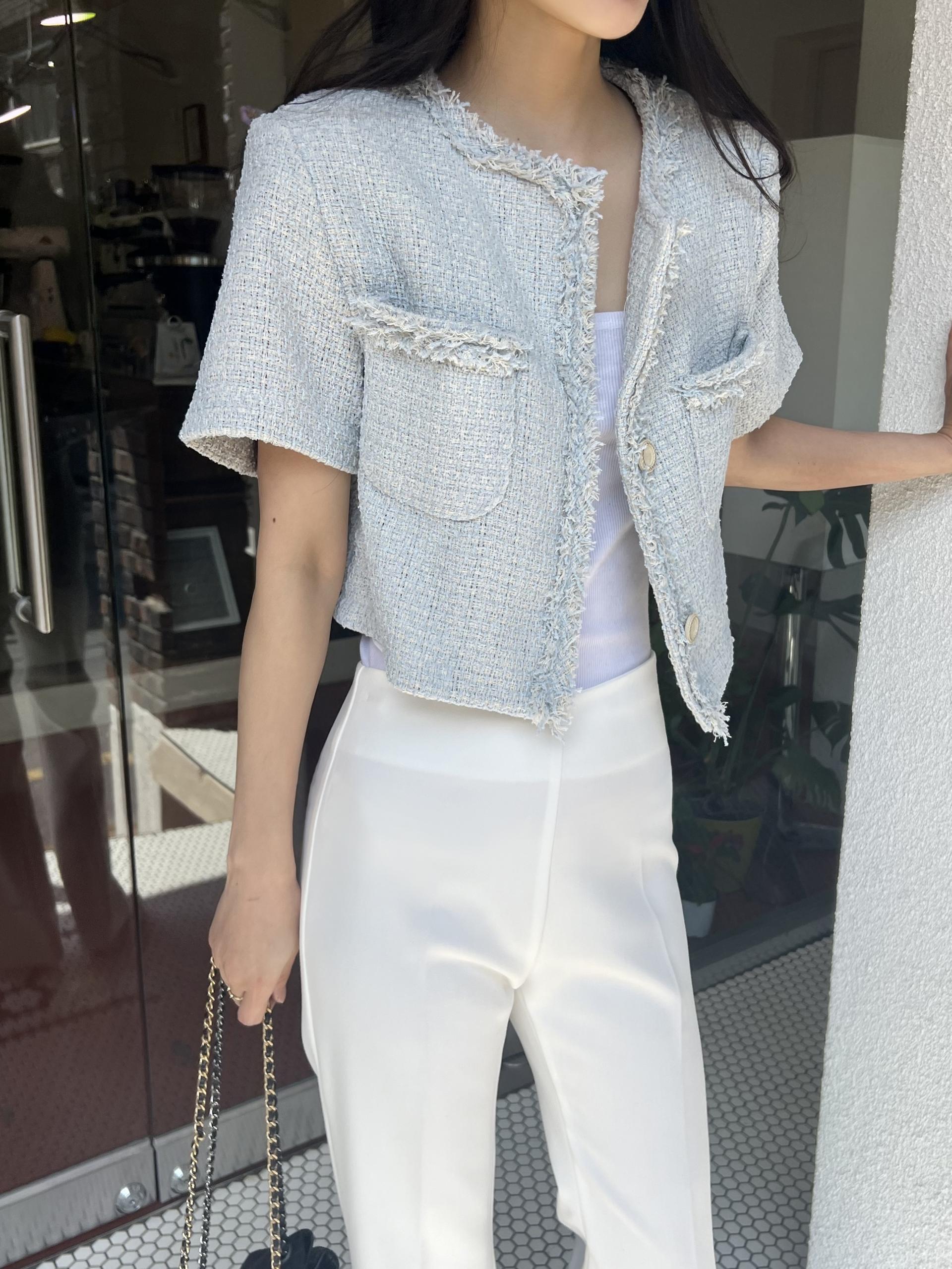 너무 얇지 않은 두께라 화이트를 착용했을 때도 부담스럽지 않아 좋았고, 찰랑이면서 탄탄하게 잡아주는 원단감으로 봄, 여름 시즌 내내 활용하기 좋을 거예요.