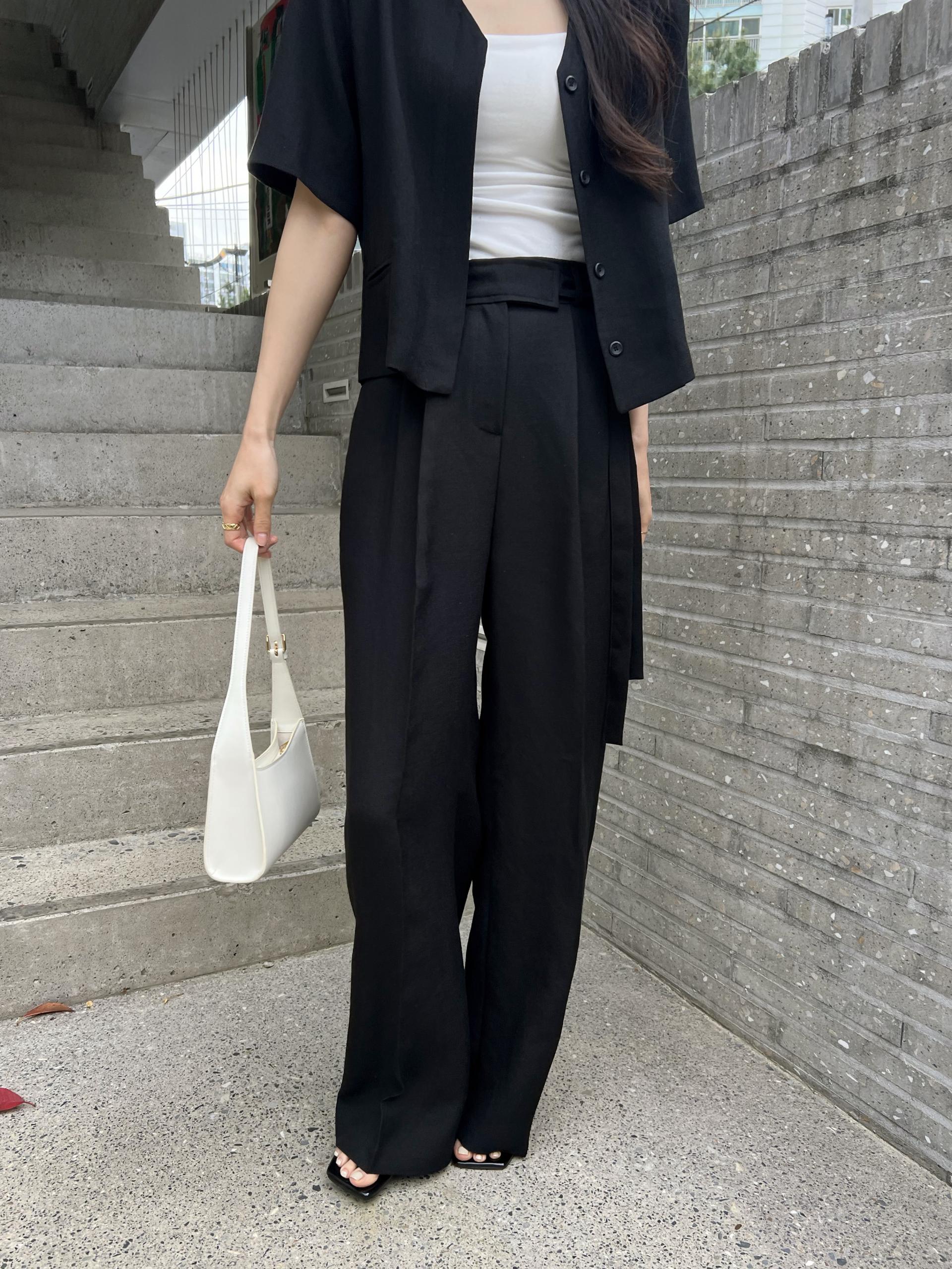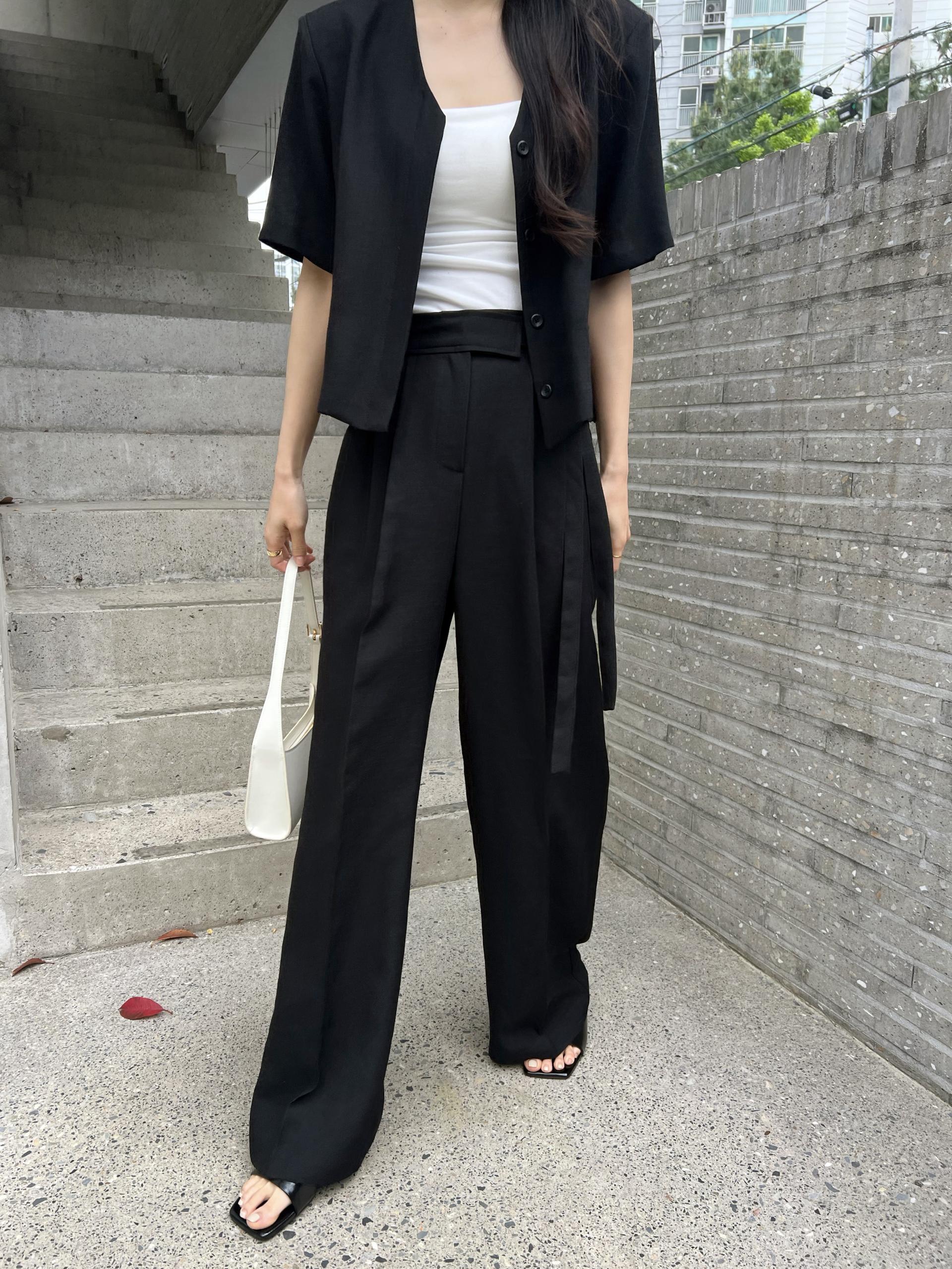 심플하고 세련된 무드의 린넨 와이드 슬랙스입니다.