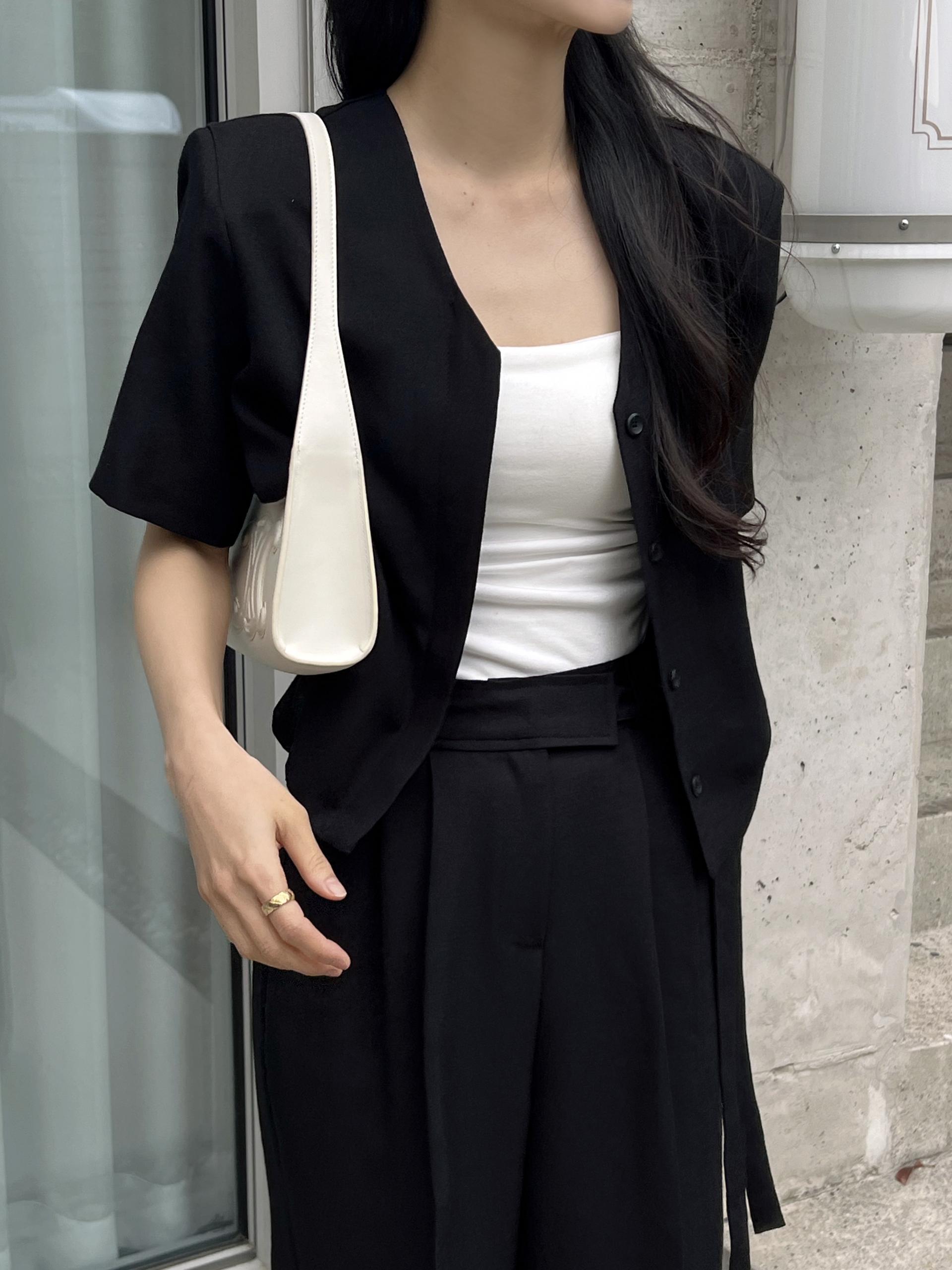 한여름까지 시원하게 착용 가능하며, 투피스 한 벌로 입으면 근사하면서 코디하기도 쉬워 투피스로 입어보시길 추천해요. 무지에 심플한 디자인이라 단품 활용도도 아주 좋습니다.