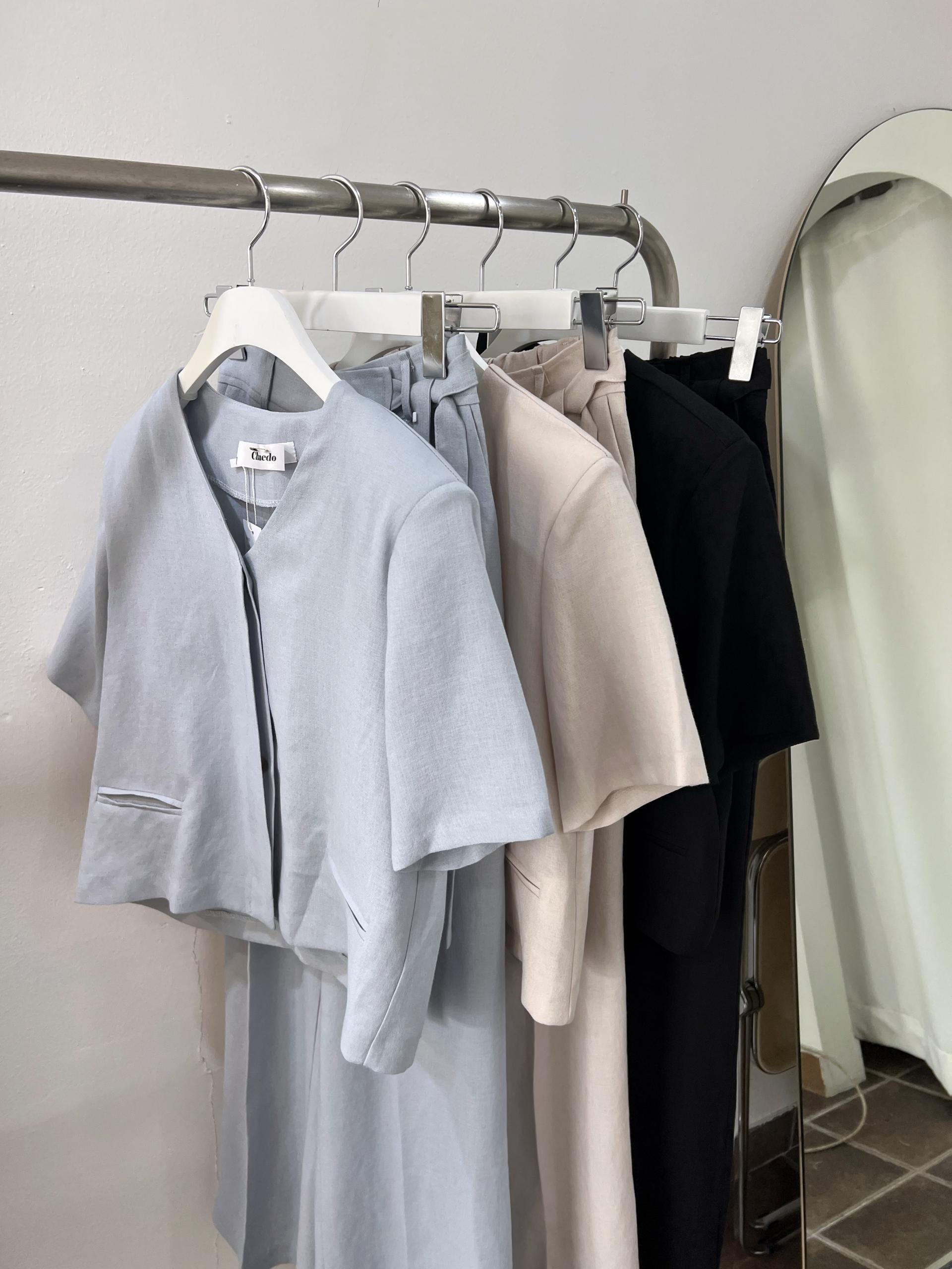 린넨에 폴리 혼방으로 아주 가볍고 시원하면서 린넨의 단점인 구김이 어느 정도 보완되며, 소재 강도가 아주 좋습니다. 여름 시즌 내내 데일리룩부터 출근룩, 하객룩까지 다양하게 활용해 보세요.