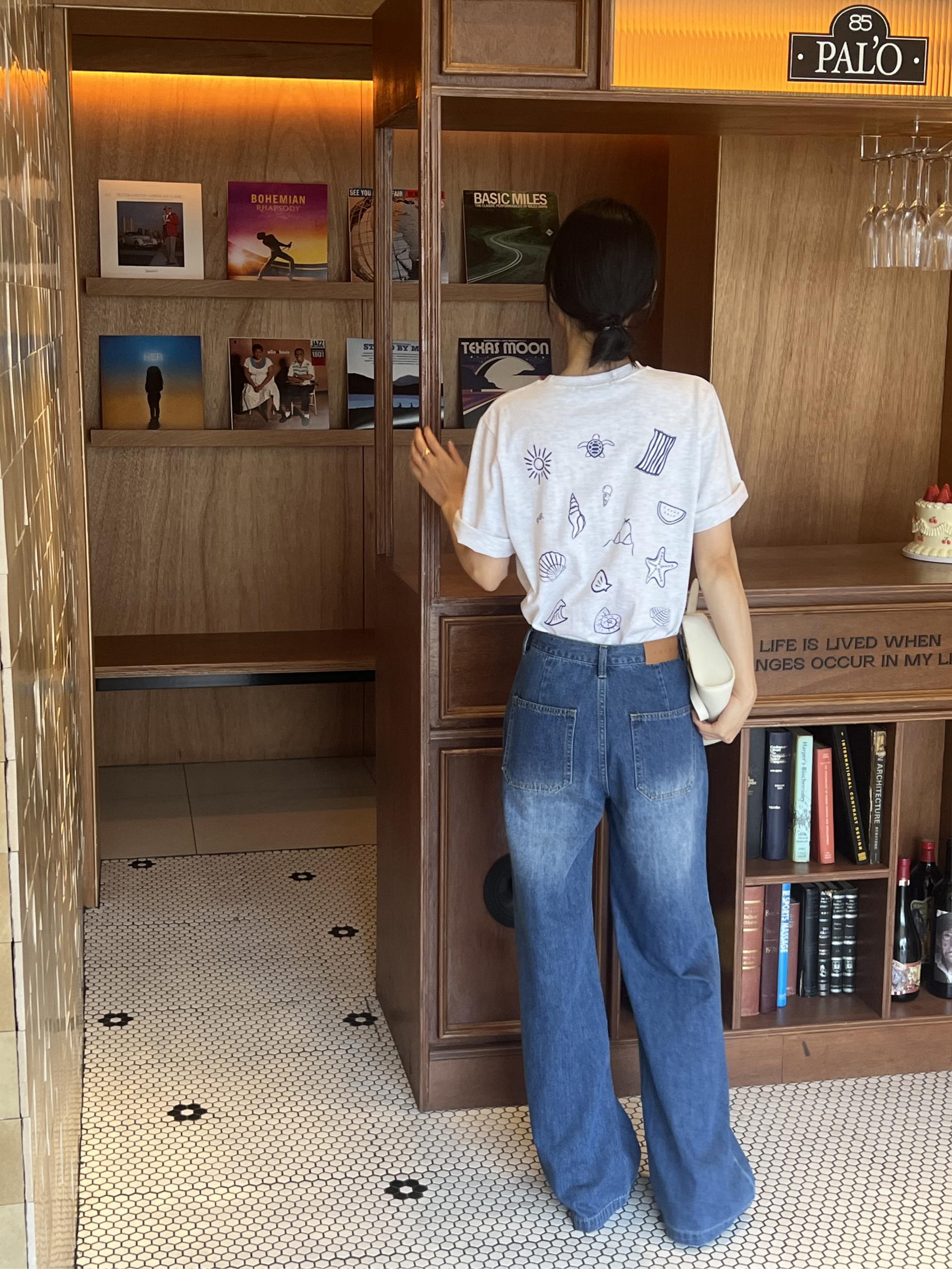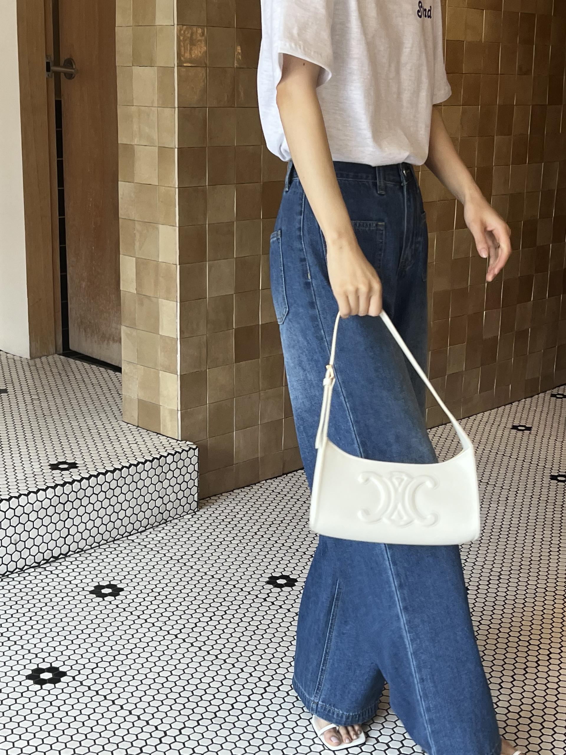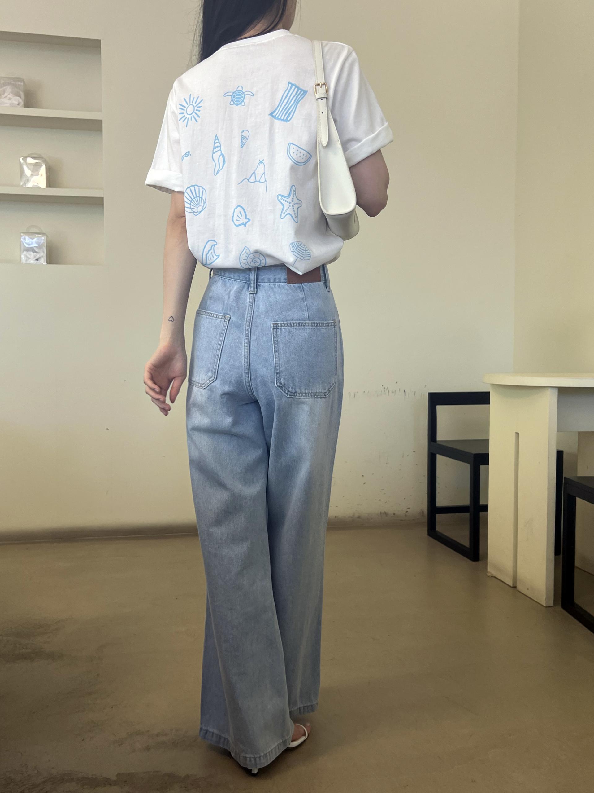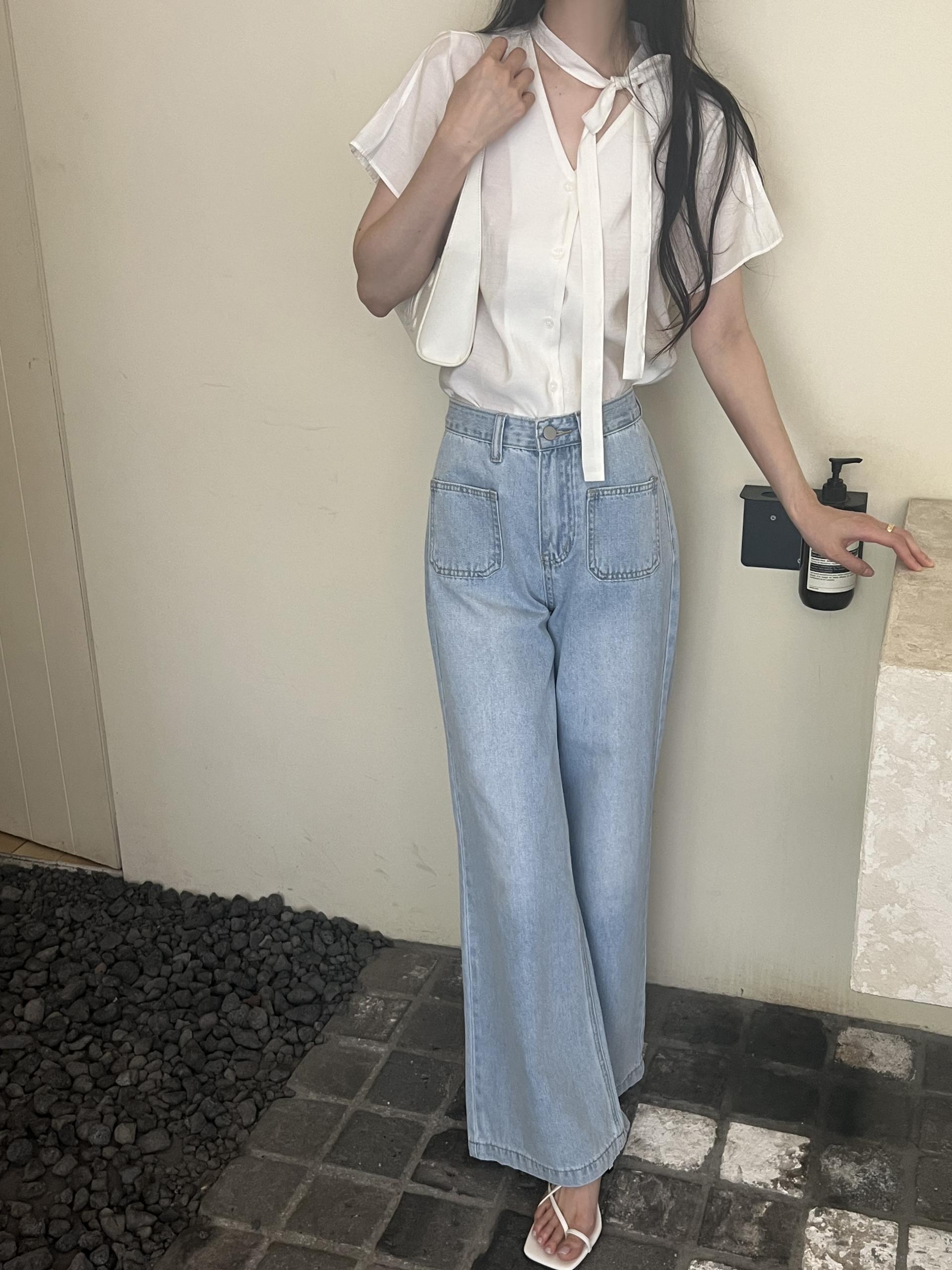 적당한 통으로 날씬하게 떨어지는 세미 와이드핏의 여름용 데님 팬츠입니다.