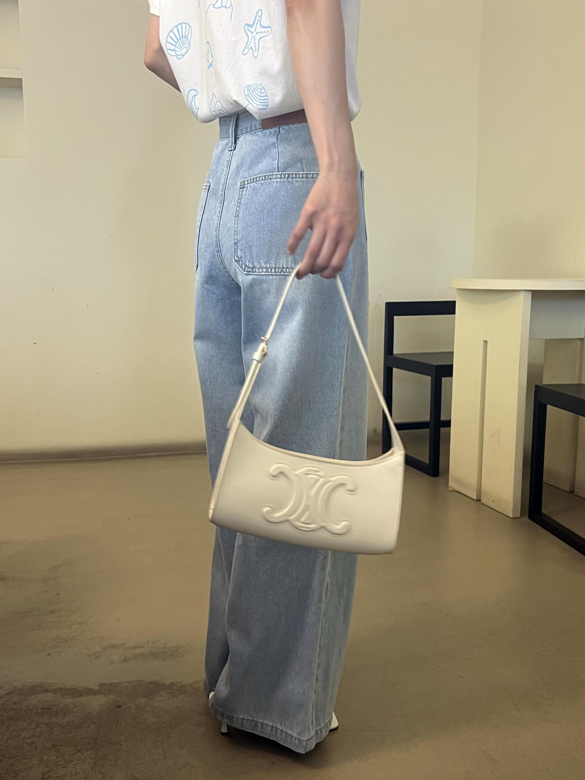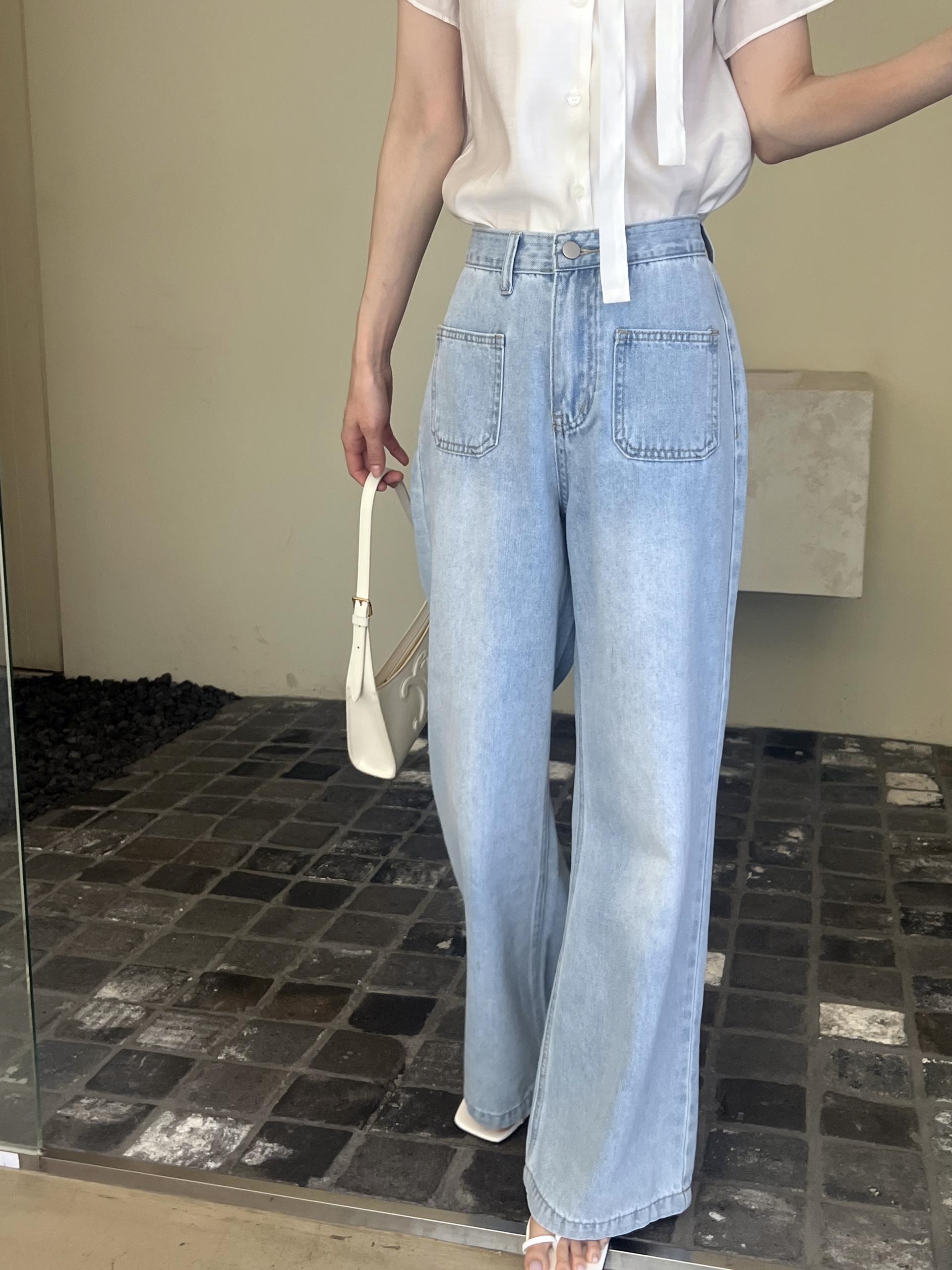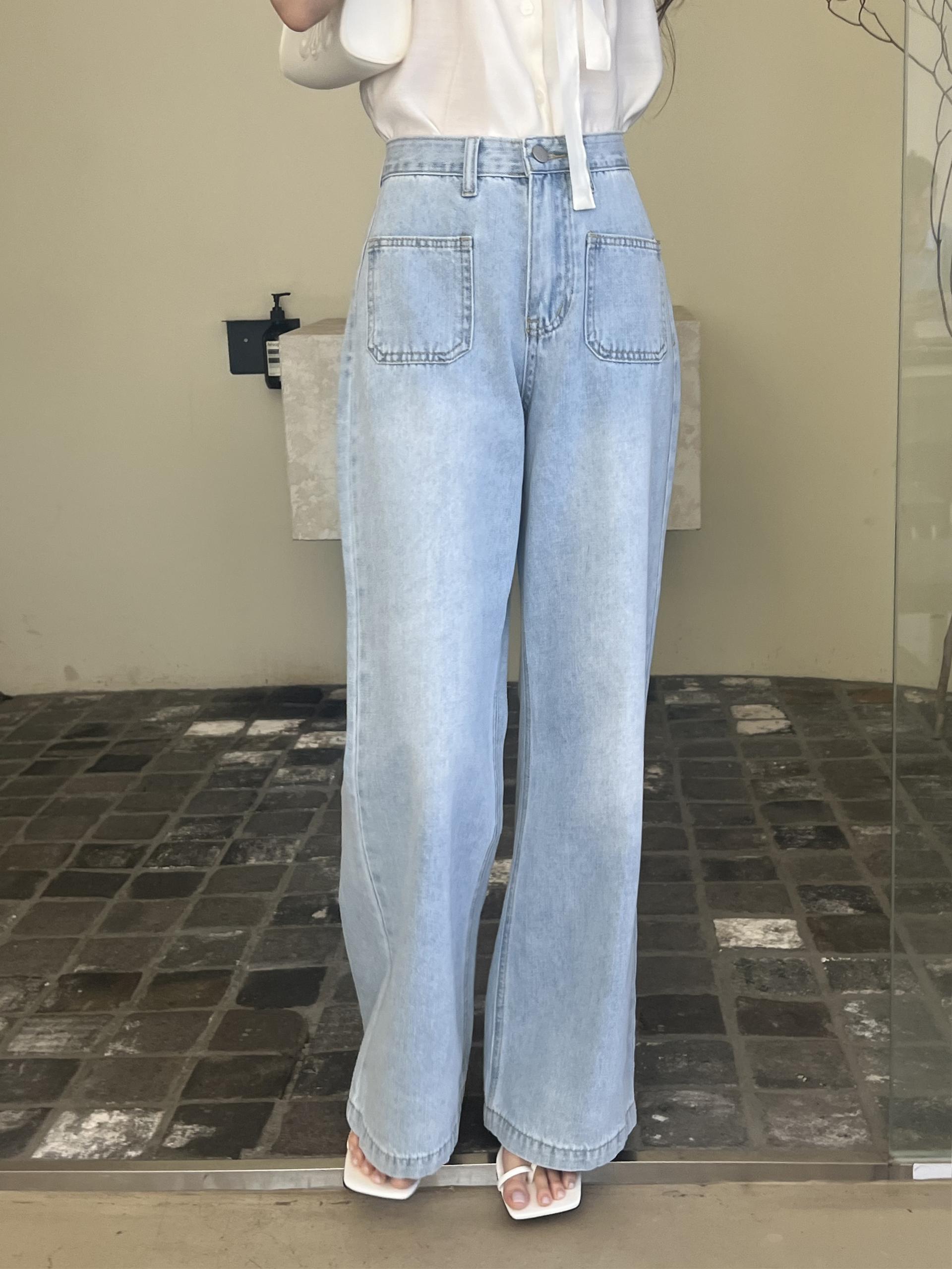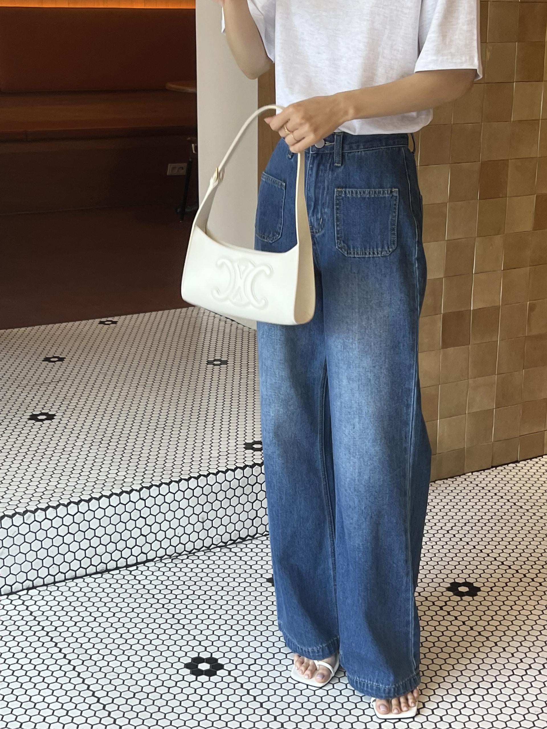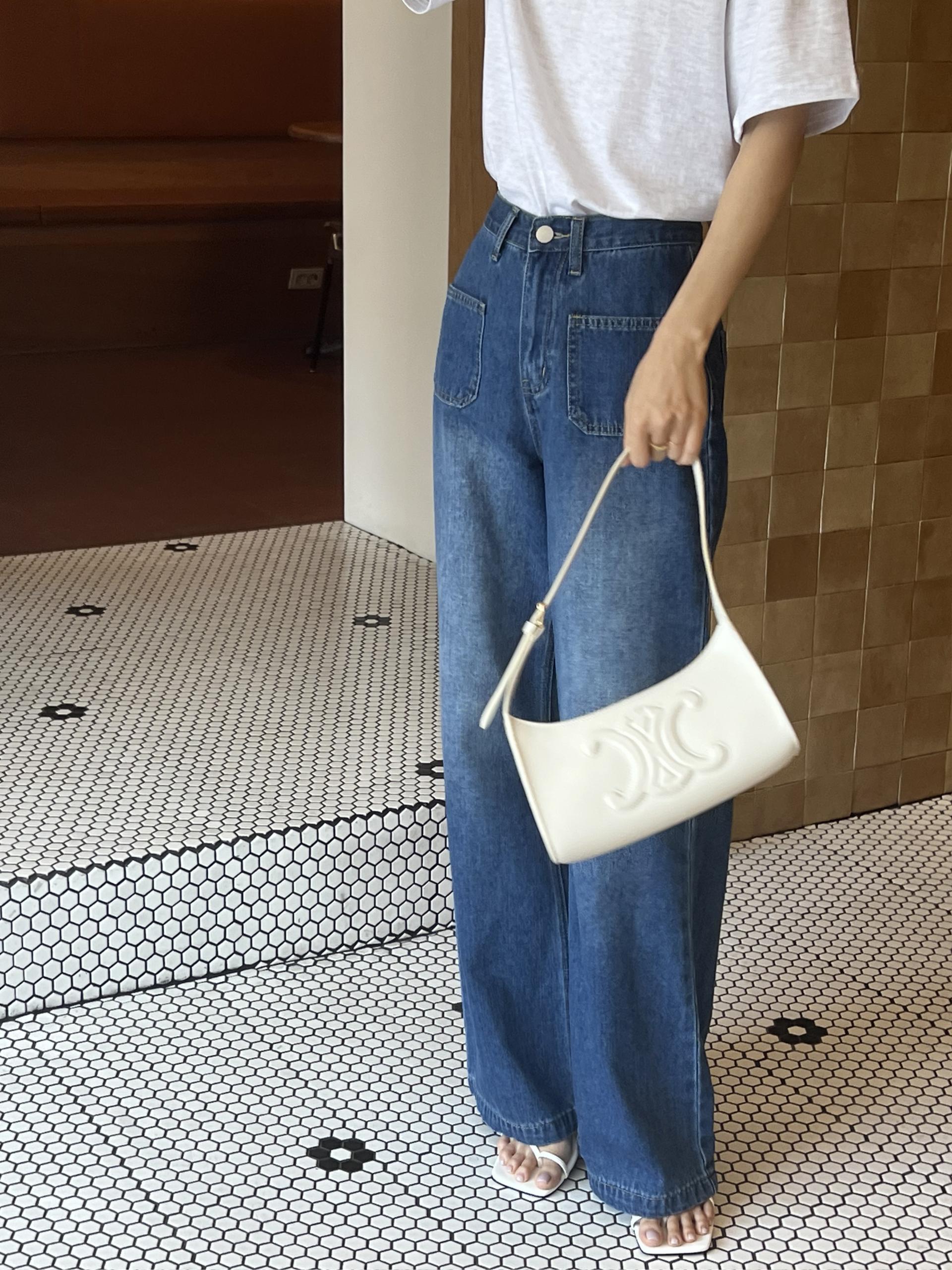 하이웨스트 밑위와 앞포켓 디테일로 상의를 팬츠에 싹 넣어 입었을 때 특히 예뻤어요. 자연스러운 워싱과 과하지 않은 와이드 핏이 아주 만족스러웠습니다.