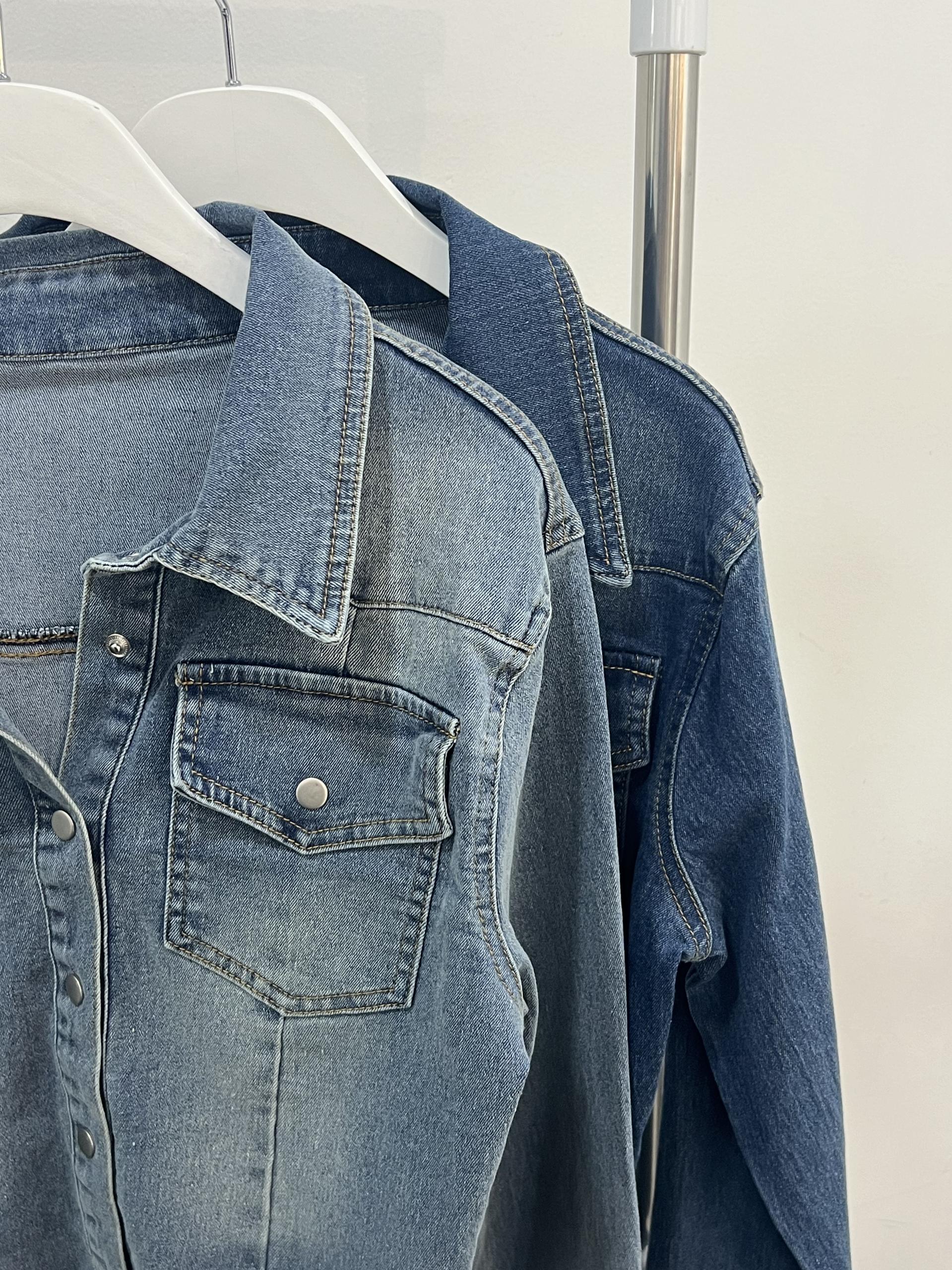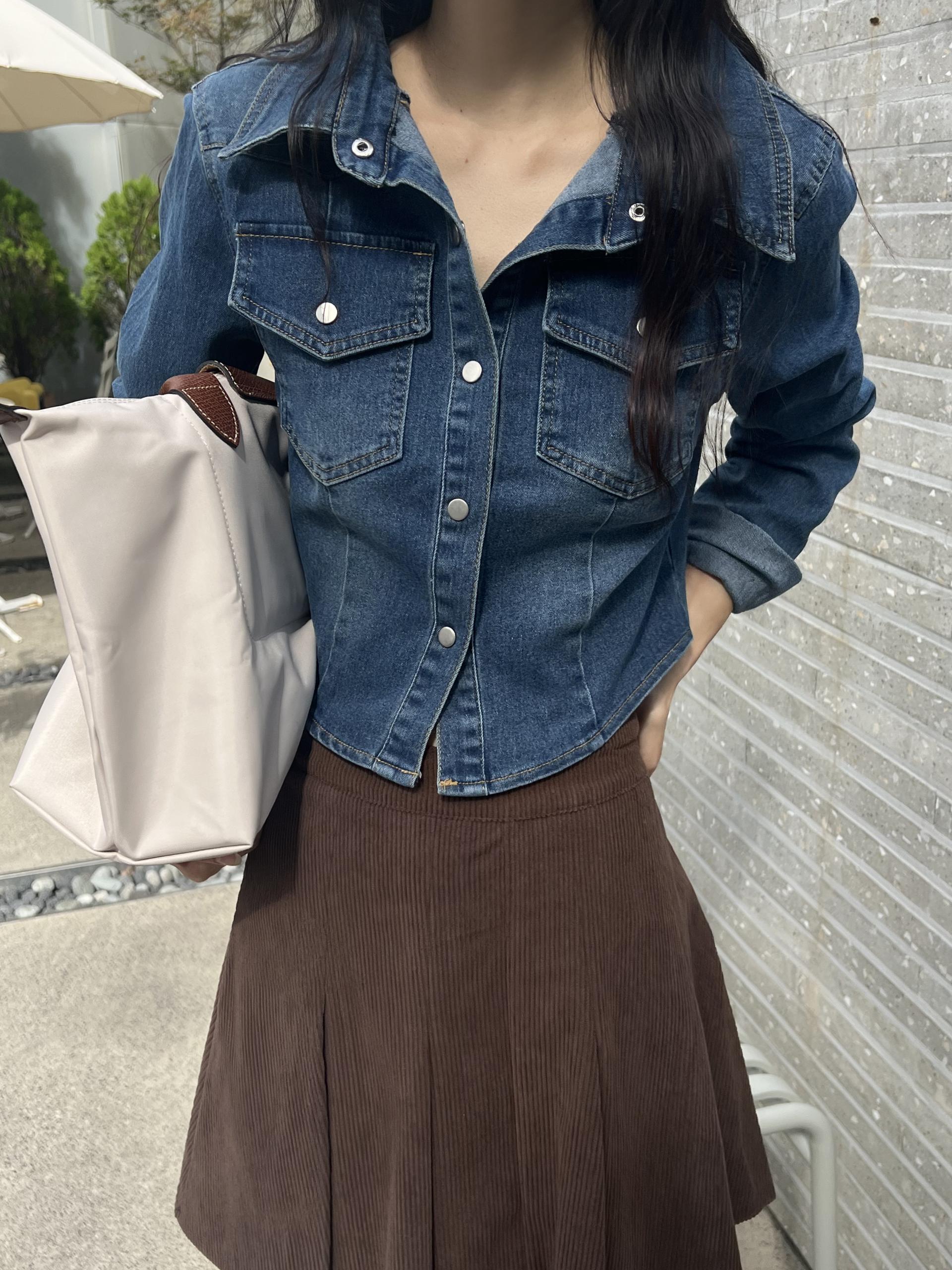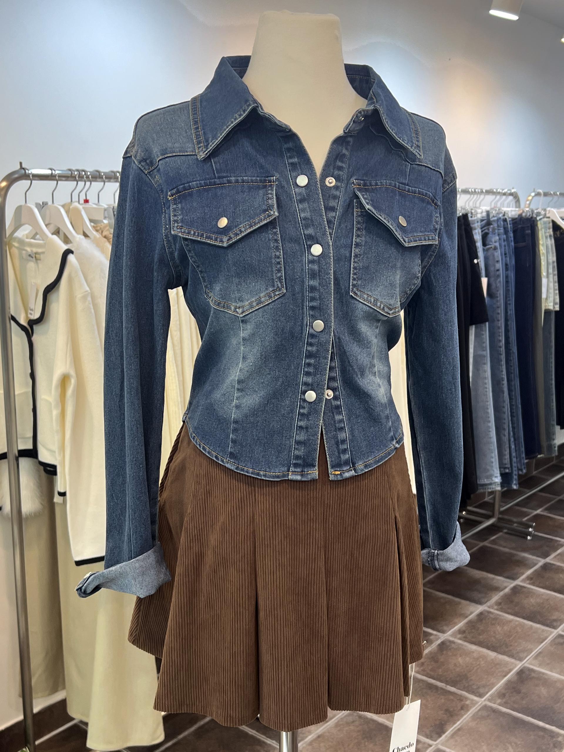 짱짱한 코튼, 스판 혼방으로 슬림한 핏의 데님 셔츠입니다.
