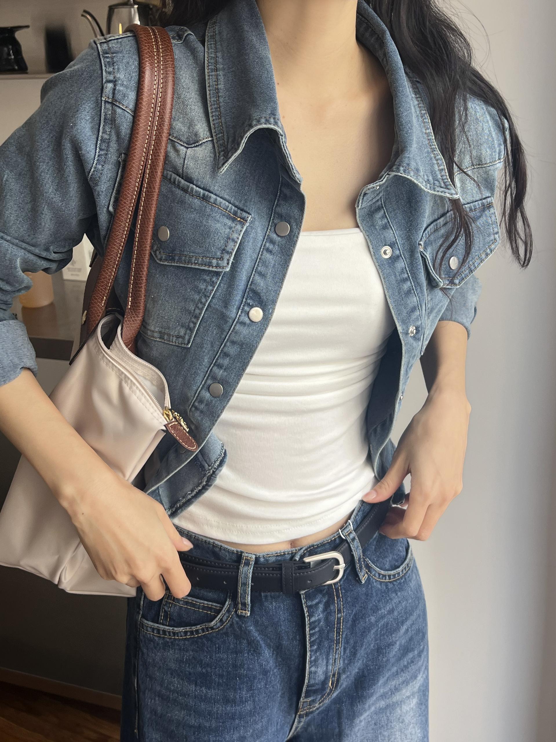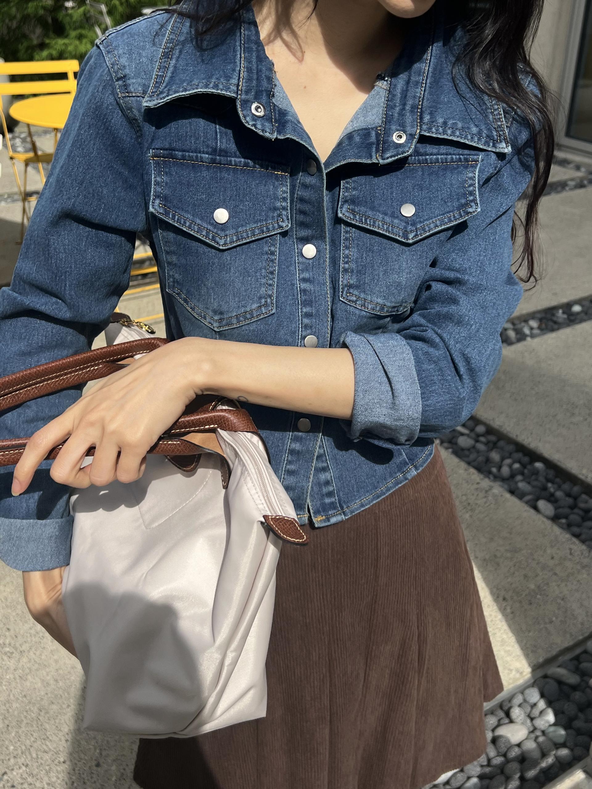 깔끔한 스냅 버튼에 세로 절개 라인, 가슴 포켓 디테일까지.하나하나 뜯어봐도 너무 예쁜 셔츠에요.