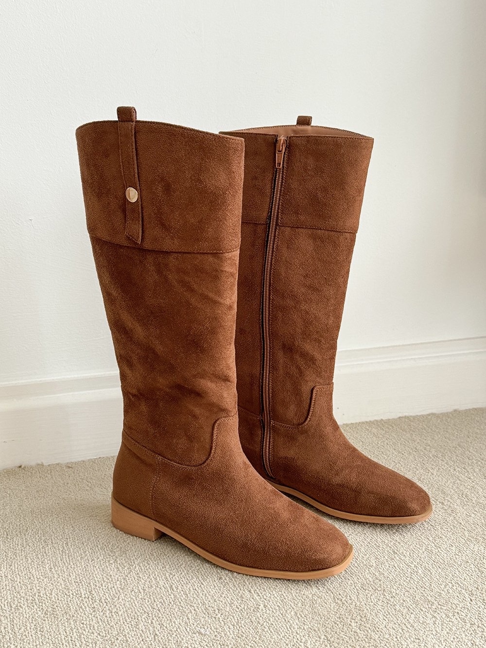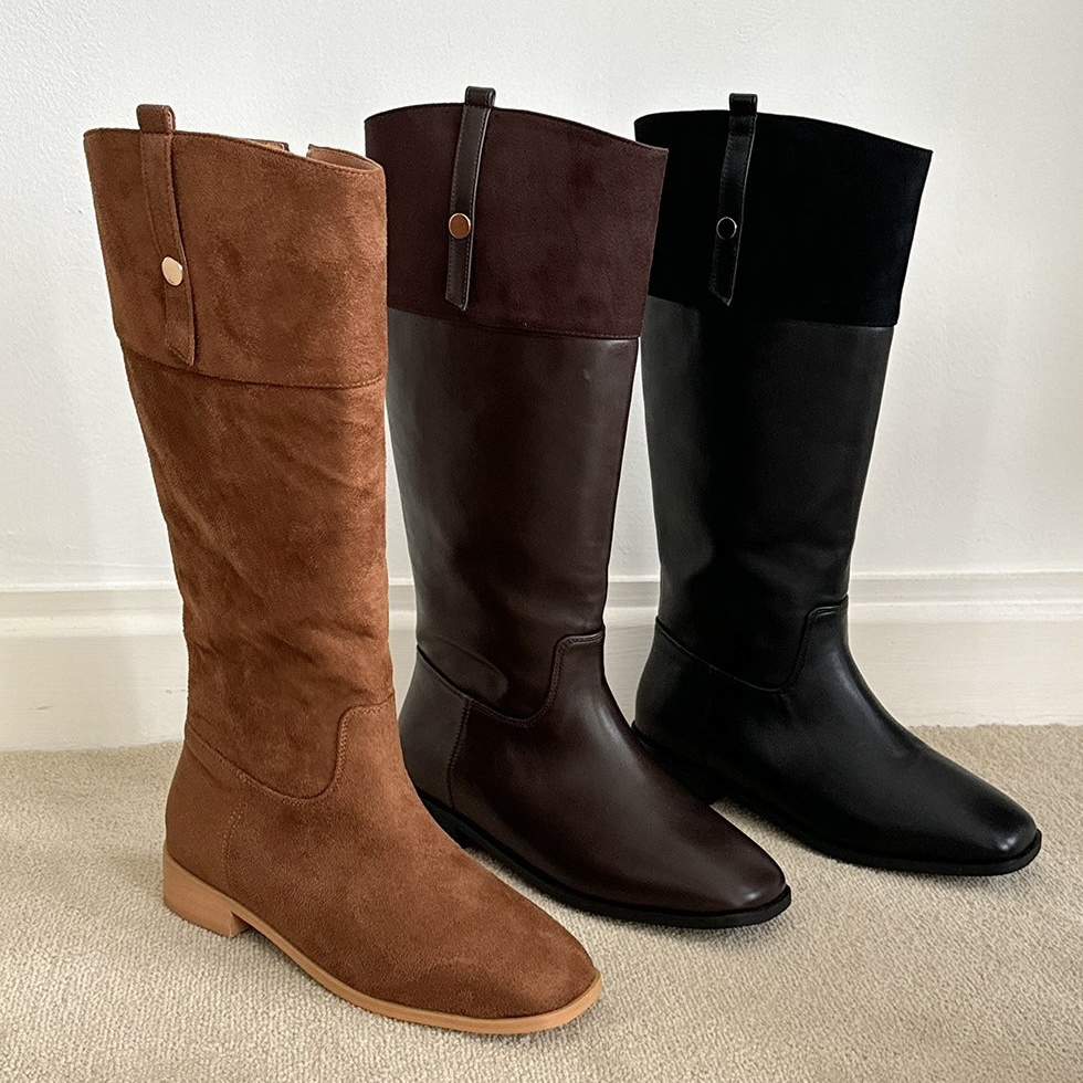 통이 넓어 종아리가 가늘지 않으신 분들도 넉넉하게 착용 가능합니다. 거기에 3cm의 로우 힐로 장시간 착용해도 아주 편하고, 안정감 있게 착용할 수 있어요.