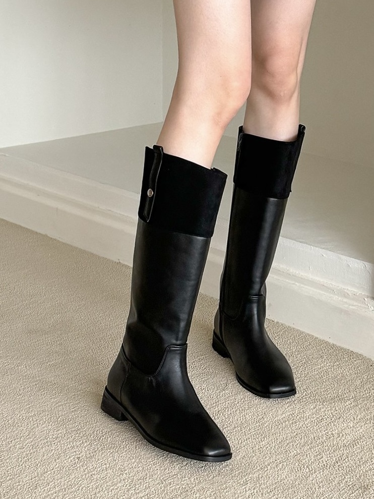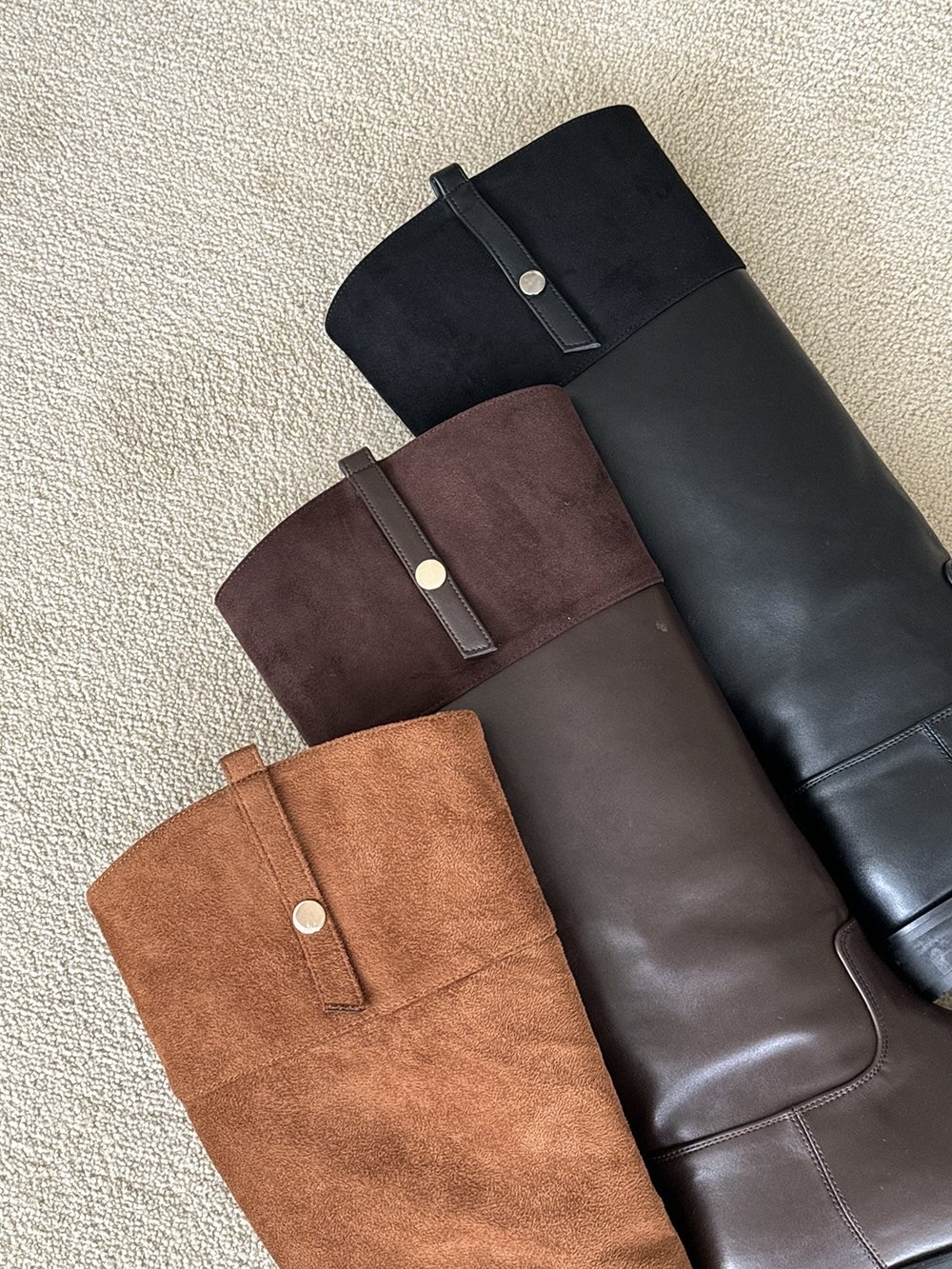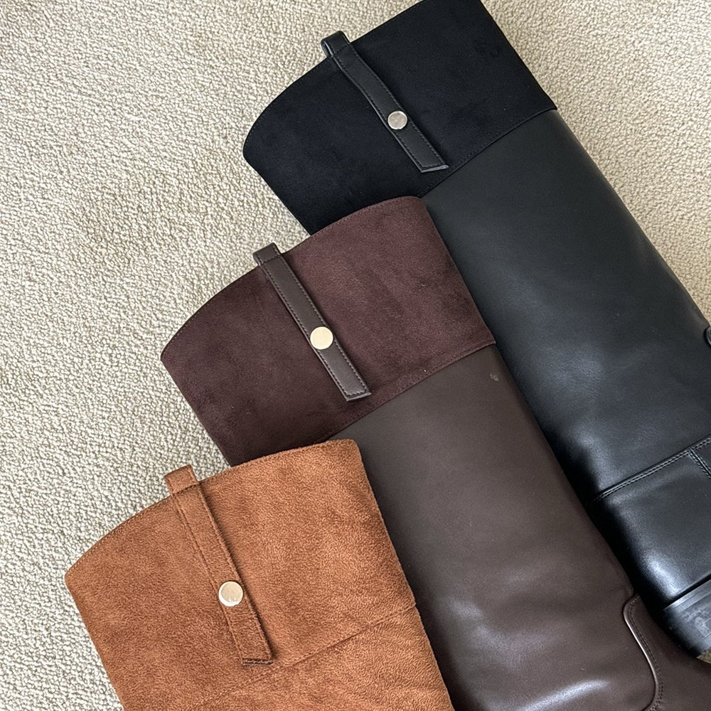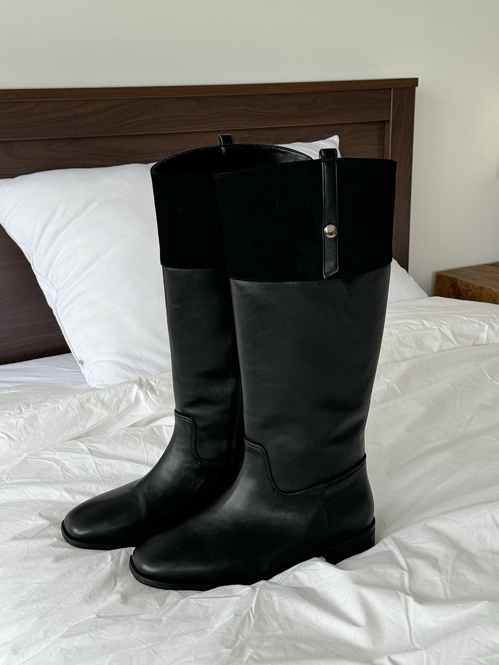 은장 버튼 포인트로 심플하면서 세련된 분위기의 롱부츠입니다.