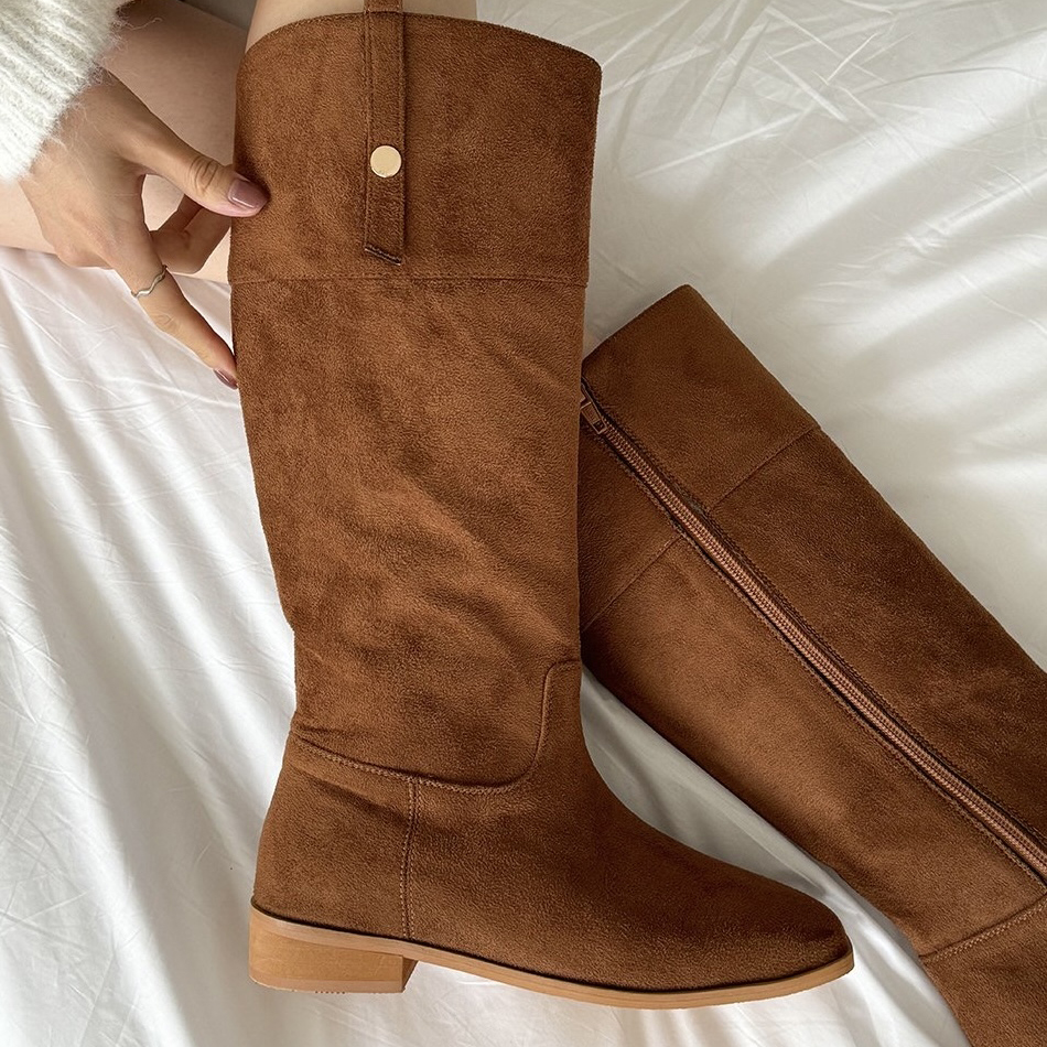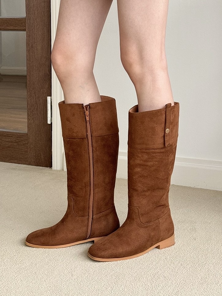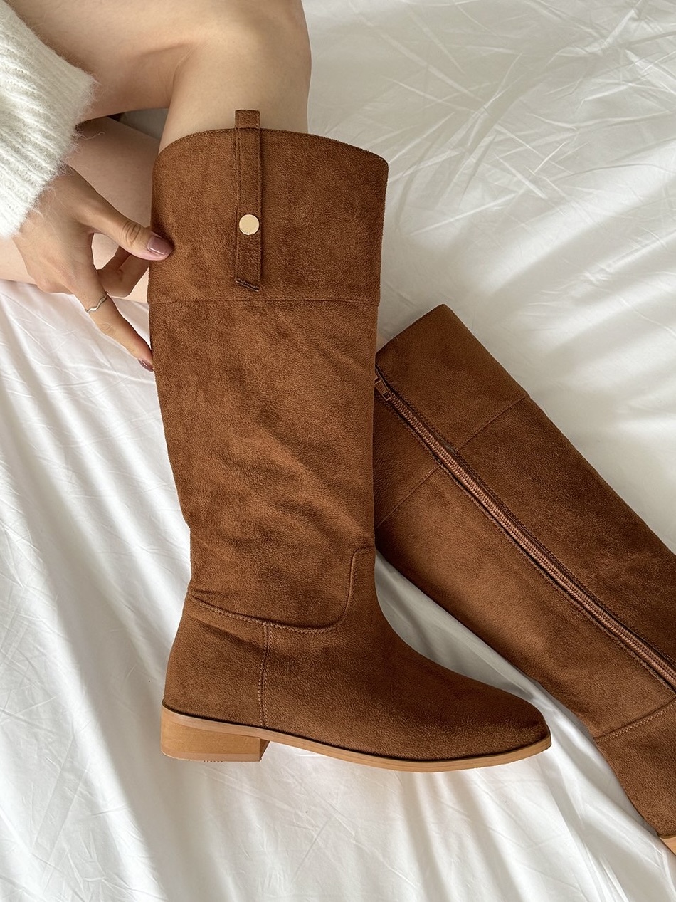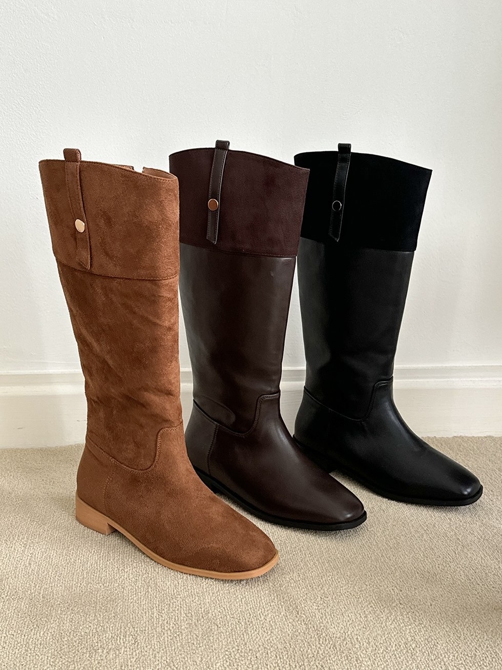 은장 버튼 포인트로 심플하면서 세련된 분위기의 롱부츠입니다.