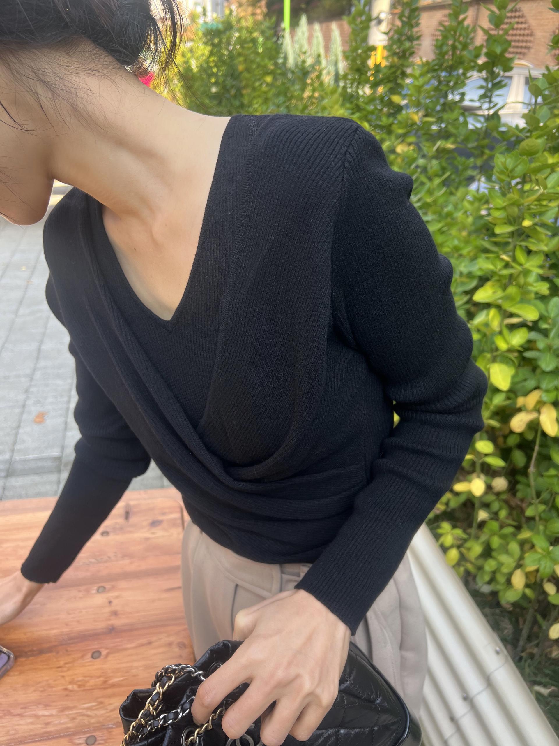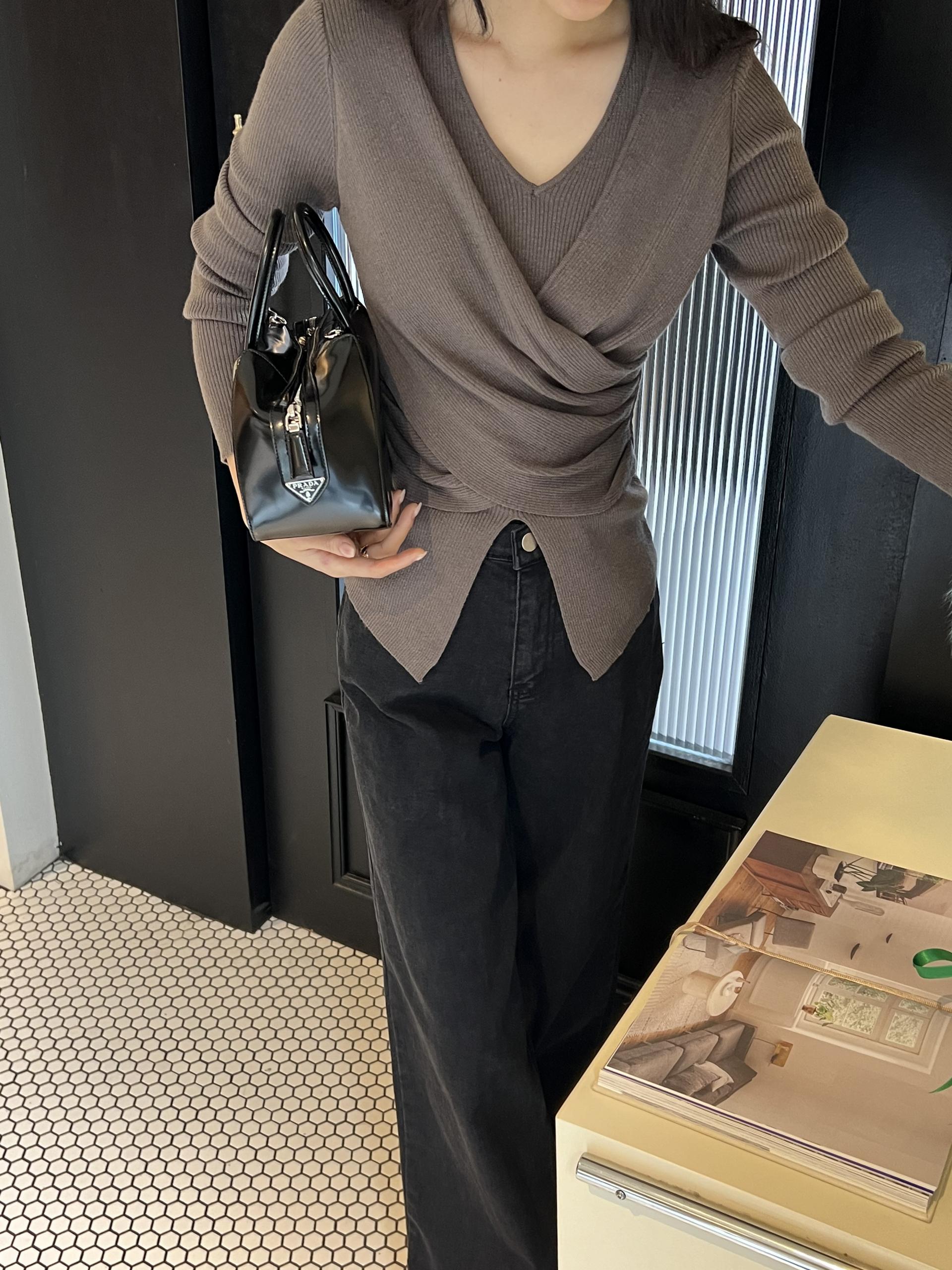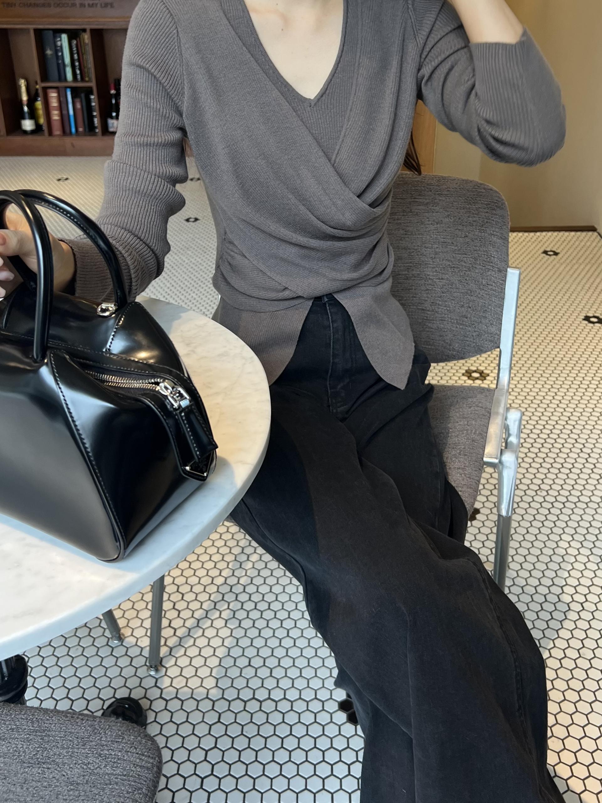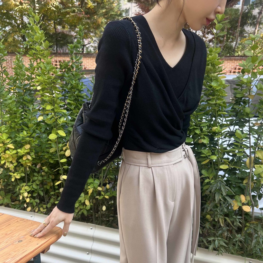 슬림한 핏인데, 앞 셔링이 있어 가슴은 볼륨 있어 보이면서 앞 뱃살은 커버가 되고, 또 트임이 있어 허리는 더 가늘어 보였어요. 소매 기장도 길어서 더 여리 핏 !! 팔도 더 말라 보였습니다. 겨울에 이너 니트로 입기 딱 좋고, 봄이나 가을에는 단독으로 입어도 좋아요.