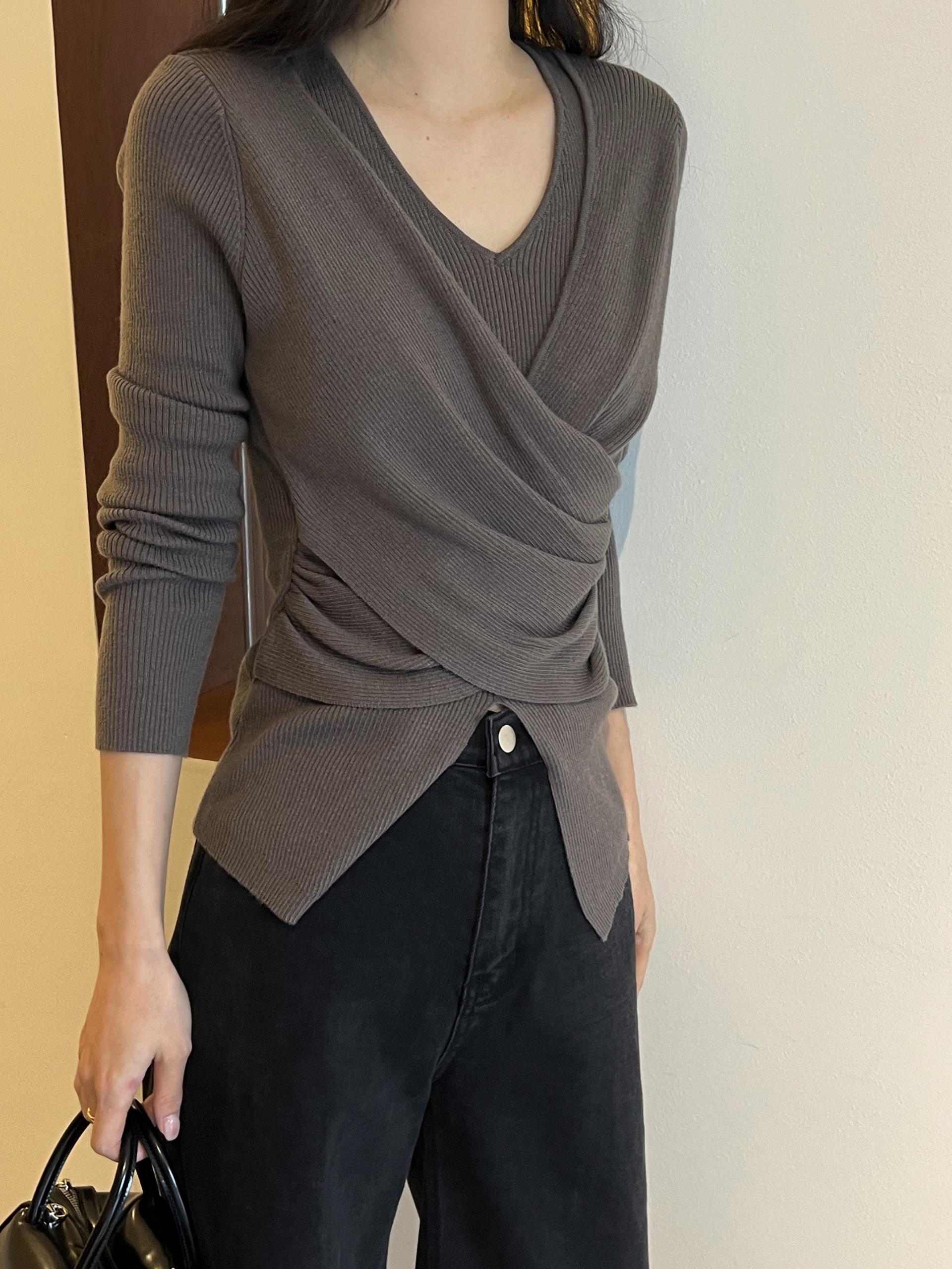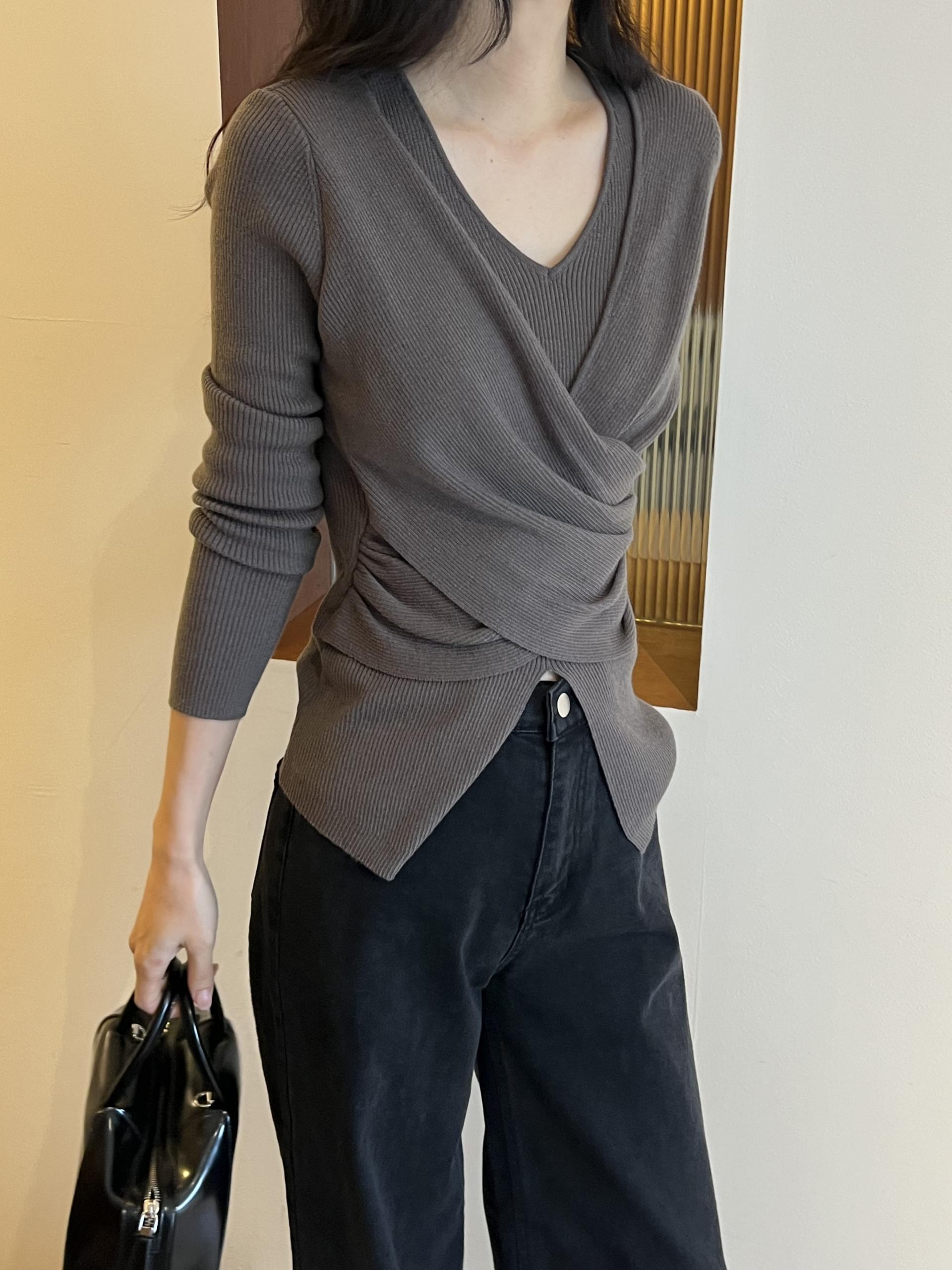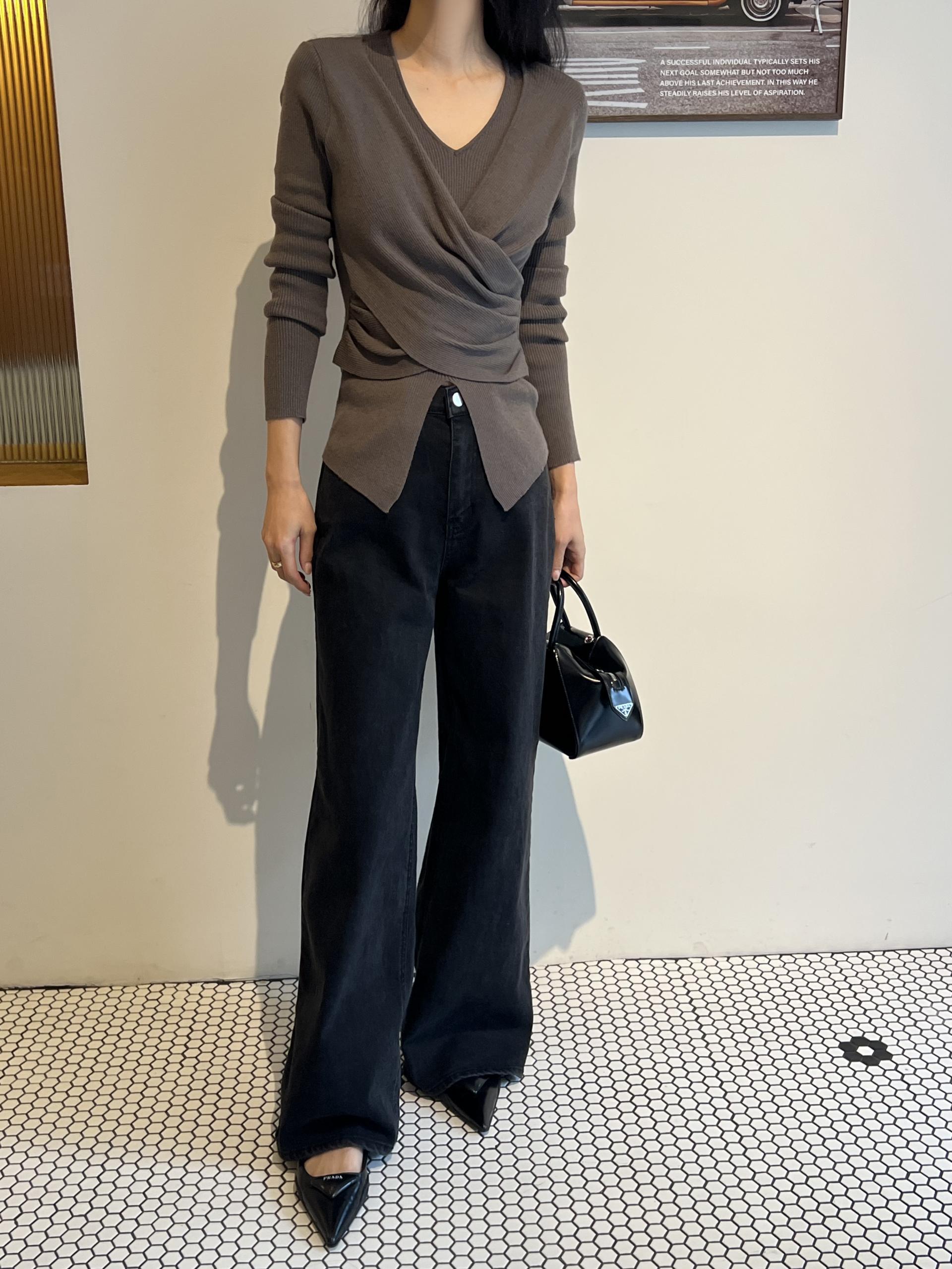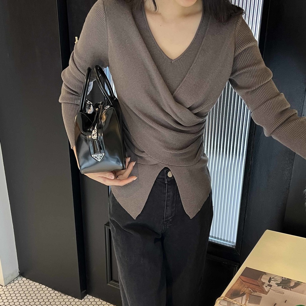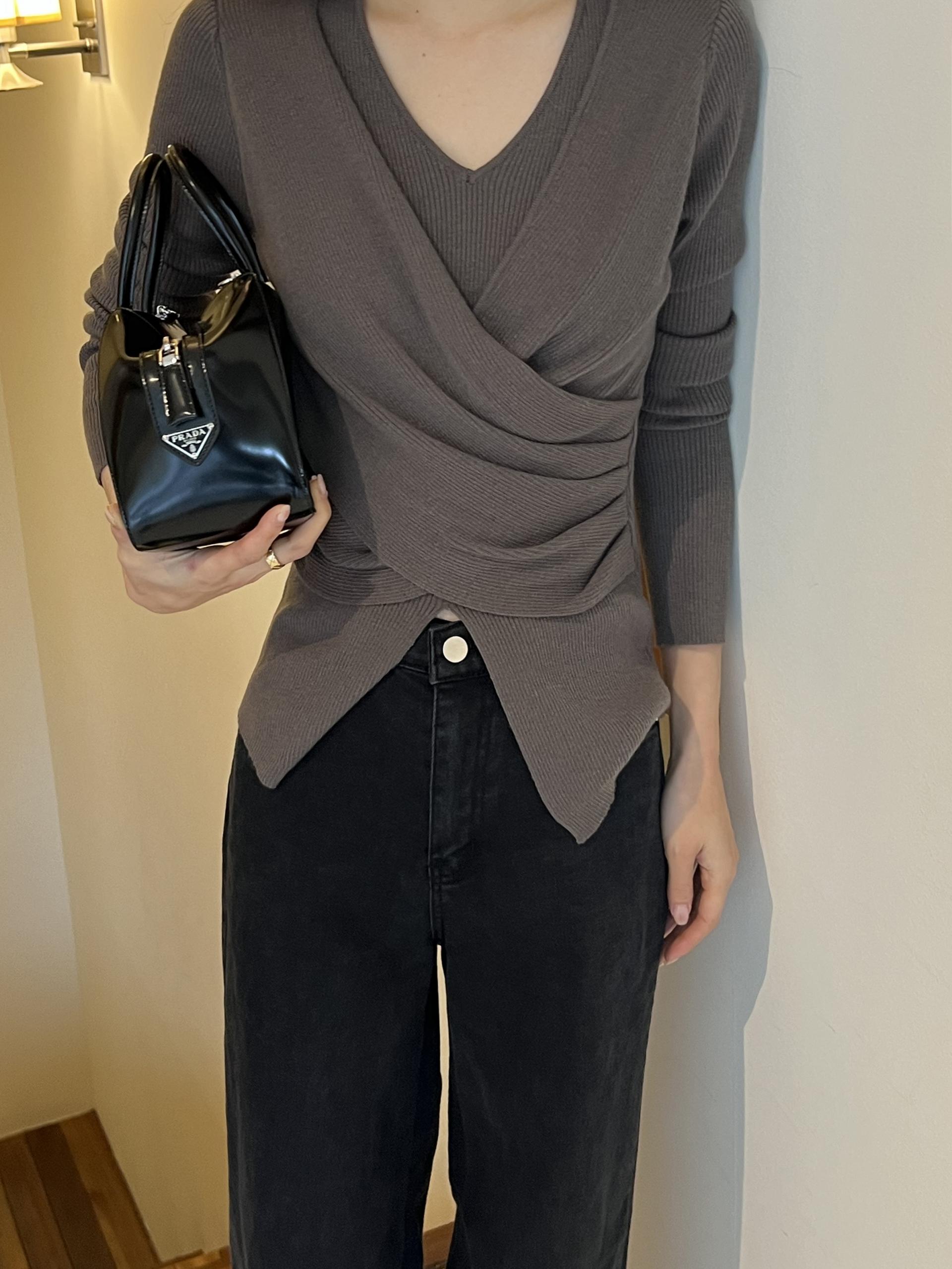 슬림한 핏인데, 앞 셔링이 있어 가슴은 볼륨 있어 보이면서 앞 뱃살은 커버가 되고, 또 트임이 있어 허리는 더 가늘어 보였어요. 소매 기장도 길어서 더 여리 핏 !! 팔도 더 말라 보였습니다. 겨울에 이너 니트로 입기 딱 좋고, 봄이나 가을에는 단독으로 입어도 좋아요.