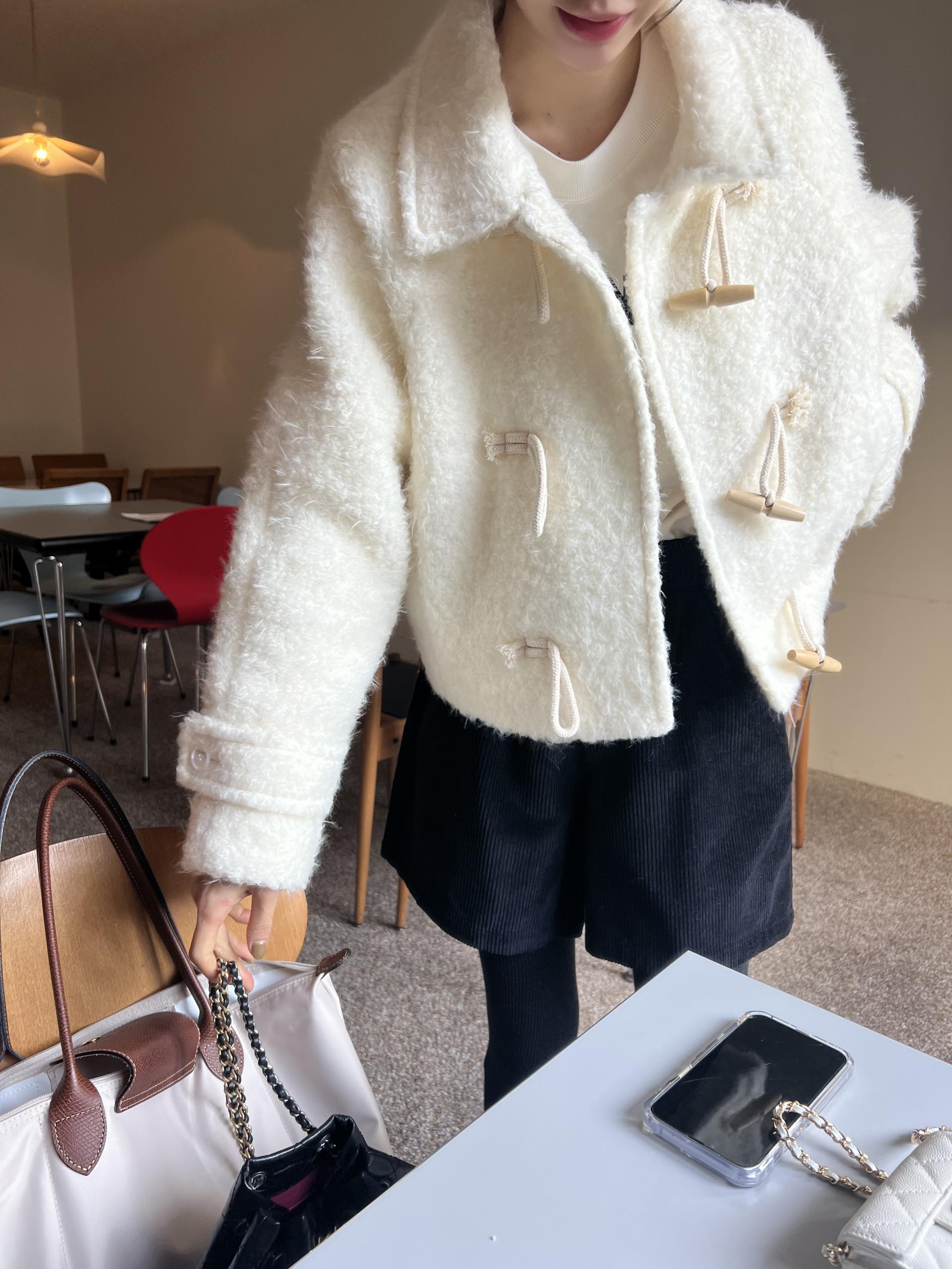 높은 울 함유랑에 안감 누빔으로 한겨울까지 착용 가능한 귀여운 디자인의 숏 코트입니다.