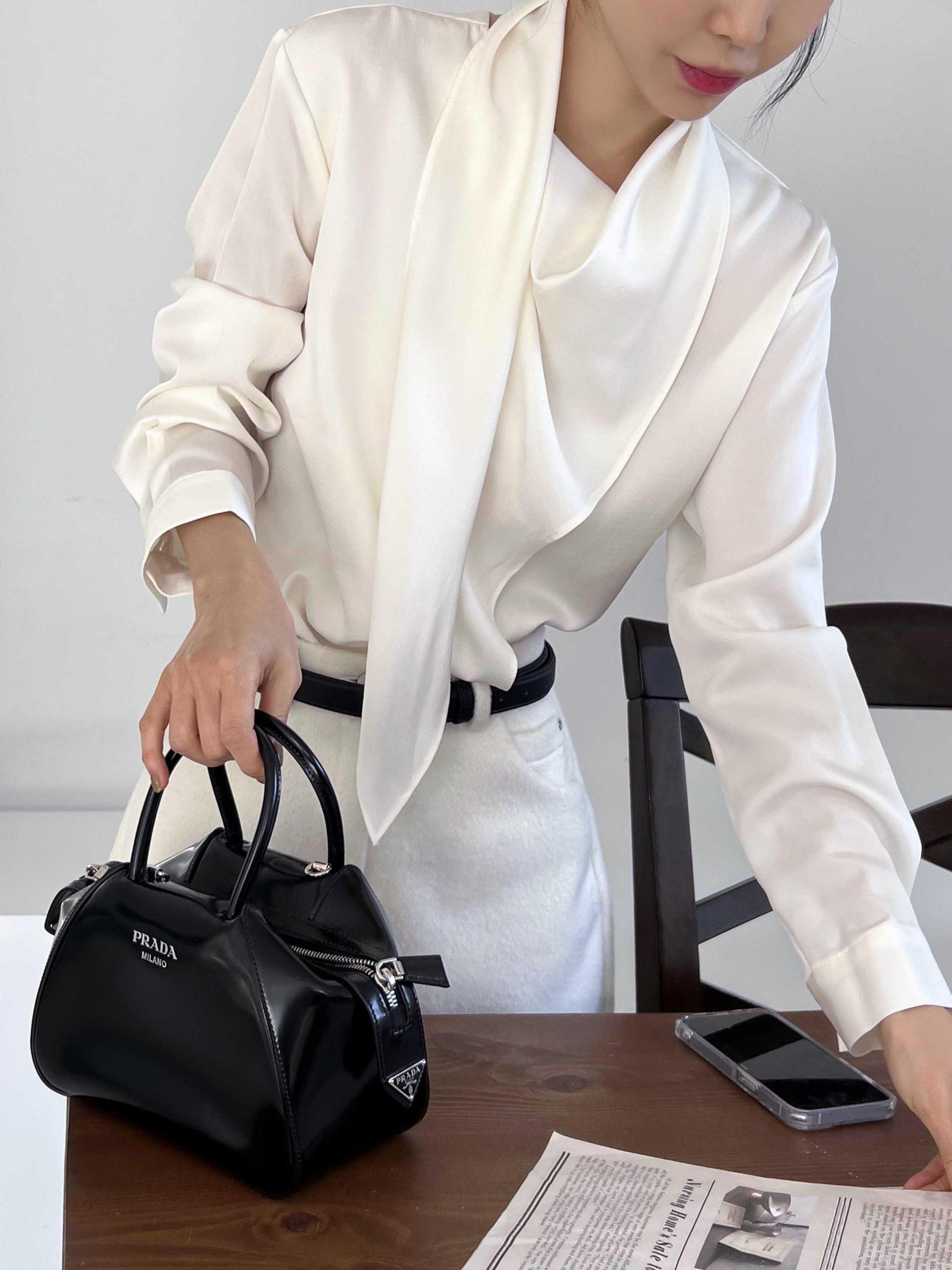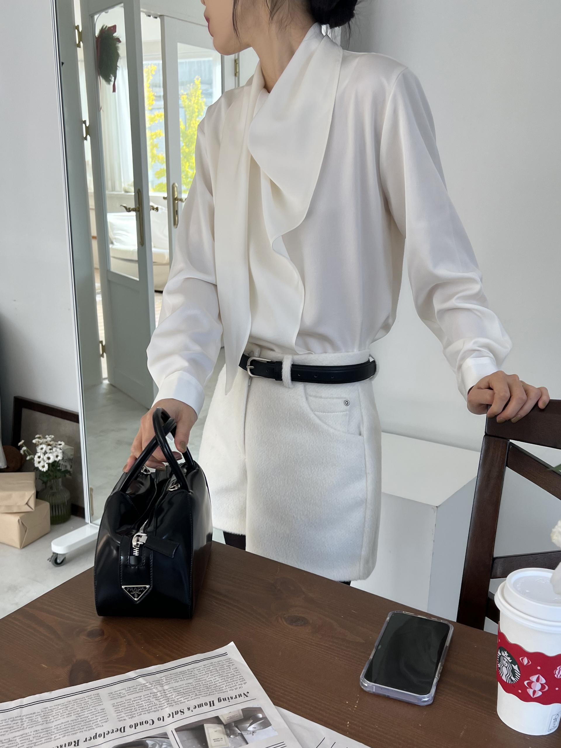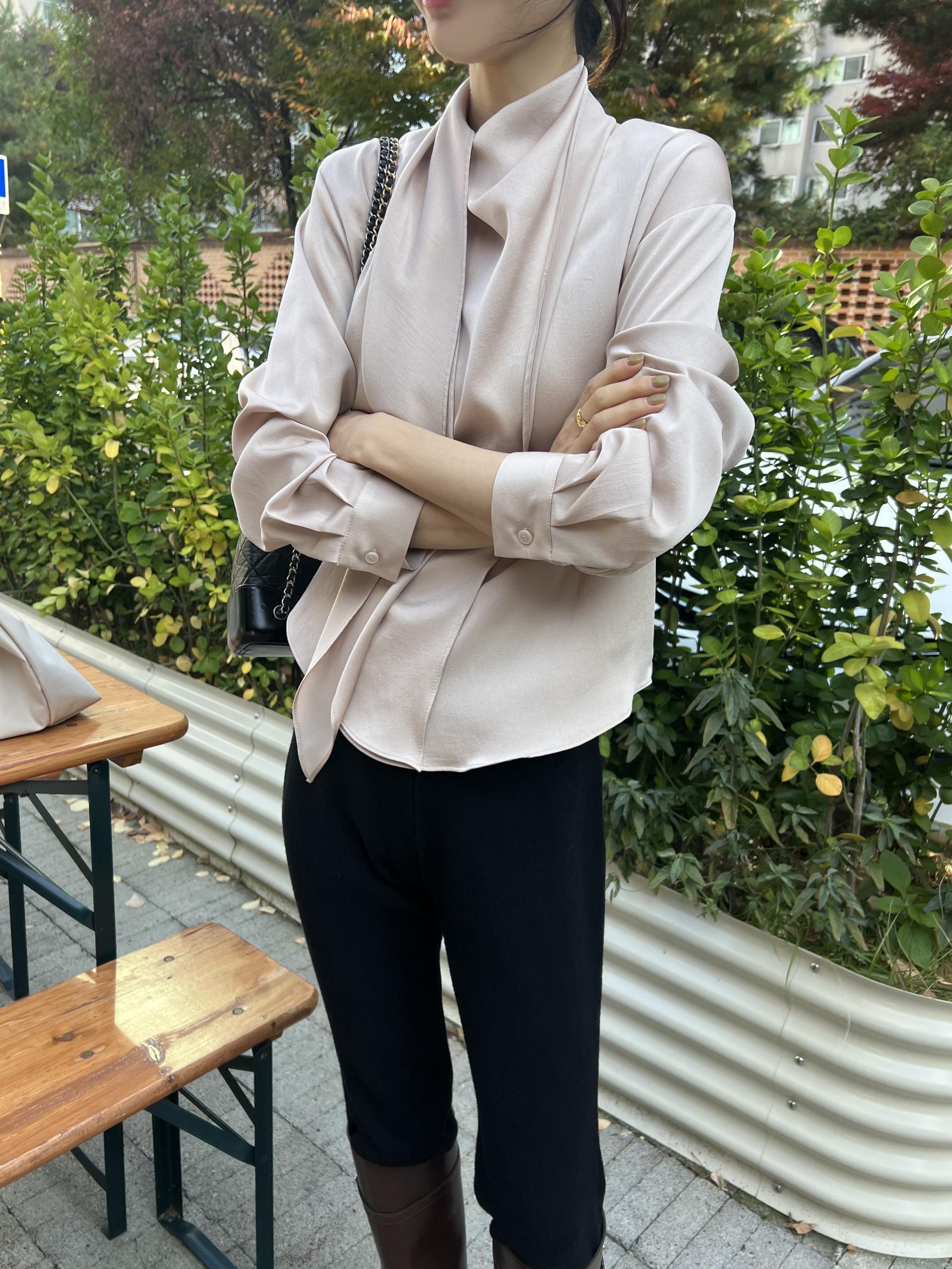 실크와 같은 고급스러운 광택감의 새틴 타이 블라우스입니다.