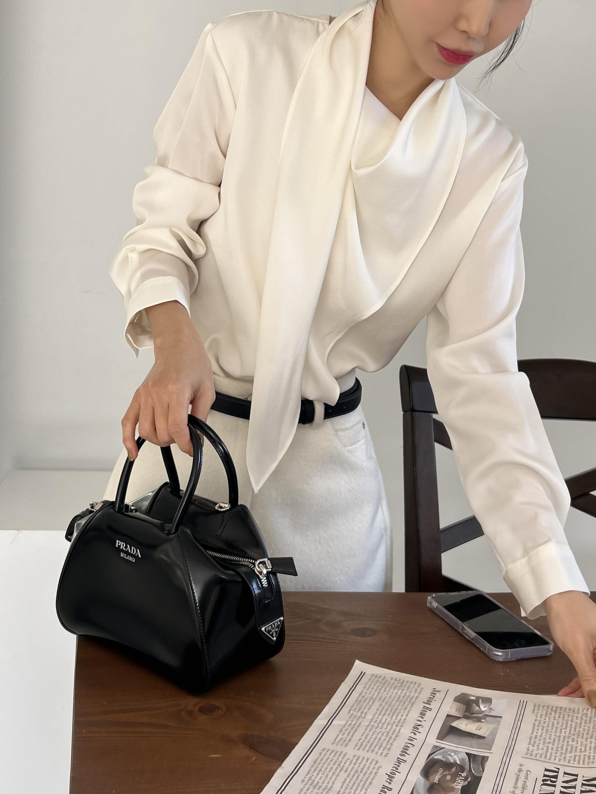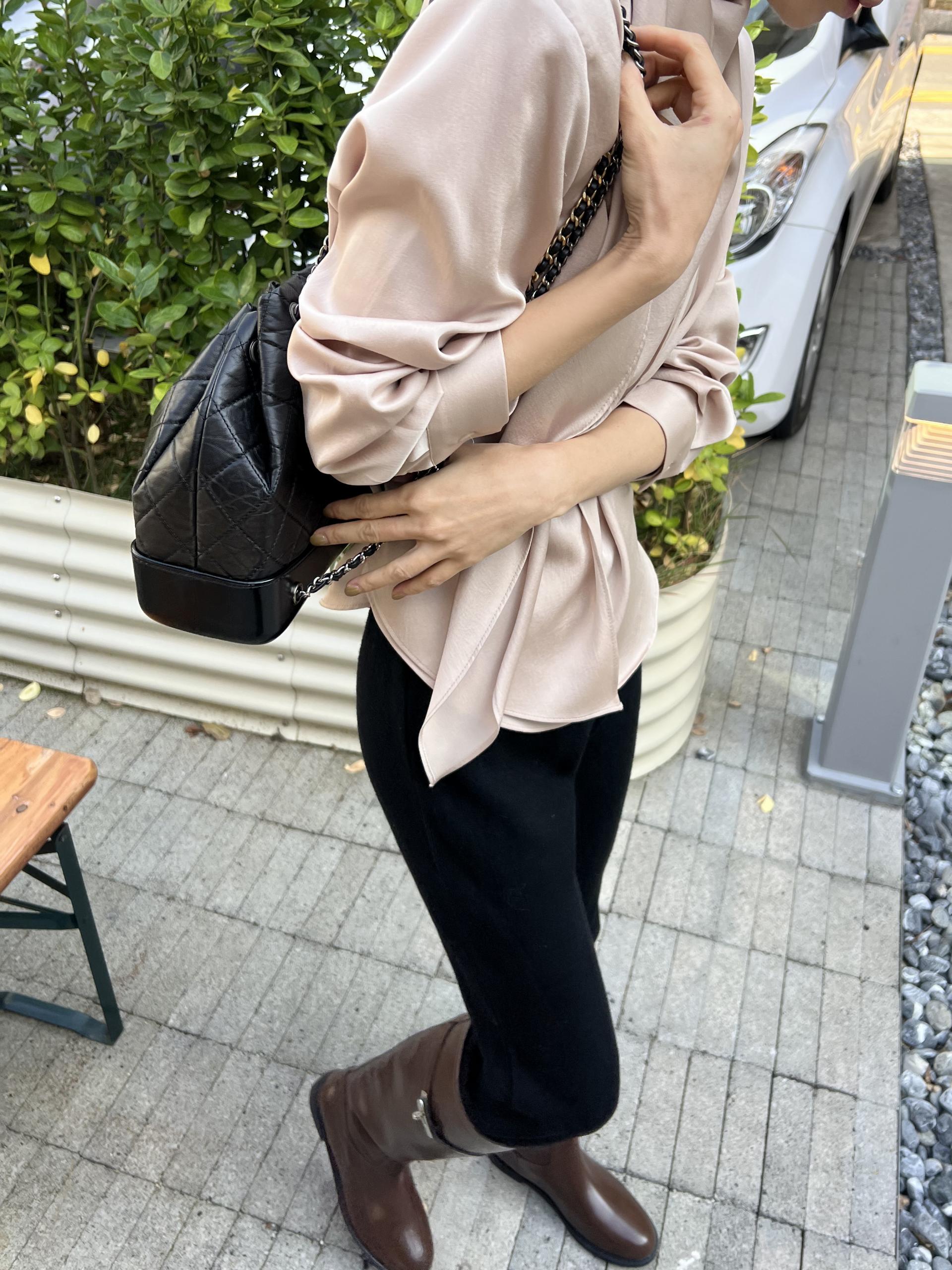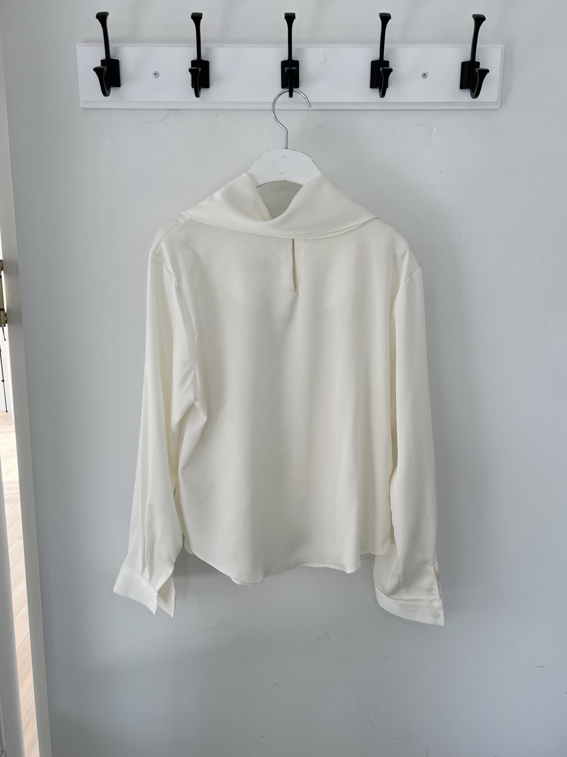 실크와 같은 고급스러운 광택감의 새틴 타이 블라우스입니다.