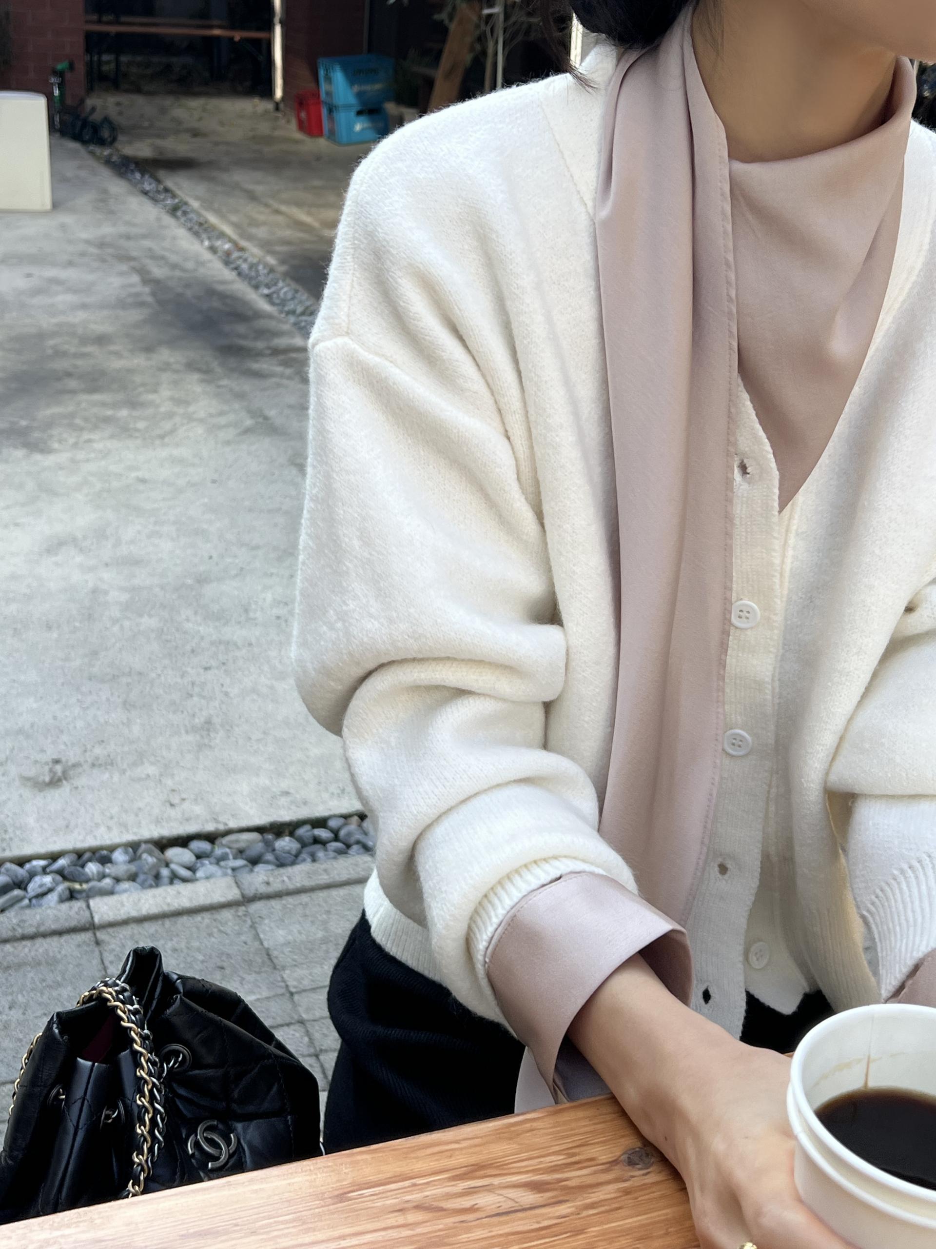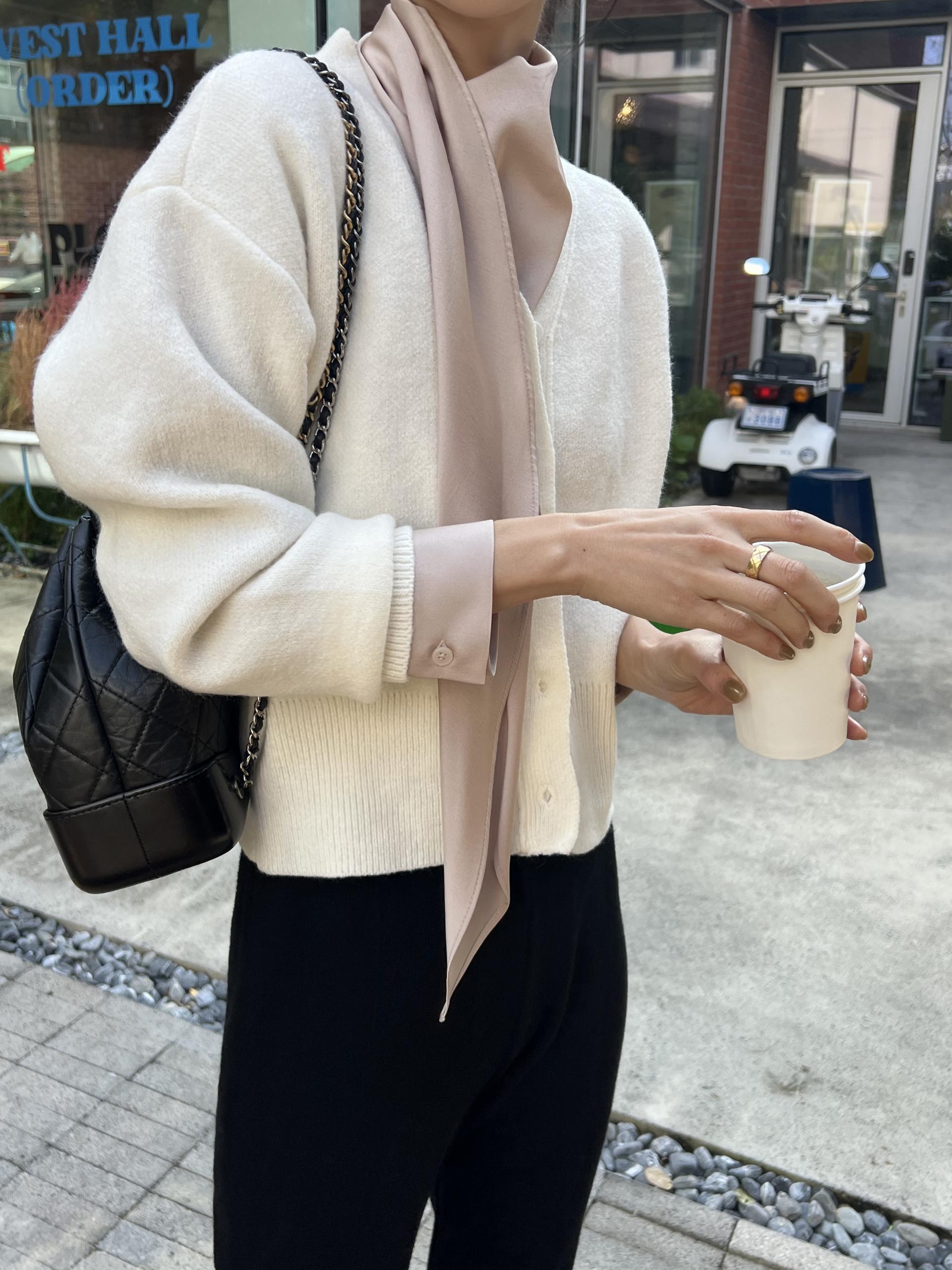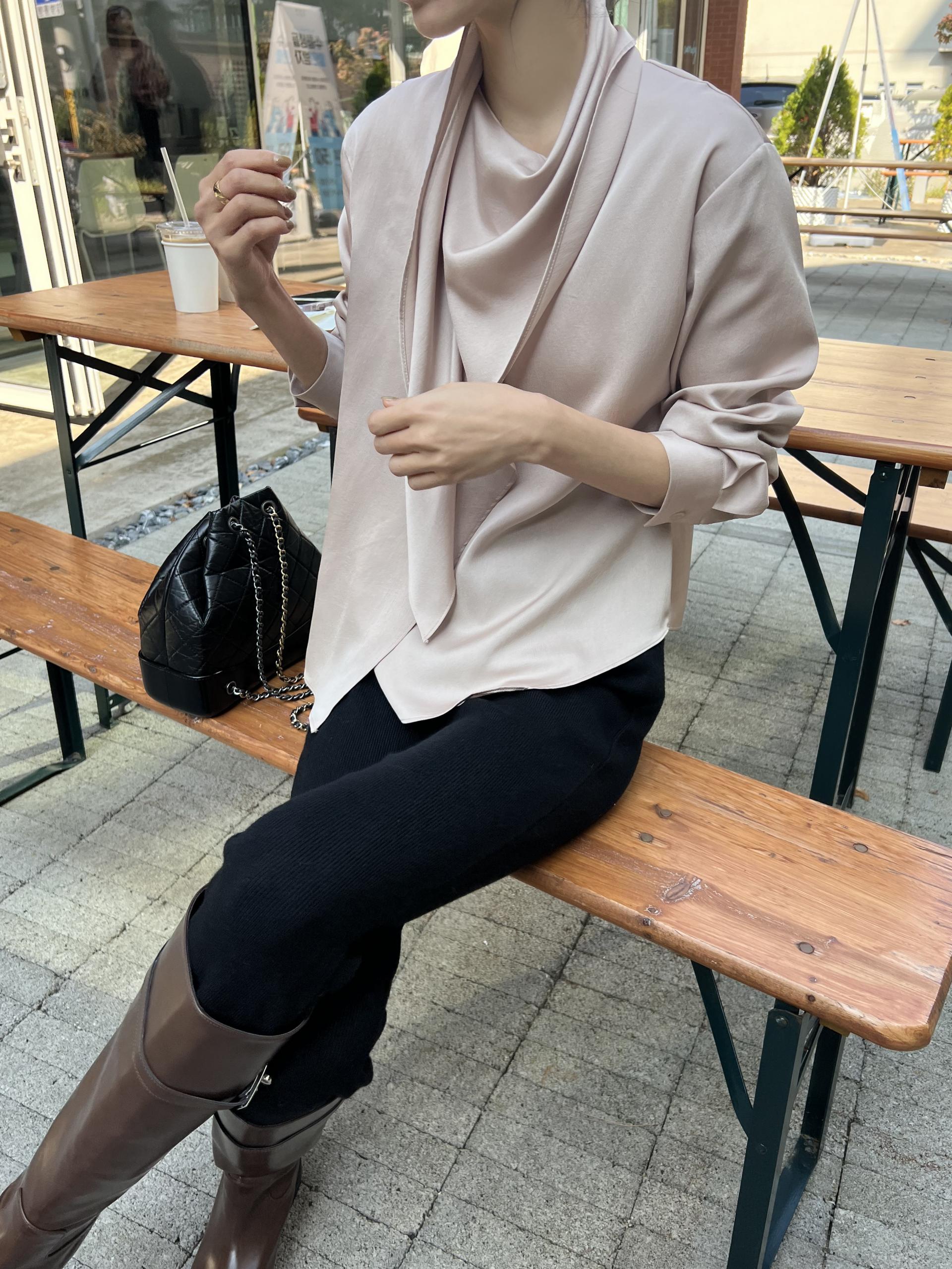 단독으로도 너무 우아하고 세련된 느낌이지만, 레이어드용으로도 다양하게 활용할 수 있어 더욱 좋았어요. 코트나 자켓뿐 아니라 가디건이나 브이넥 니트 등 다양하게 활용하기 좋습니다.
