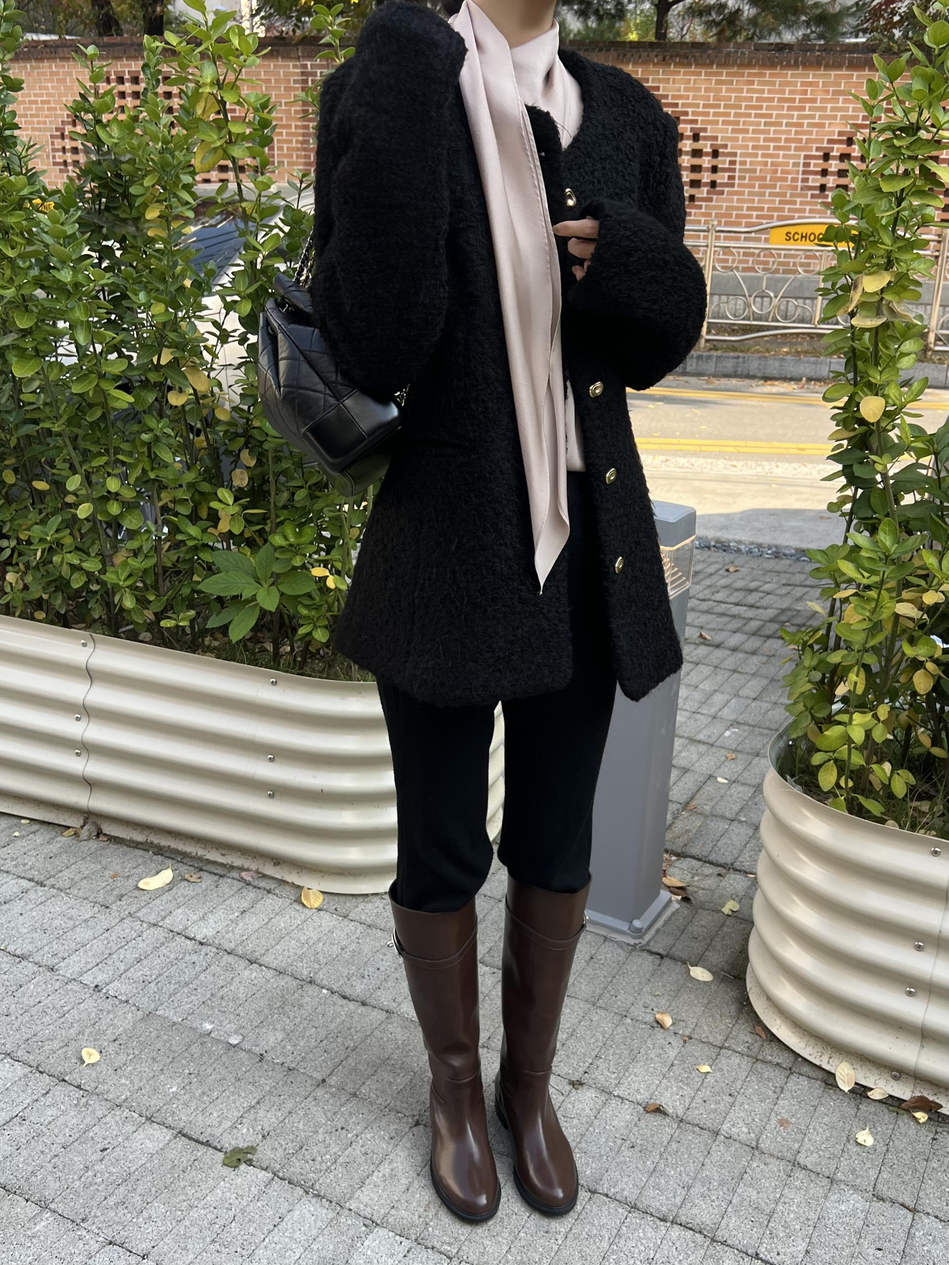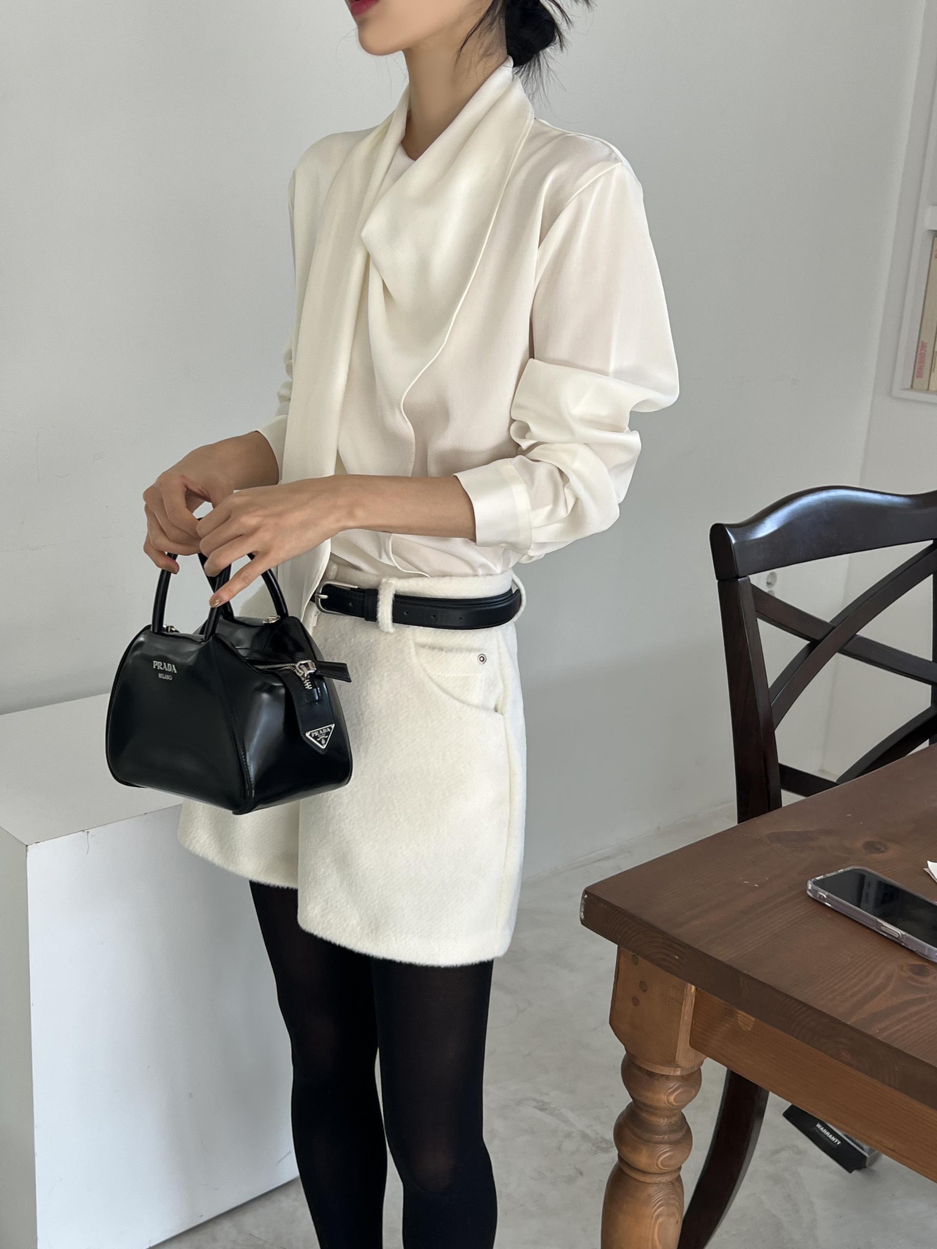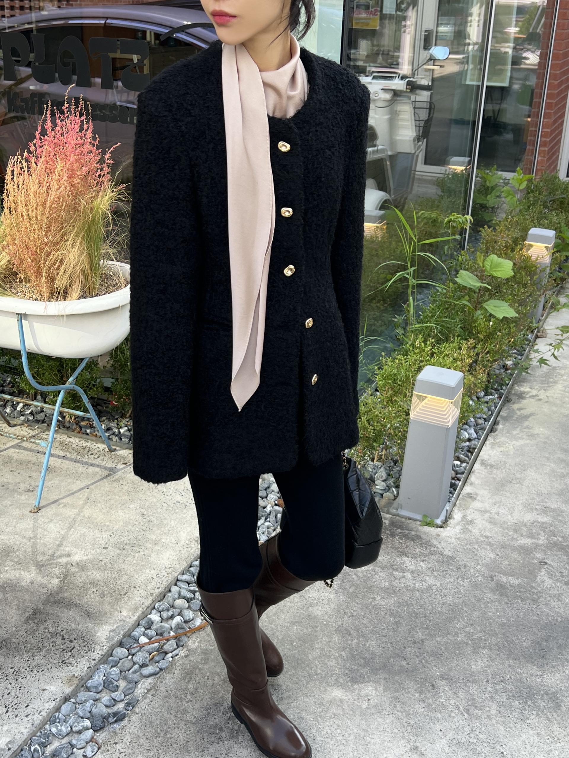 단독으로도 너무 우아하고 세련된 느낌이지만, 레이어드용으로도 다양하게 활용할 수 있어 더욱 좋았어요. 코트나 자켓뿐 아니라 가디건이나 브이넥 니트 등 다양하게 활용하기 좋습니다.