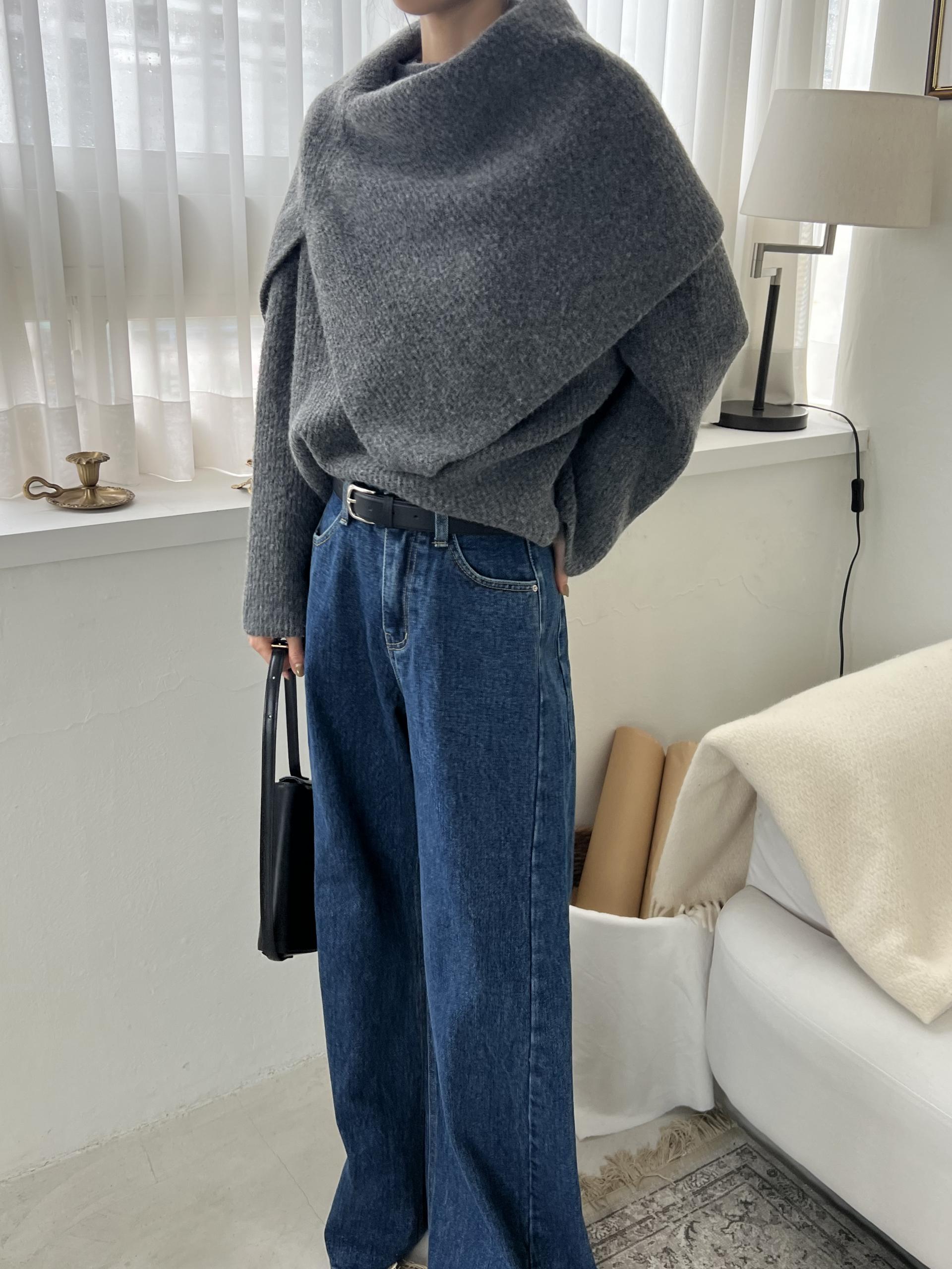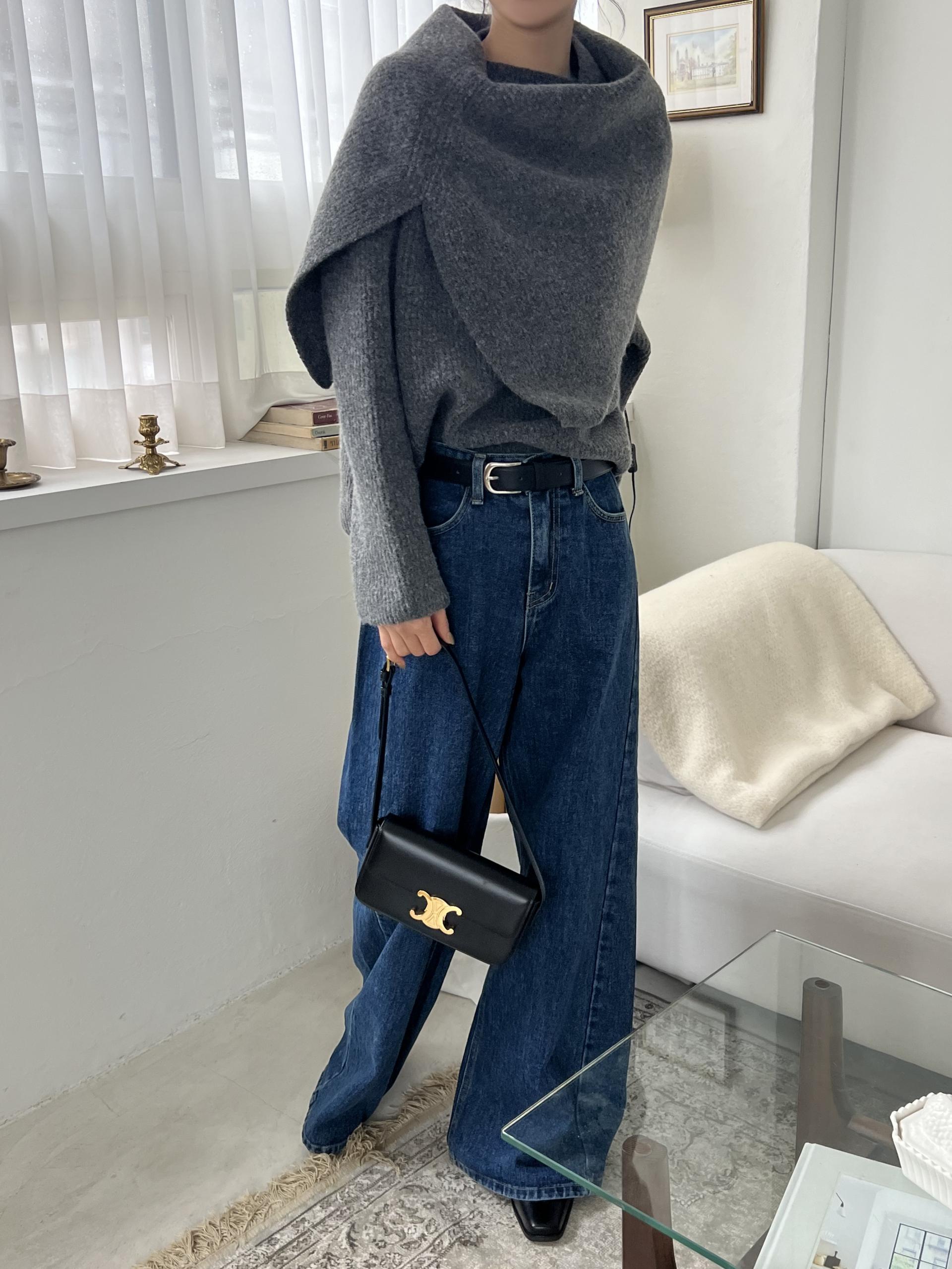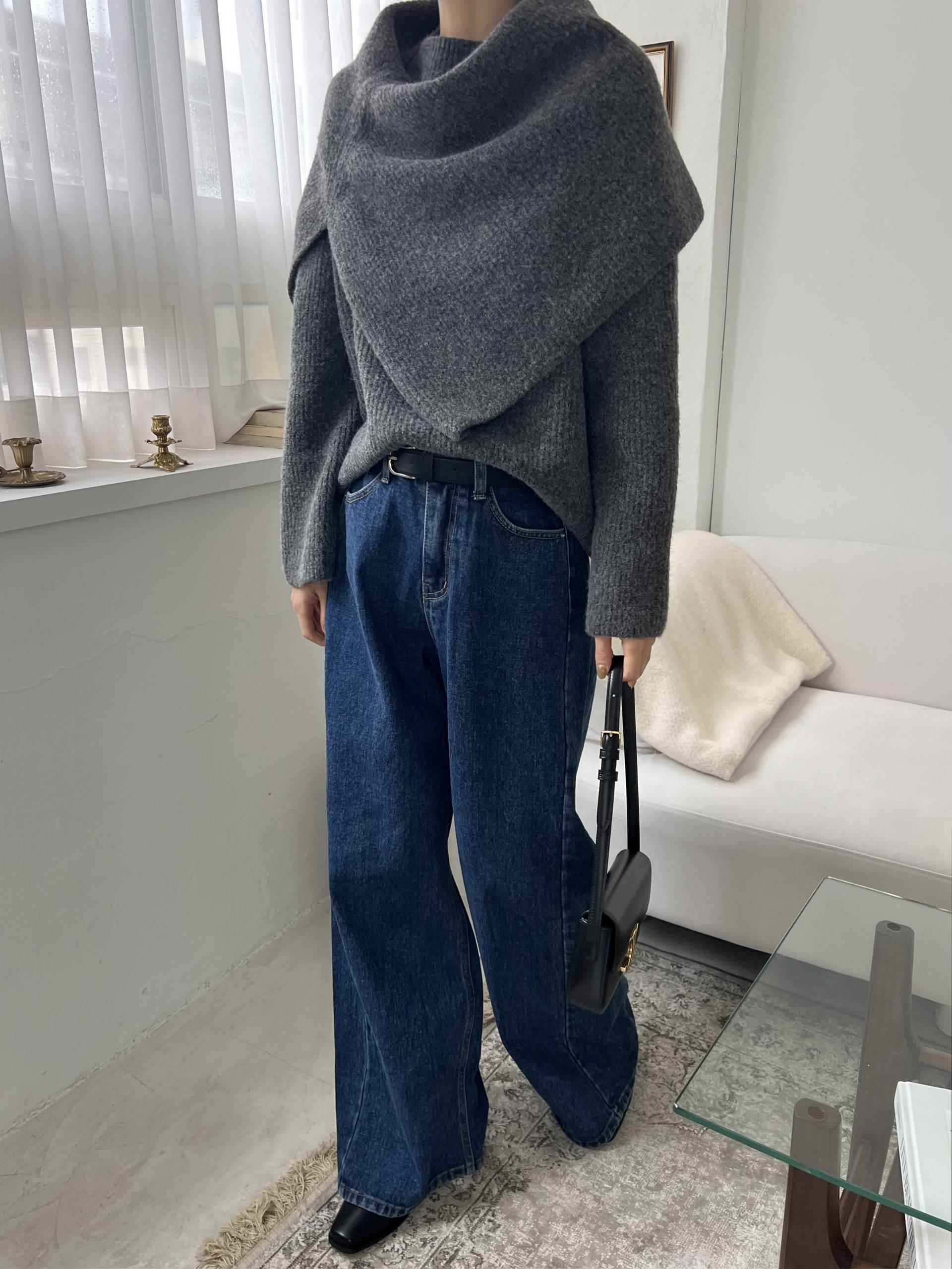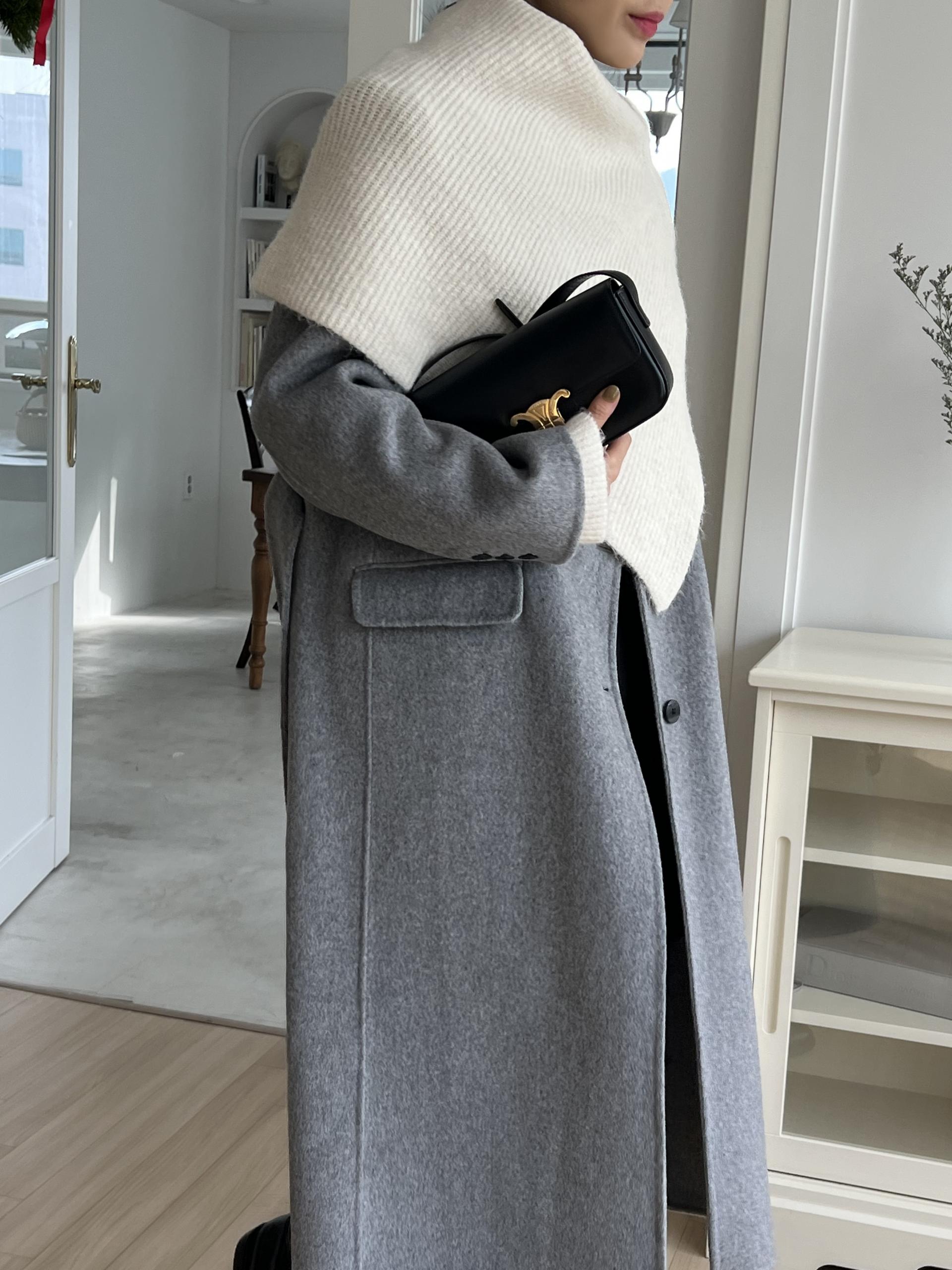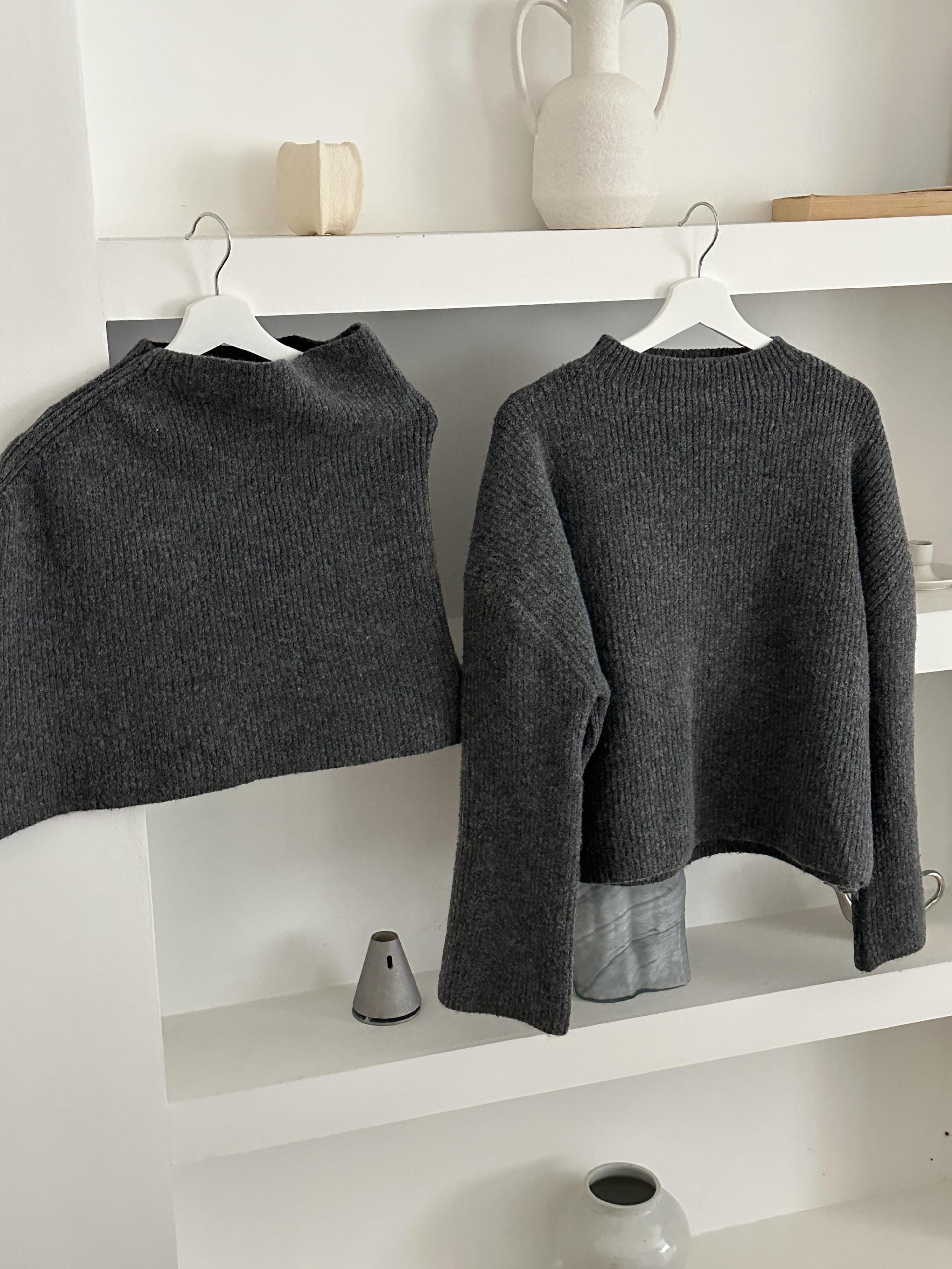 세로 골지 가공이 되어 있어 핏이 더 날씬하고 예쁘게 잡히는 니트 세트예요. 케이프 숄은 넥 워머 형태로 코트 위에 착용하셔도 좋아 따로따로 활용하기에도 좋은 상품입니다.