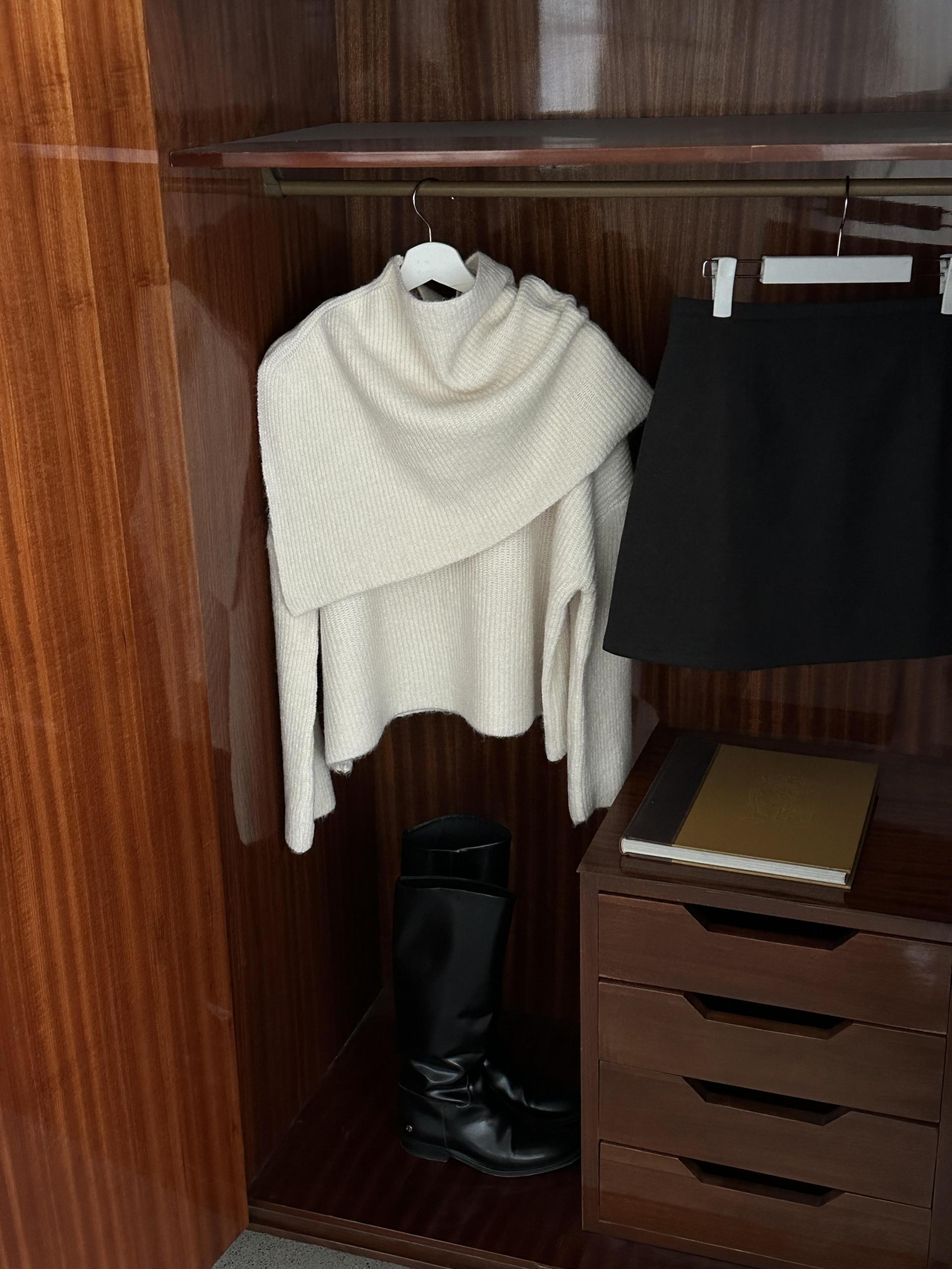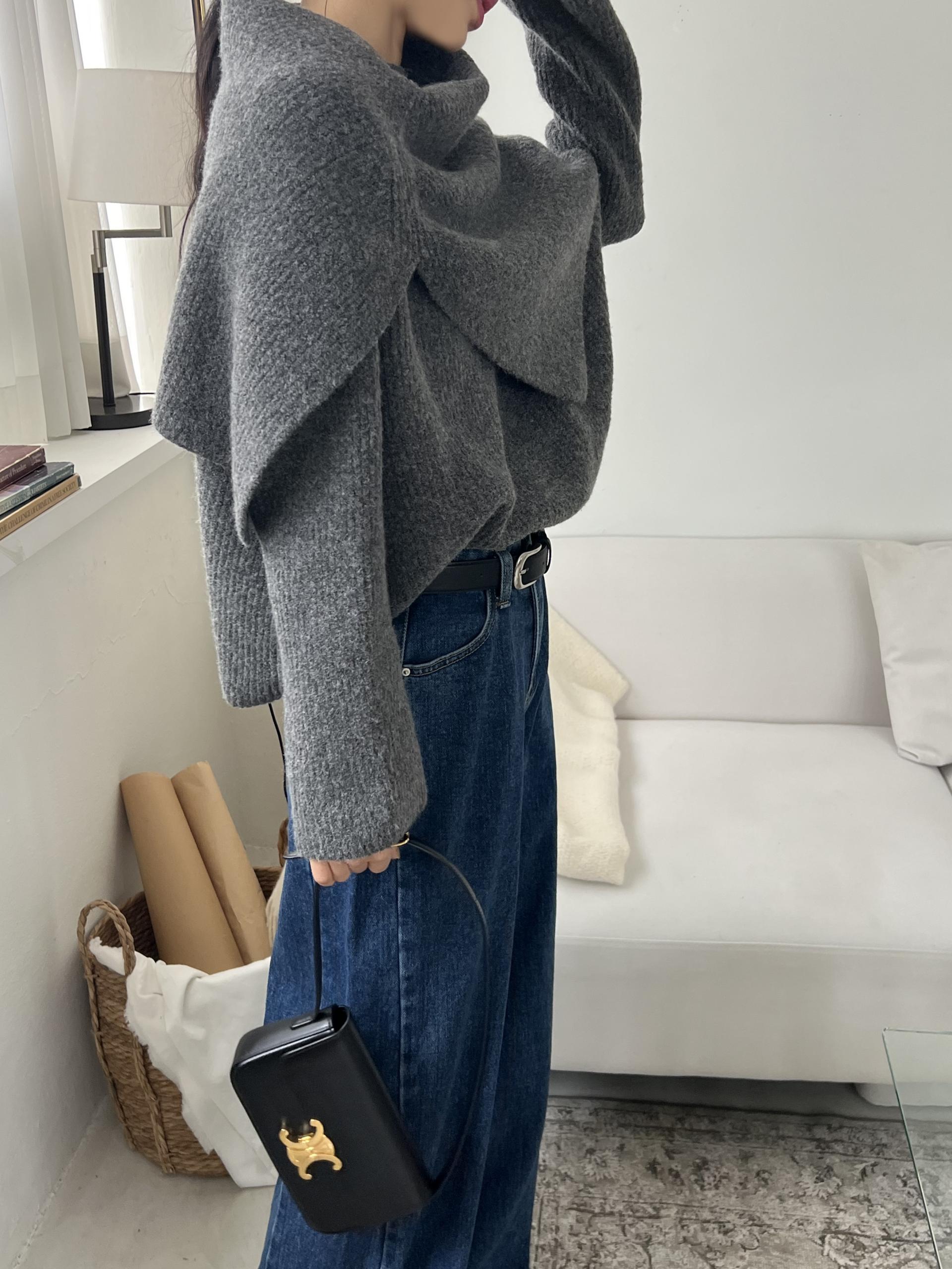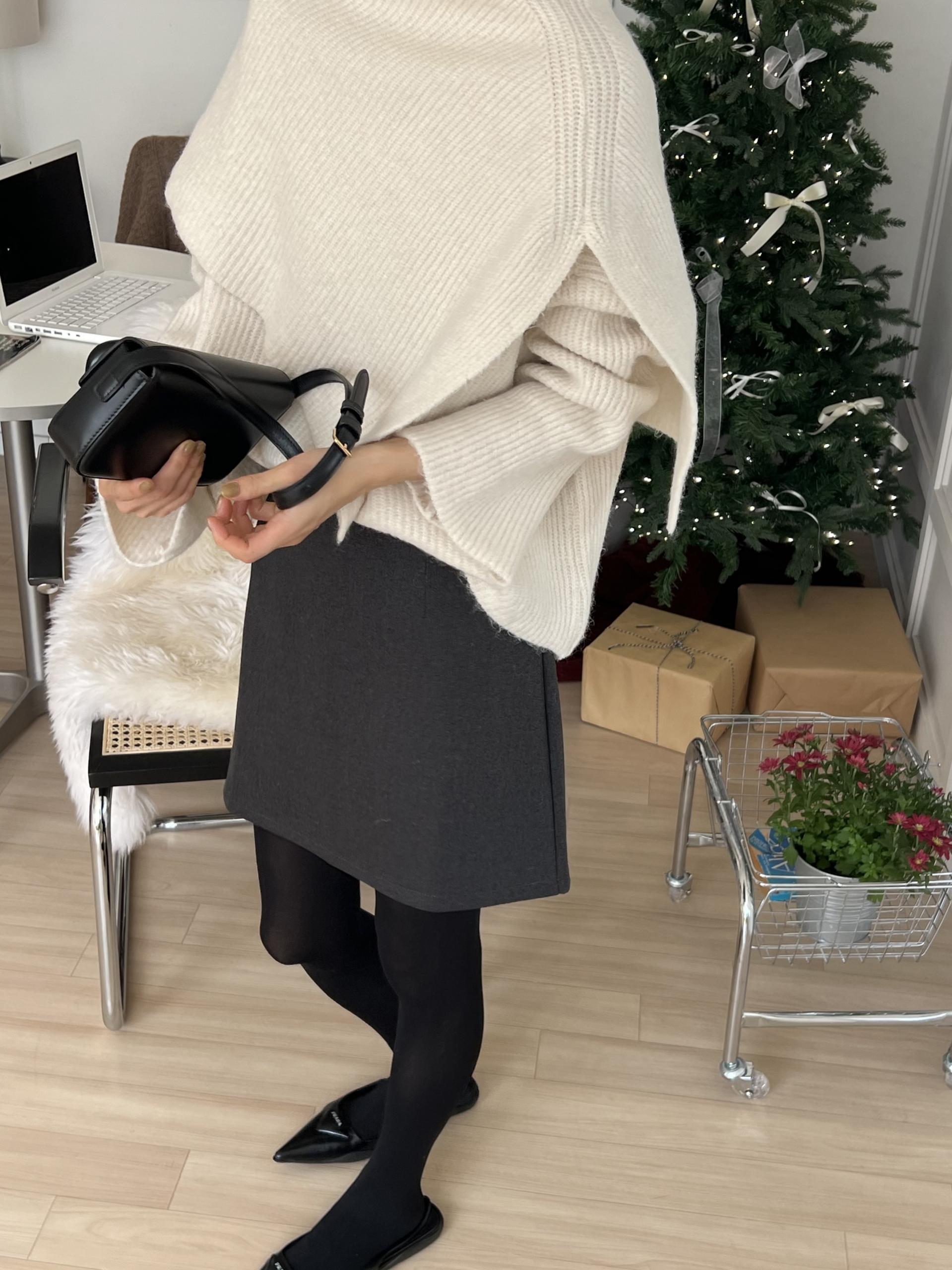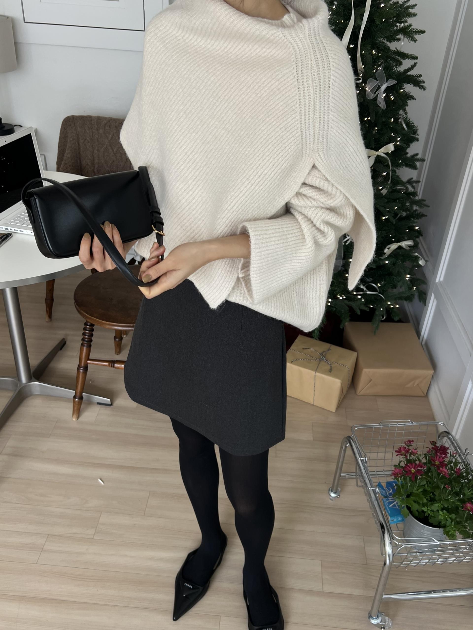 세로 골지 가공이 되어 있어 핏이 더 날씬하고 예쁘게 잡히는 니트 세트예요. 케이프 숄은 넥 워머 형태로 코트 위에 착용하셔도 좋아 따로따로 활용하기에도 좋은 상품입니다.