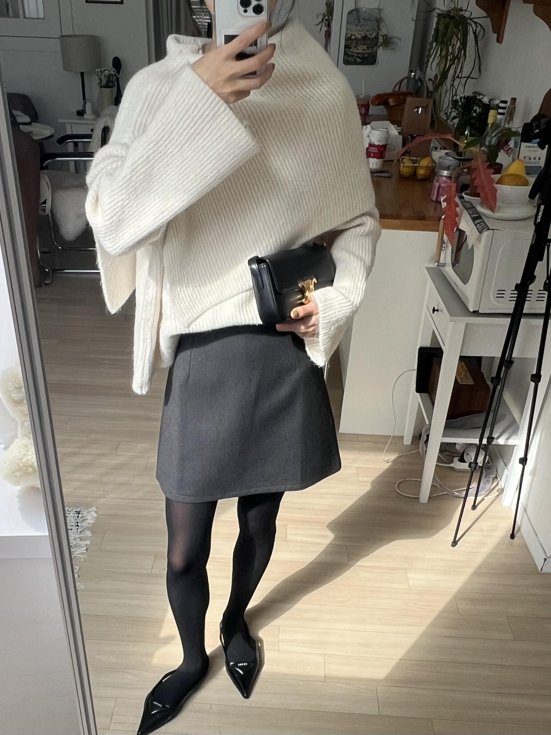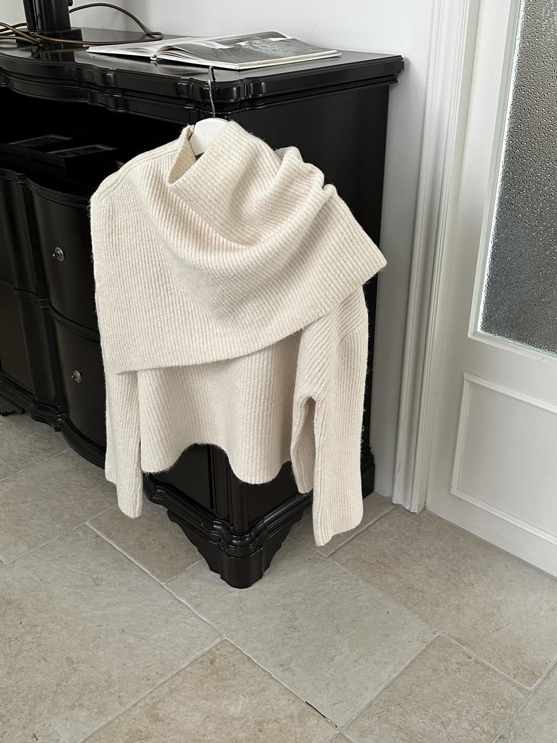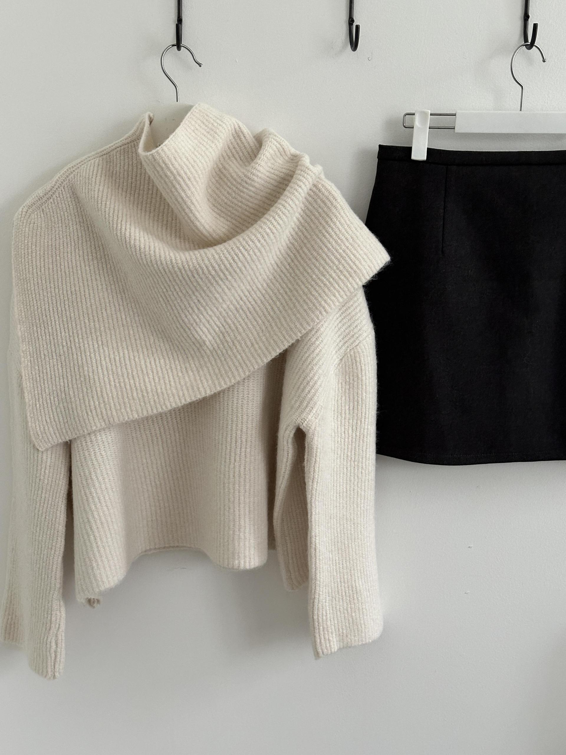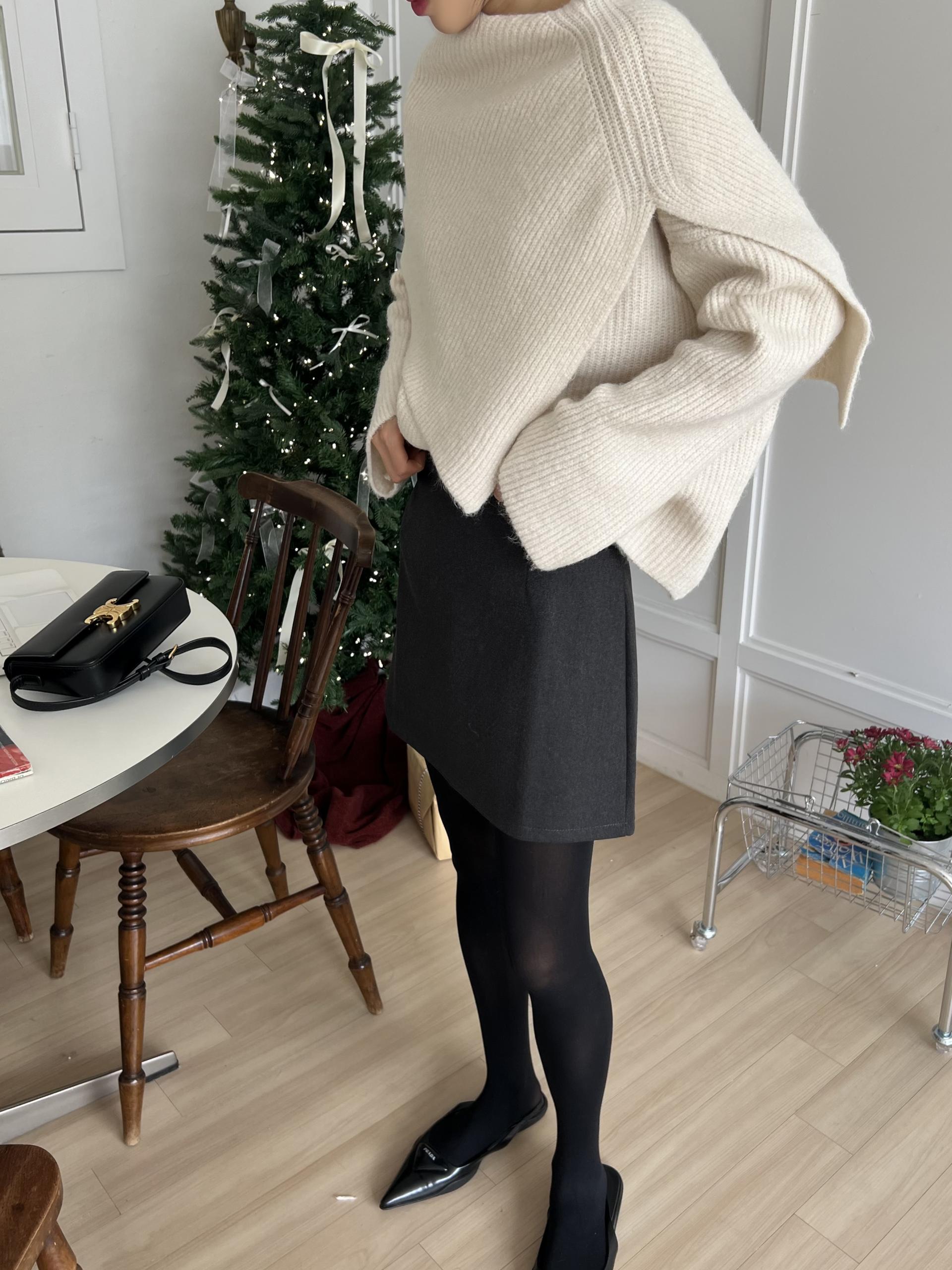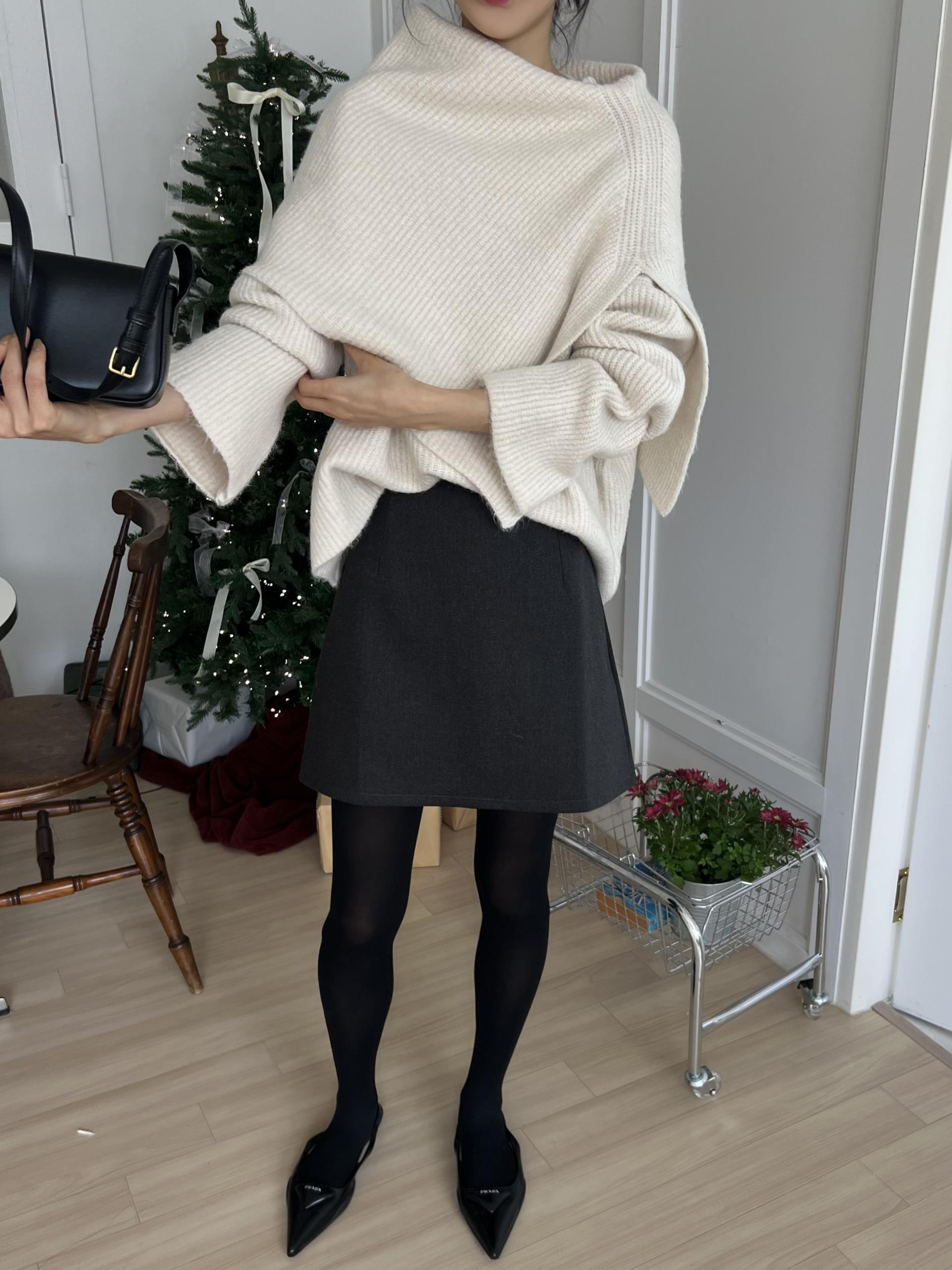 세로 골지 가공이 되어 있어 핏이 더 날씬하고 예쁘게 잡히는 니트 세트예요. 케이프 숄은 넥 워머 형태로 코트 위에 착용하셔도 좋아 따로따로 활용하기에도 좋은 상품입니다.