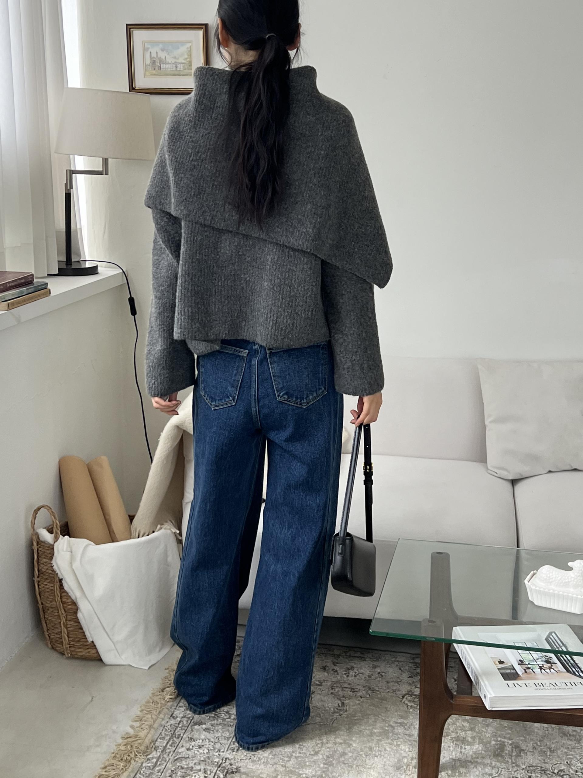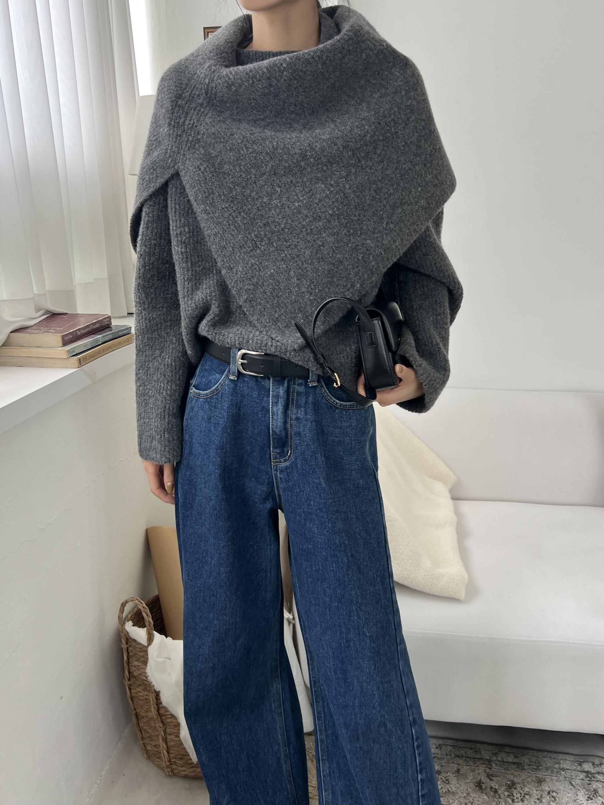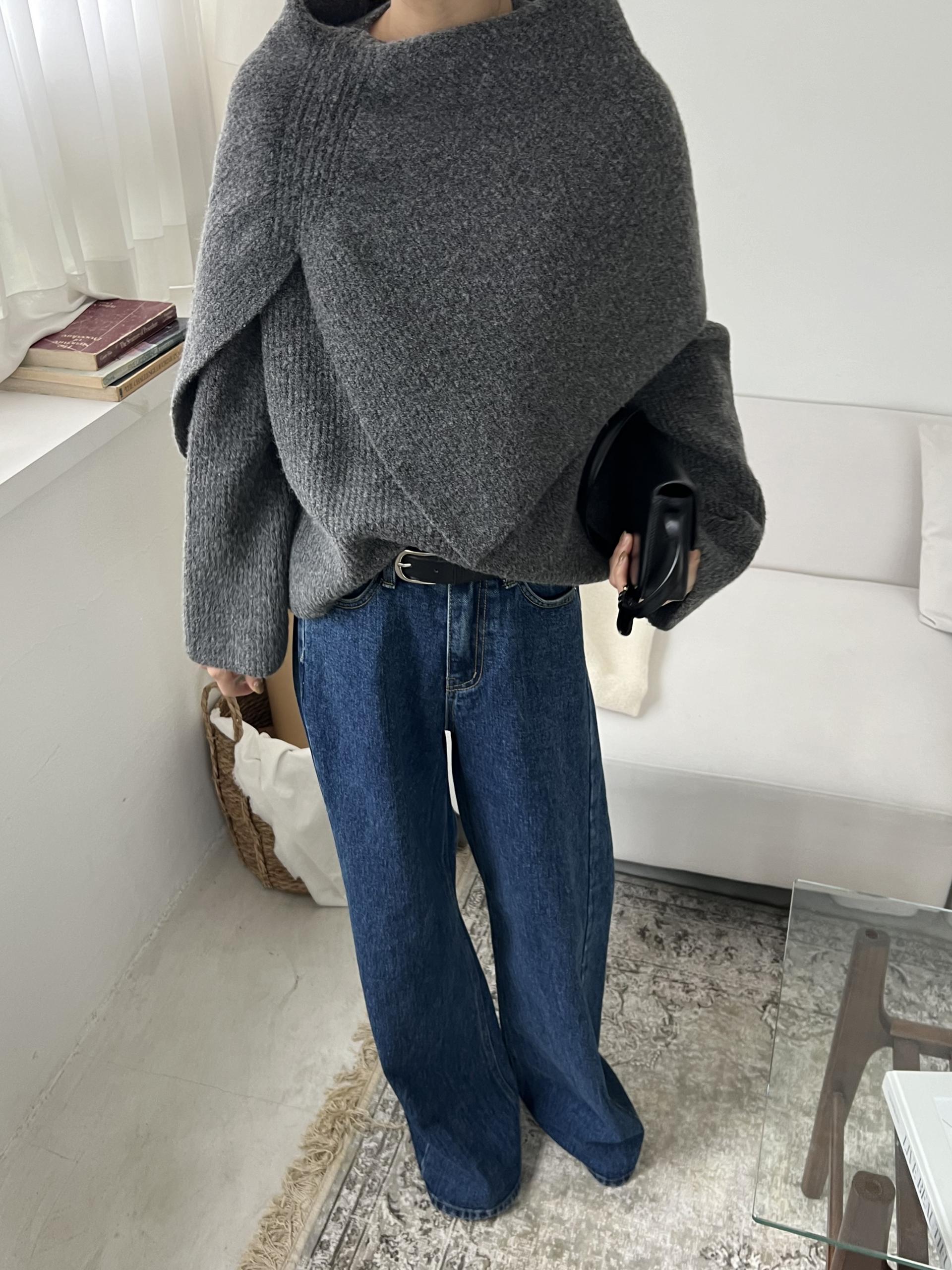 케이프 숄과 반목 니트가 세트인 상품입니다.
