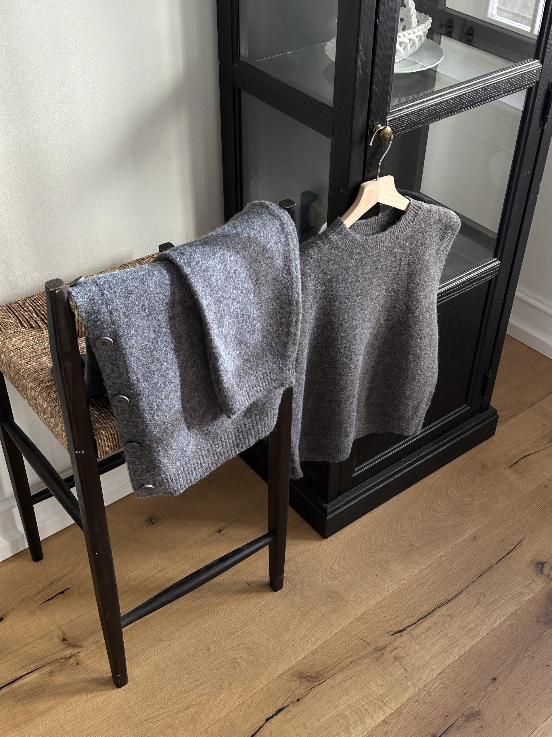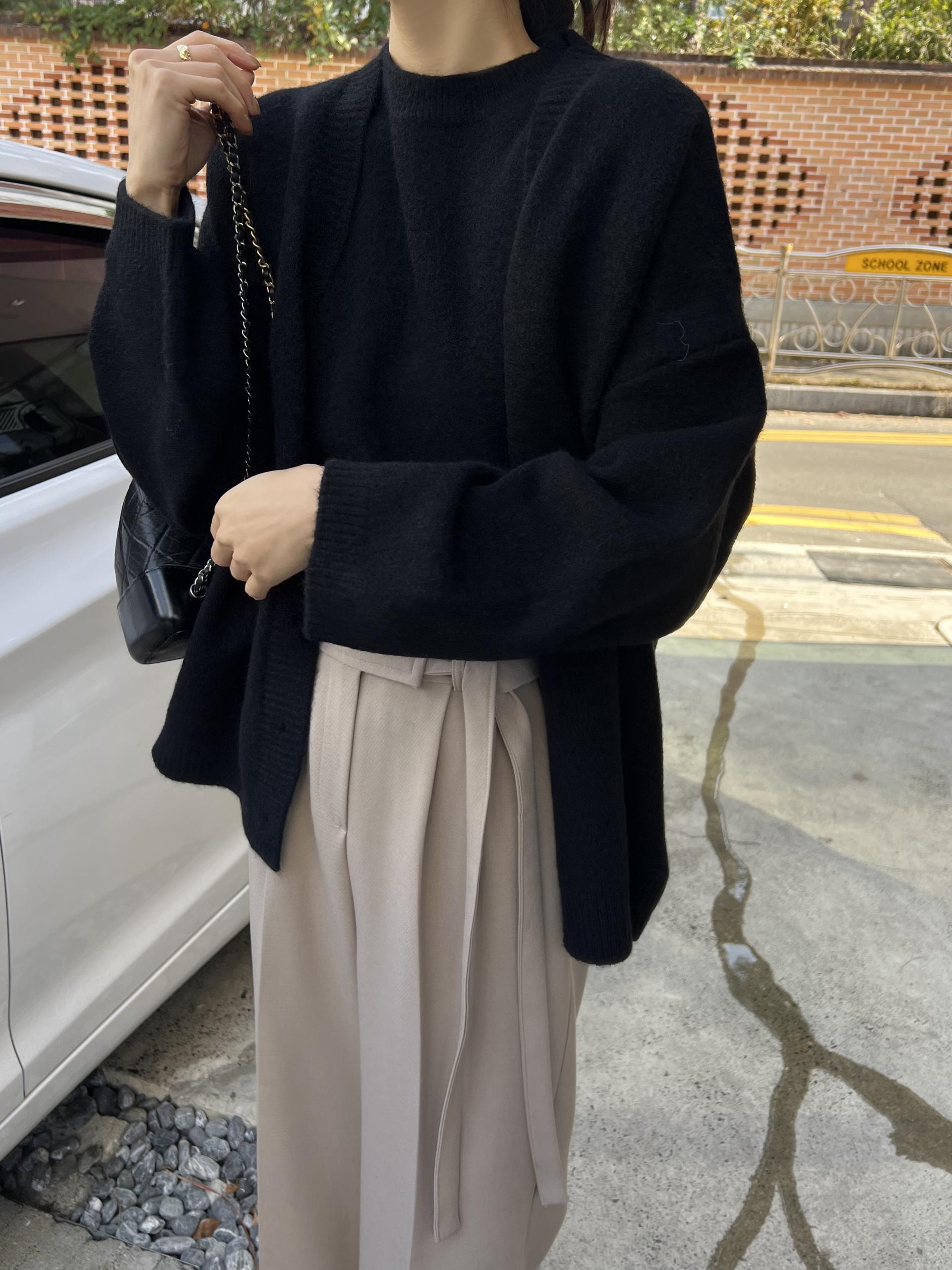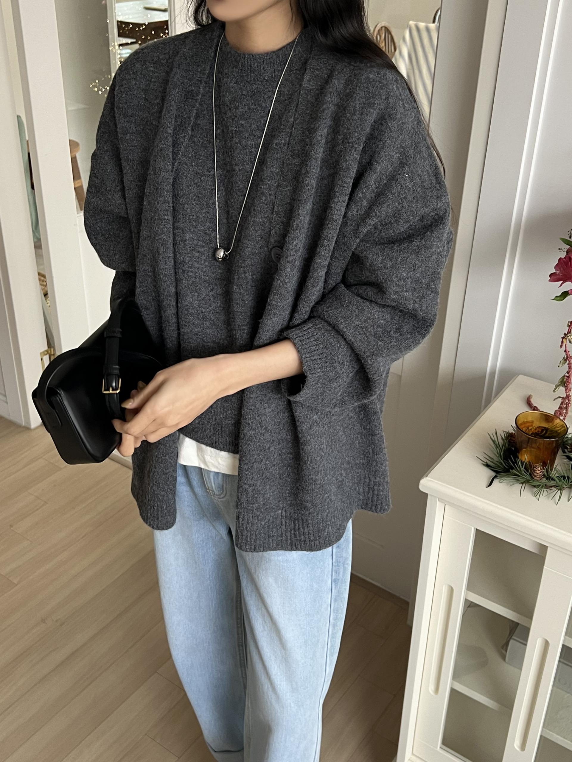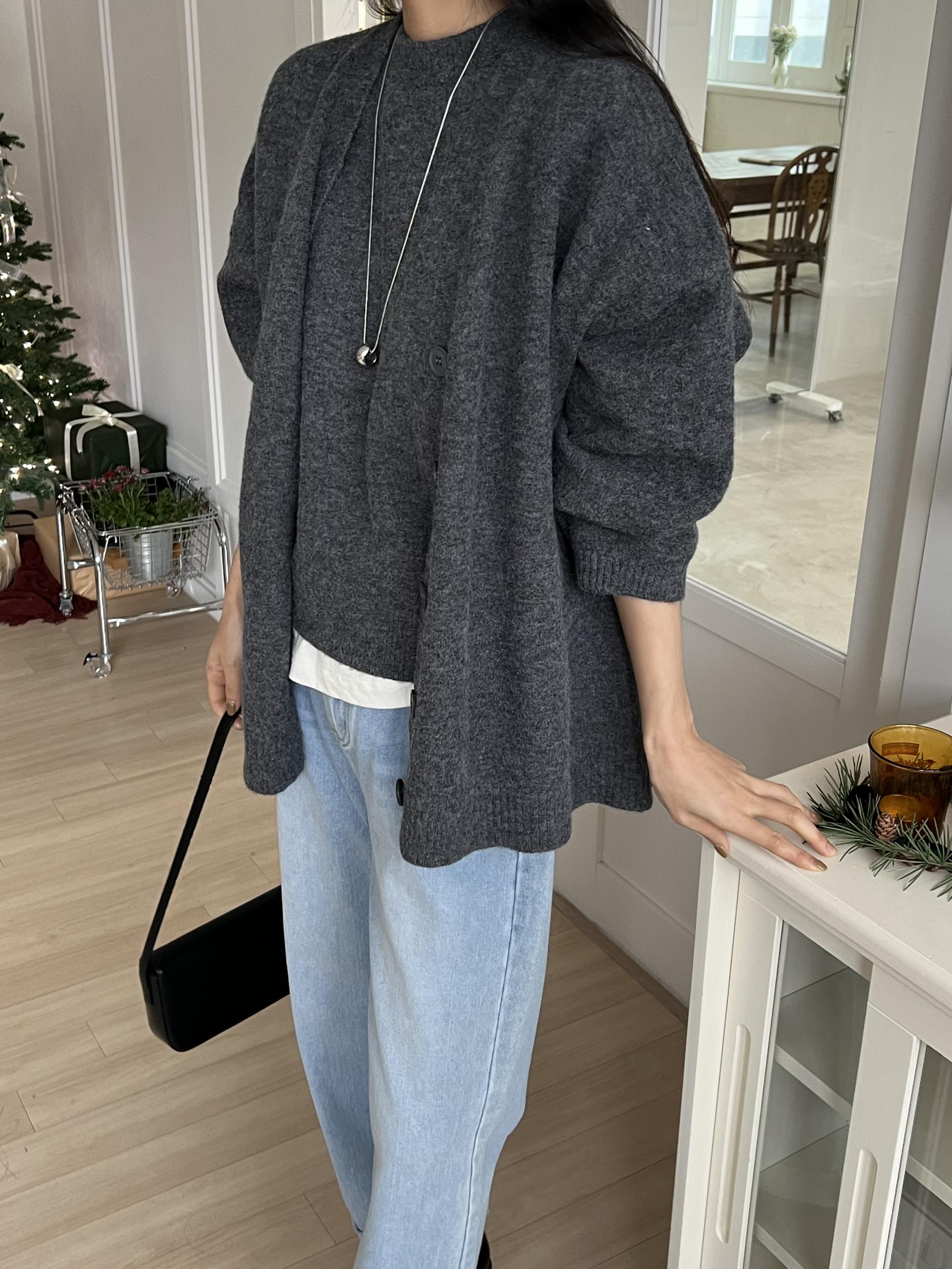 니트 조끼와 긴팔 가디건이 세트 구성인 투피스 상품입니다.