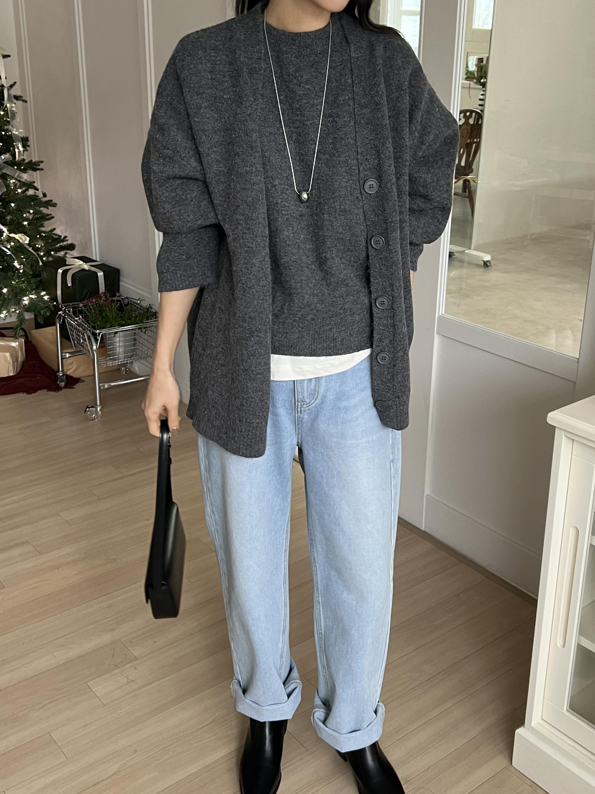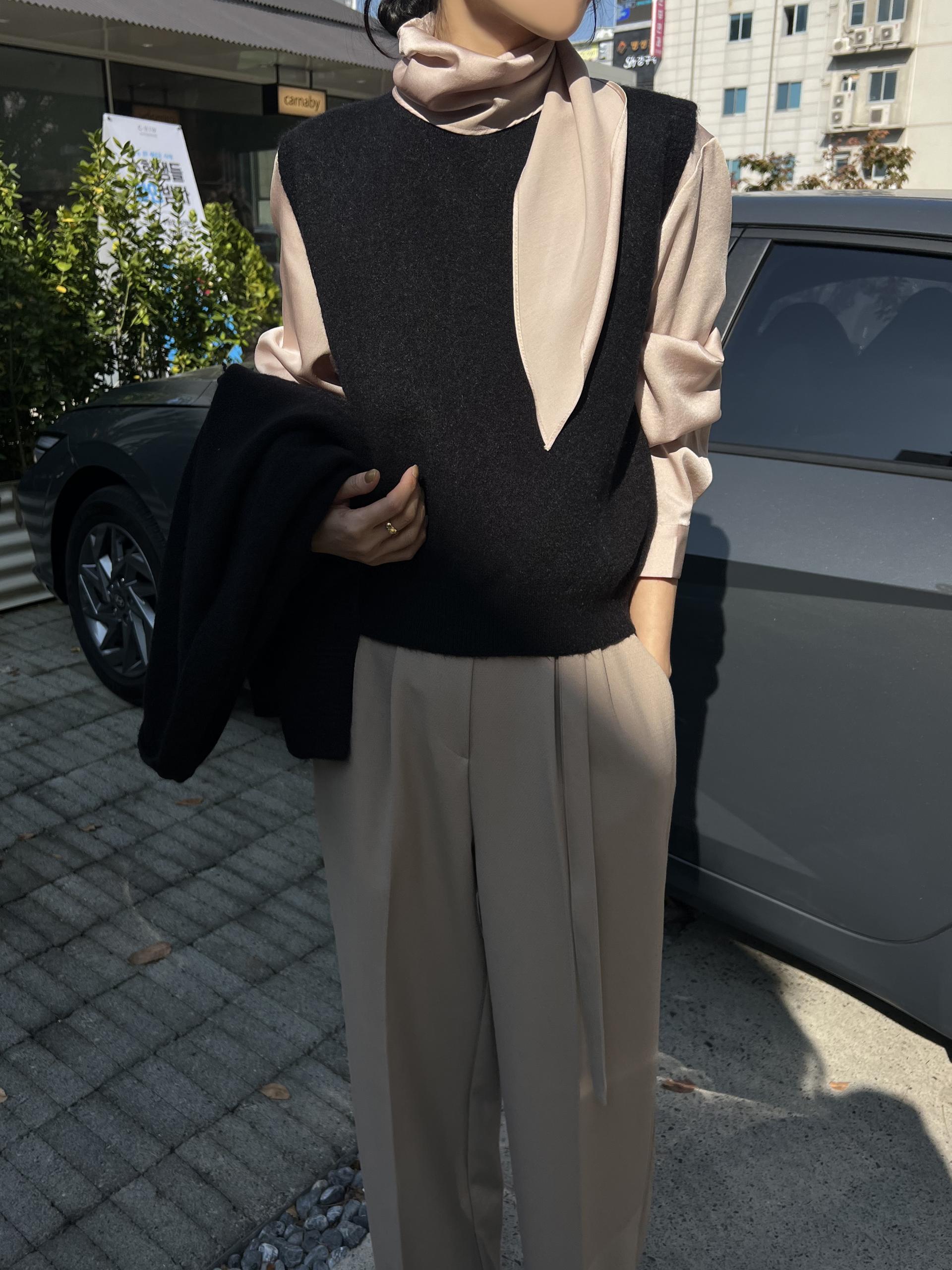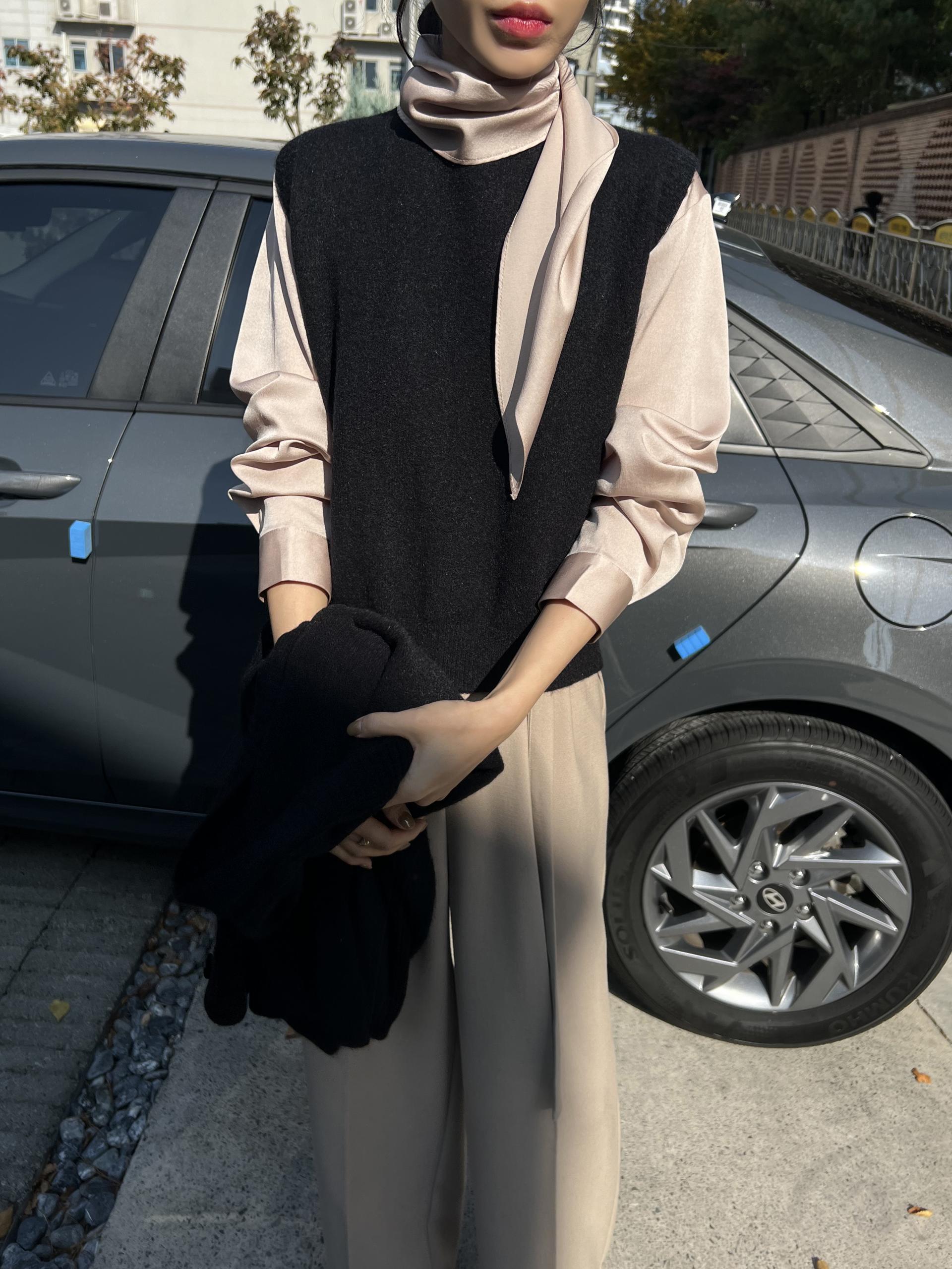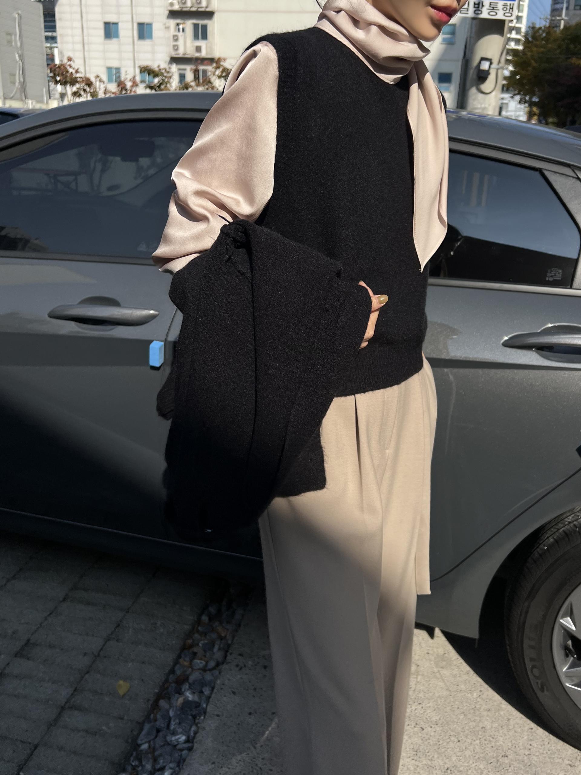 셔츠나 블라우스, 반팔, 목티 등 위에 조끼만 레이어드해서 착용하셔도 좋고, 조끼만 단독으로 입으신 뒤 가디건을 걸쳐 주셔도 좋아요. 가디건은 힙을 덮는 기장이라 세트로도 단품으로도 활용도가 아주 높습니다.