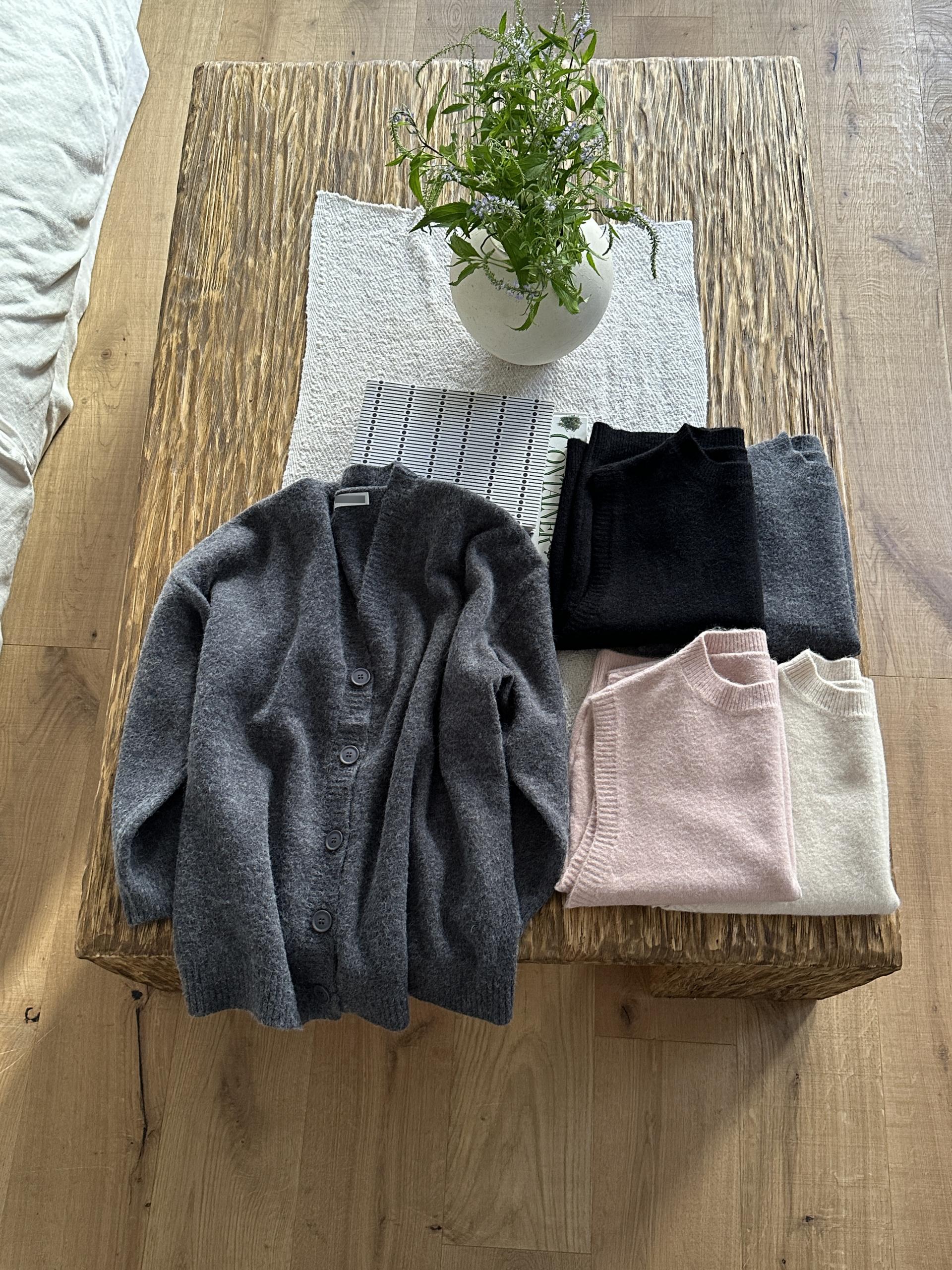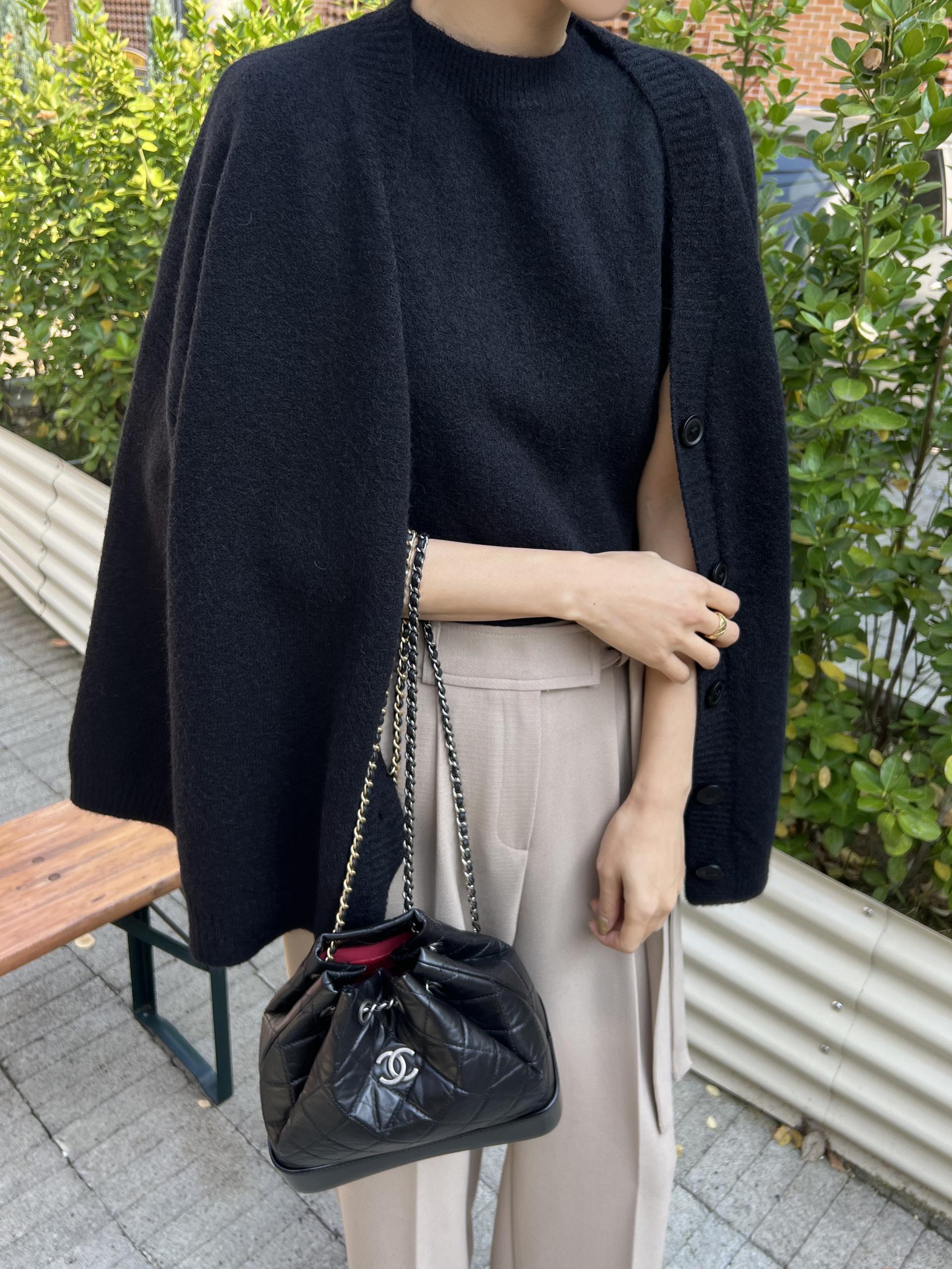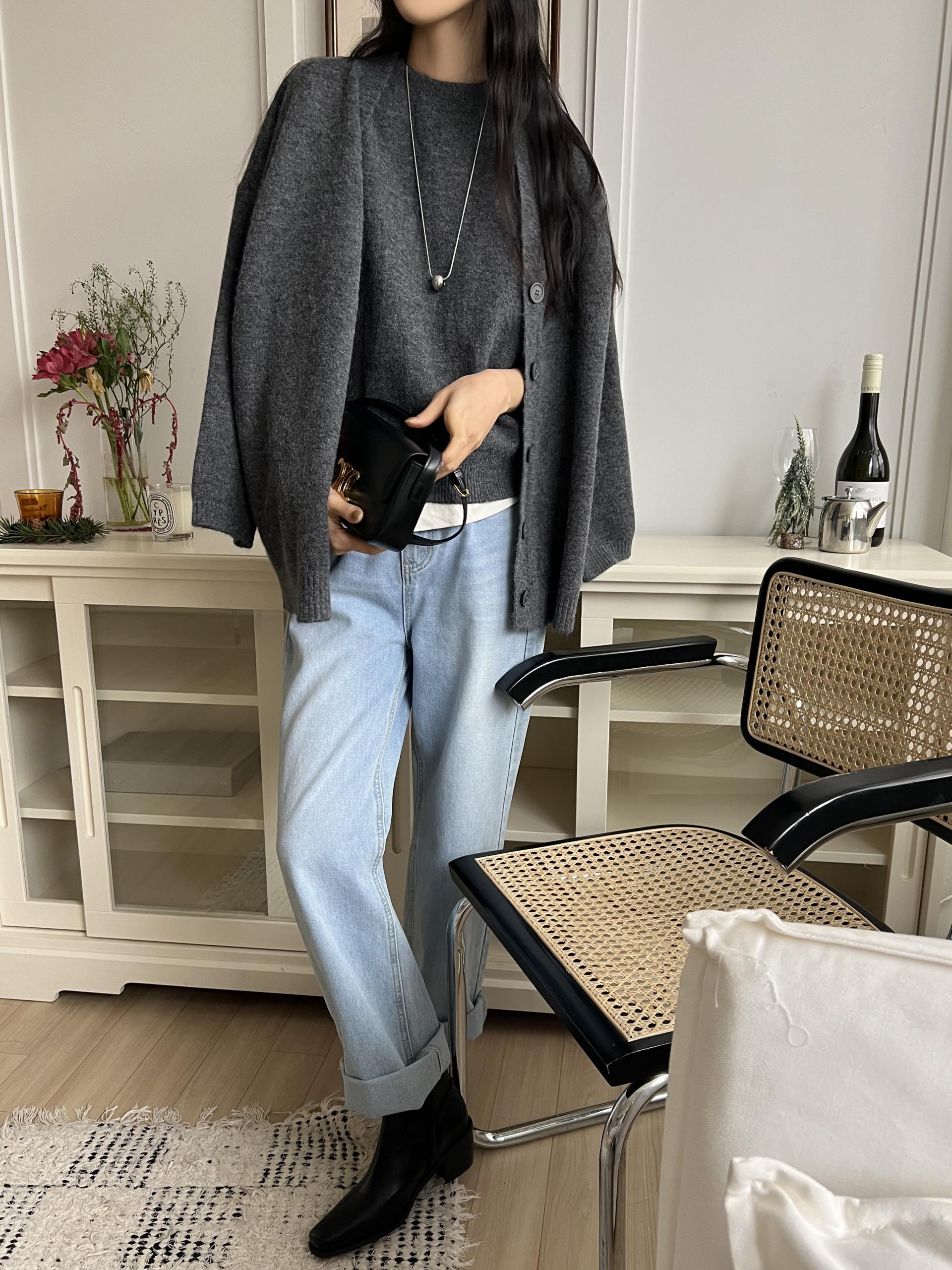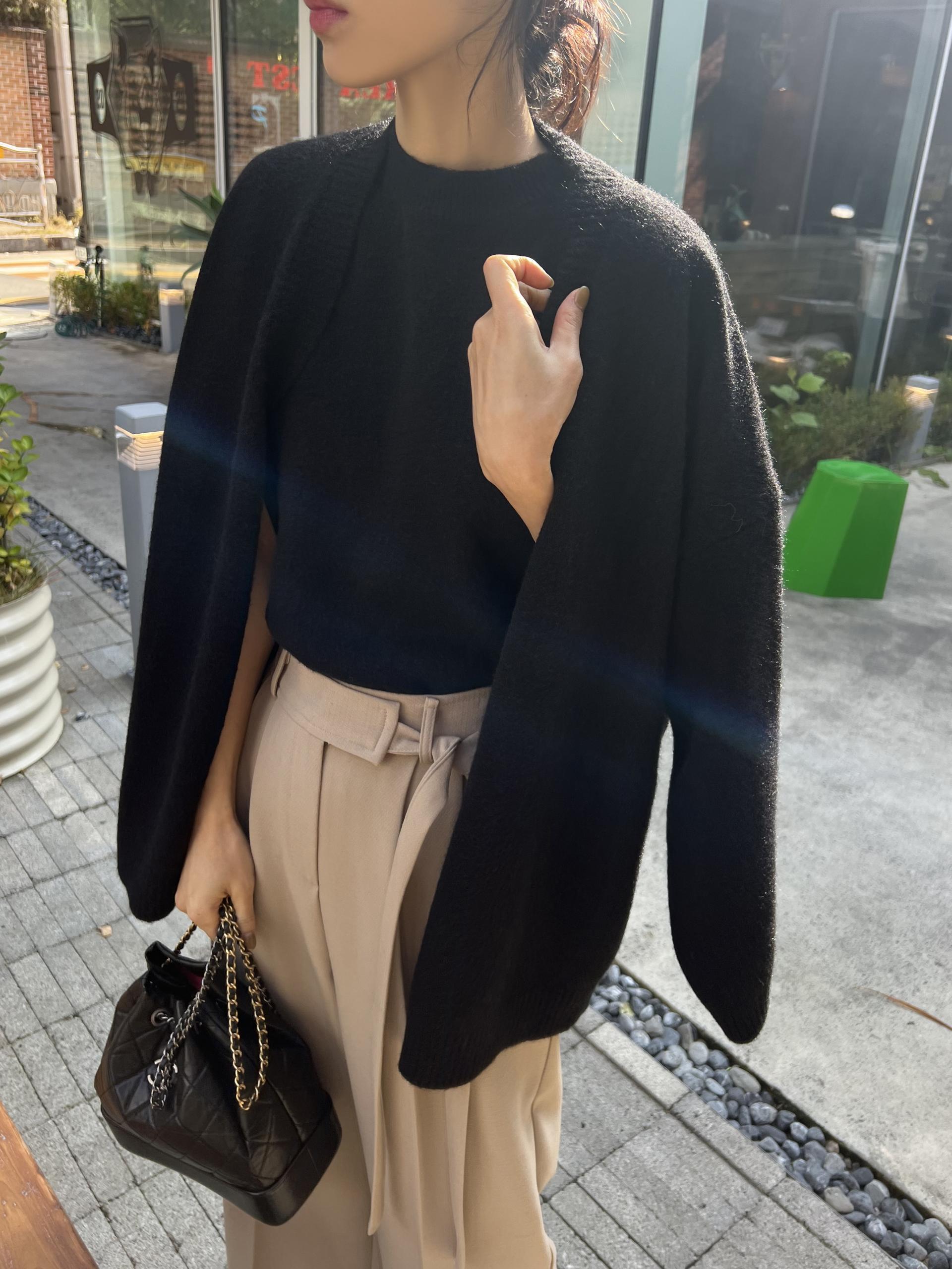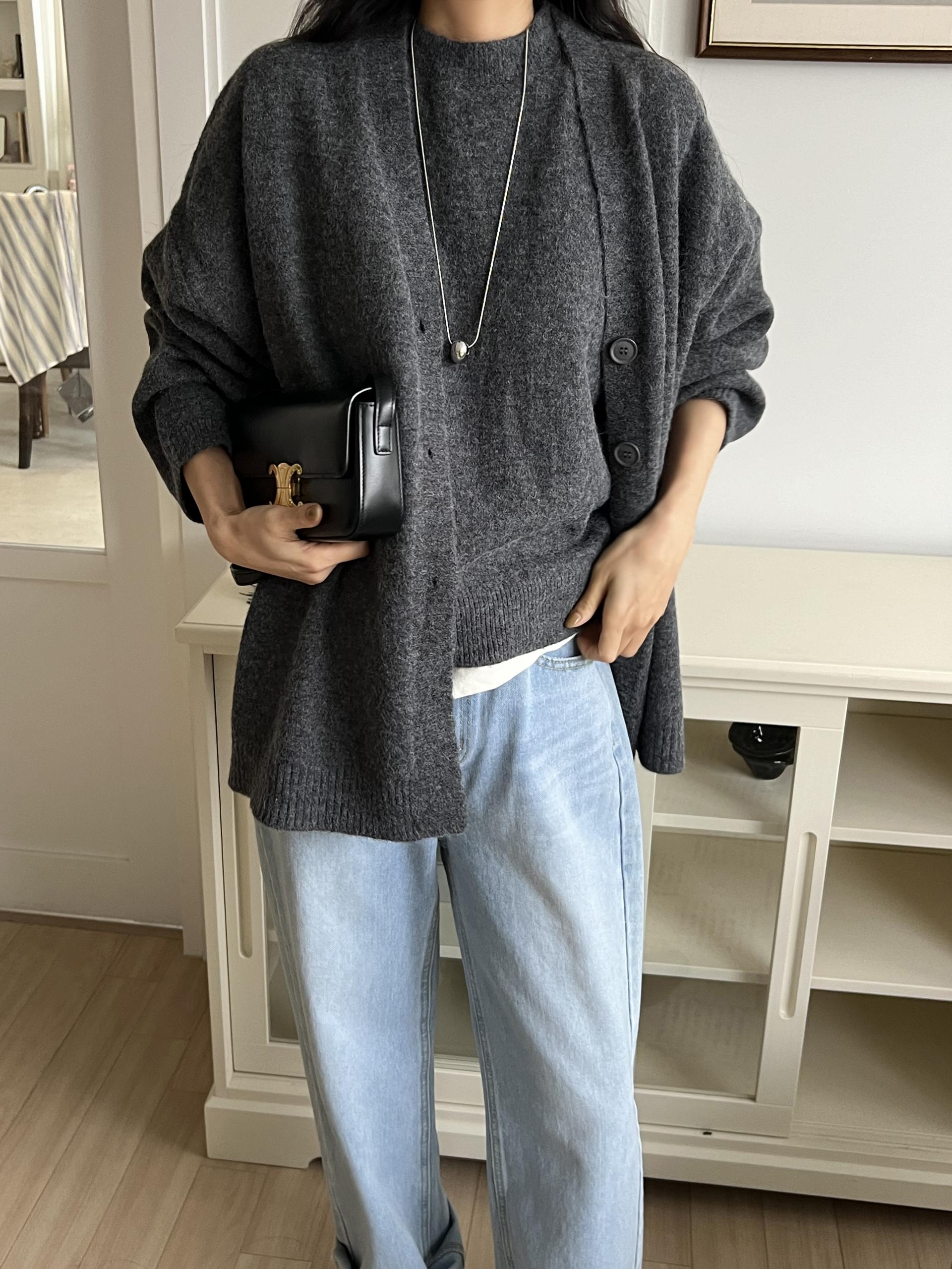 셔츠나 블라우스, 반팔, 목티 등 위에 조끼만 레이어드해서 착용하셔도 좋고, 조끼만 단독으로 입으신 뒤 가디건을 걸쳐 주셔도 좋아요. 가디건은 힙을 덮는 기장이라 세트로도 단품으로도 활용도가 아주 높습니다.
