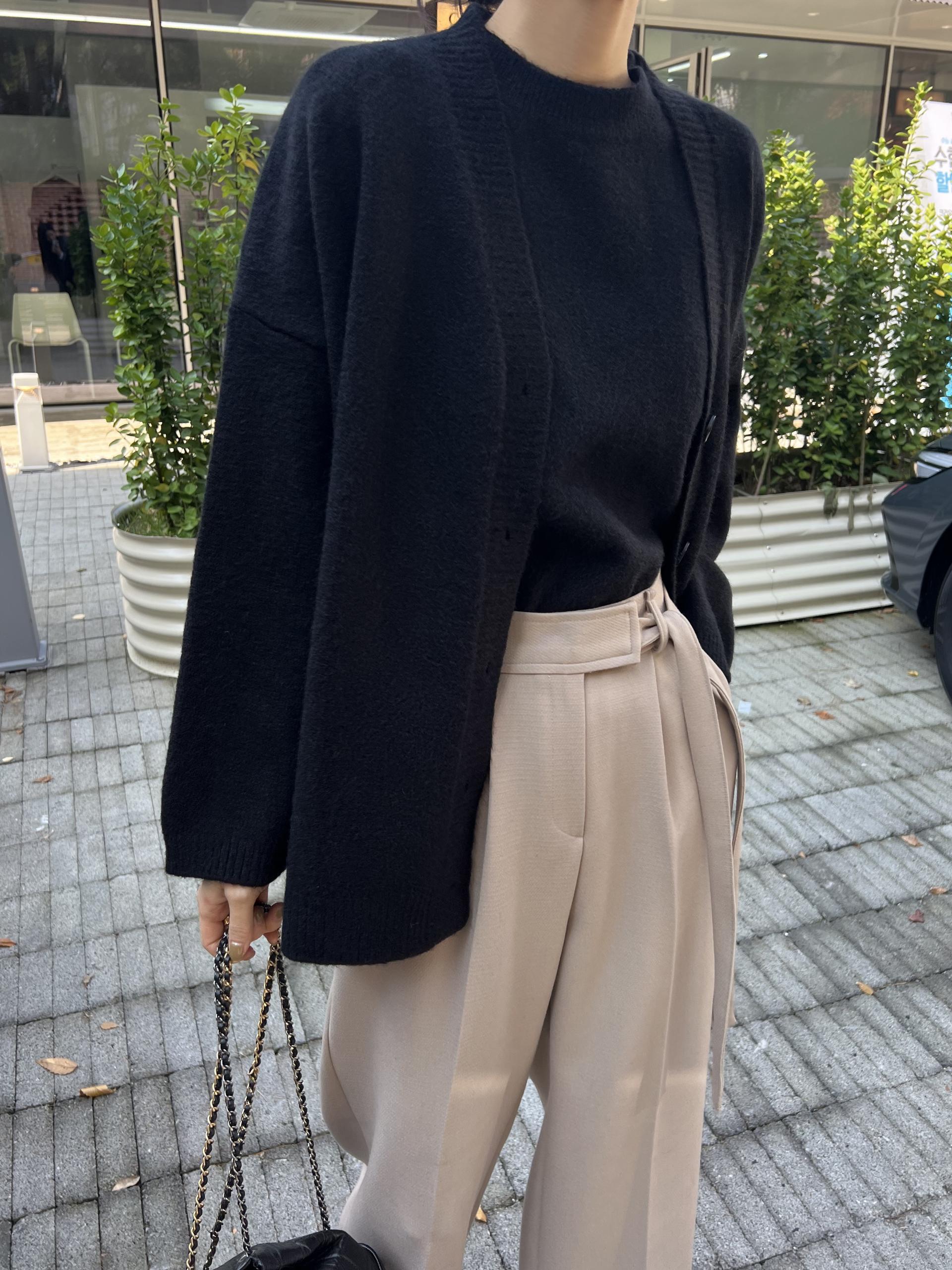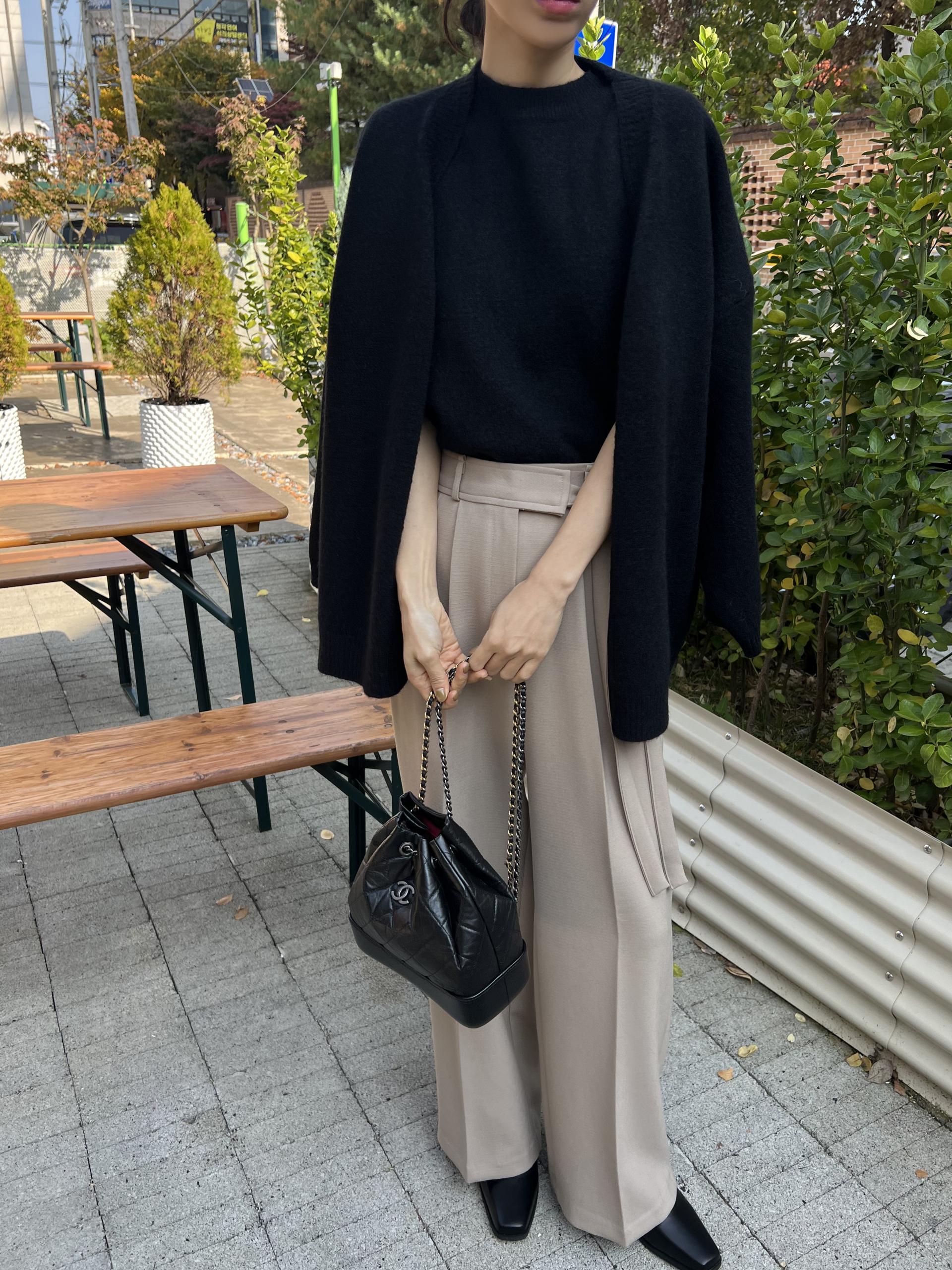 다양하게 레이어드해 매치하기도 좋지만, 저는 딱 구성 그대로 입었을 때 가장 고급스러우면서 세련된 느낌이 들었던 것 같아요. 같은 컬러와 원단의 두 아이템을 겹쳐 입었을 때의 그 심플하면서 세련된 느낌이 좋아 구성 그대로도 입어 보시고 단품으로도 다양하게 활용해 보시길 바랍니다.