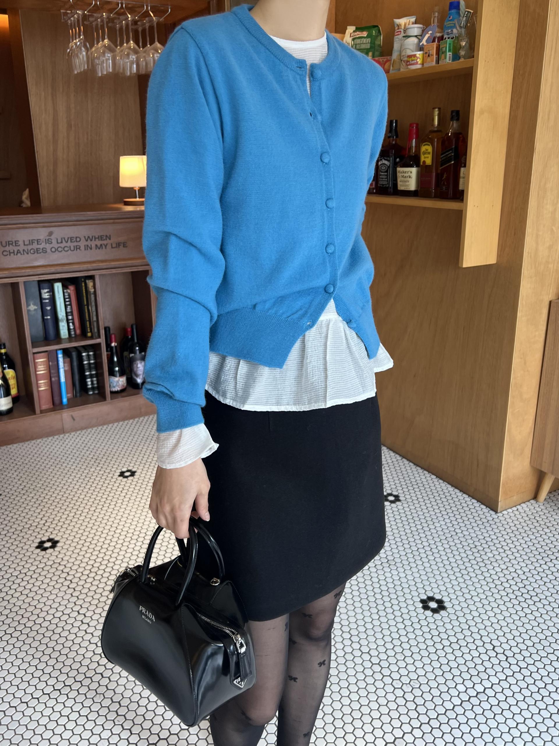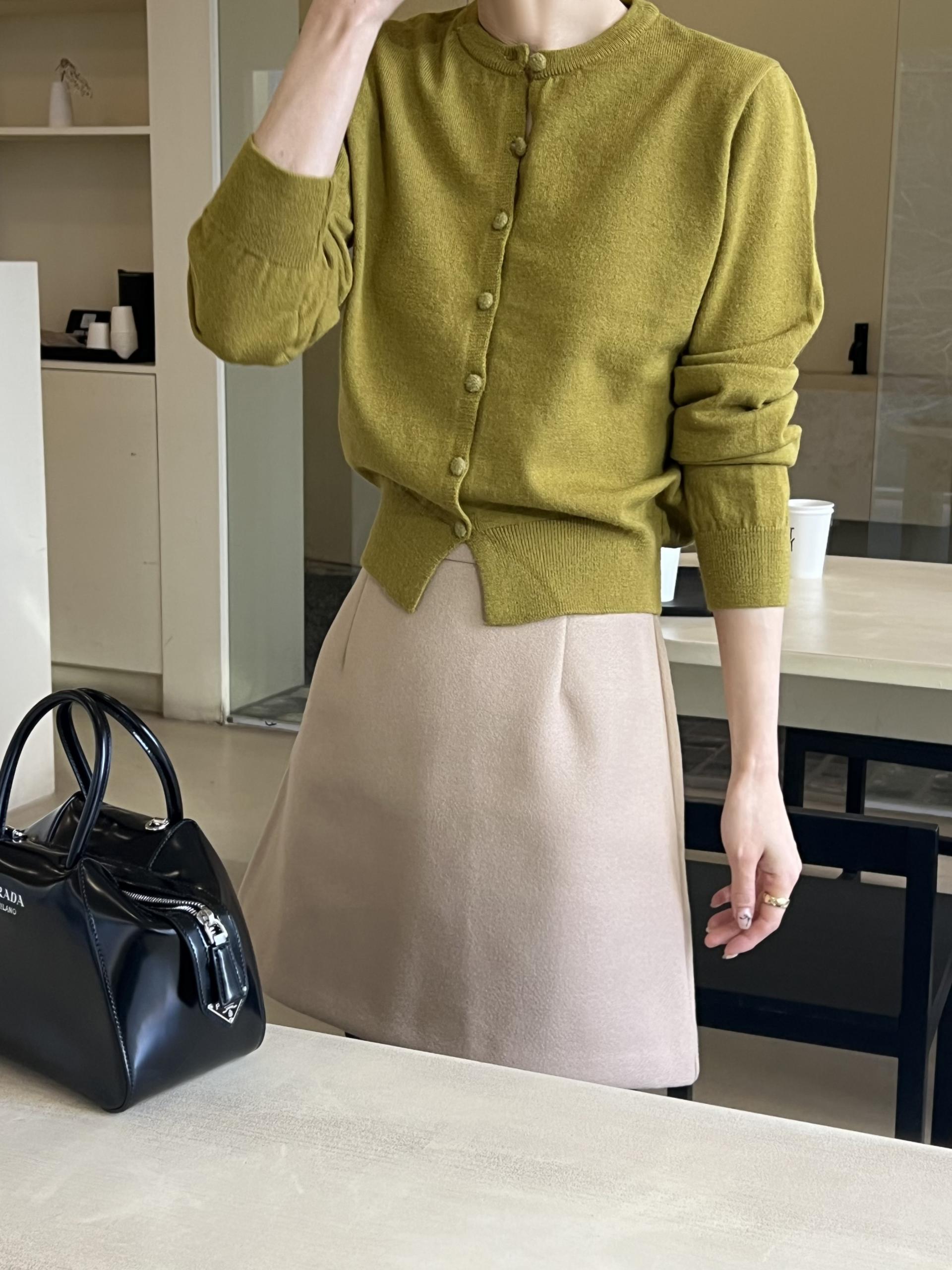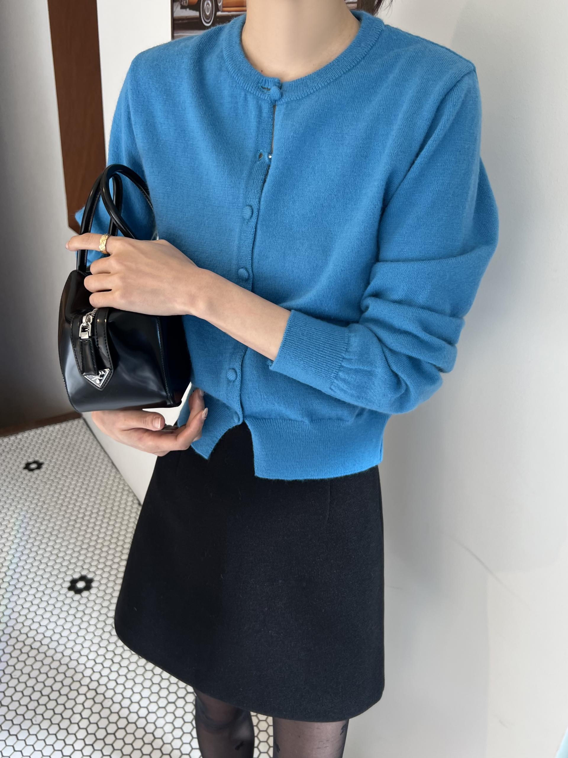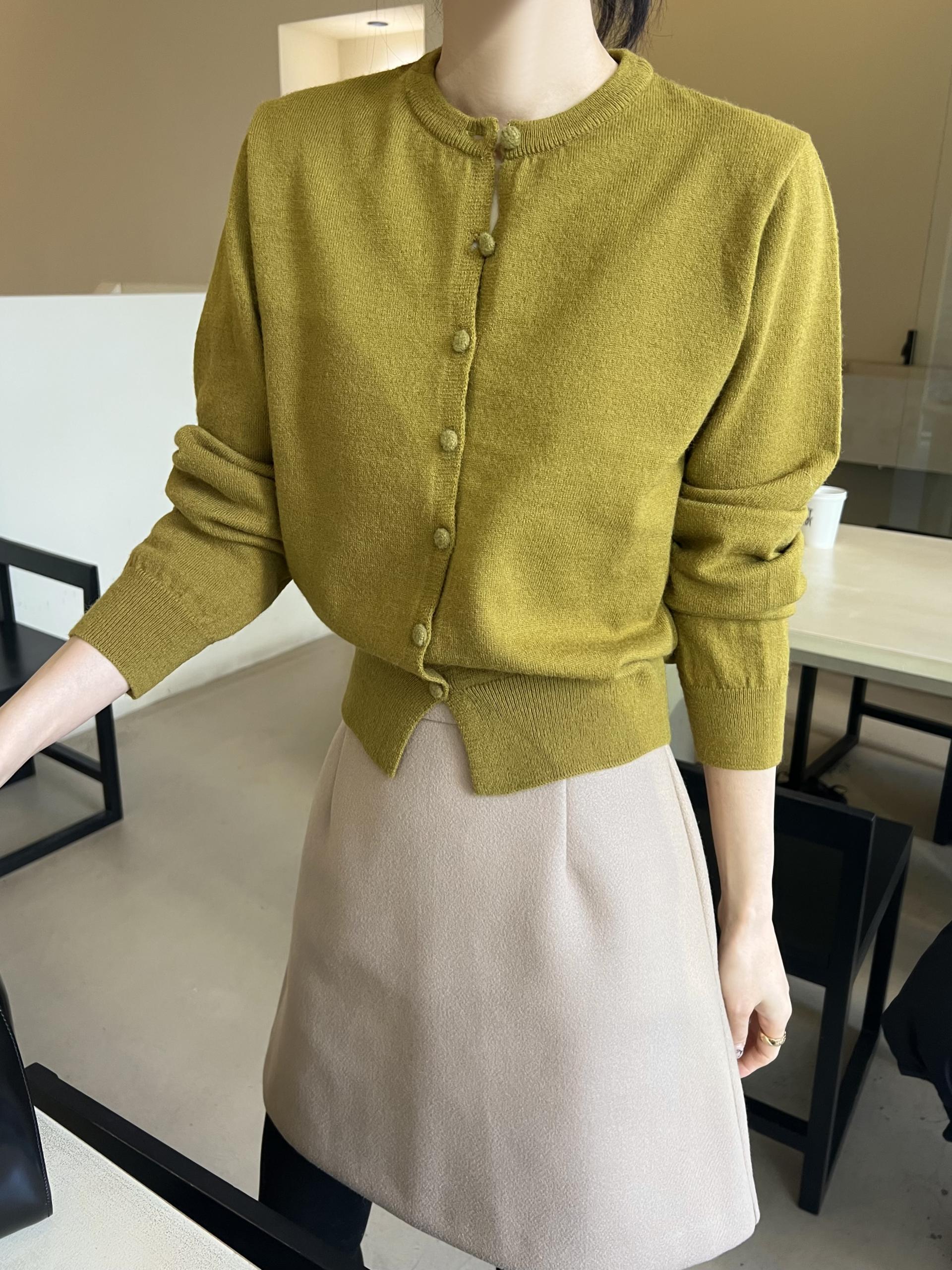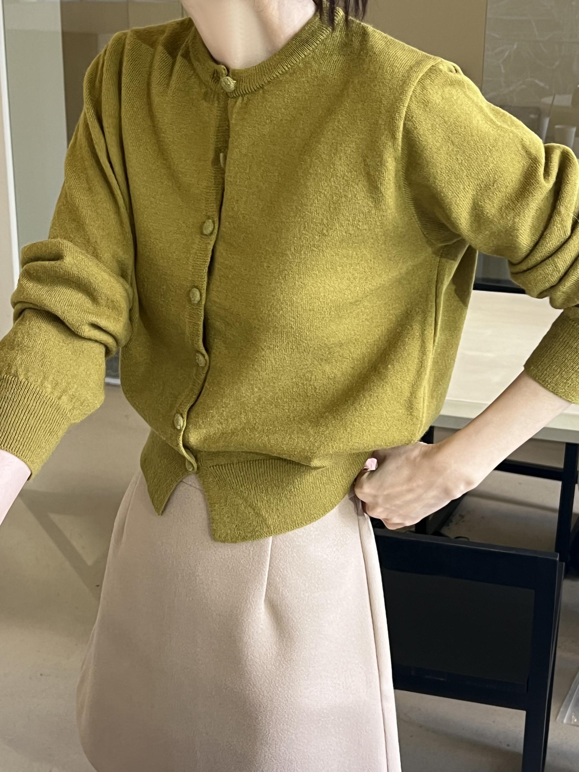 깔끔하고 세련된 싸개 단추 디테일과 스탠다드한 핏의 데일리 니트 가디건입니다.