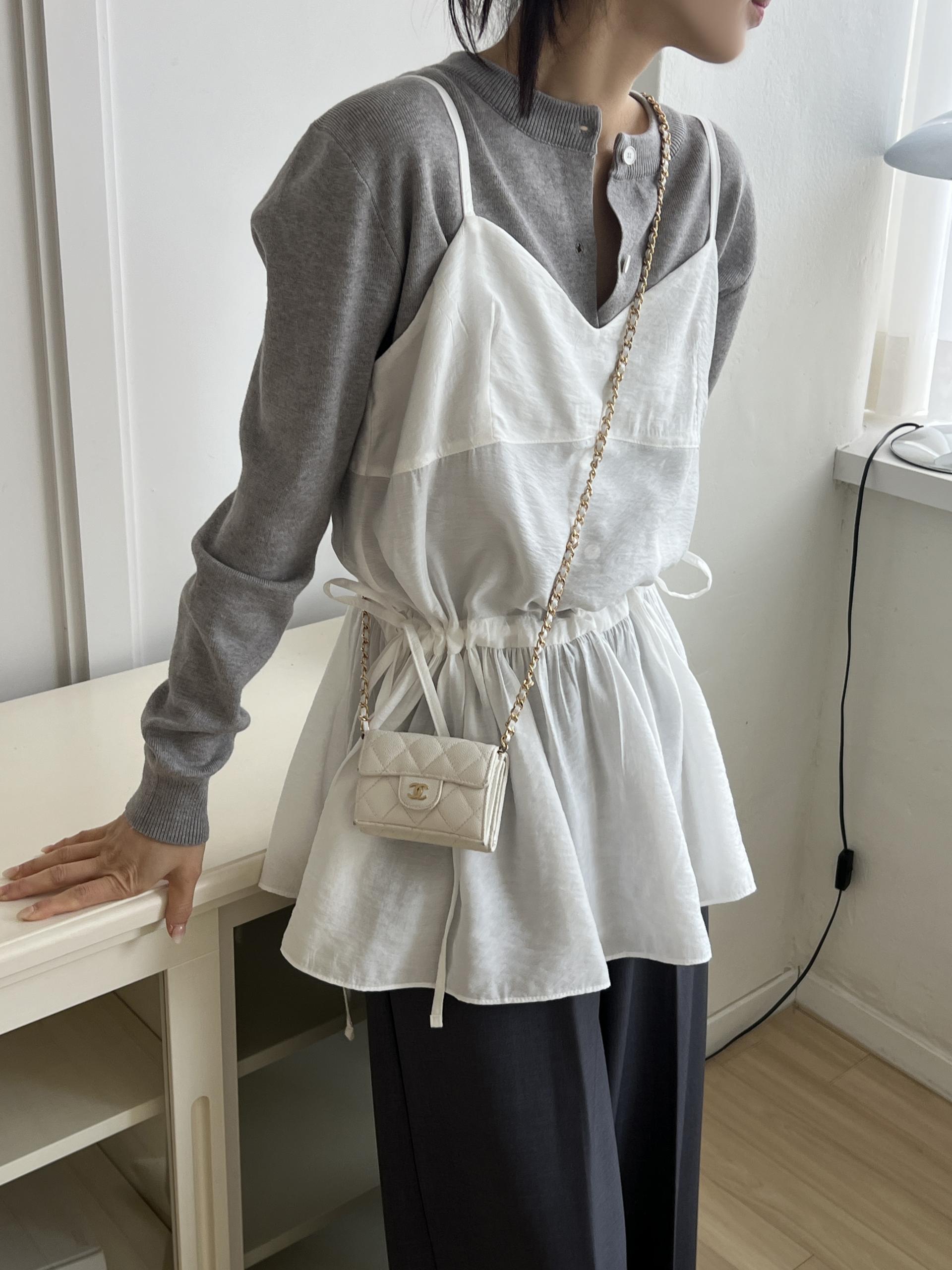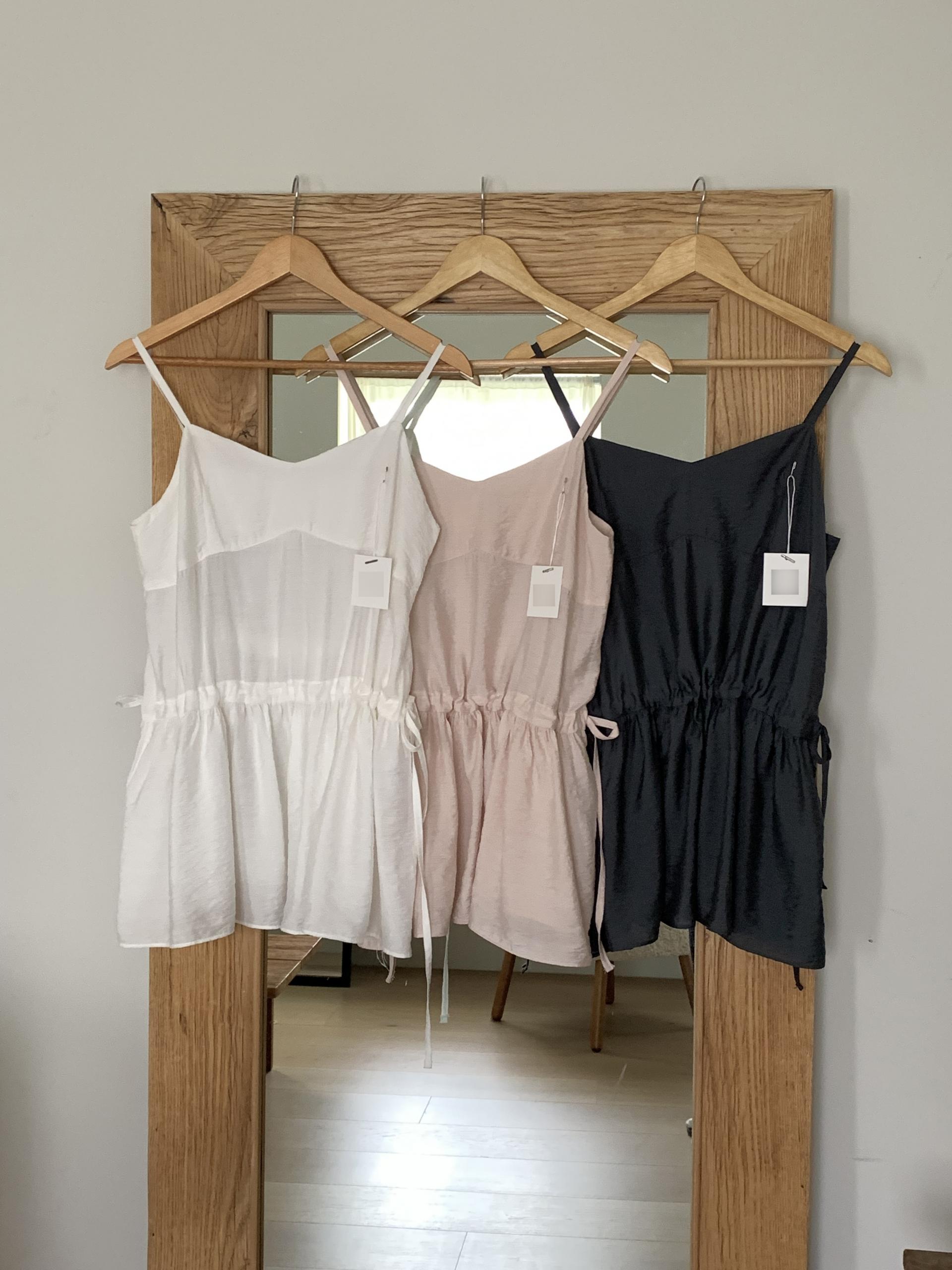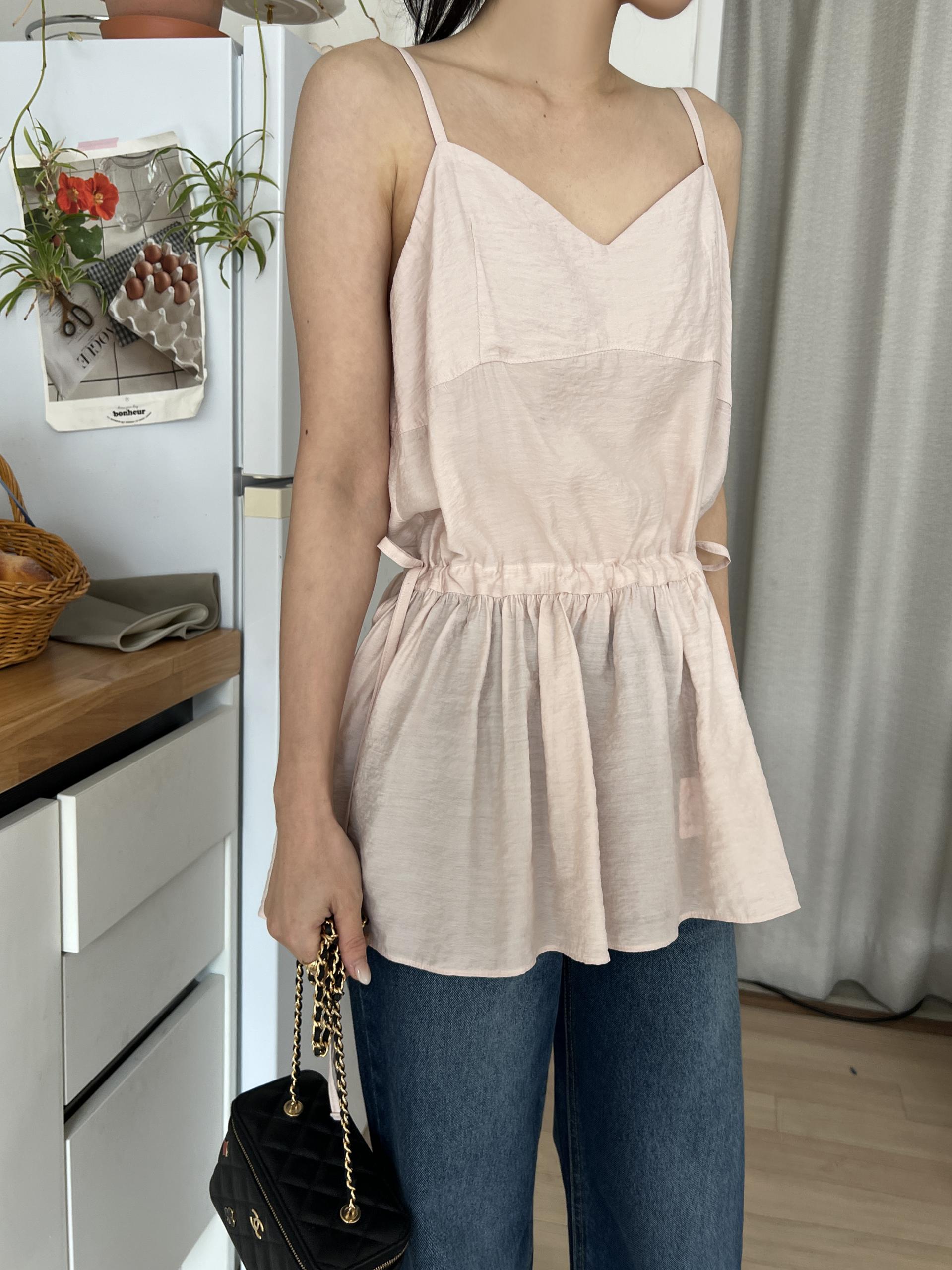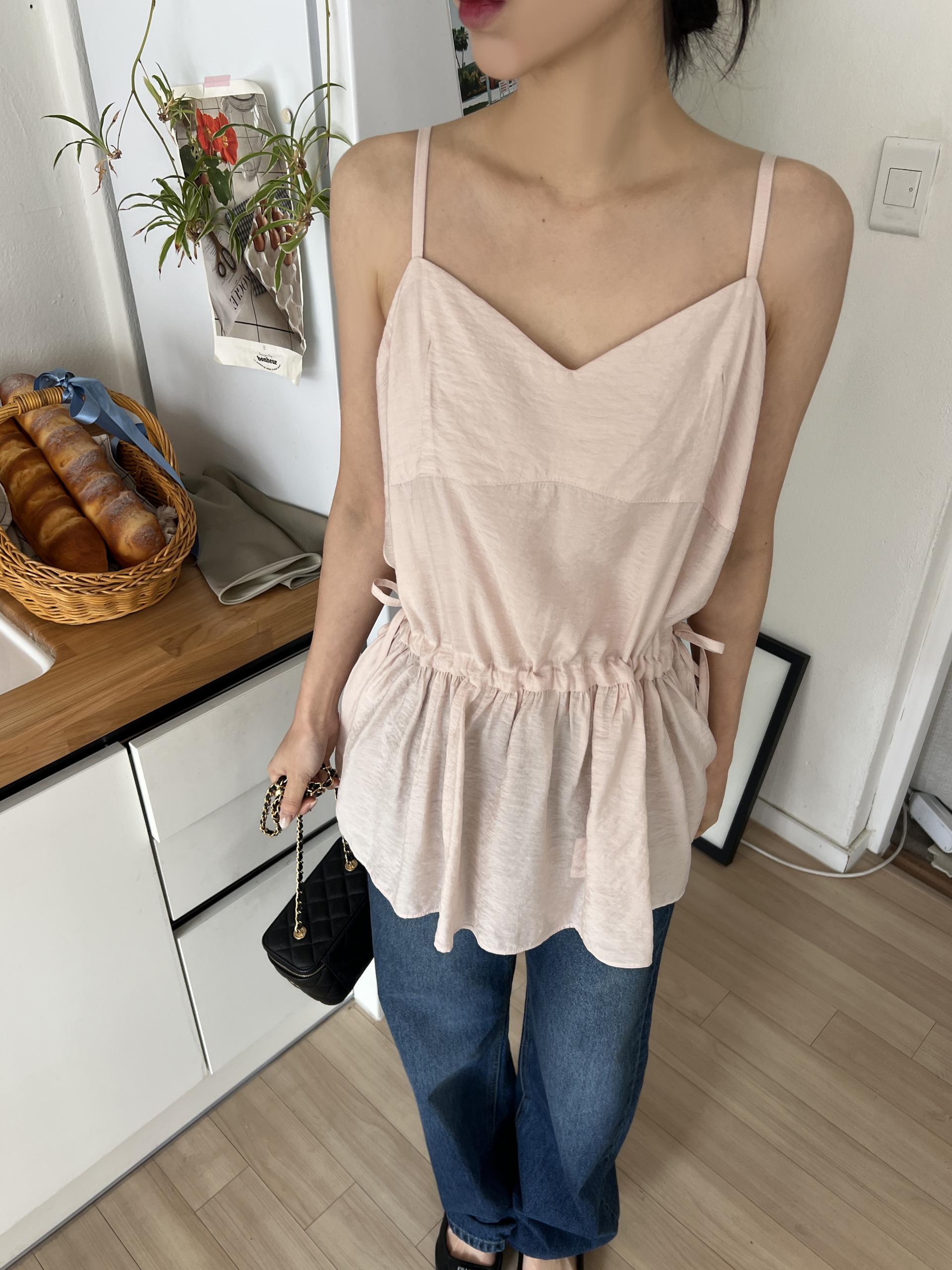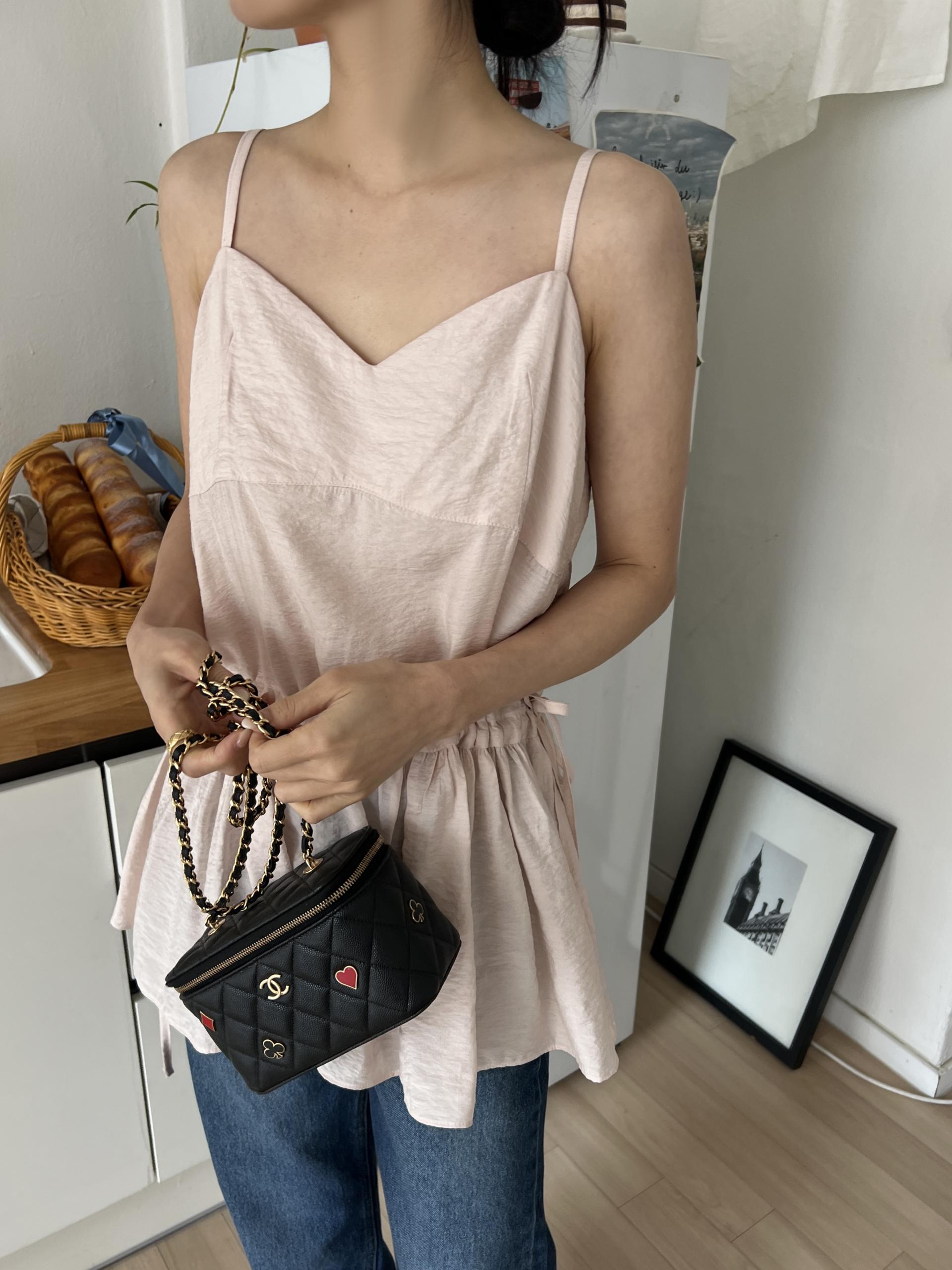 허리 양쪽의 끈을 쪼아 셔링과 라인을 잡을 수 있어 취향에 맞게 핏을 연출하시면 됩니다. 실크 같은 여리한 소재감으로 봄, 여름 시즌 무한히 활용하실 수 있을 거예요.