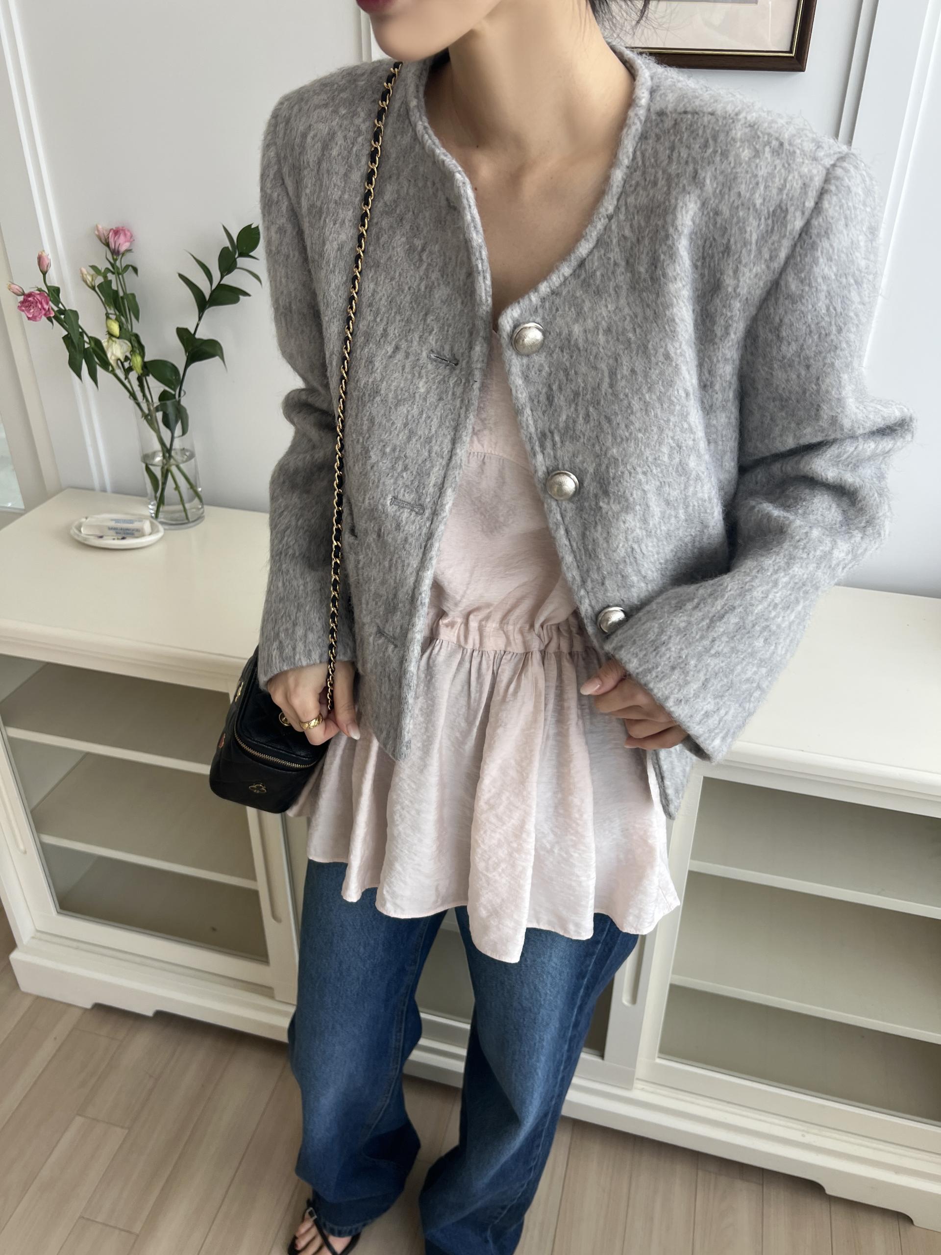 하의는 반바지를 착용해 미니 원피스 느낌으로 연출하셔도 되고, 모델 컷과 같이 데님이나 슬랙스와 매치하셔도 트렌디한 코디가 됩니다.