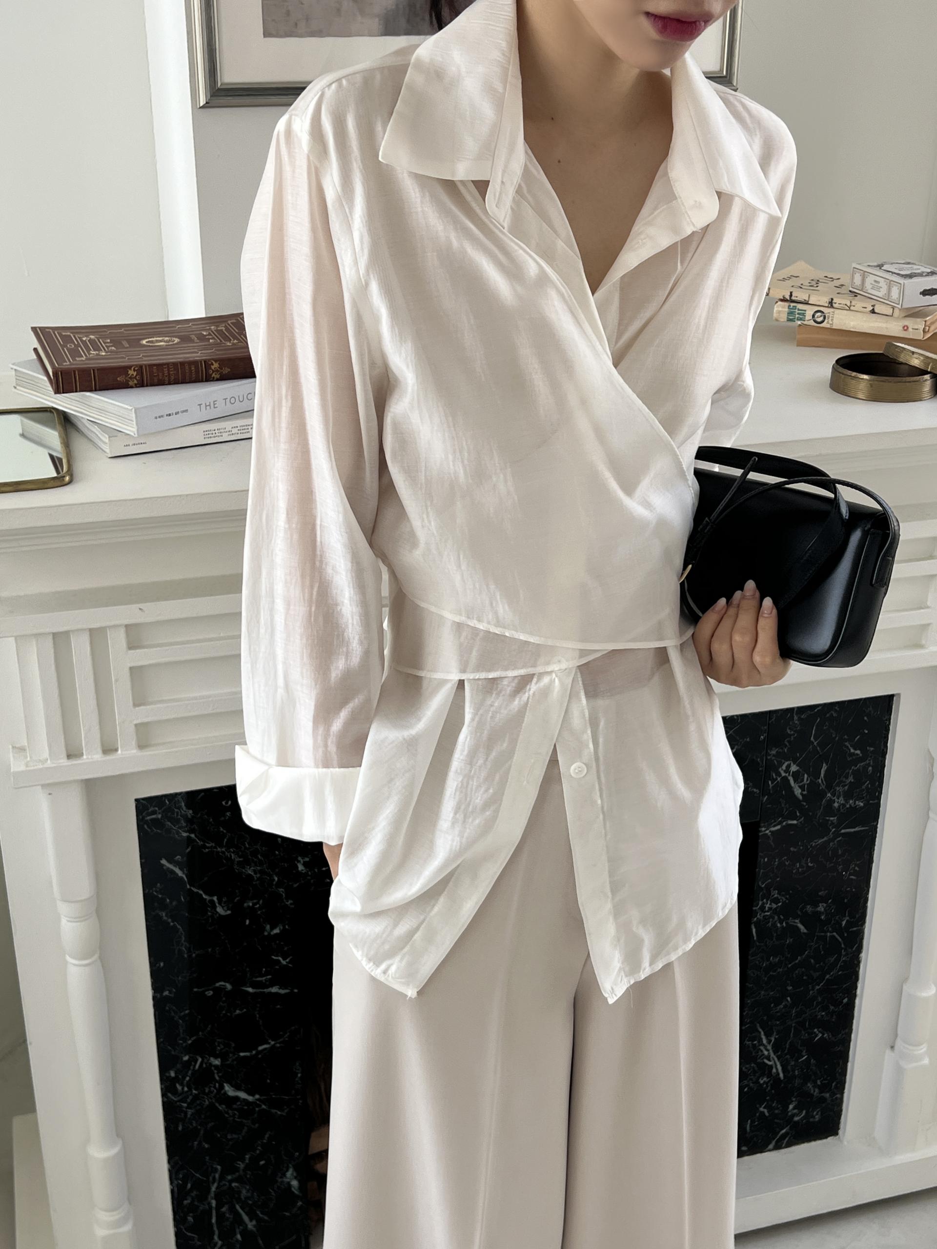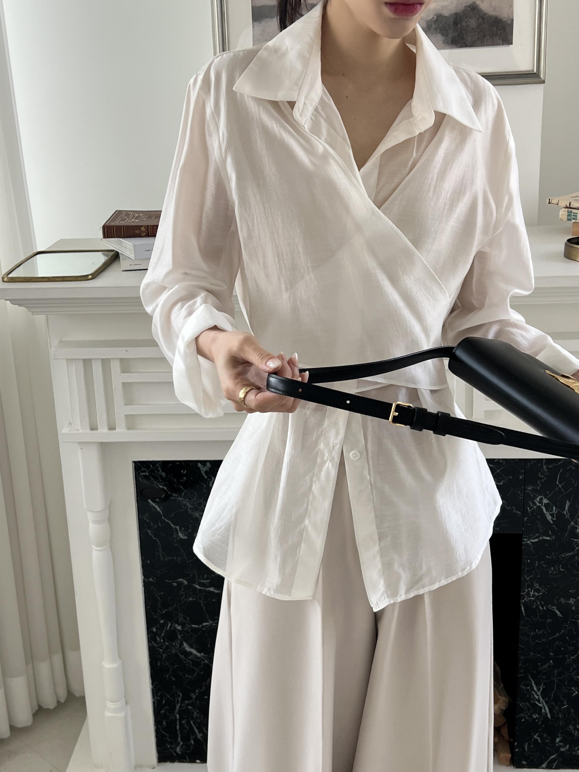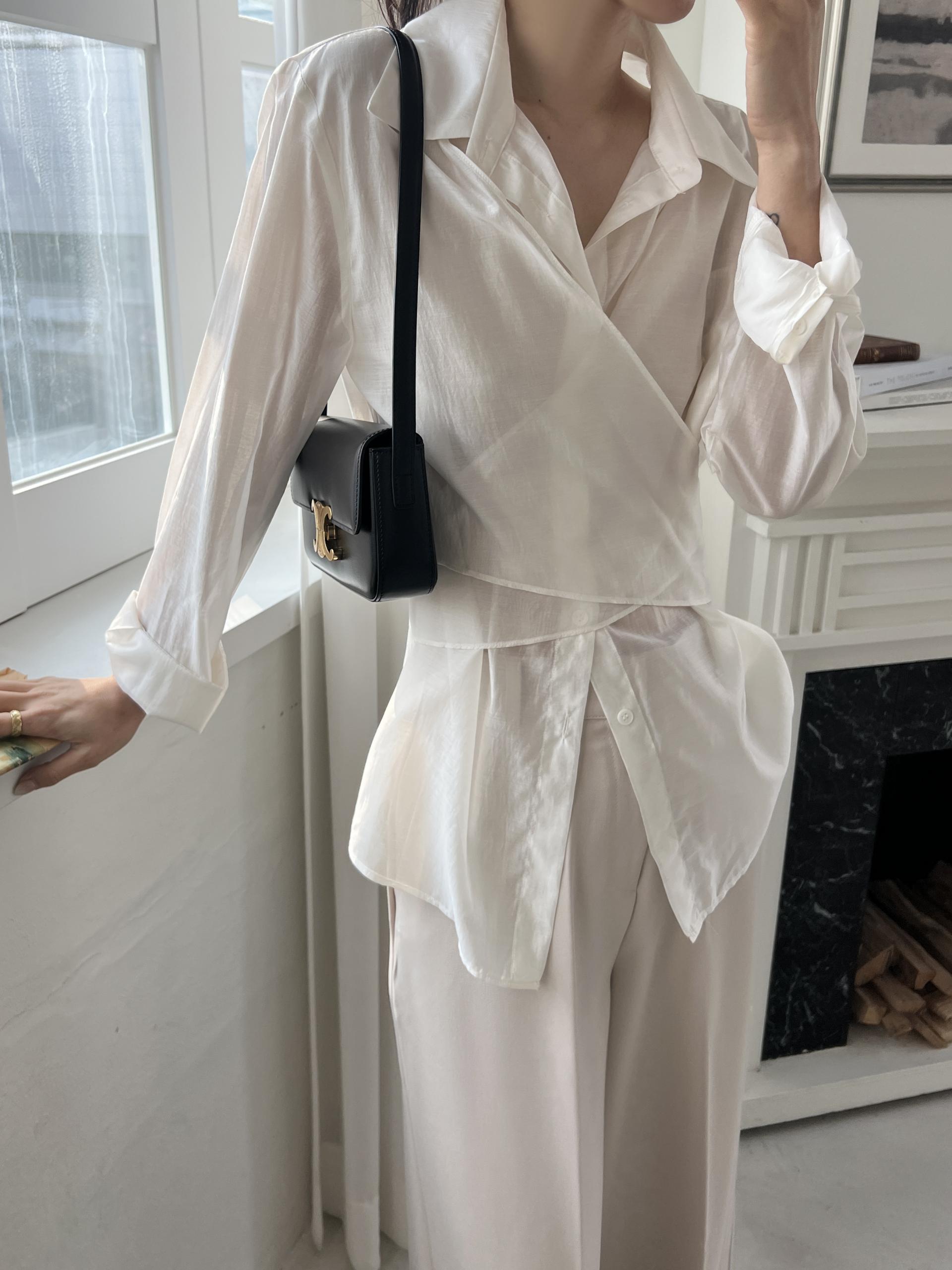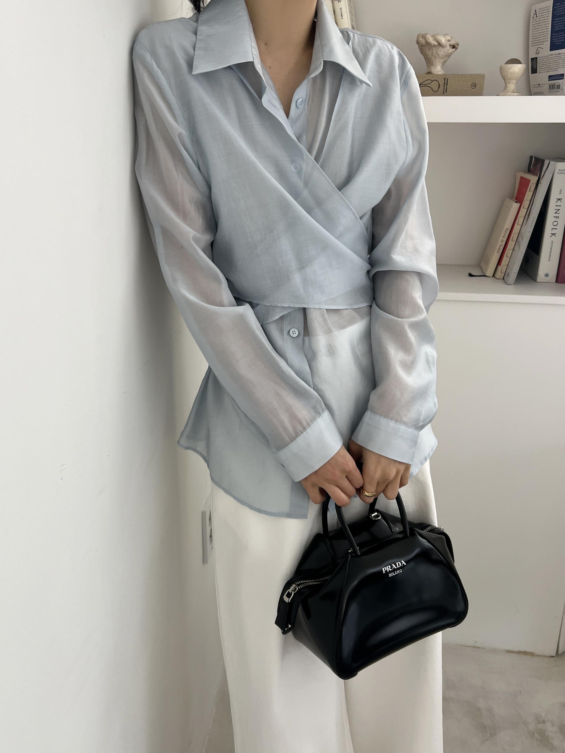 실키한 소재감의 랩 뷔스티에 블라우스입니다.