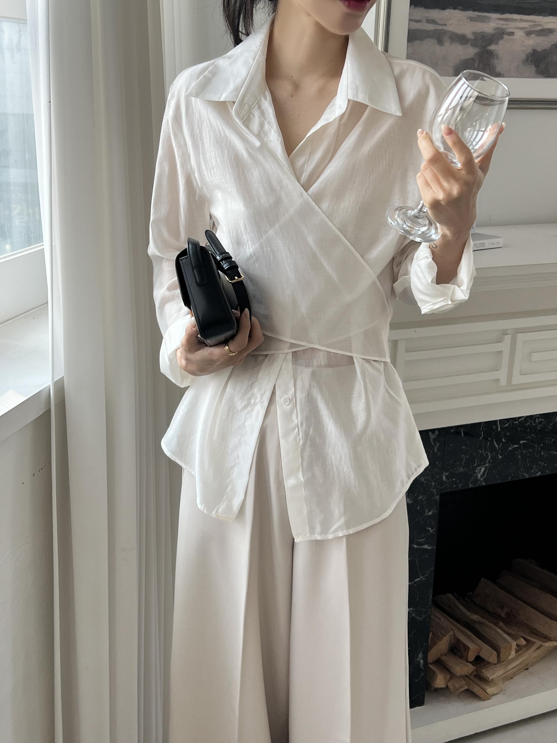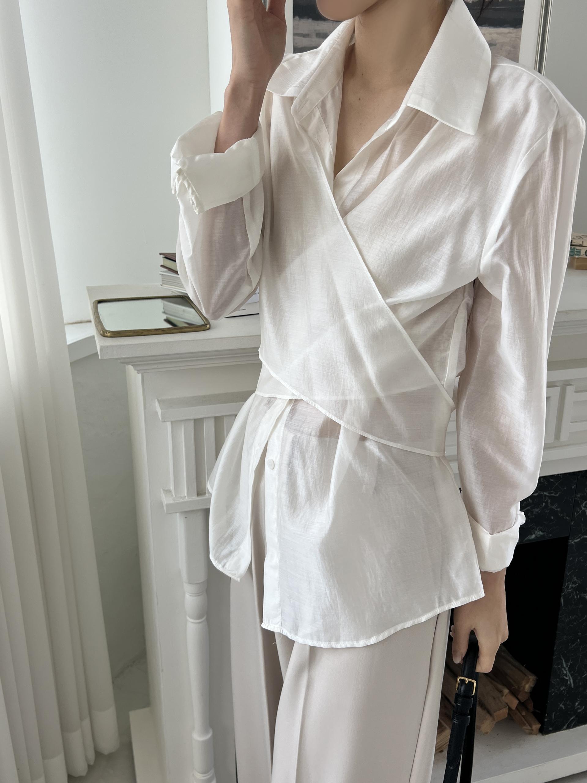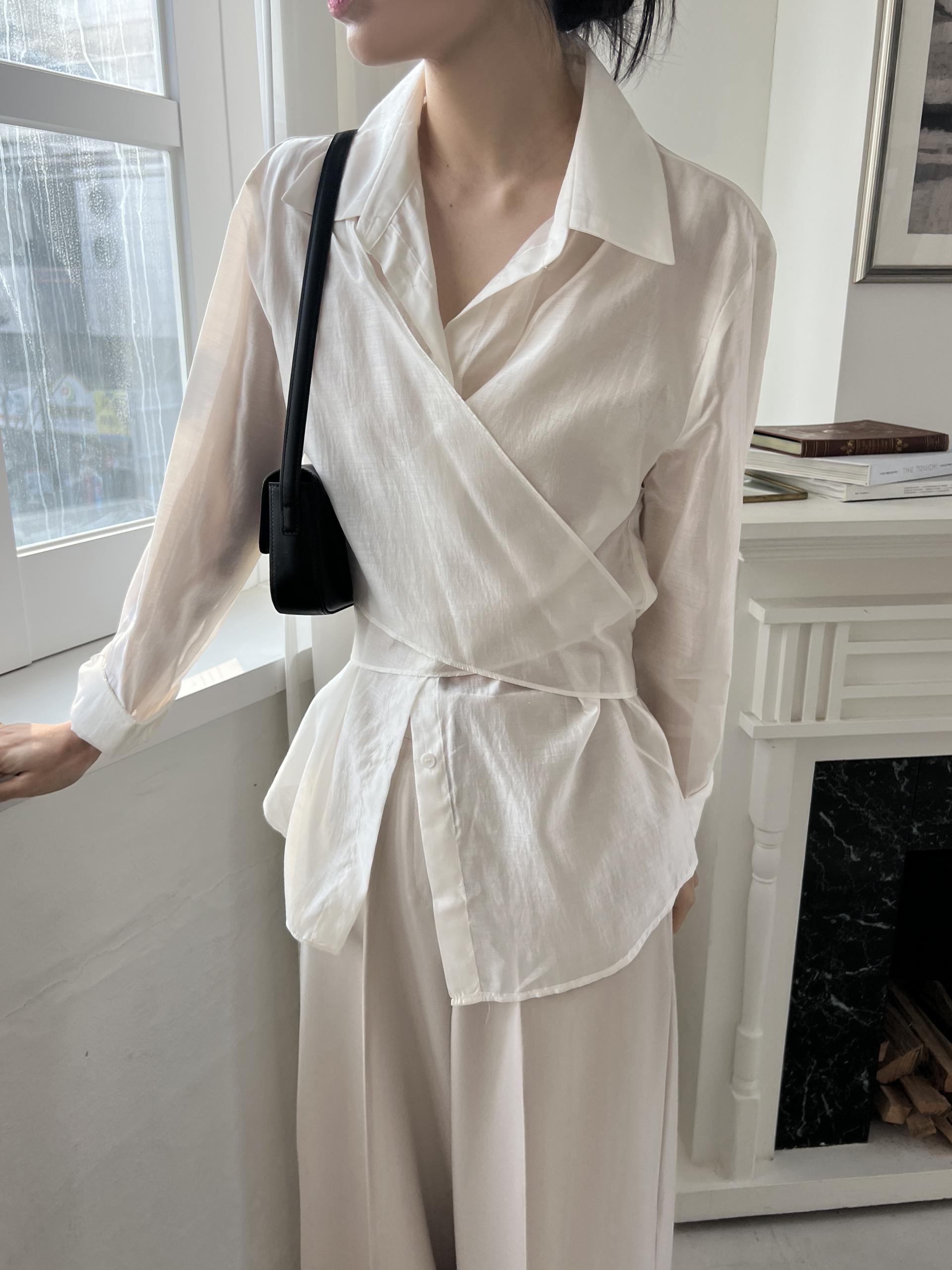 실키한 소재감의 랩 뷔스티에 블라우스입니다.