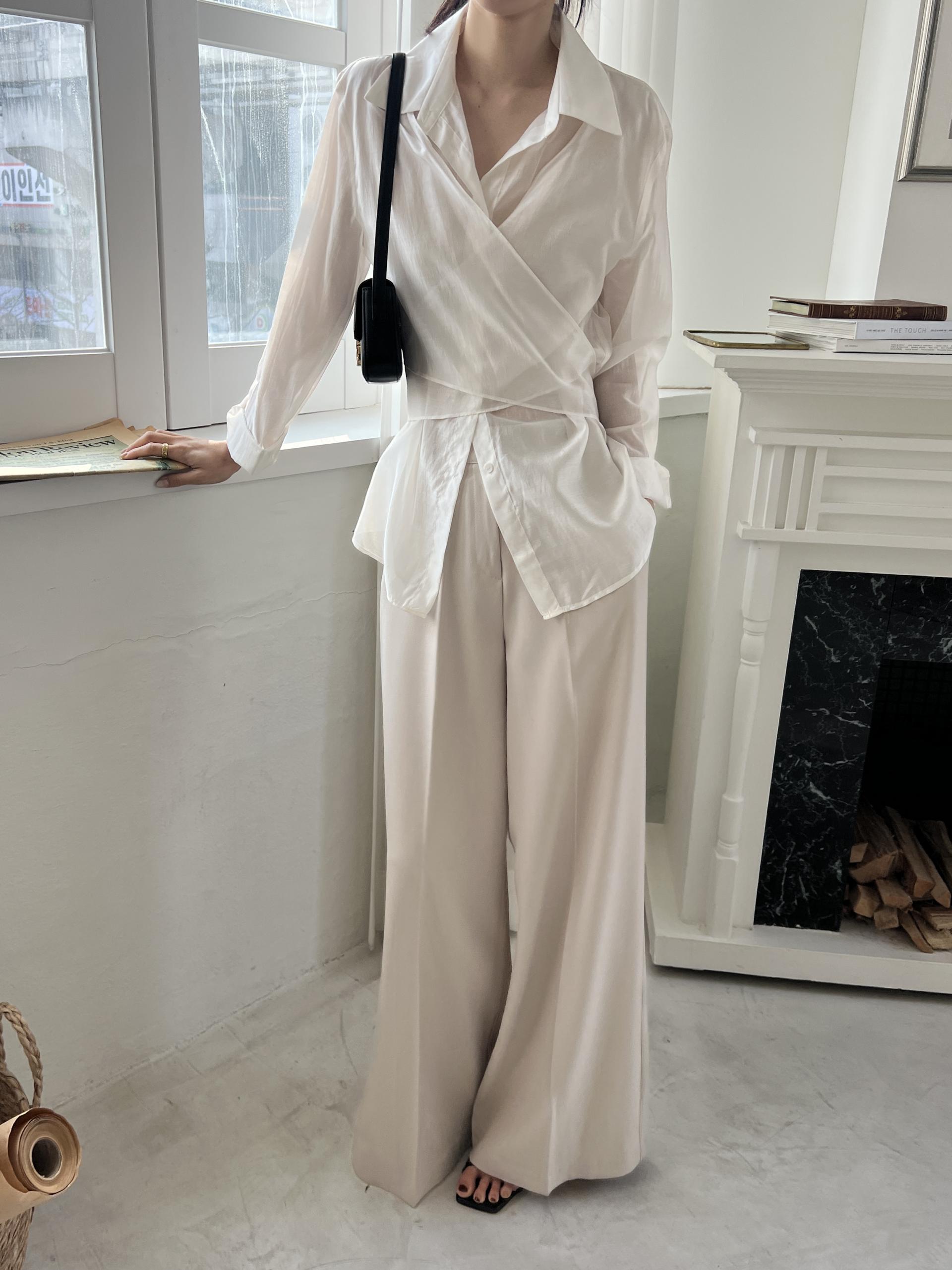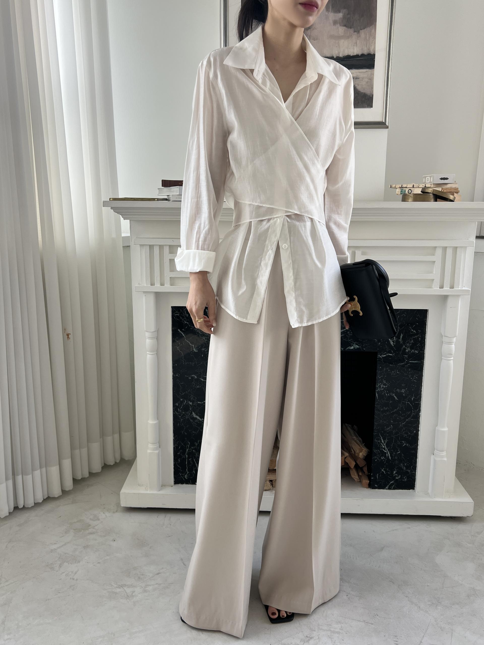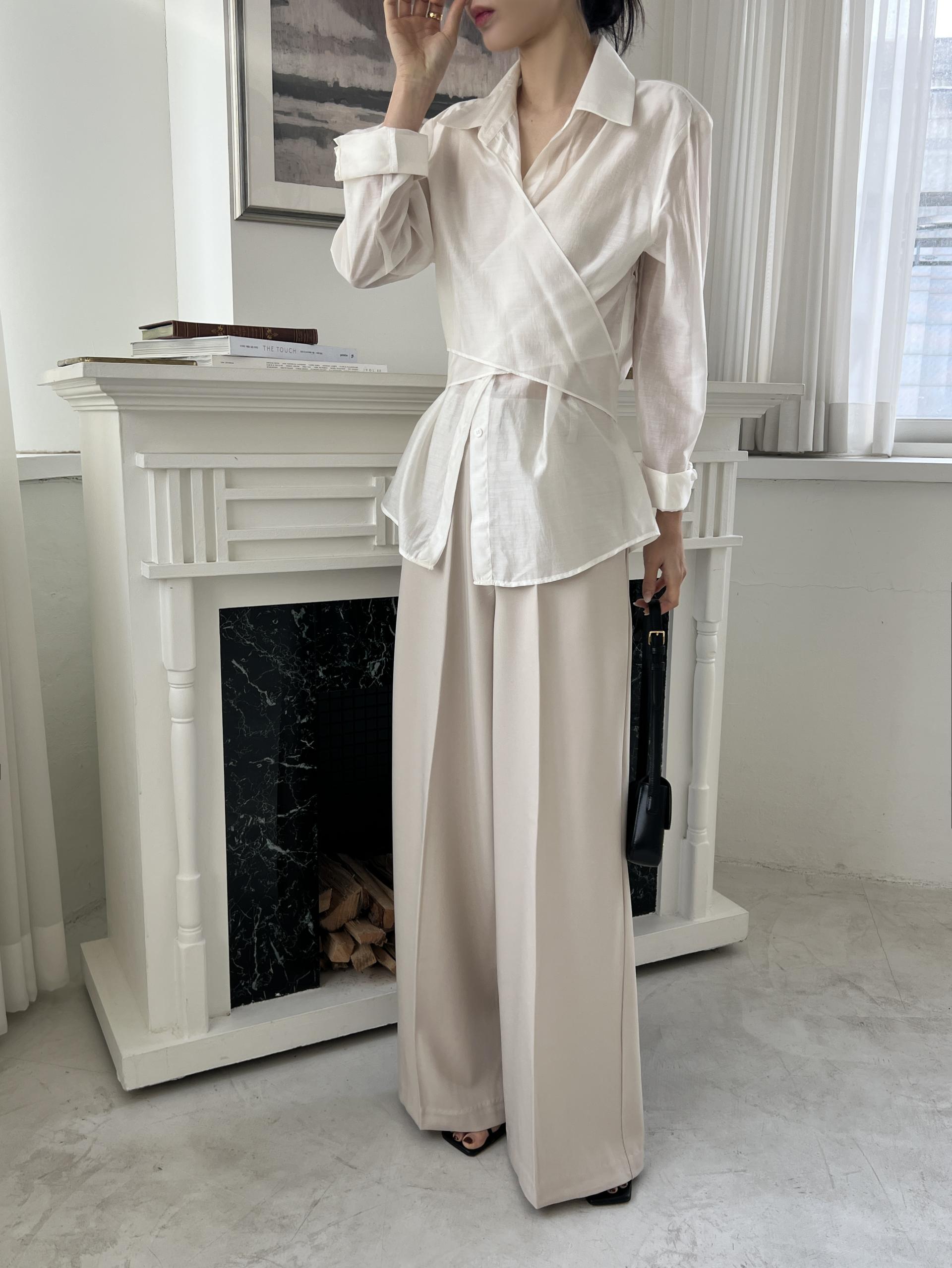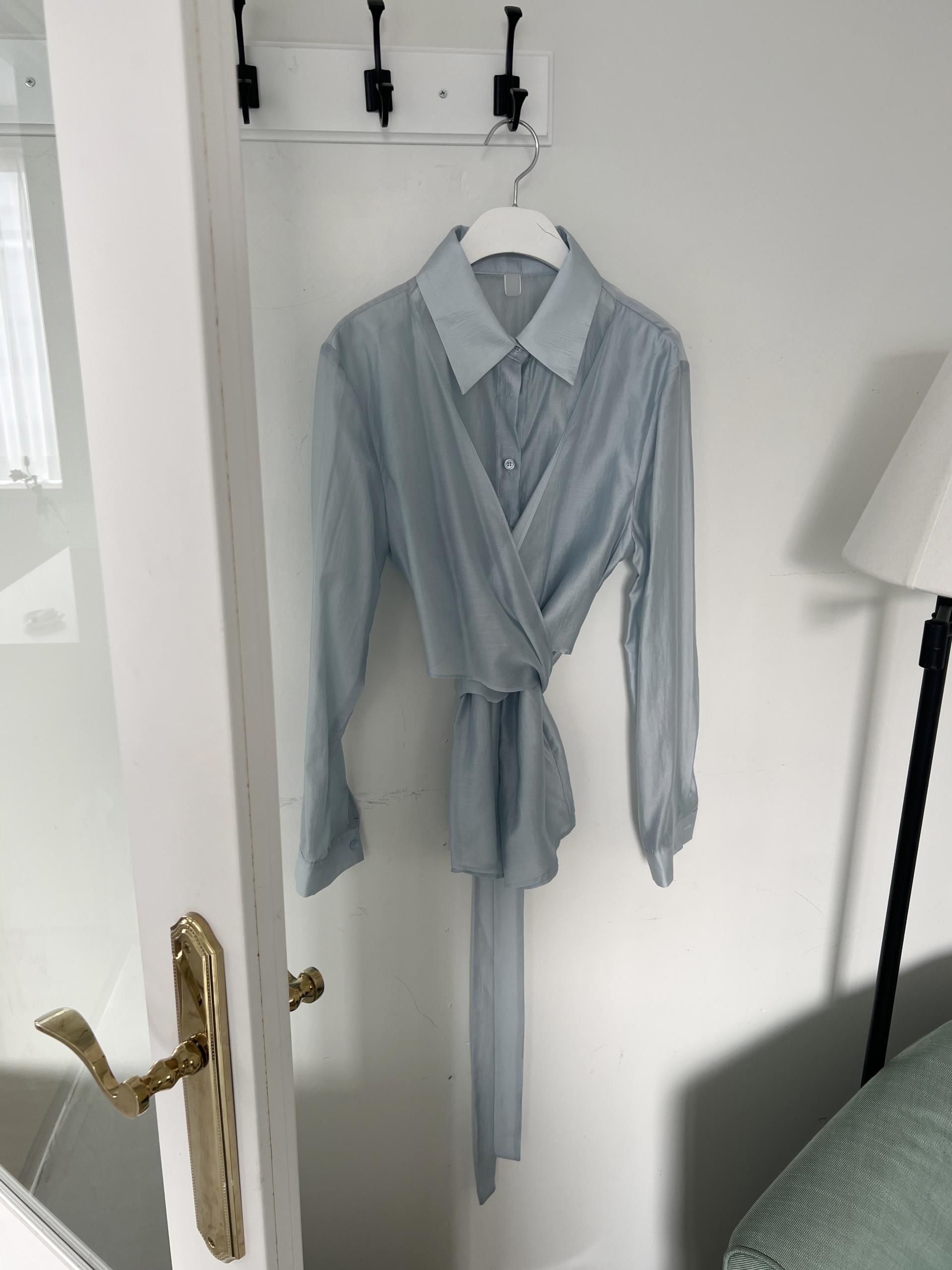 실키한 소재감의 랩 뷔스티에 블라우스입니다.