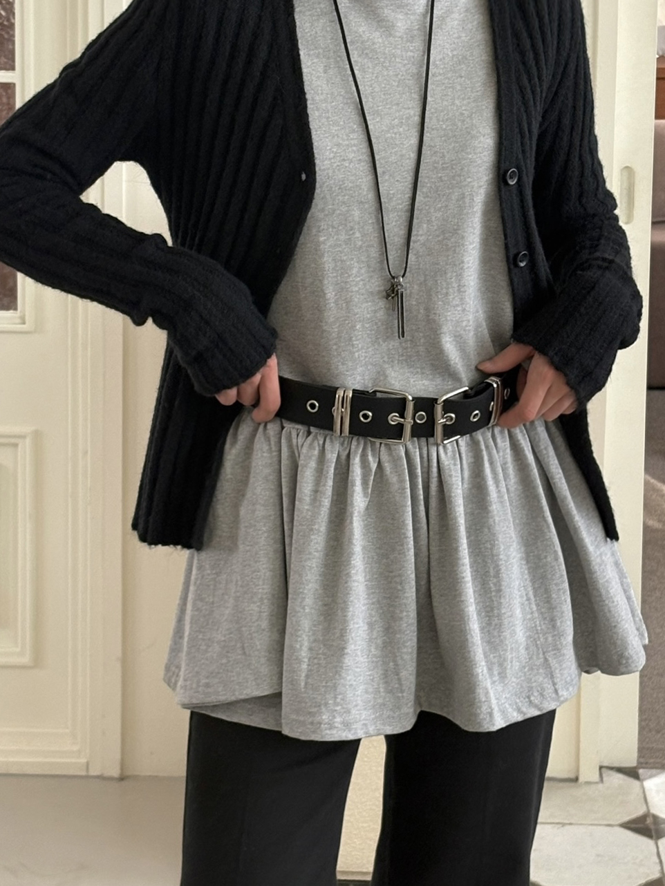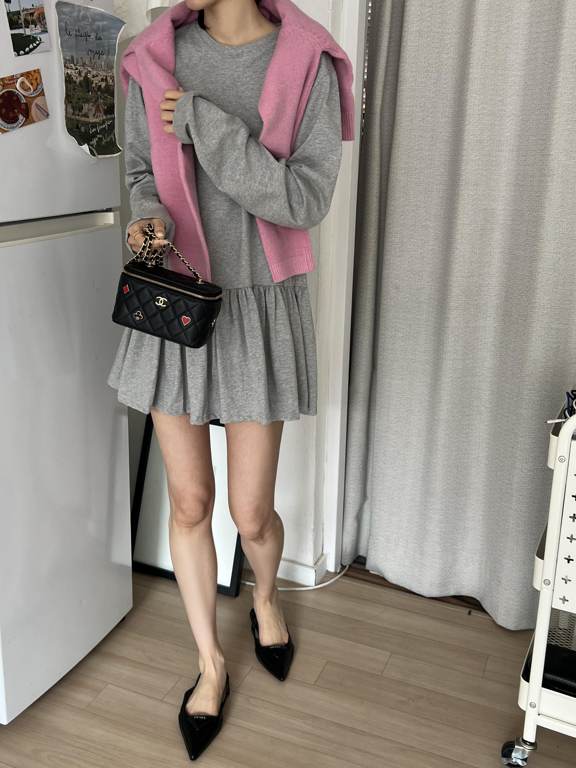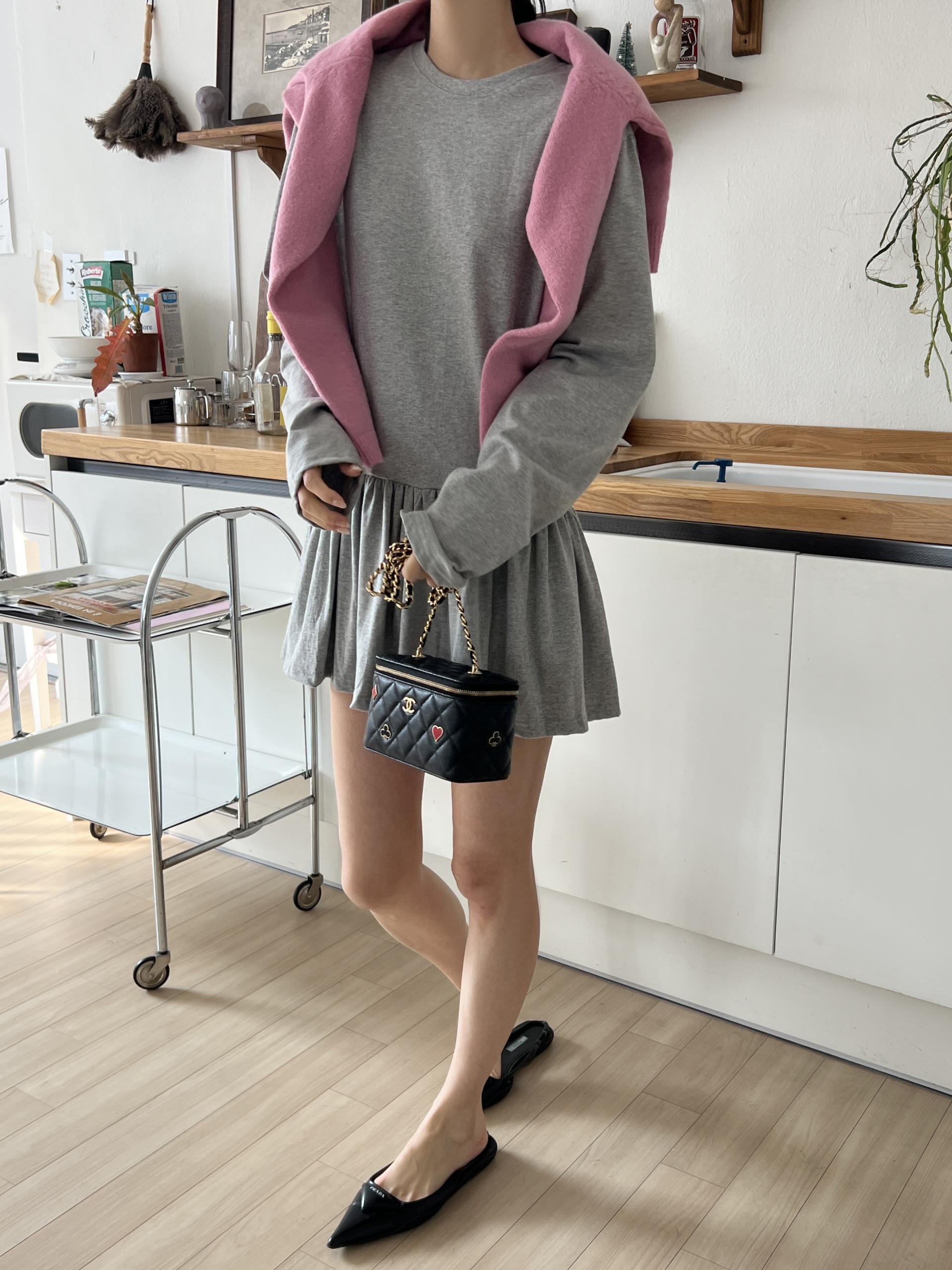 여리여리한 루즈핏에 밑단 프릴로 미니 원피스처럼 단독으로 착용하셔도 좋고, 청바지와 레이어드해 착용해도 좋아요.