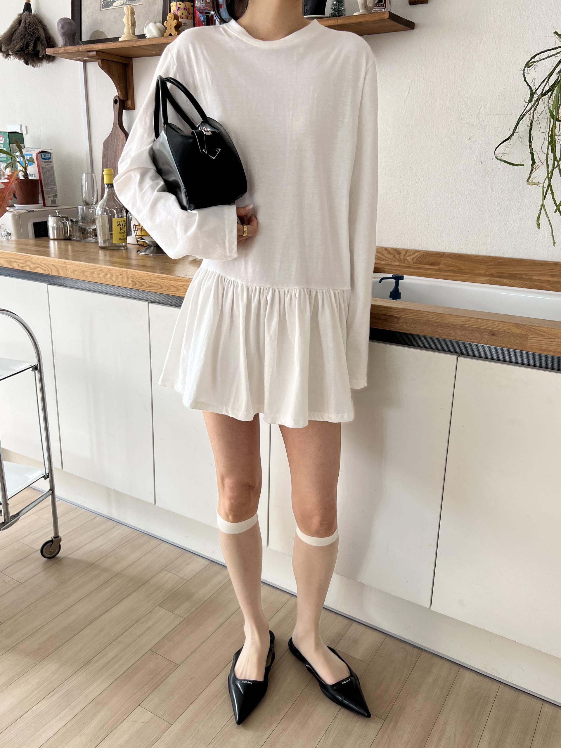 깨끗한 코튼 소재의 프릴 미니 원피스입니다.