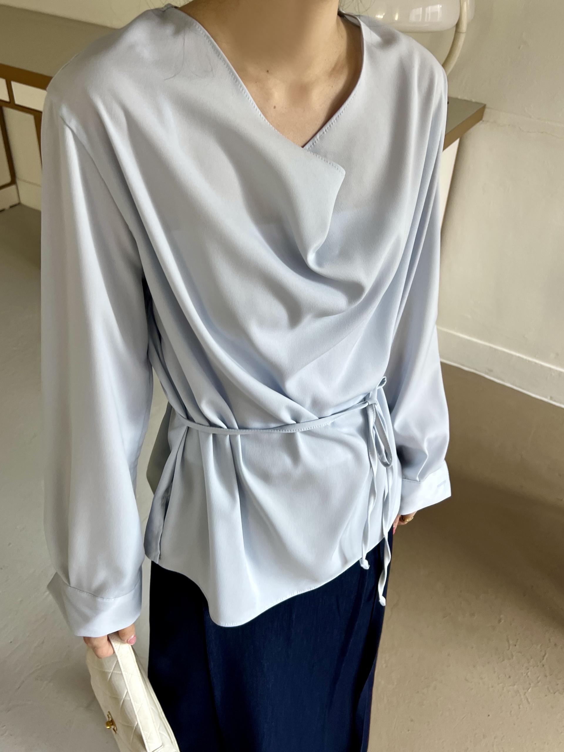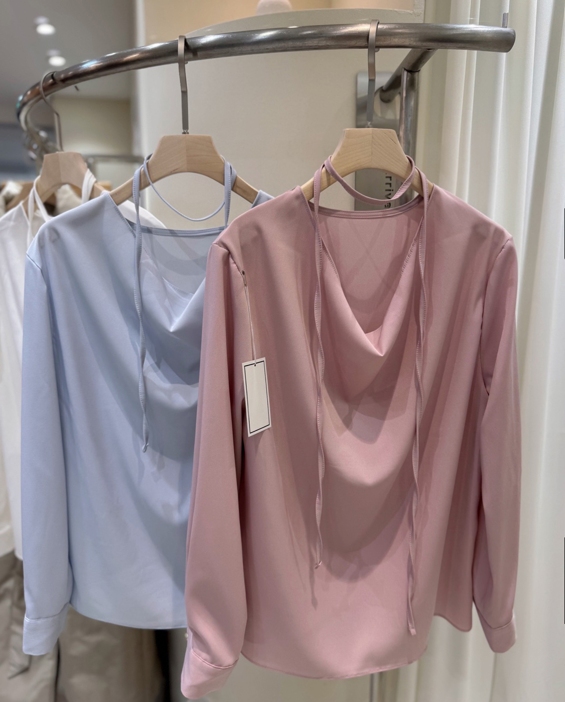 차르르 떨어지는 실키한 소재감에 드레이프넥으로 우아한 셔링의 긴팔 블라우스입니다.