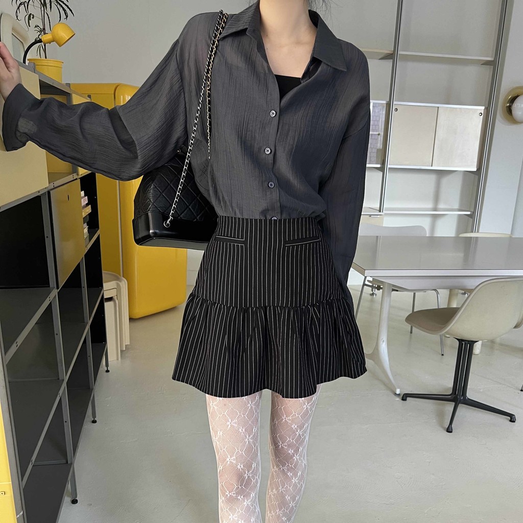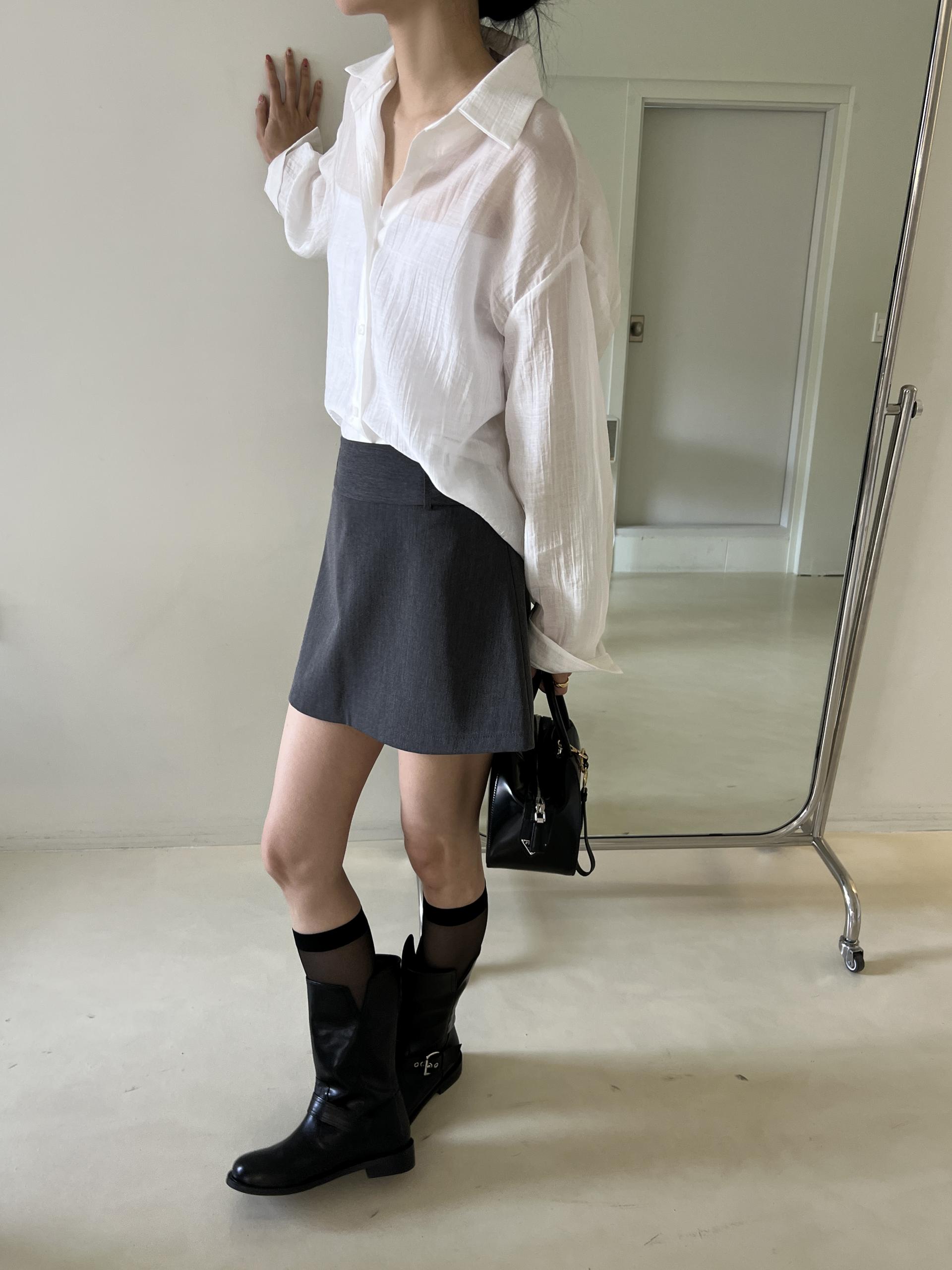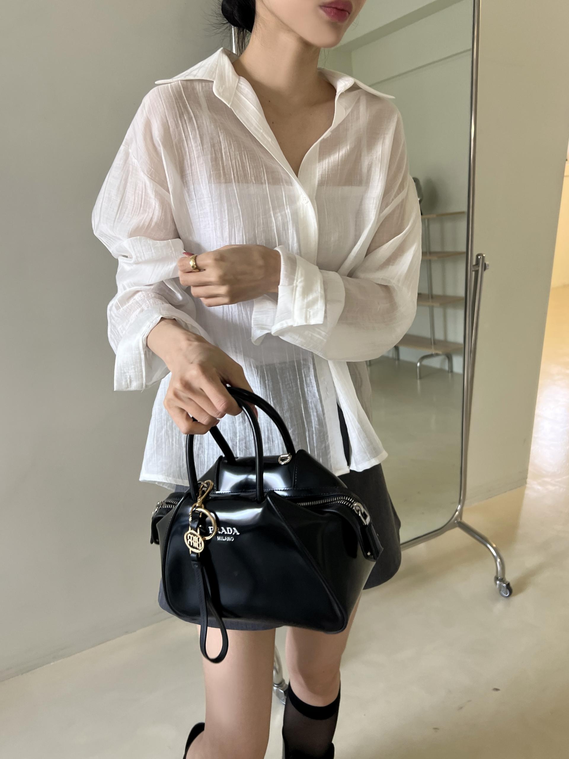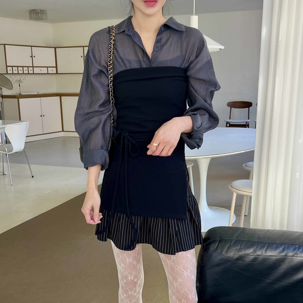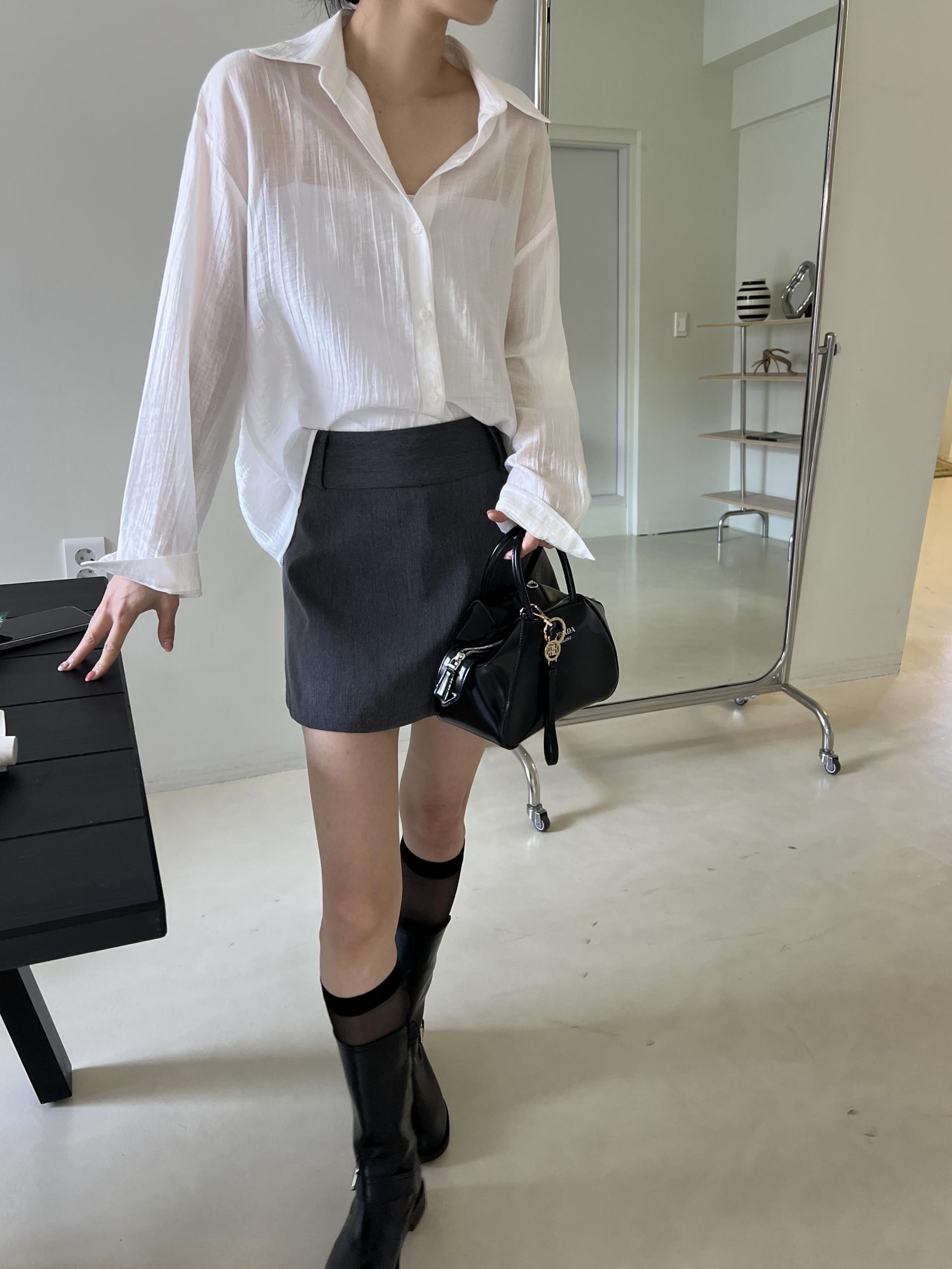 비침이 있는 시스루 소재로 여리여리한 느낌을 살려 단독 착용하셔도 좋고, 뷔스티에와 레이어드하시거나 여름 시즌에는 커버업 셔츠로 걸치듯 착용하셔도 좋아요.